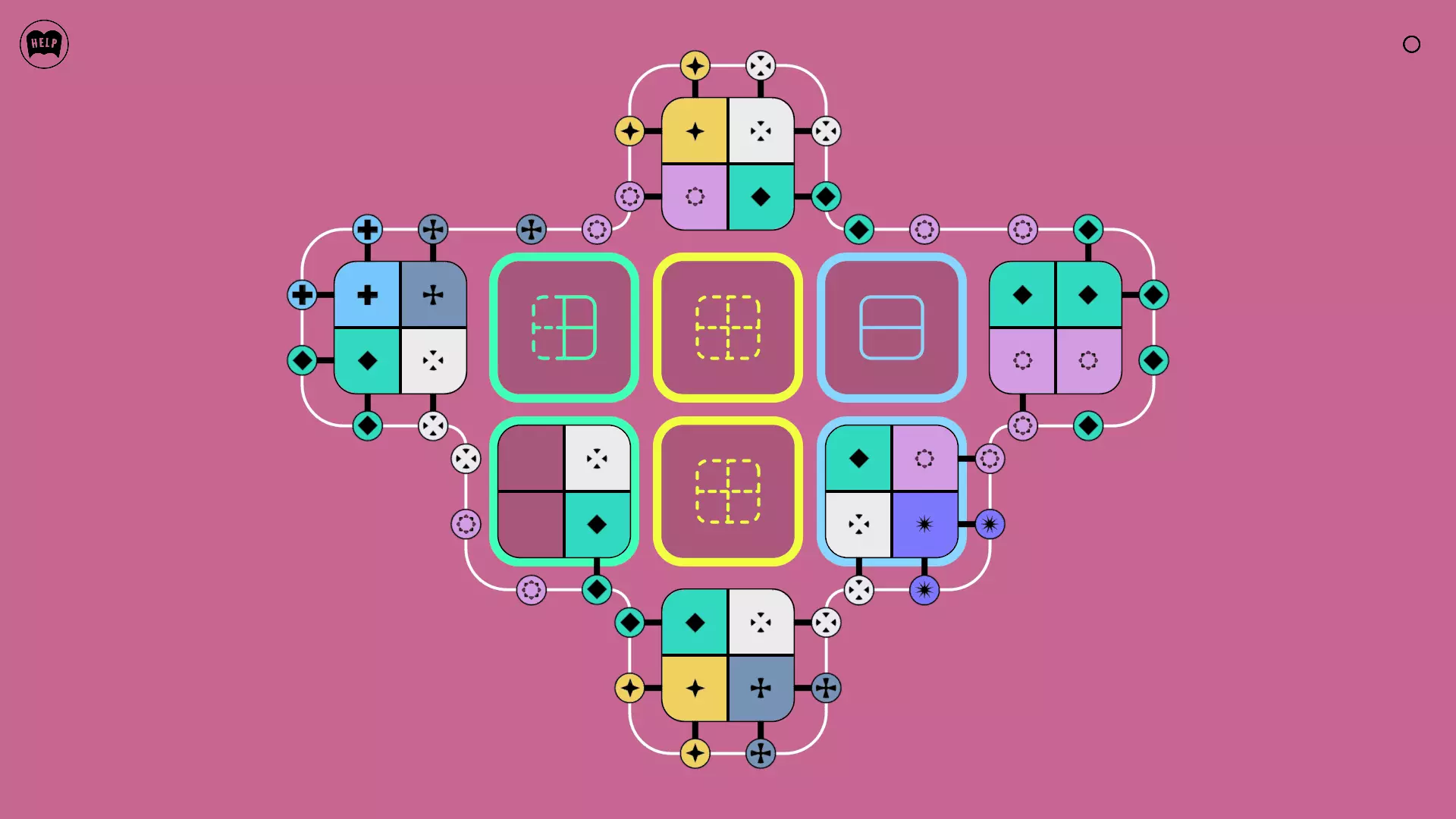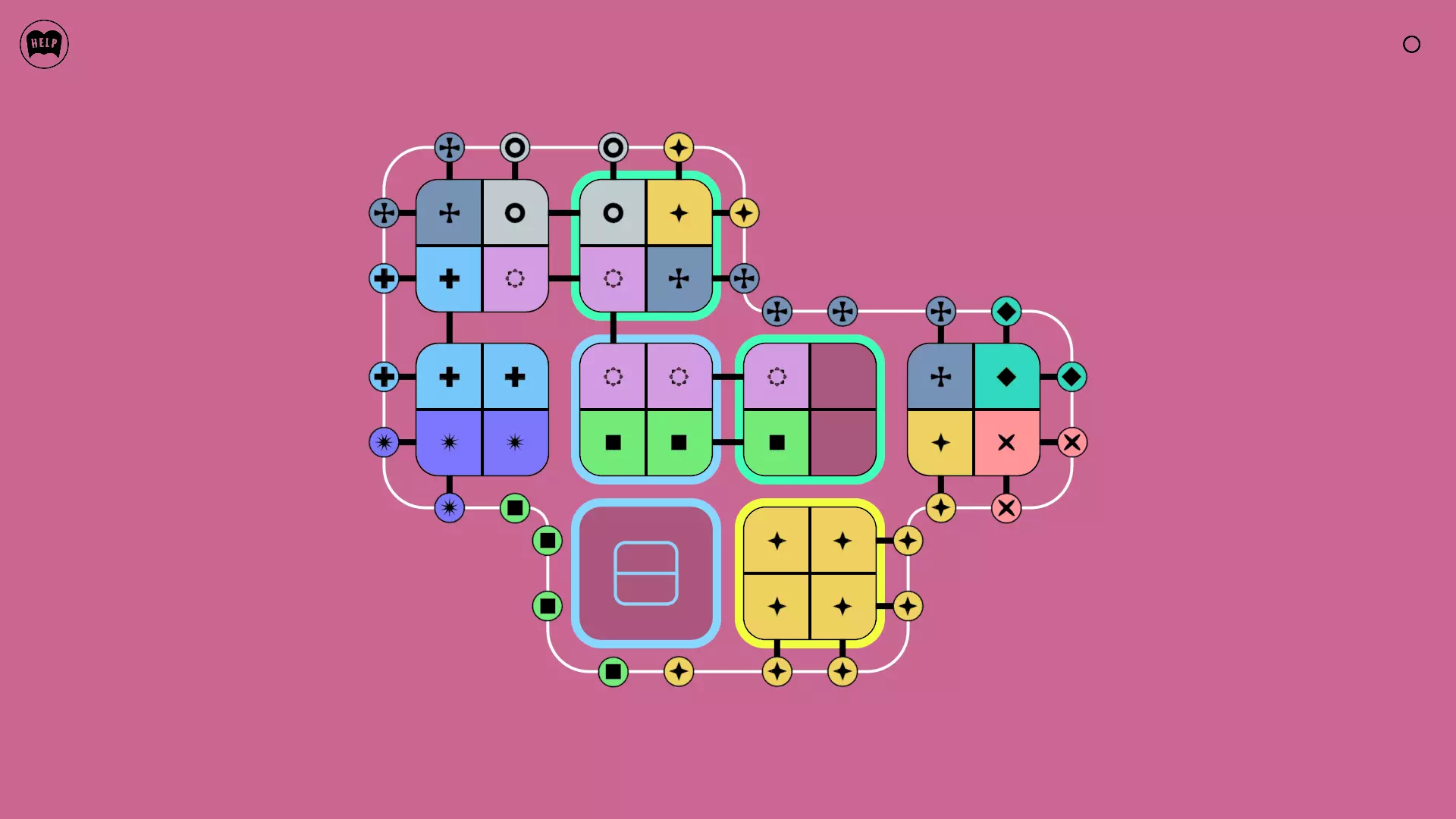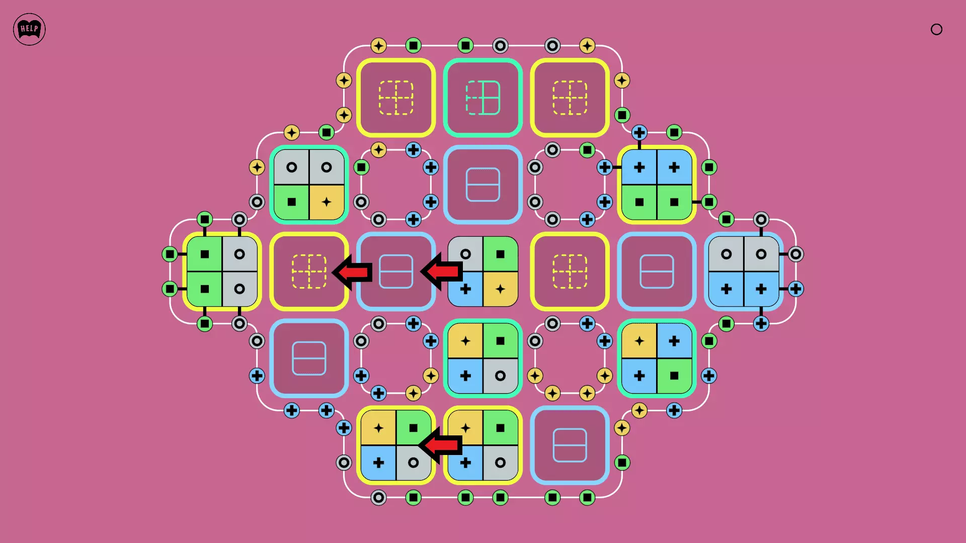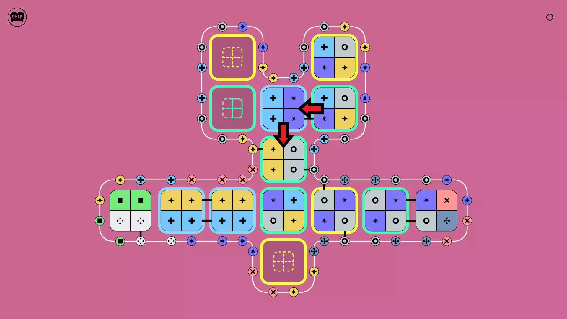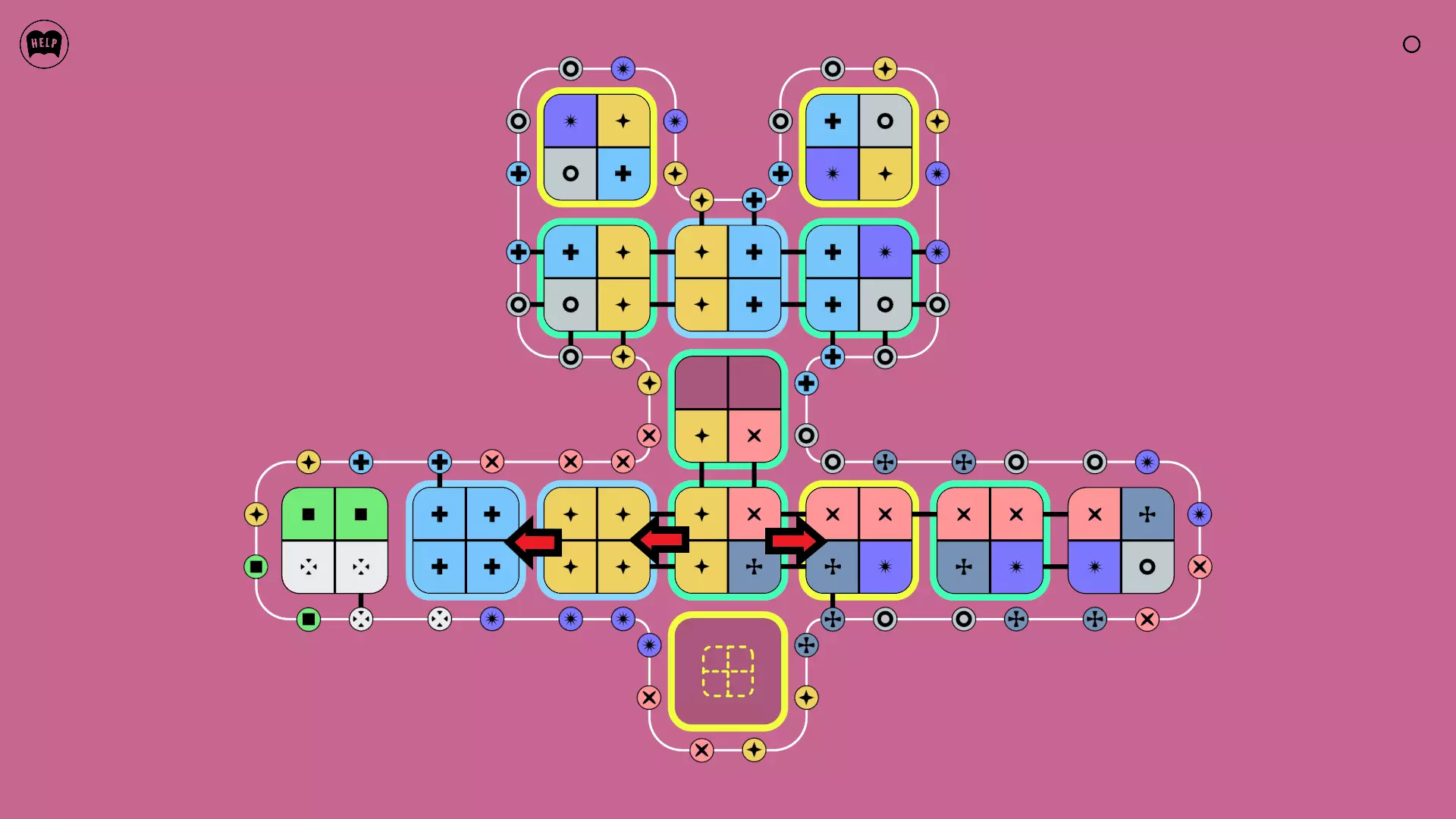 《Lines On Sides》关卡71-84图文攻略 简介 前18个关卡仅提供解决方案,因为解决这些关卡只需旋转或交换方块。 第19关及后续关卡包含步骤说明,解释如何分割、复制和转移方块。 由于Steam的限制,我不得不将本攻略分为两部分。 规则 旋转方块,直到方块上的图标与线条上或相邻方块上的符号匹配。当符号匹配时,它们之间会绘制一条线。 第7关引入了交换被绿线圈住的方块的功能。第14关新增了无法旋转或移动的方块,这类方块外有粗黑线环绕。 第19关新增了分裂平台,该平台外有蓝色线条环绕。此平台可将方块分裂为两个,或将两个方块合并为一个。
