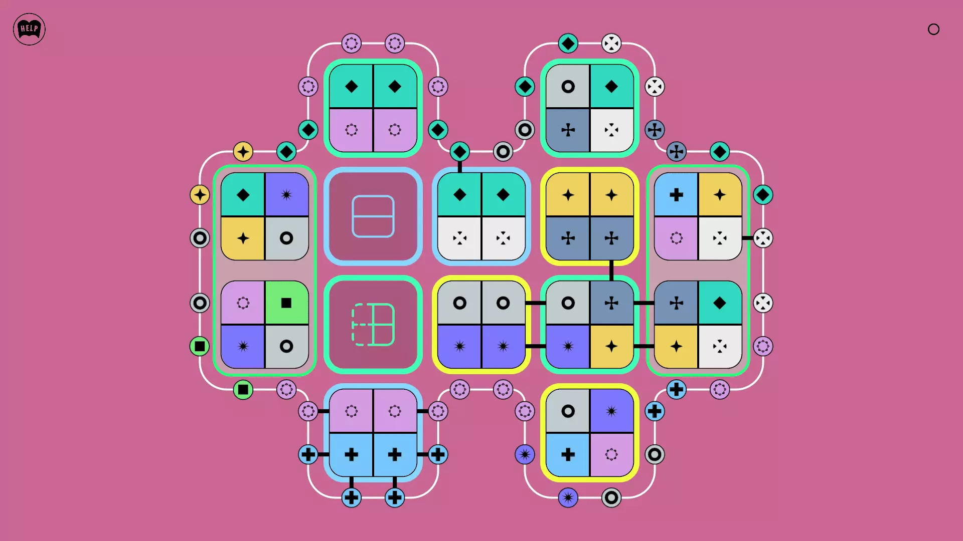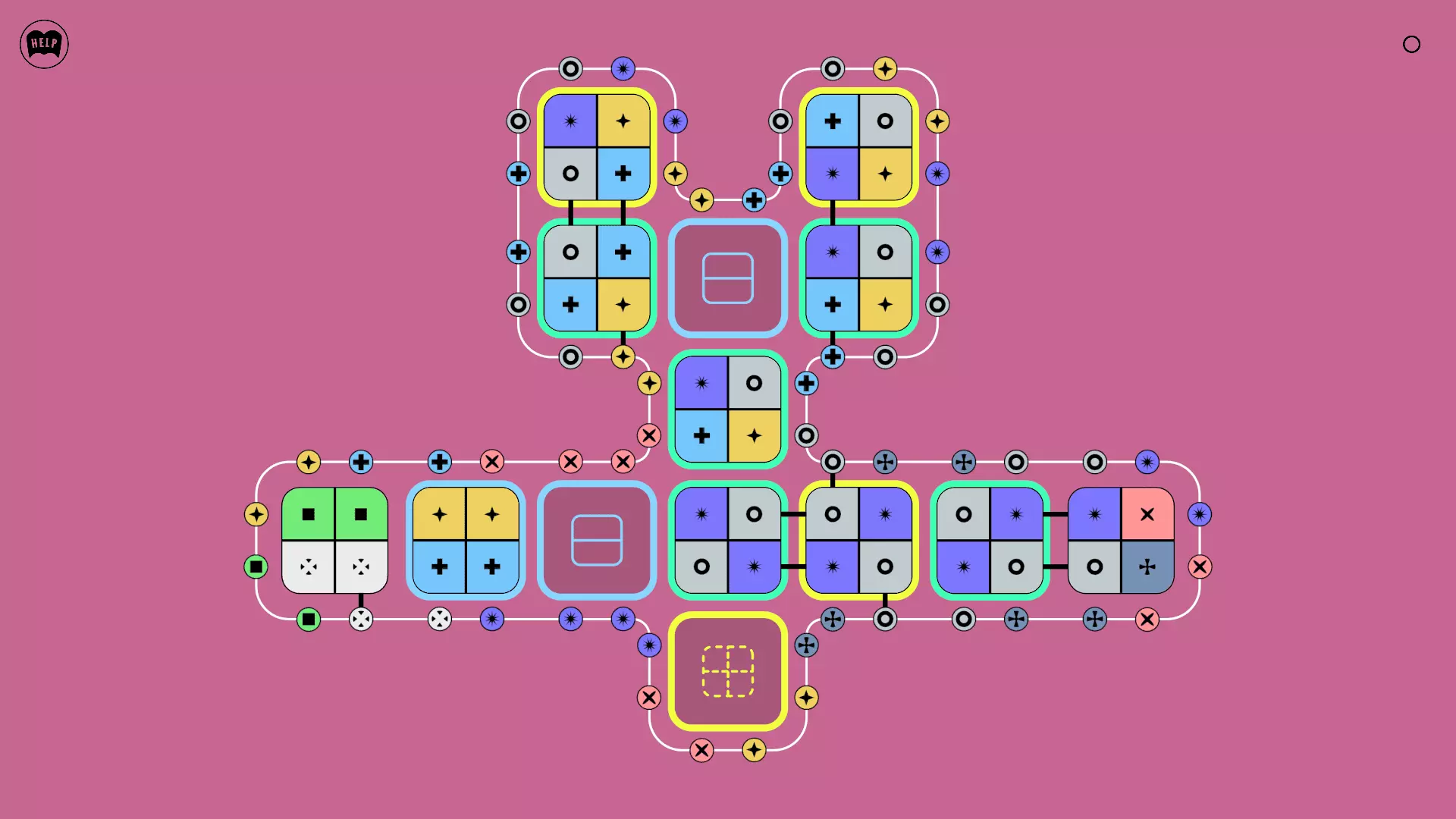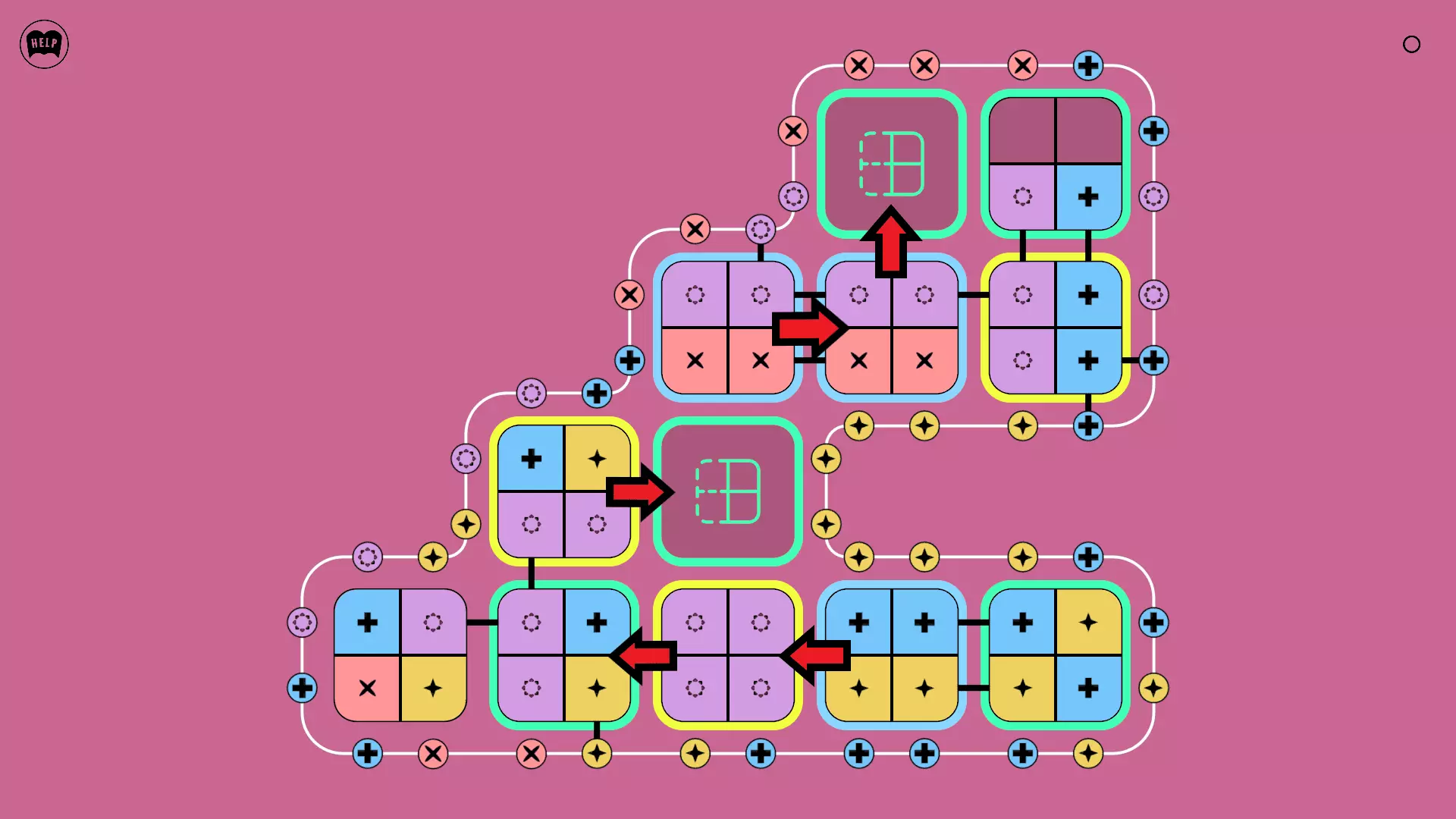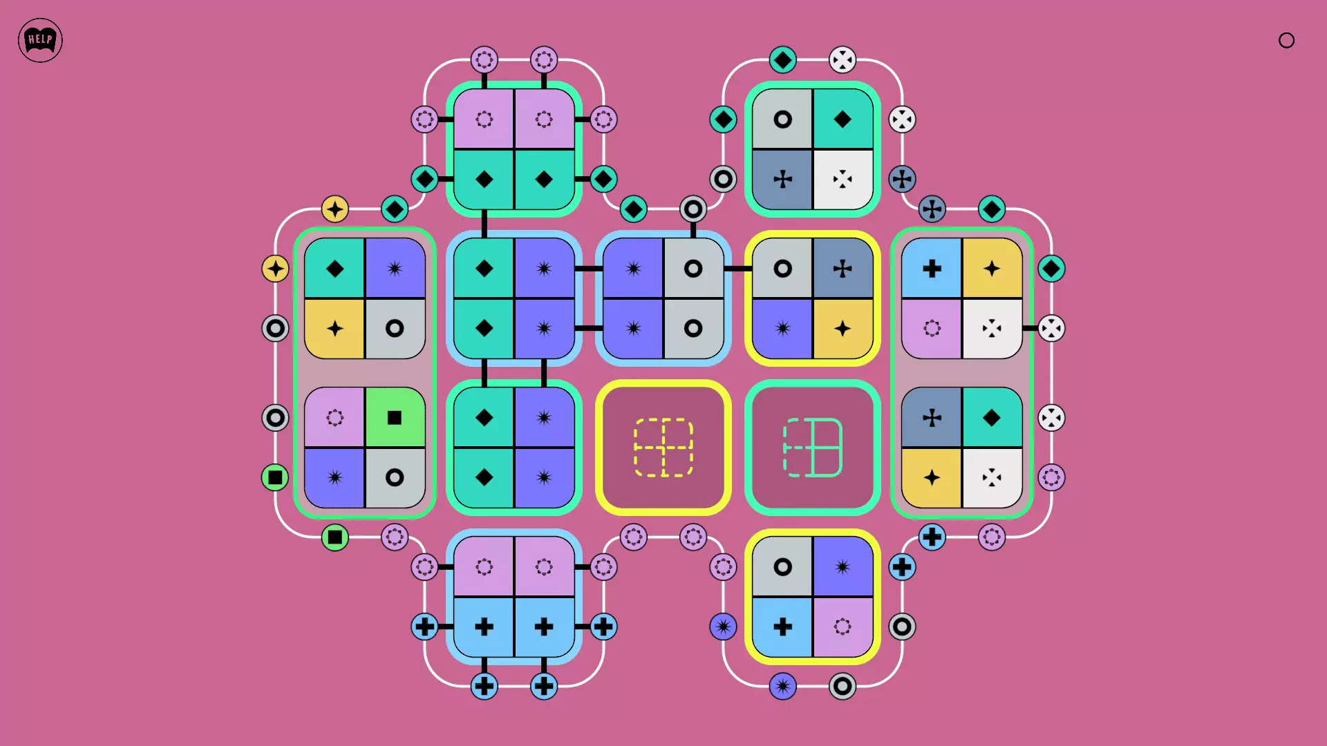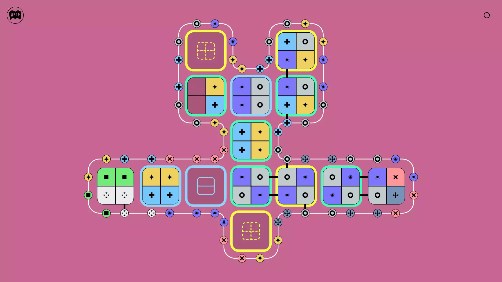 《Lines On Sides》关卡71-84图文攻略 简介 前18个关卡仅提供解决方案,因为解决这些关卡只需旋转或交换方块。 第19关及后续关卡包含步骤说明,解释如何分割、复制和转移方块。 由于Steam的限制,我不得不将本攻略分为两部分。 规则 旋转方块,直到方块上的图标与线条上或相邻方块上的符号匹配。当符号匹配时,它们之间会绘制一条线。 第7关引入了交换被绿线圈住的方块的功能。第14关新增了无法旋转或移动的方块,这类方块外有粗黑线环绕。 第19关新增了分裂平台,该平台外有蓝色线条环绕。此平台可将方块分裂为两个,或将两个方块合并为一个。