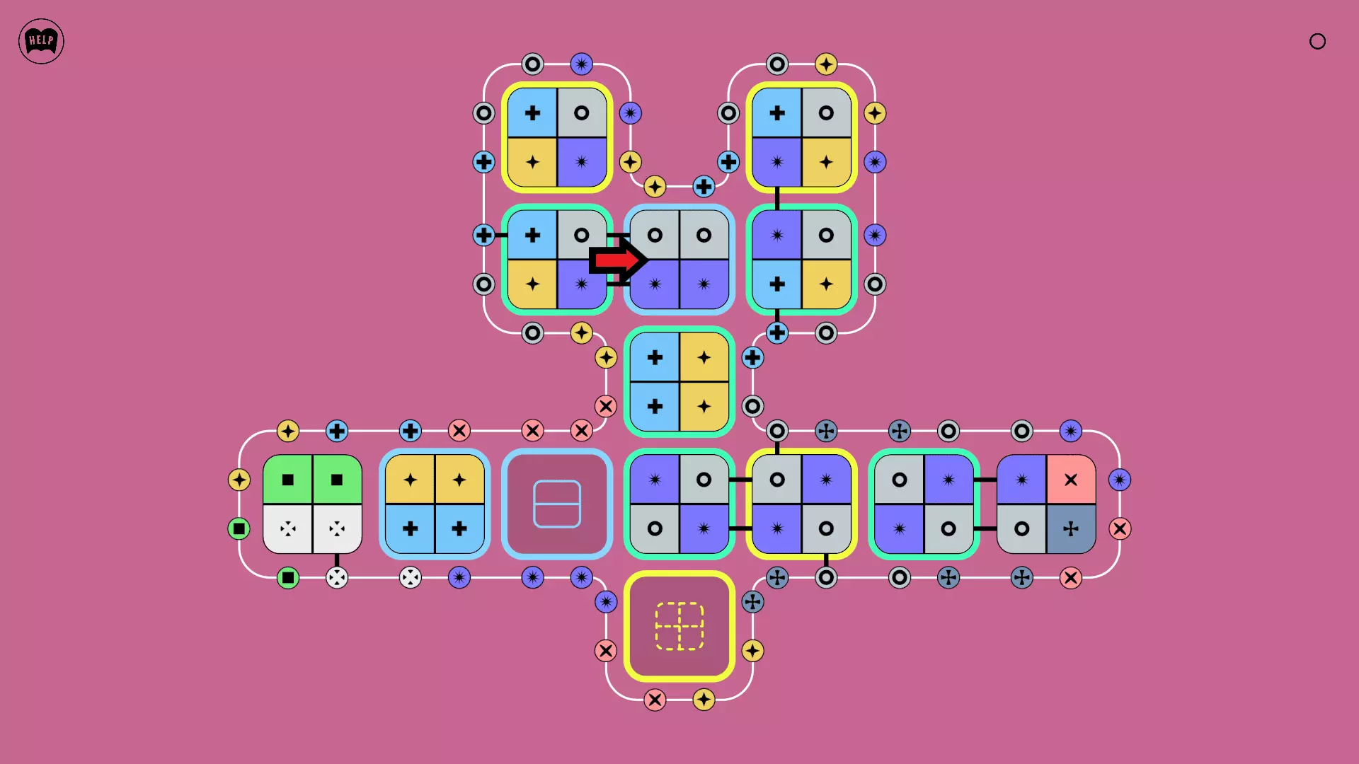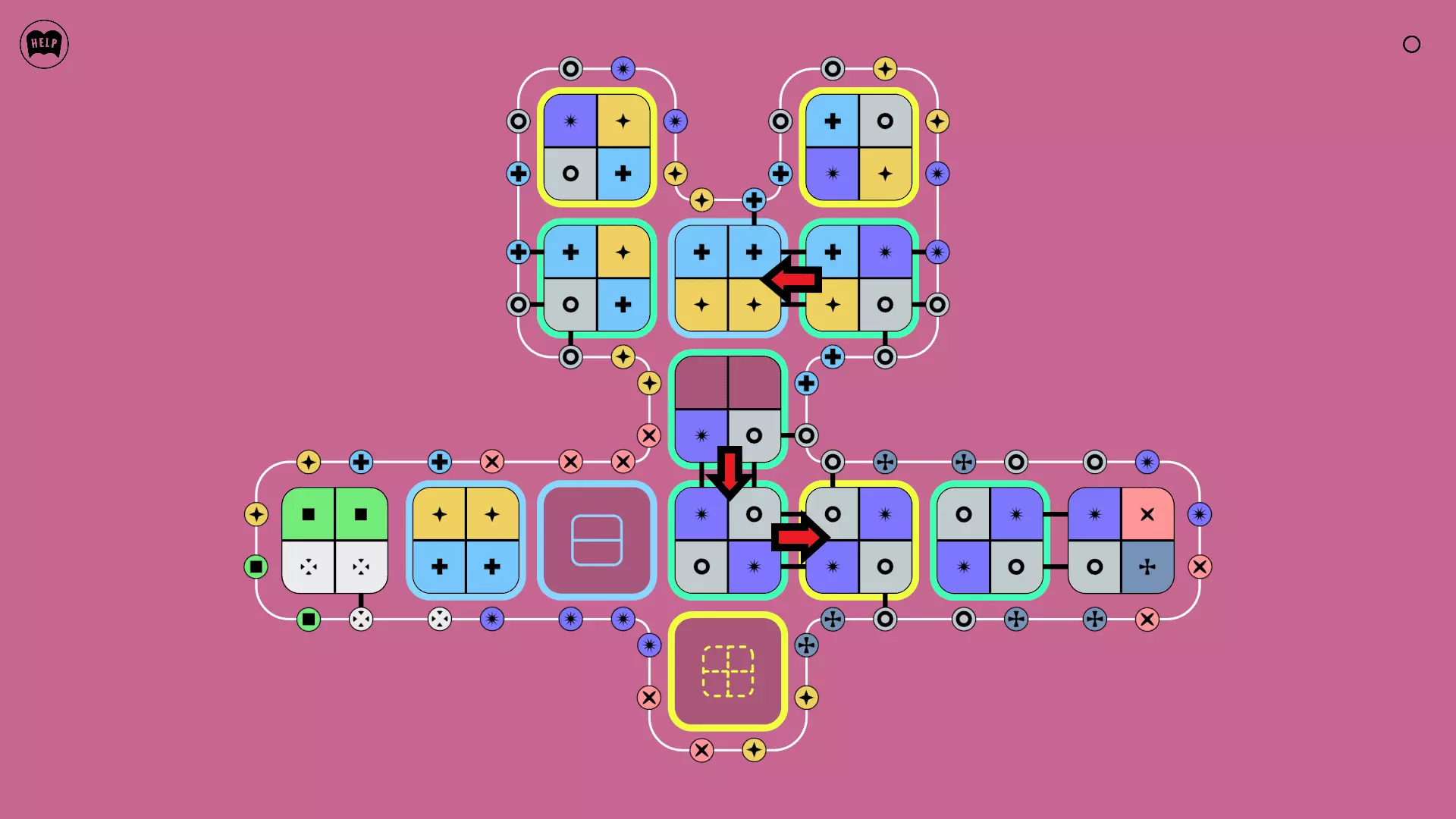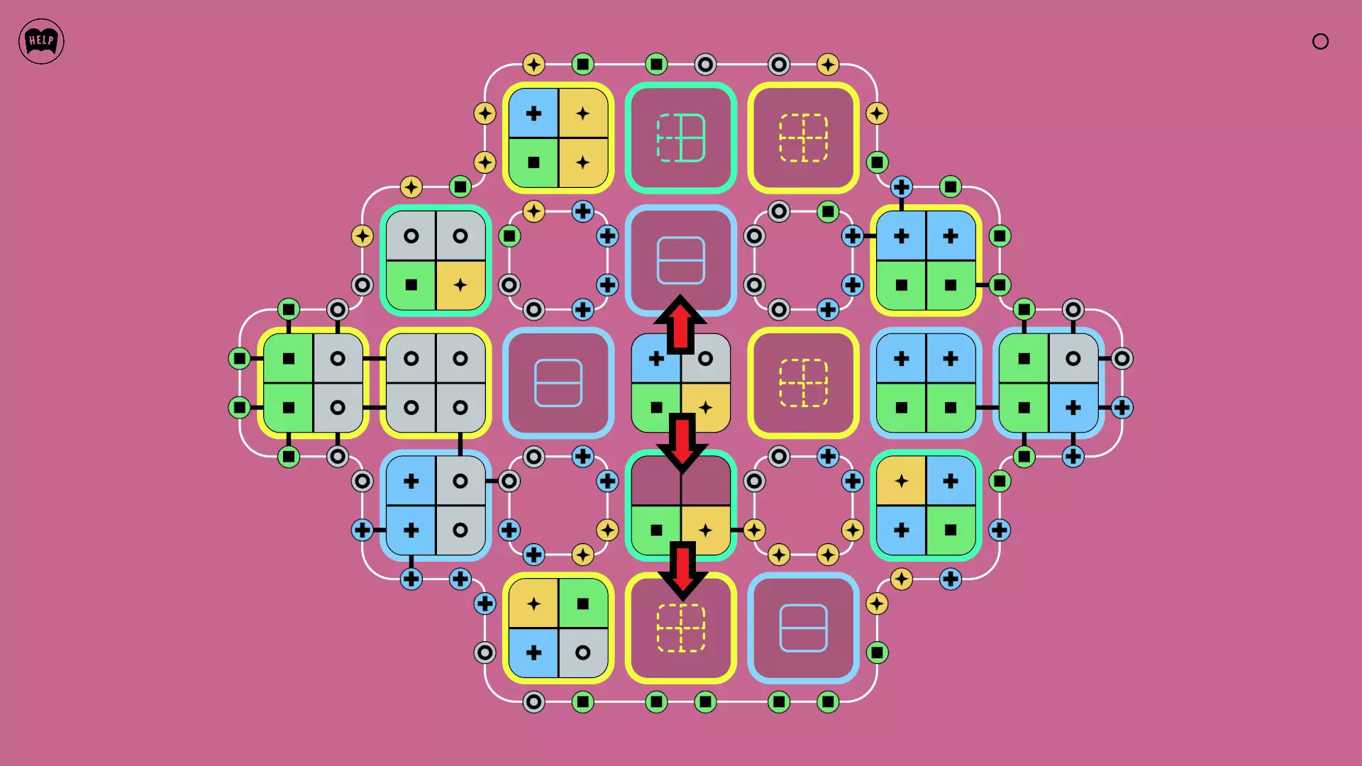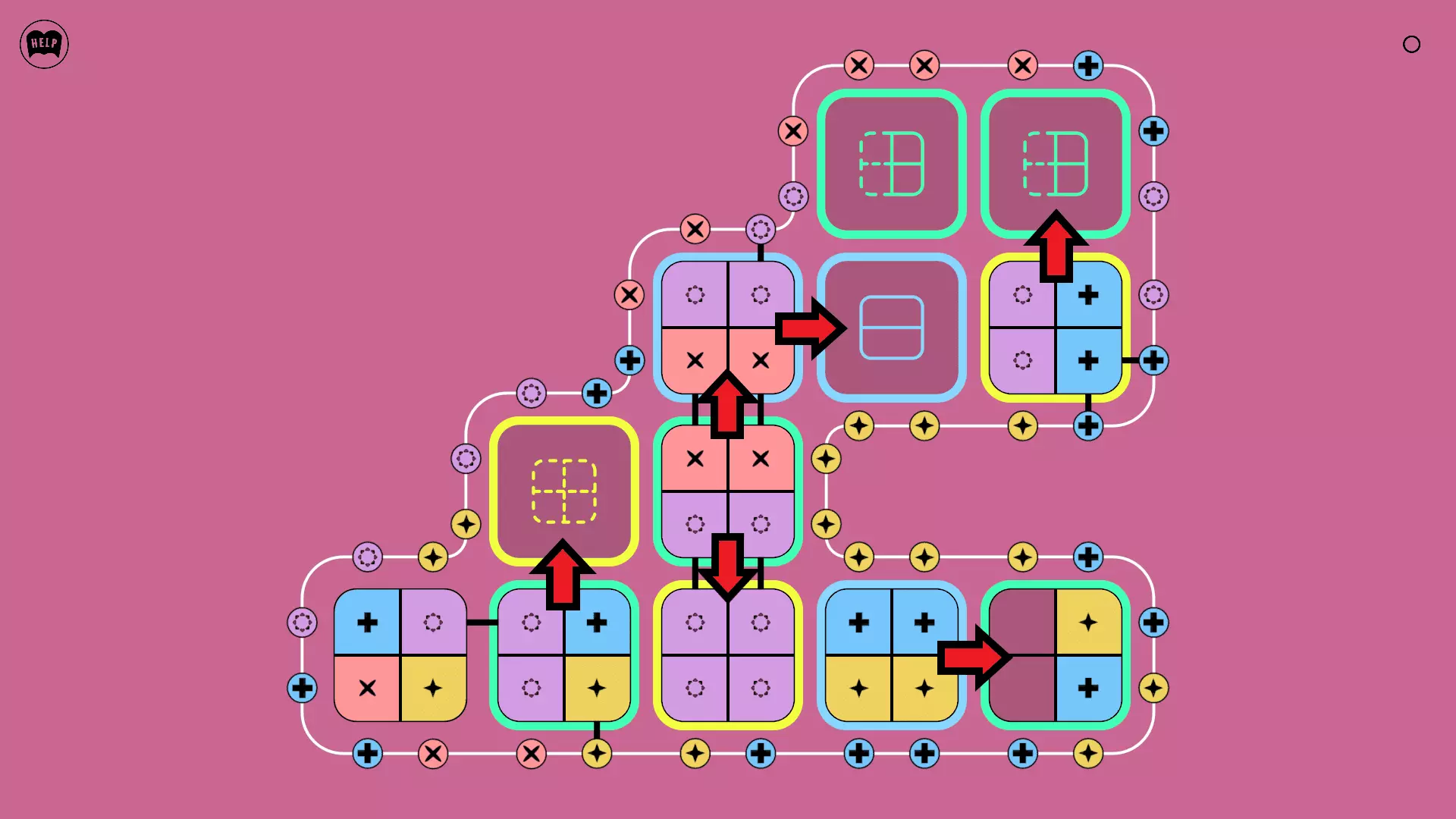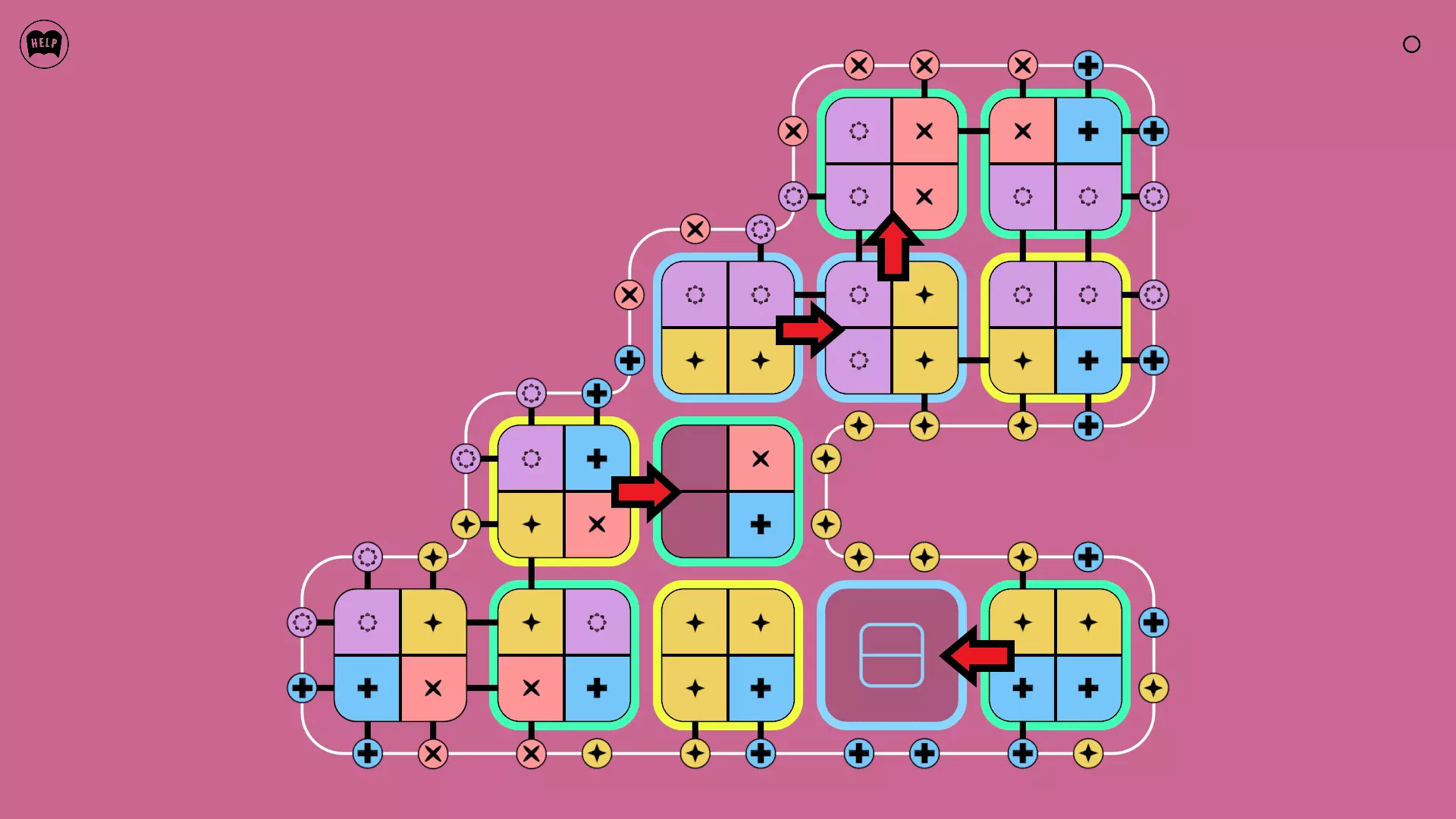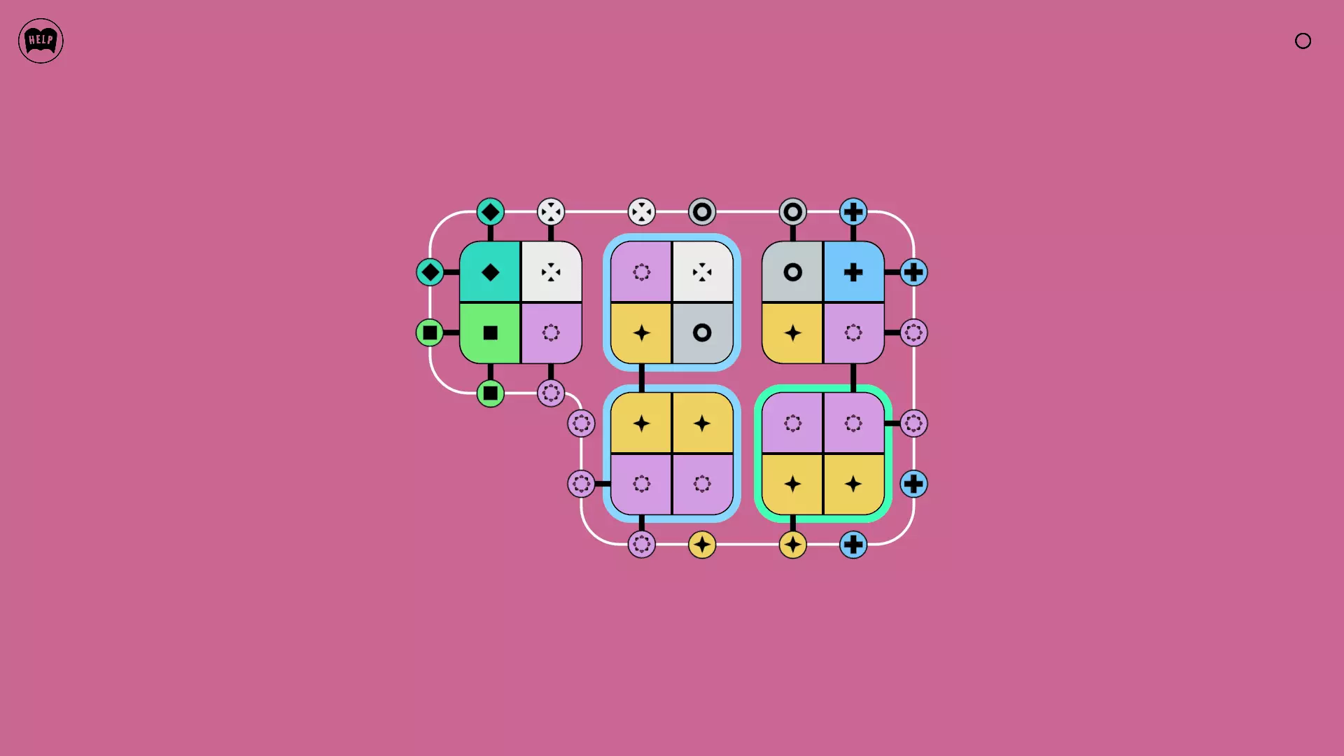 《Lines On Sides》关卡71-84图文攻略 简介 前18个关卡仅提供解决方案,因为解决这些关卡只需旋转或交换方块。 第19关及后续关卡包含步骤说明,解释如何分割、复制和转移方块。 由于Steam的限制,我不得不将本攻略分为两部分。 规则 旋转方块,直到方块上的图标与线条上或相邻方块上的符号匹配。当符号匹配时,它们之间会绘制一条线。 第7关引入了交换被绿线圈住的方块的功能。第14关新增了无法旋转或移动的方块,这类方块外有粗黑线环绕。 第19关新增了分裂平台,该平台外有蓝色线条环绕。此平台可将方块分裂为两个,或将两个方块合并为一个。