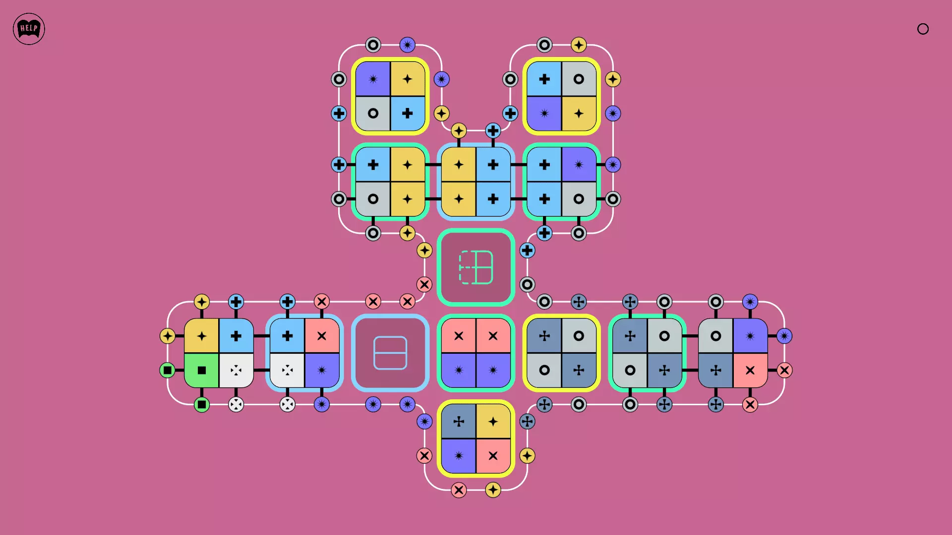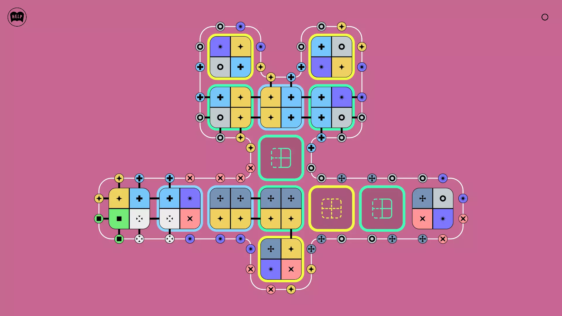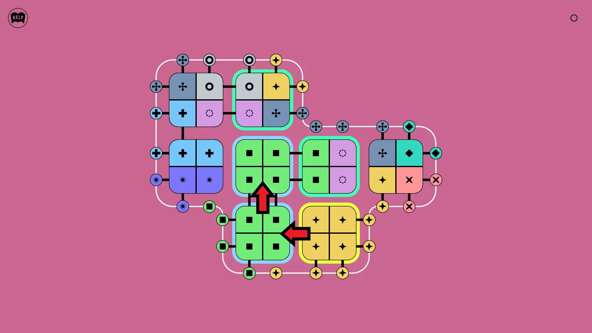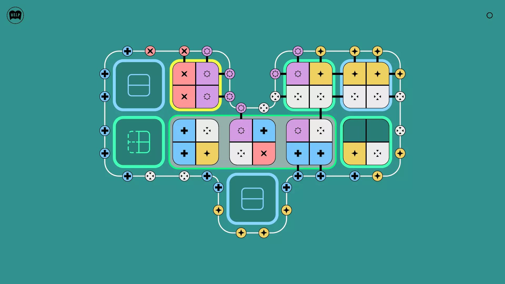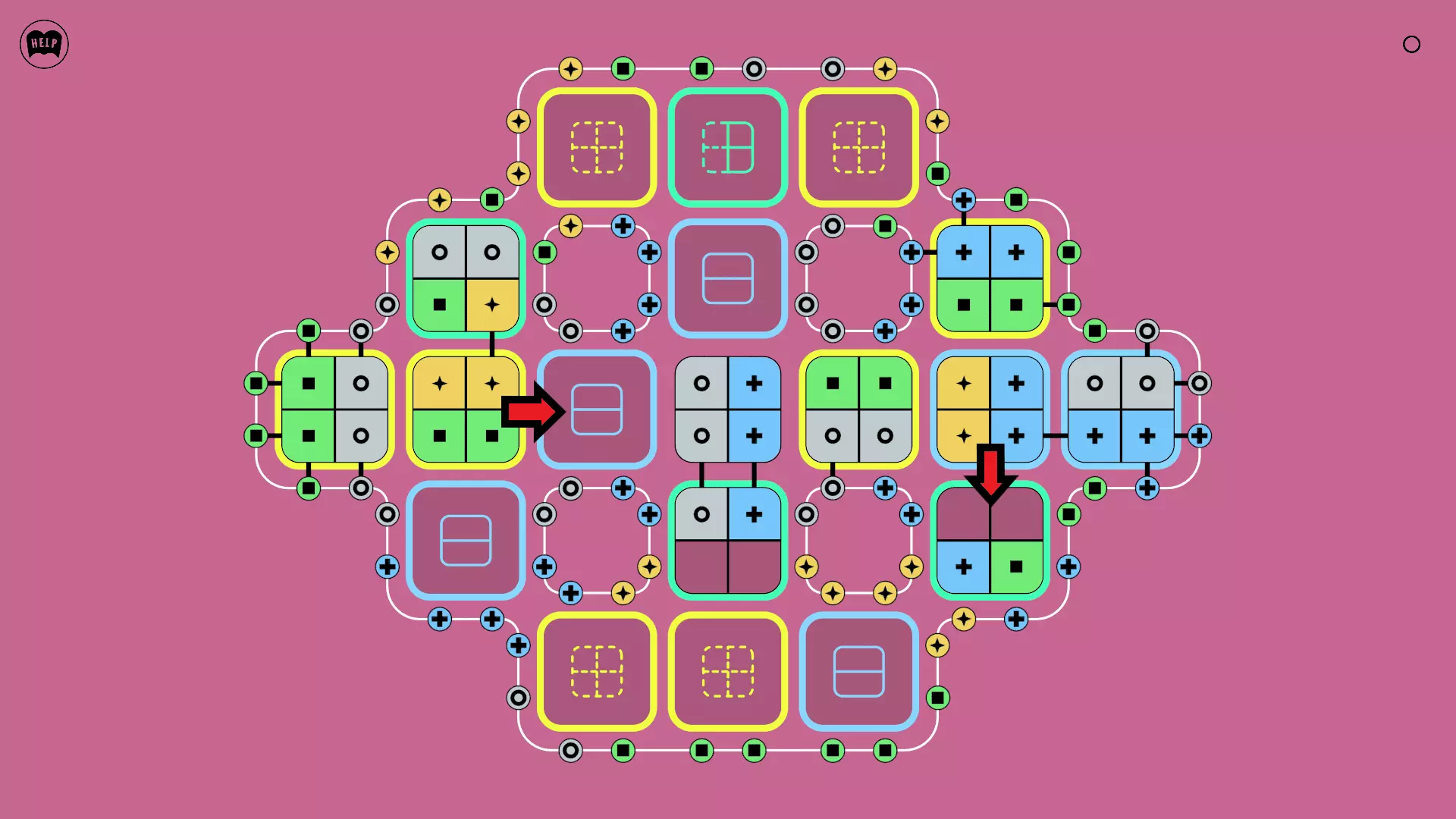 《Lines On Sides》关卡71-84图文攻略 简介 前18个关卡仅提供解决方案,因为解决这些关卡只需旋转或交换方块。 第19关及后续关卡包含步骤说明,解释如何分割、复制和转移方块。 由于Steam的限制,我不得不将本攻略分为两部分。 规则 旋转方块,直到方块上的图标与线条上或相邻方块上的符号匹配。当符号匹配时,它们之间会绘制一条线。 第7关引入了交换被绿线圈住的方块的功能。第14关新增了无法旋转或移动的方块,这类方块外有粗黑线环绕。 第19关新增了分裂平台,该平台外有蓝色线条环绕。此平台可将方块分裂为两个,或将两个方块合并为一个。