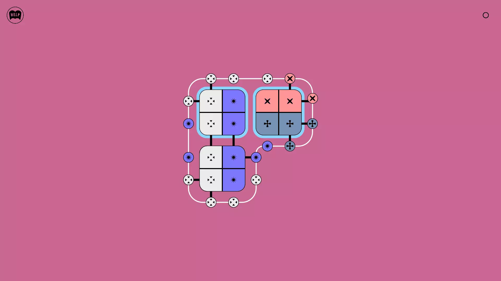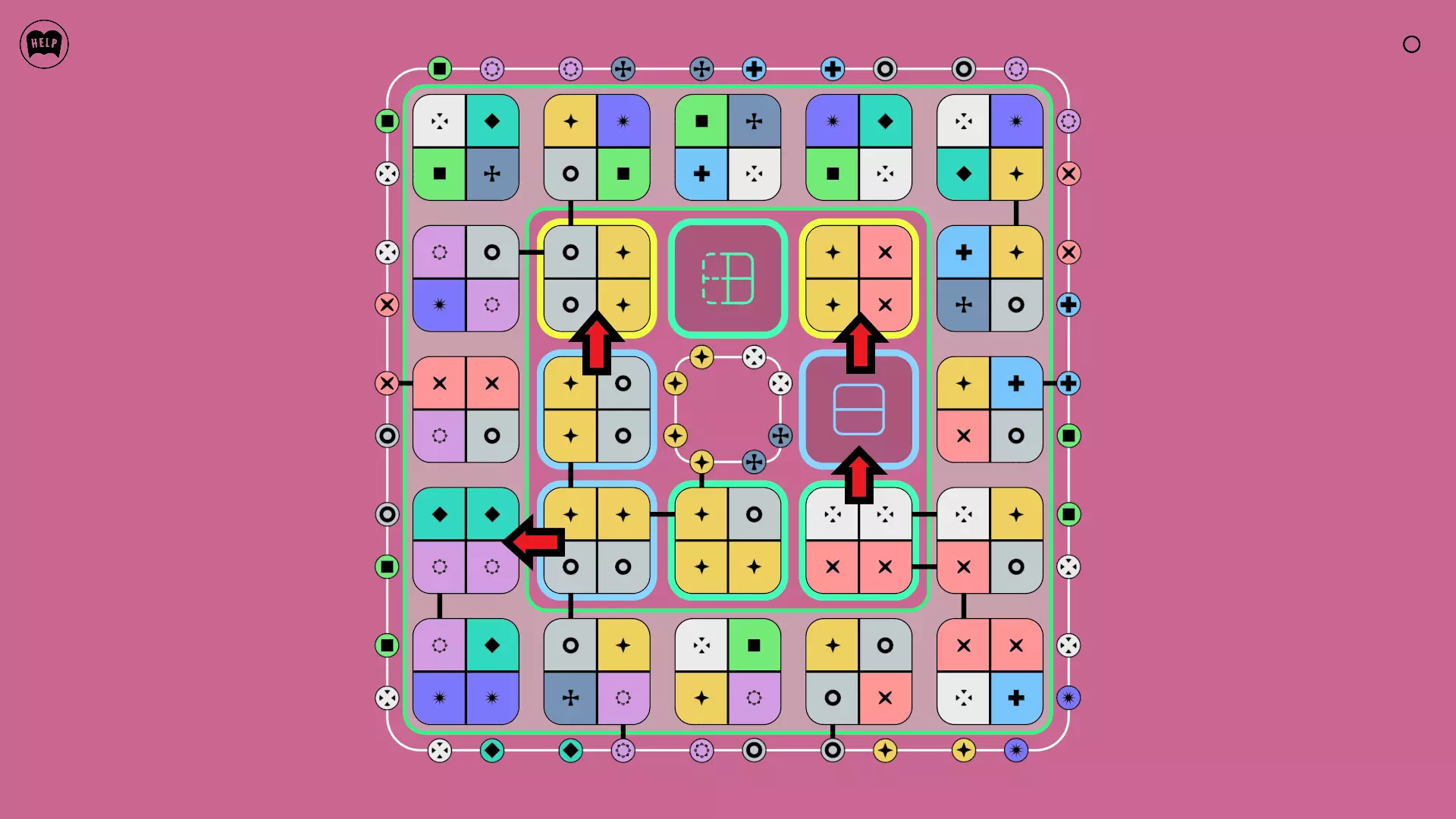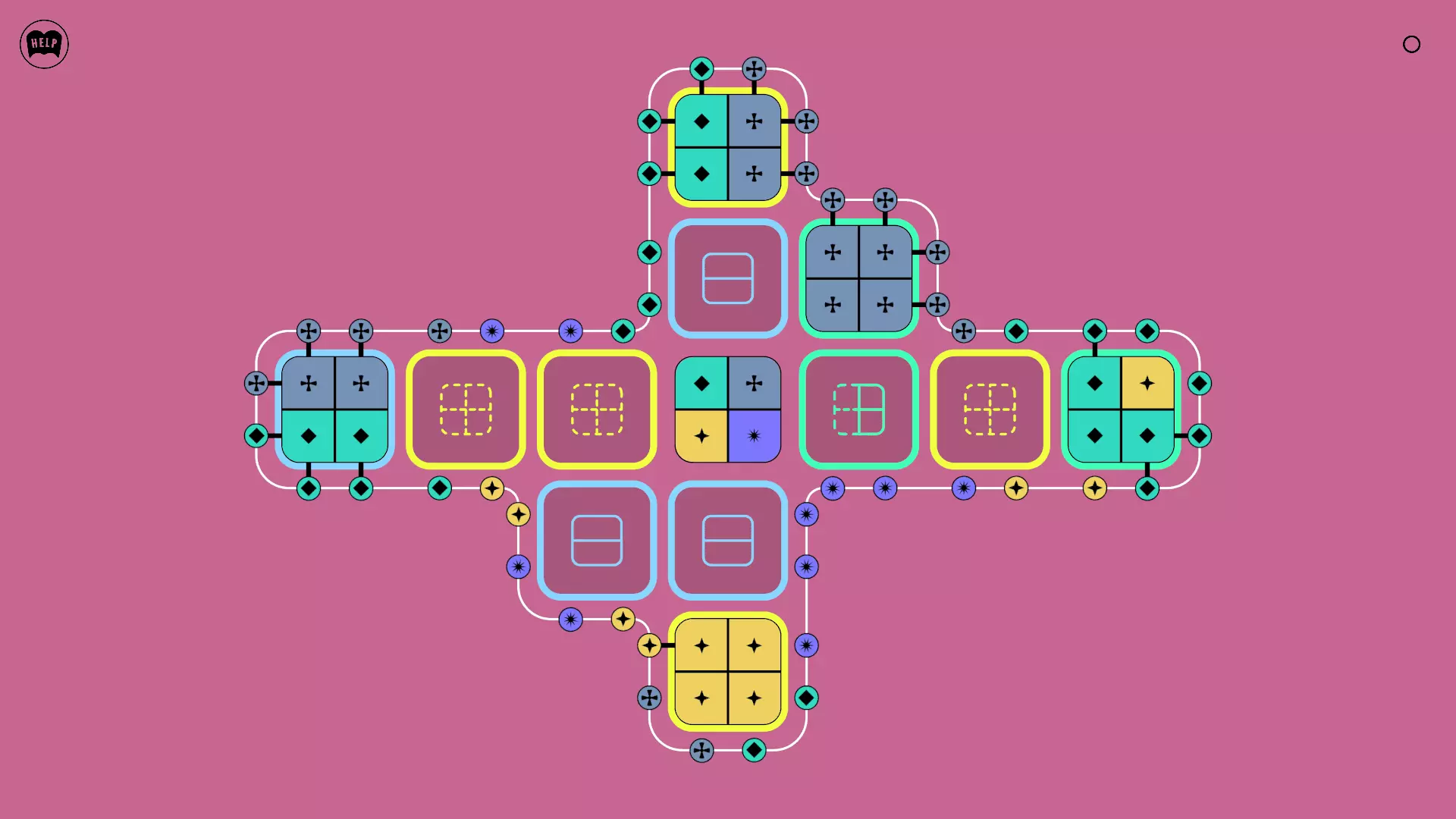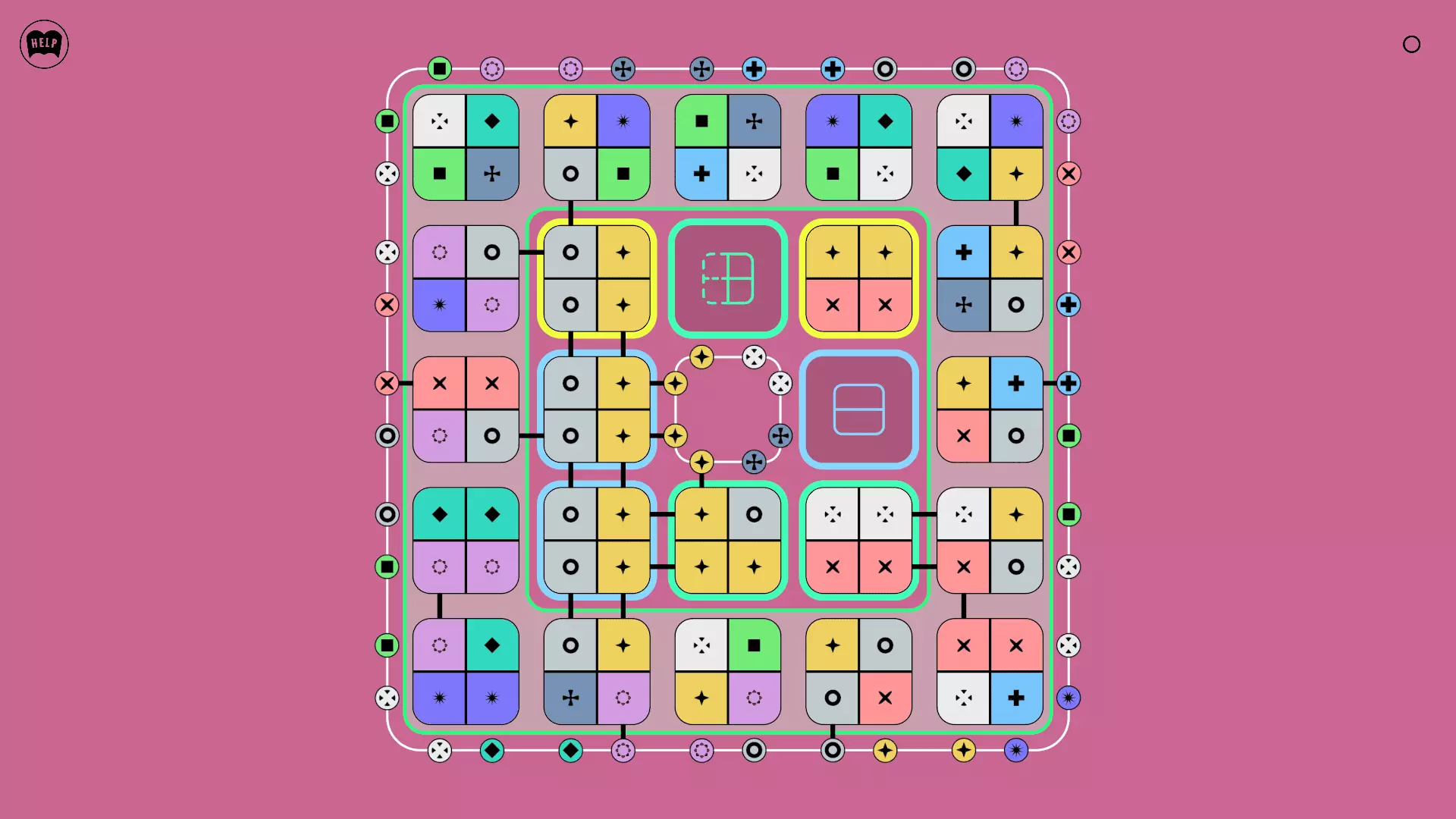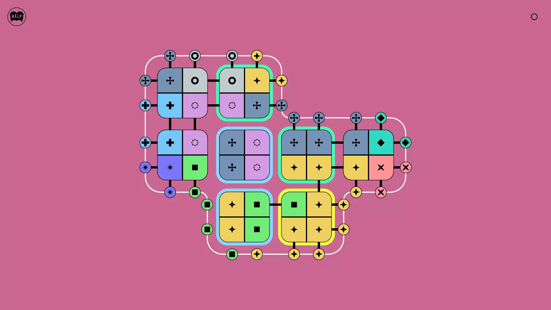 《Lines On Sides》关卡71-84图文攻略 简介 前18个关卡仅提供解决方案,因为解决这些关卡只需旋转或交换方块。 第19关及后续关卡包含步骤说明,解释如何分割、复制和转移方块。 由于Steam的限制,我不得不将本攻略分为两部分。 规则 旋转方块,直到方块上的图标与线条上或相邻方块上的符号匹配。当符号匹配时,它们之间会绘制一条线。 第7关引入了交换被绿线圈住的方块的功能。第14关新增了无法旋转或移动的方块,这类方块外有粗黑线环绕。 第19关新增了分裂平台,该平台外有蓝色线条环绕。此平台可将方块分裂为两个,或将两个方块合并为一个。