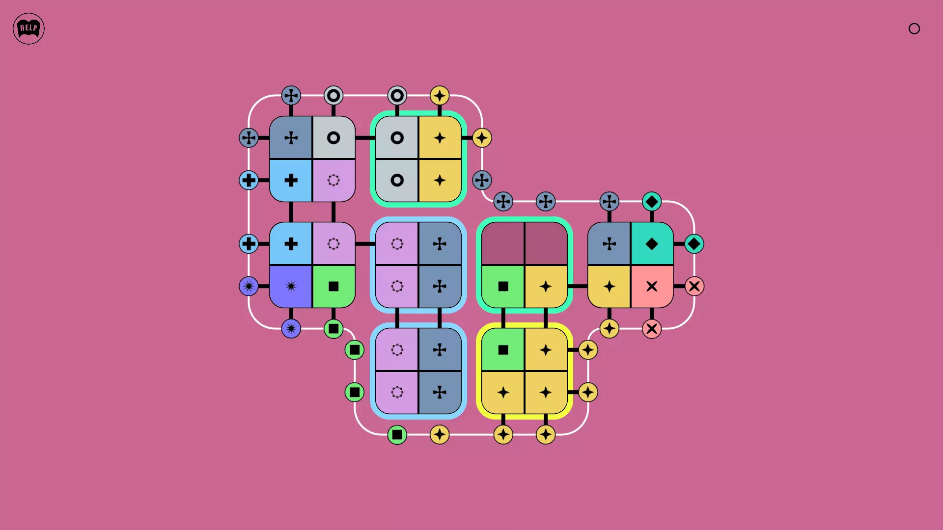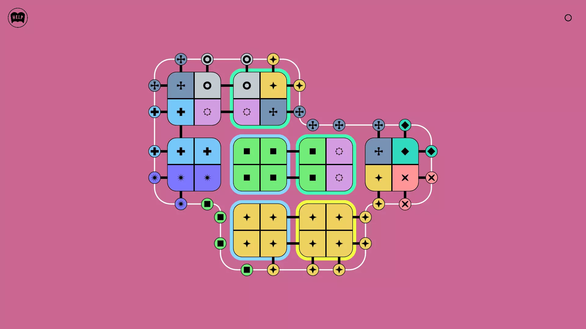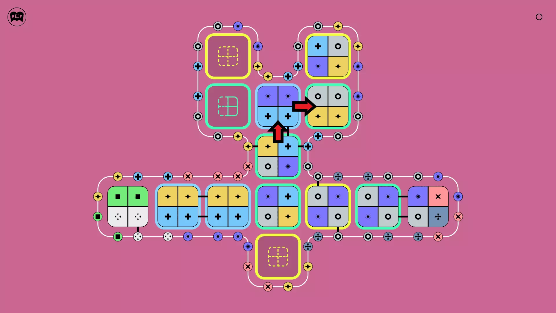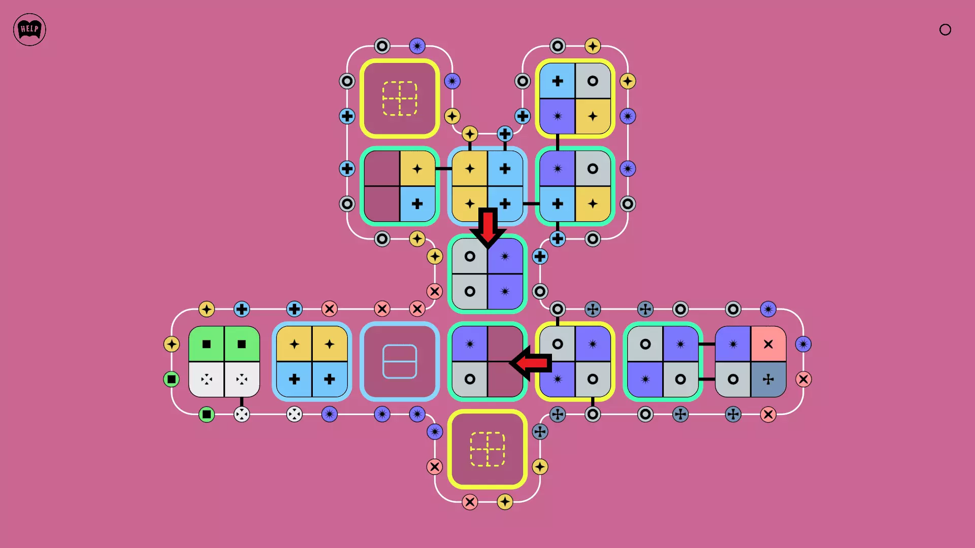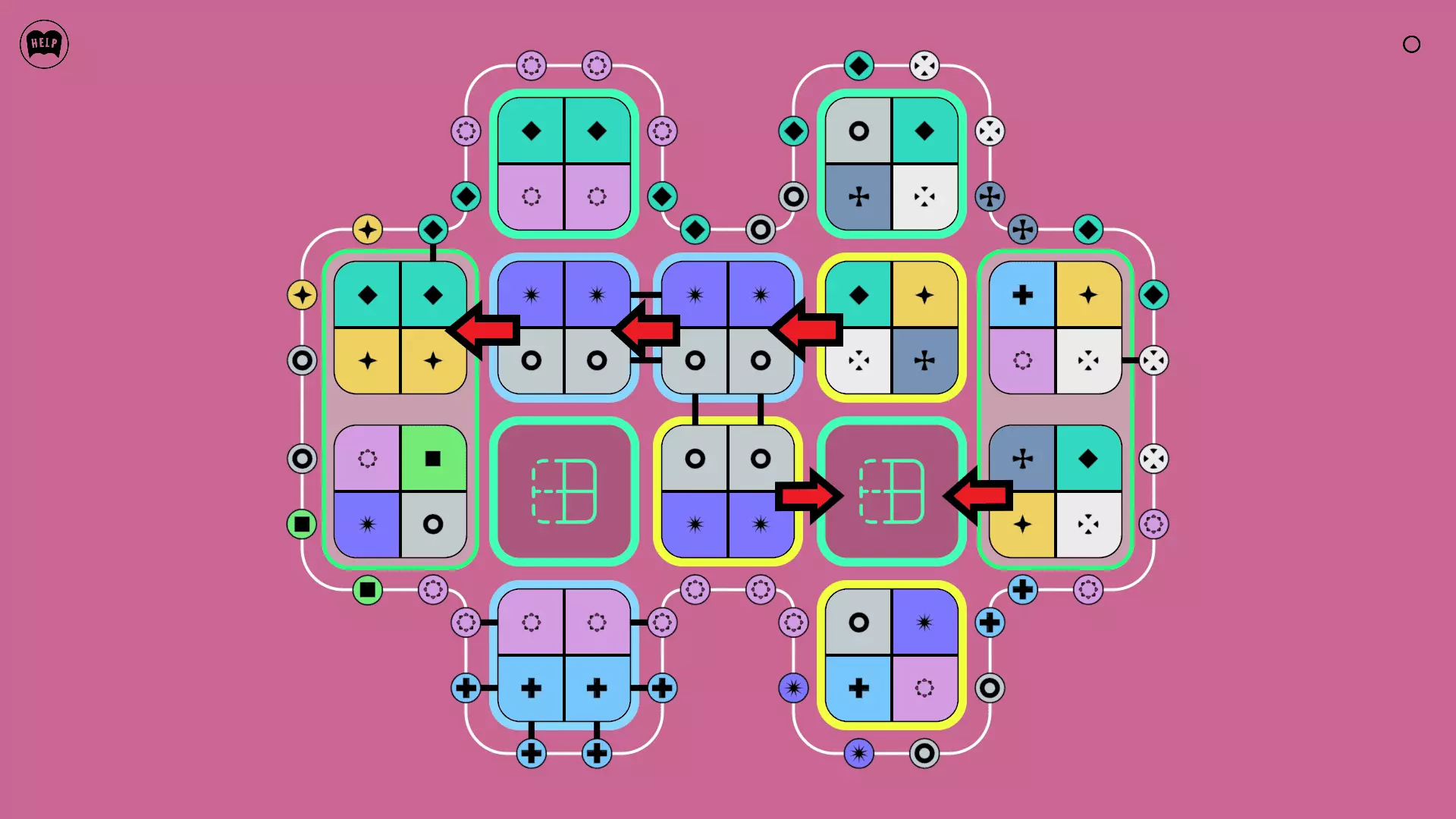 《Lines On Sides》关卡71-84图文攻略 简介 前18个关卡仅提供解决方案,因为解决这些关卡只需旋转或交换方块。 第19关及后续关卡包含步骤说明,解释如何分割、复制和转移方块。 由于Steam的限制,我不得不将本攻略分为两部分。 规则 旋转方块,直到方块上的图标与线条上或相邻方块上的符号匹配。当符号匹配时,它们之间会绘制一条线。 第7关引入了交换被绿线圈住的方块的功能。第14关新增了无法旋转或移动的方块,这类方块外有粗黑线环绕。 第19关新增了分裂平台,该平台外有蓝色线条环绕。此平台可将方块分裂为两个,或将两个方块合并为一个。