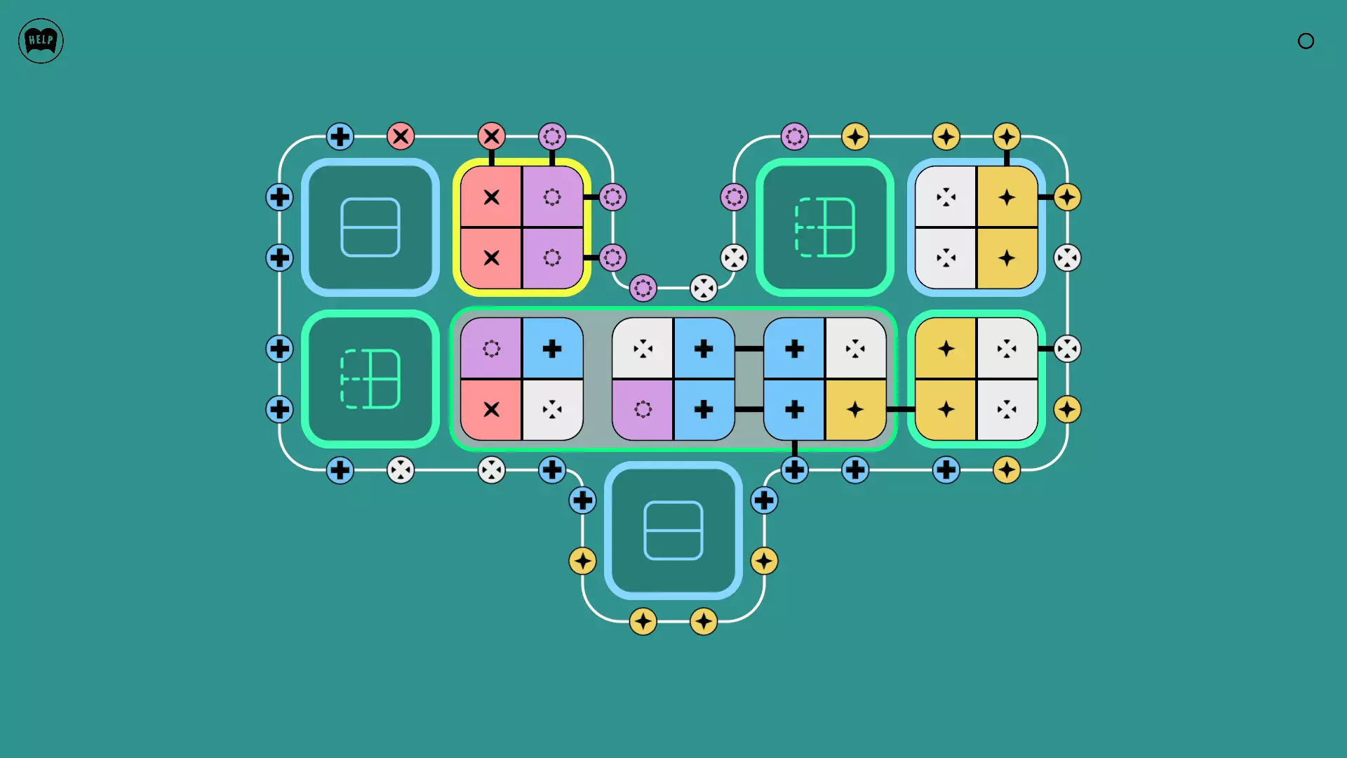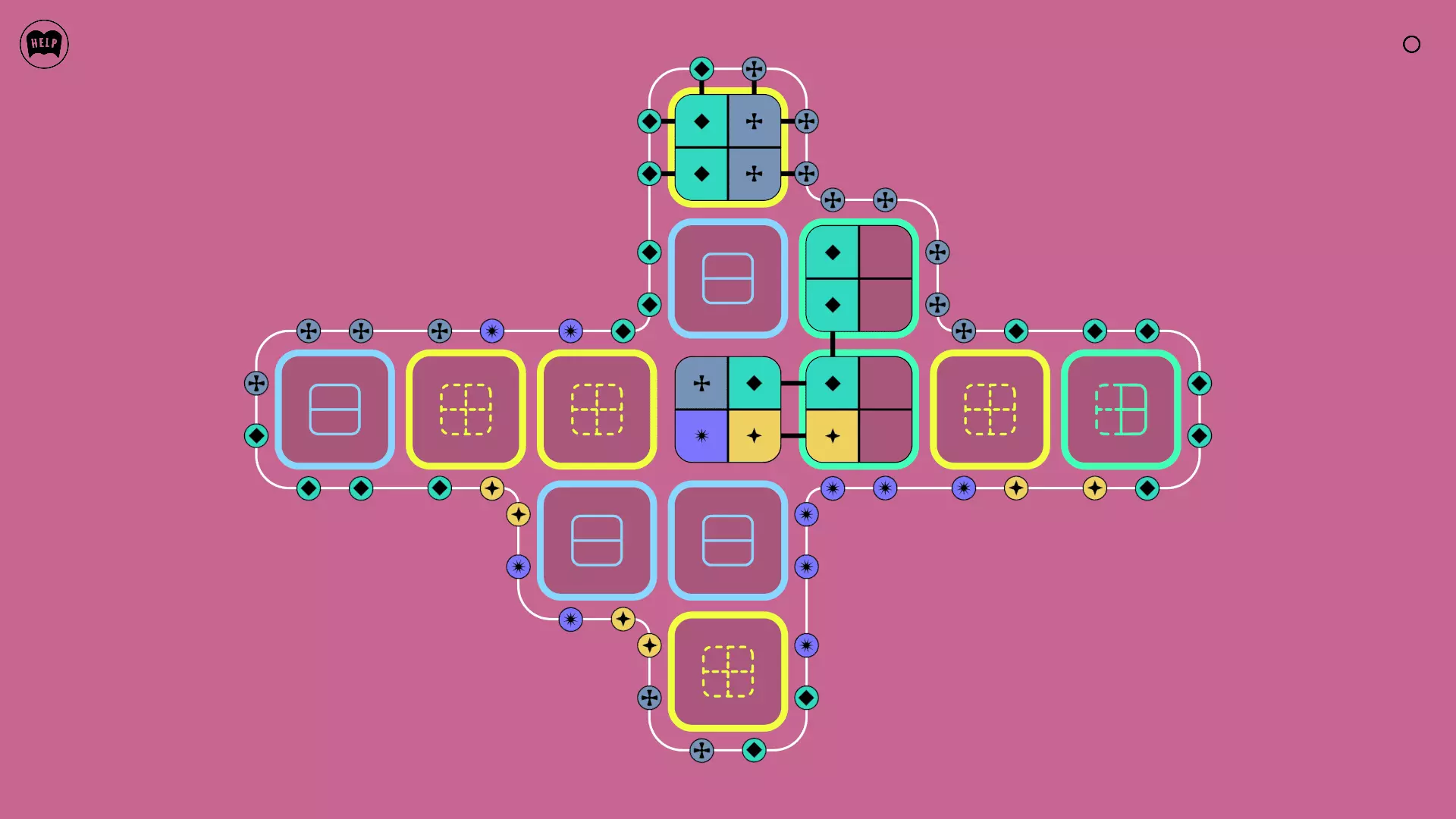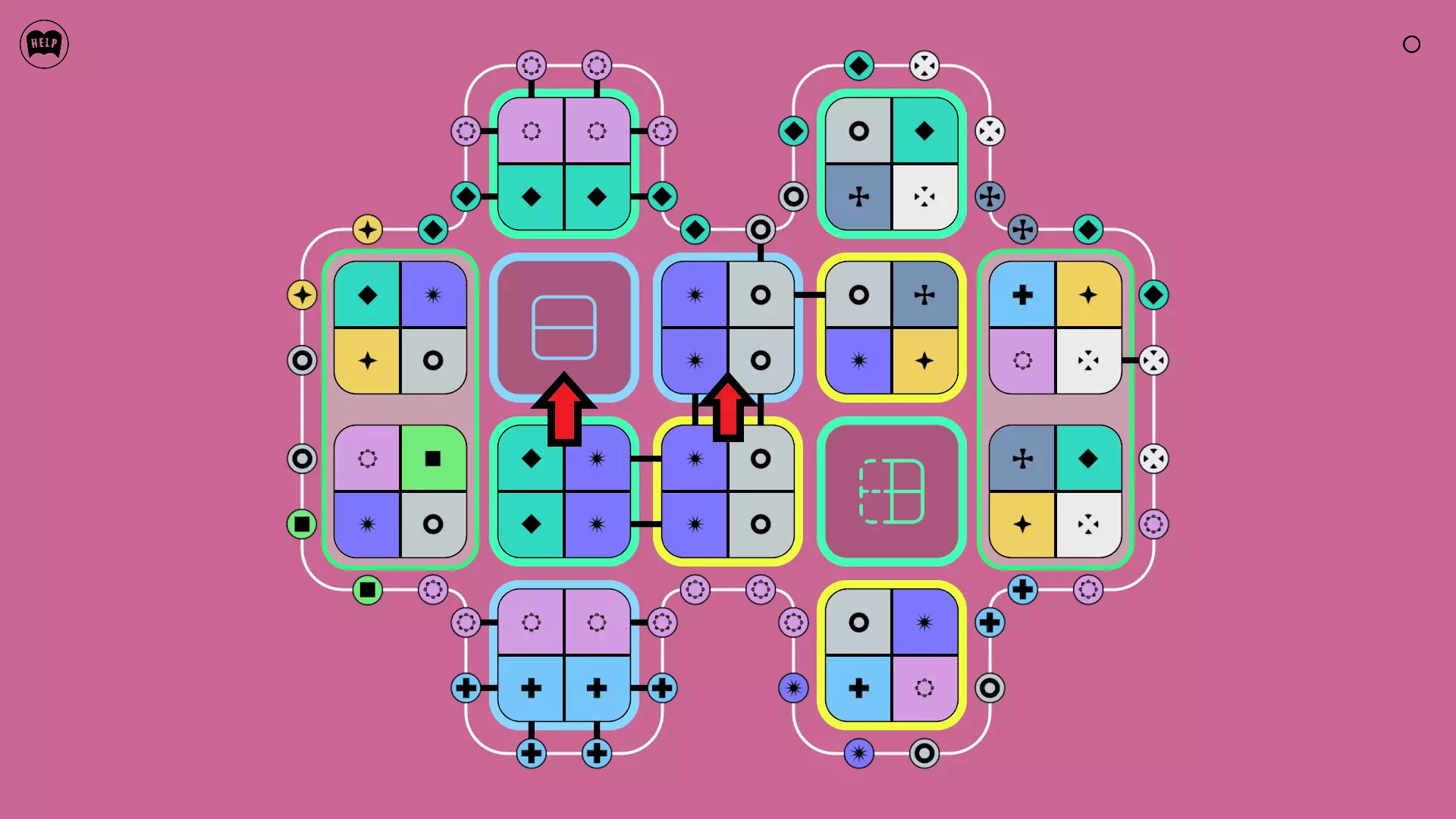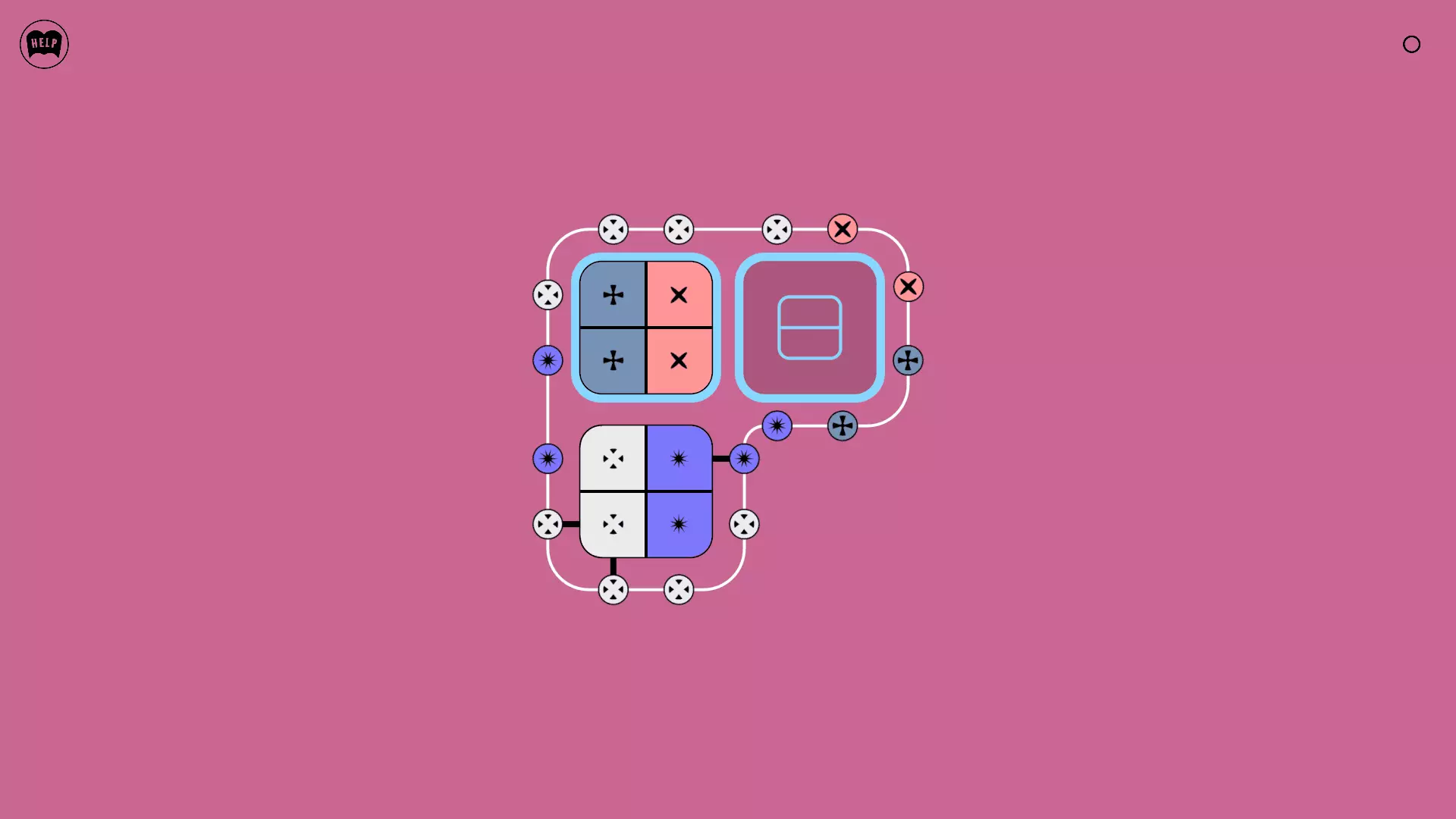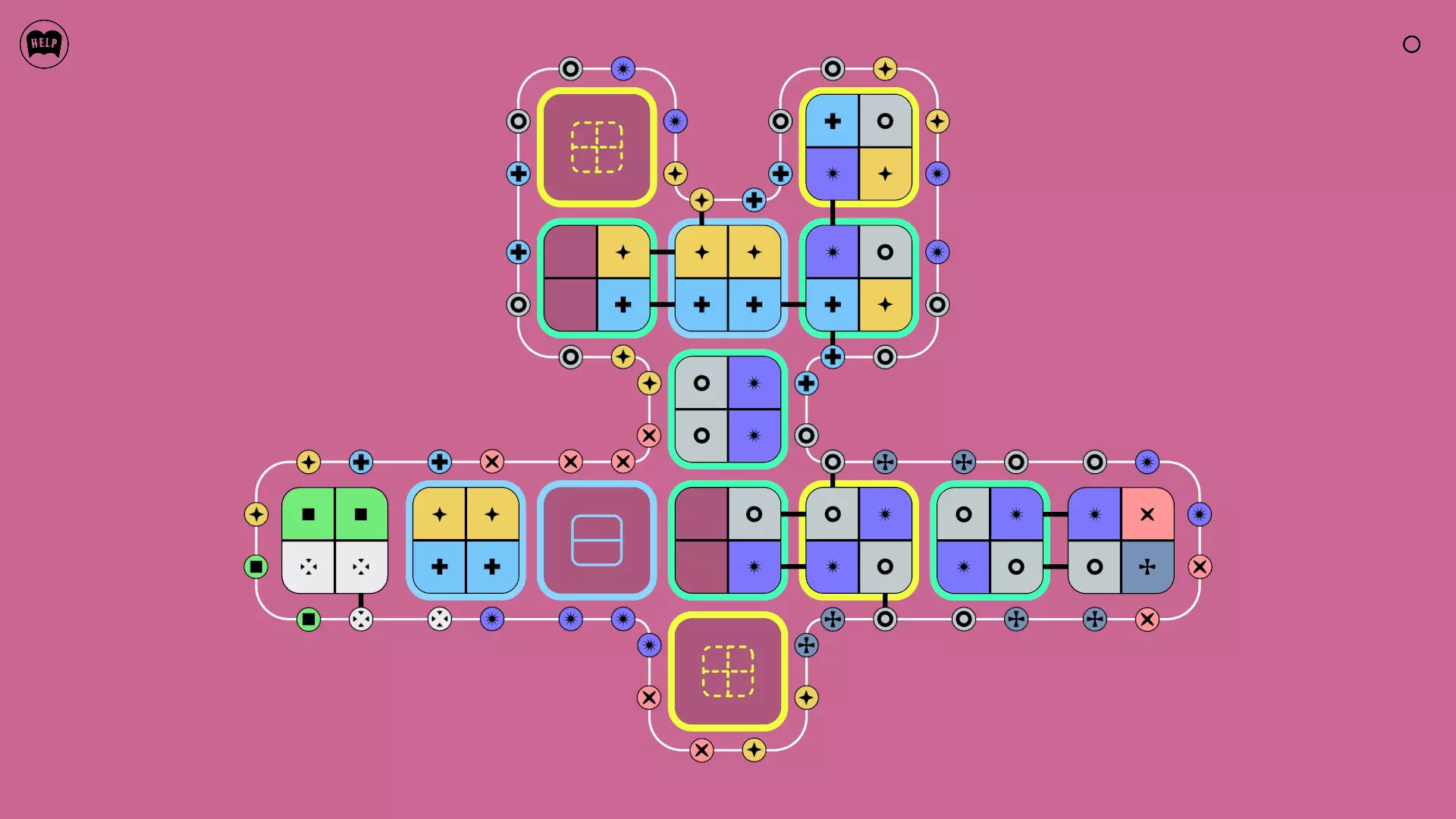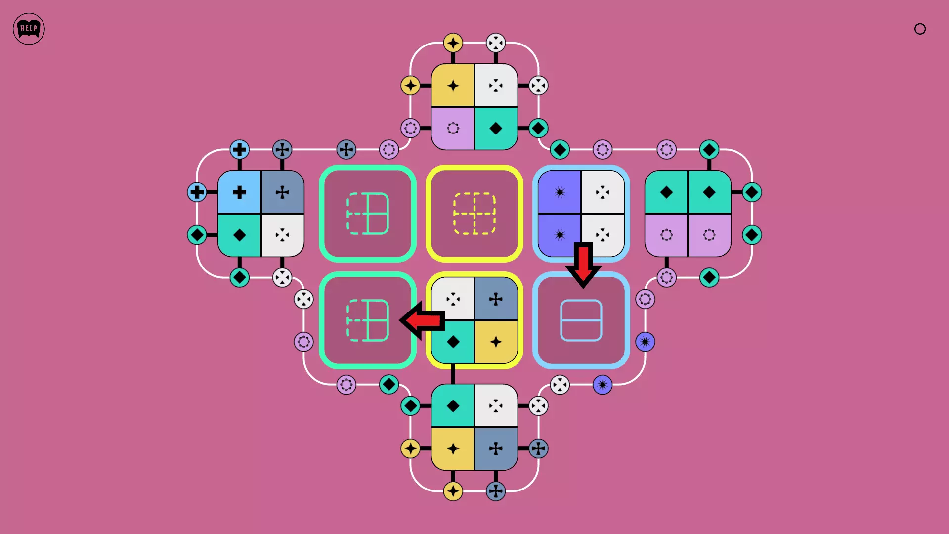 《Lines On Sides》关卡71-84图文攻略 简介 前18个关卡仅提供解决方案,因为解决这些关卡只需旋转或交换方块。 第19关及后续关卡包含步骤说明,解释如何分割、复制和转移方块。 由于Steam的限制,我不得不将本攻略分为两部分。 规则 旋转方块,直到方块上的图标与线条上或相邻方块上的符号匹配。当符号匹配时,它们之间会绘制一条线。 第7关引入了交换被绿线圈住的方块的功能。第14关新增了无法旋转或移动的方块,这类方块外有粗黑线环绕。 第19关新增了分裂平台,该平台外有蓝色线条环绕。此平台可将方块分裂为两个,或将两个方块合并为一个。