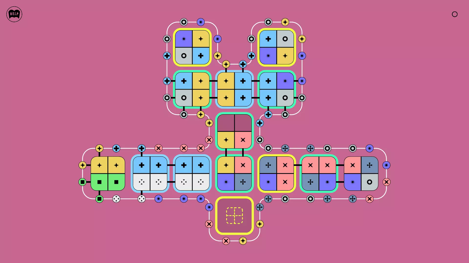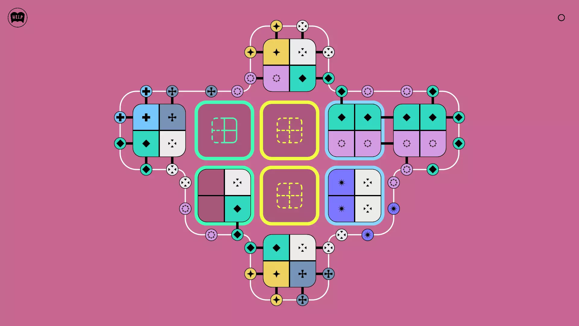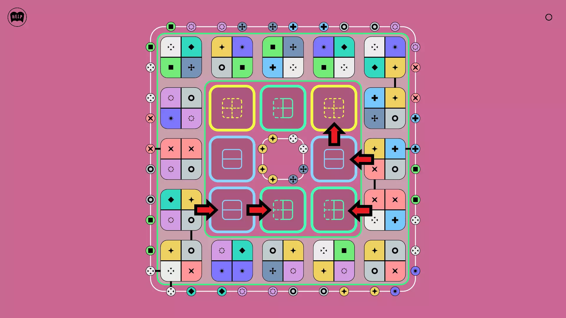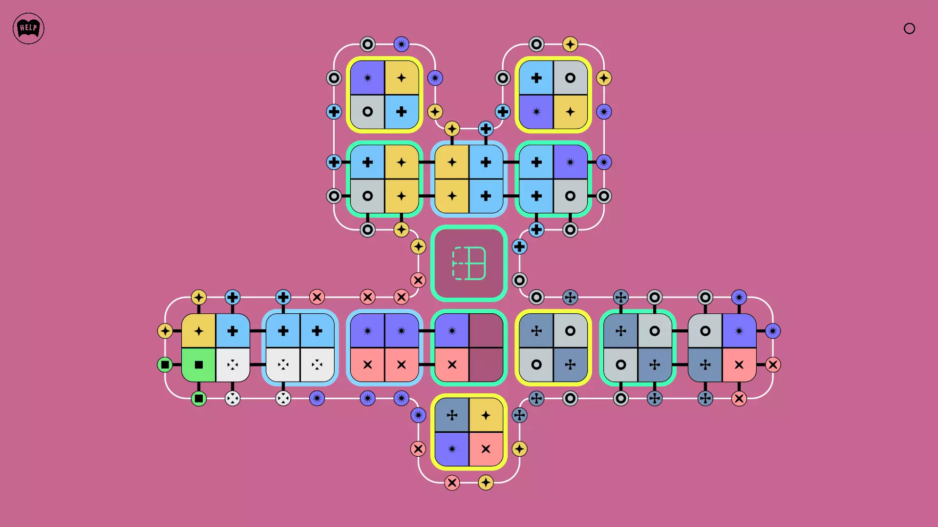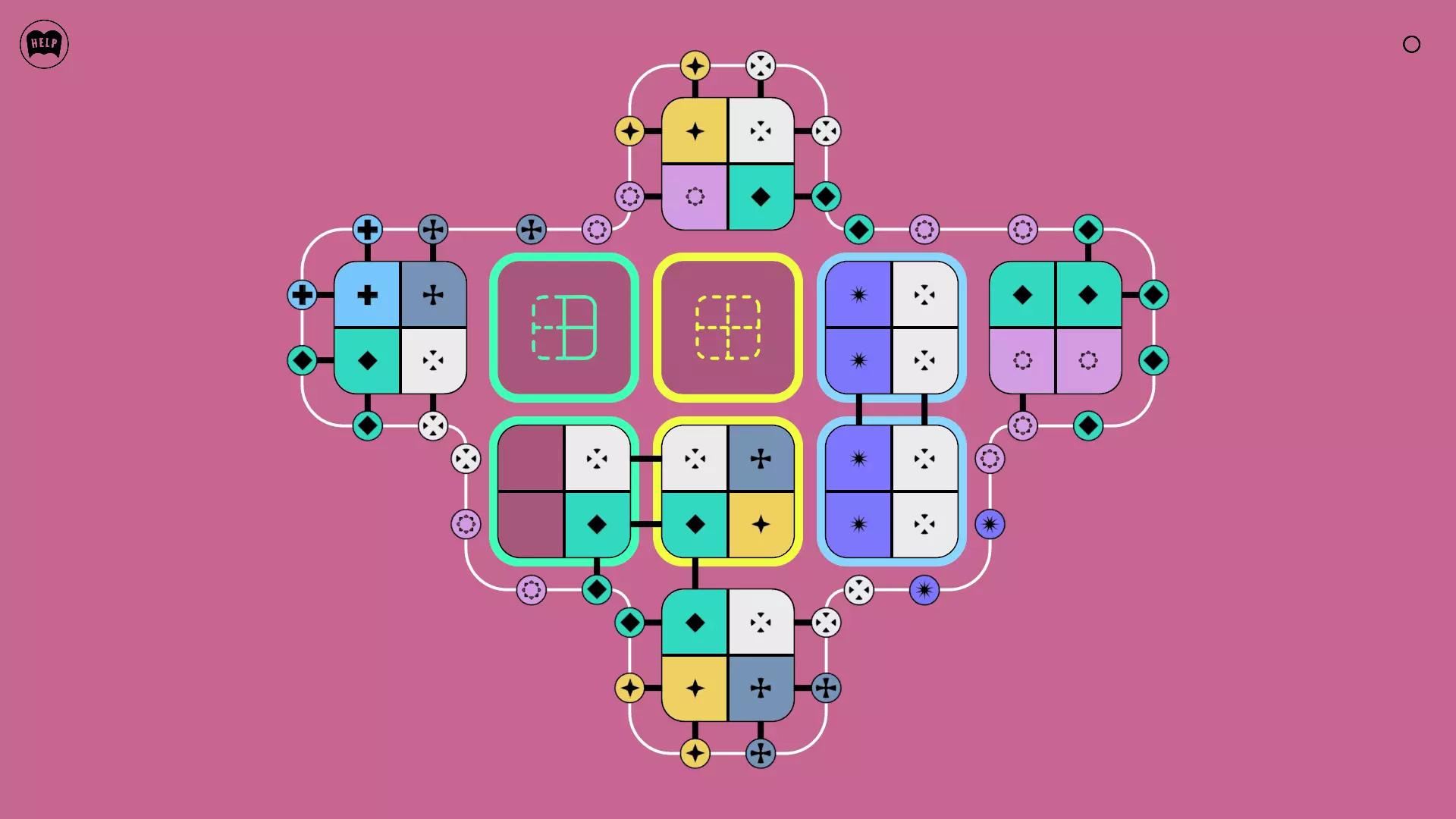 《Lines On Sides》关卡71-84图文攻略 简介 前18个关卡仅提供解决方案,因为解决这些关卡只需旋转或交换方块。 第19关及后续关卡包含步骤说明,解释如何分割、复制和转移方块。 由于Steam的限制,我不得不将本攻略分为两部分。 规则 旋转方块,直到方块上的图标与线条上或相邻方块上的符号匹配。当符号匹配时,它们之间会绘制一条线。 第7关引入了交换被绿线圈住的方块的功能。第14关新增了无法旋转或移动的方块,这类方块外有粗黑线环绕。 第19关新增了分裂平台,该平台外有蓝色线条环绕。此平台可将方块分裂为两个,或将两个方块合并为一个。