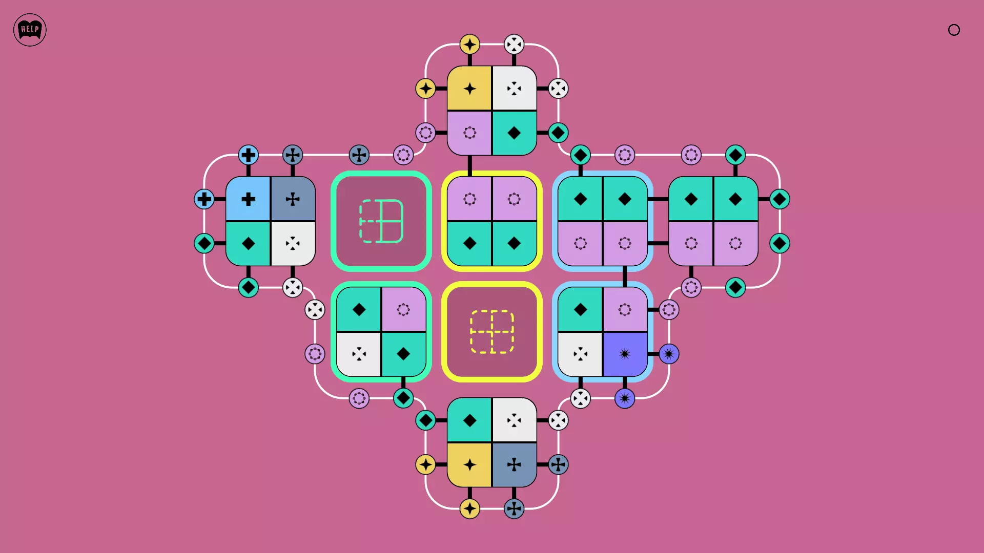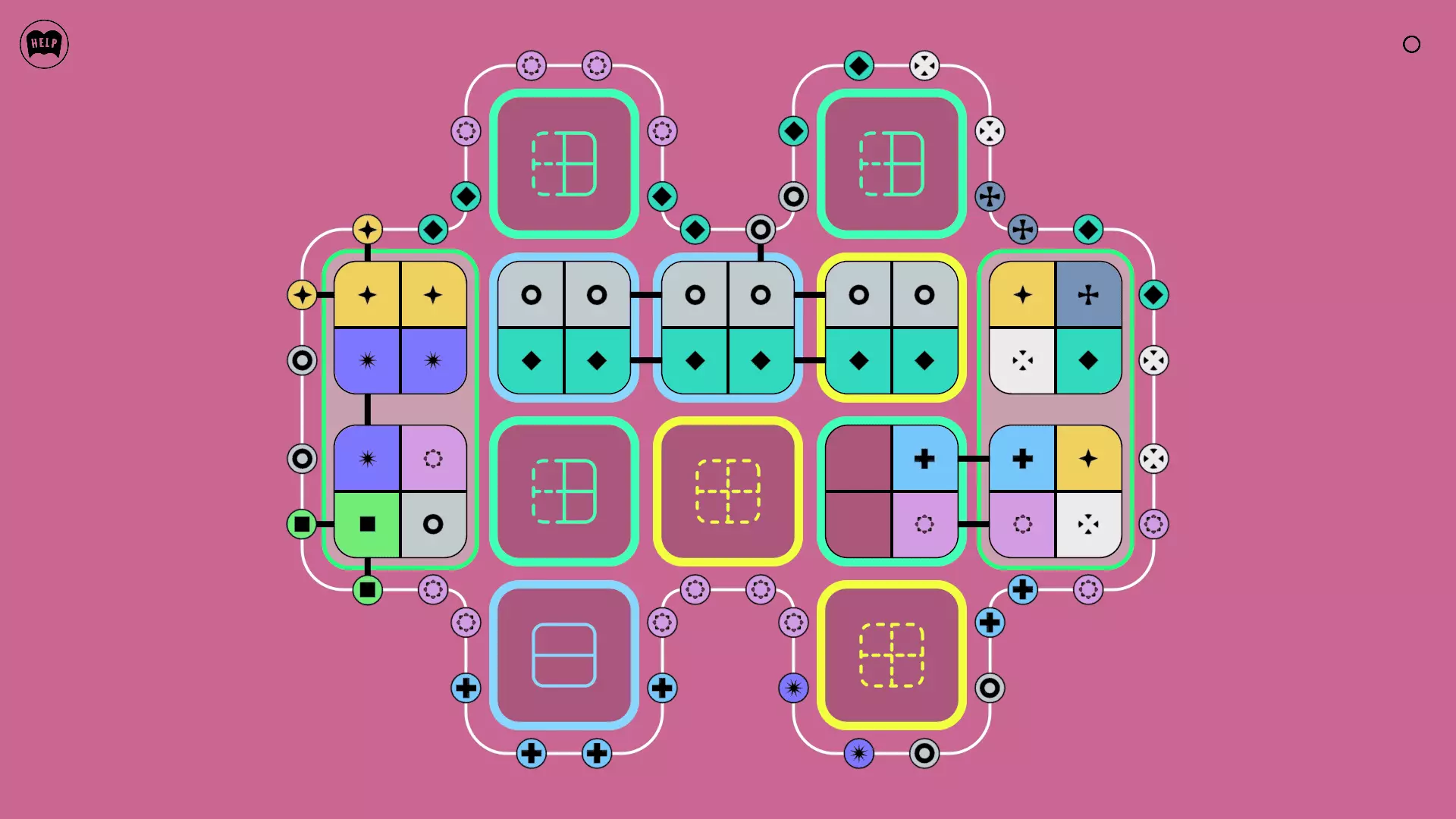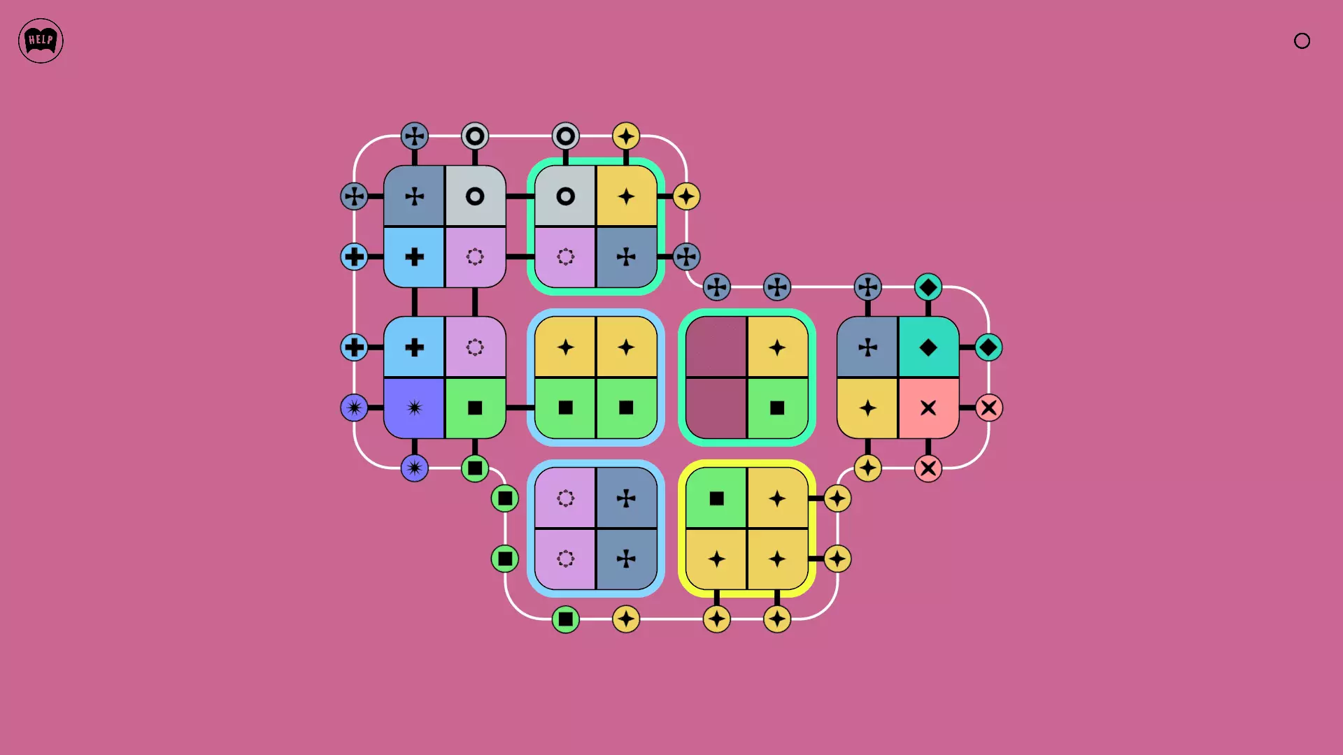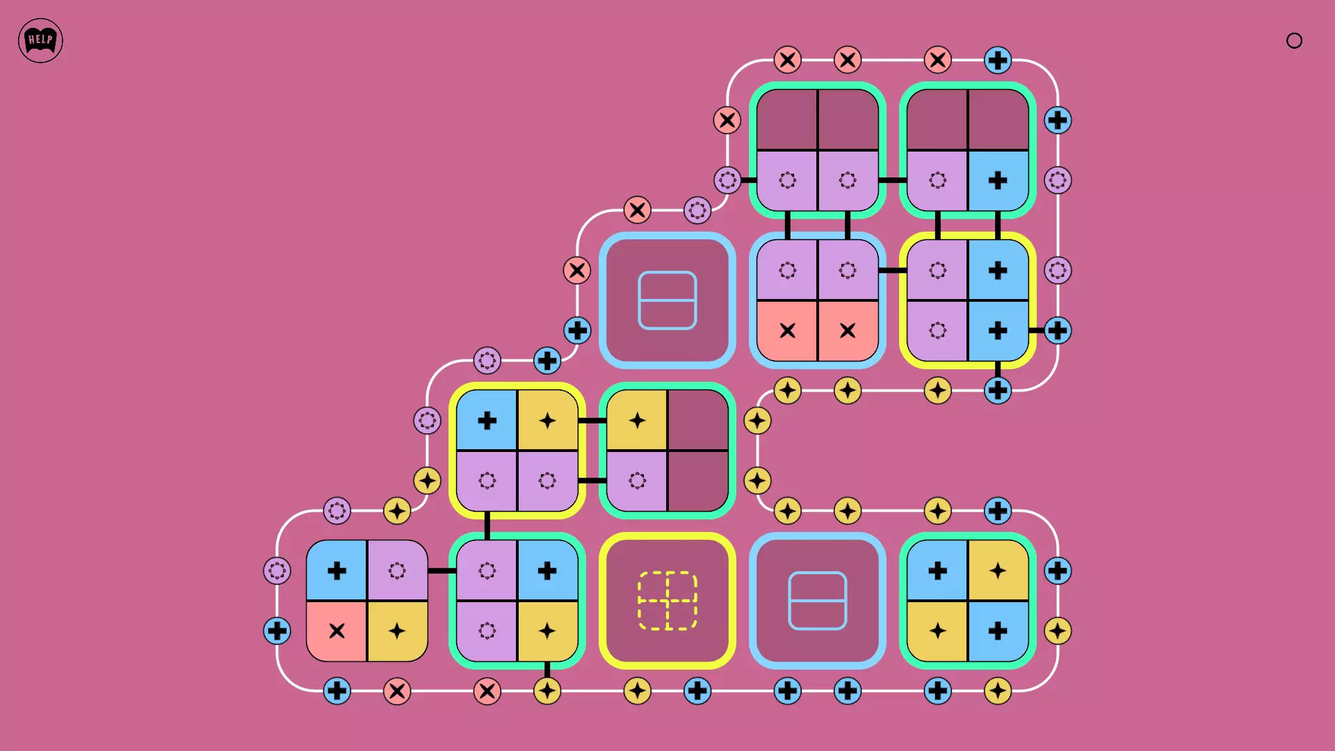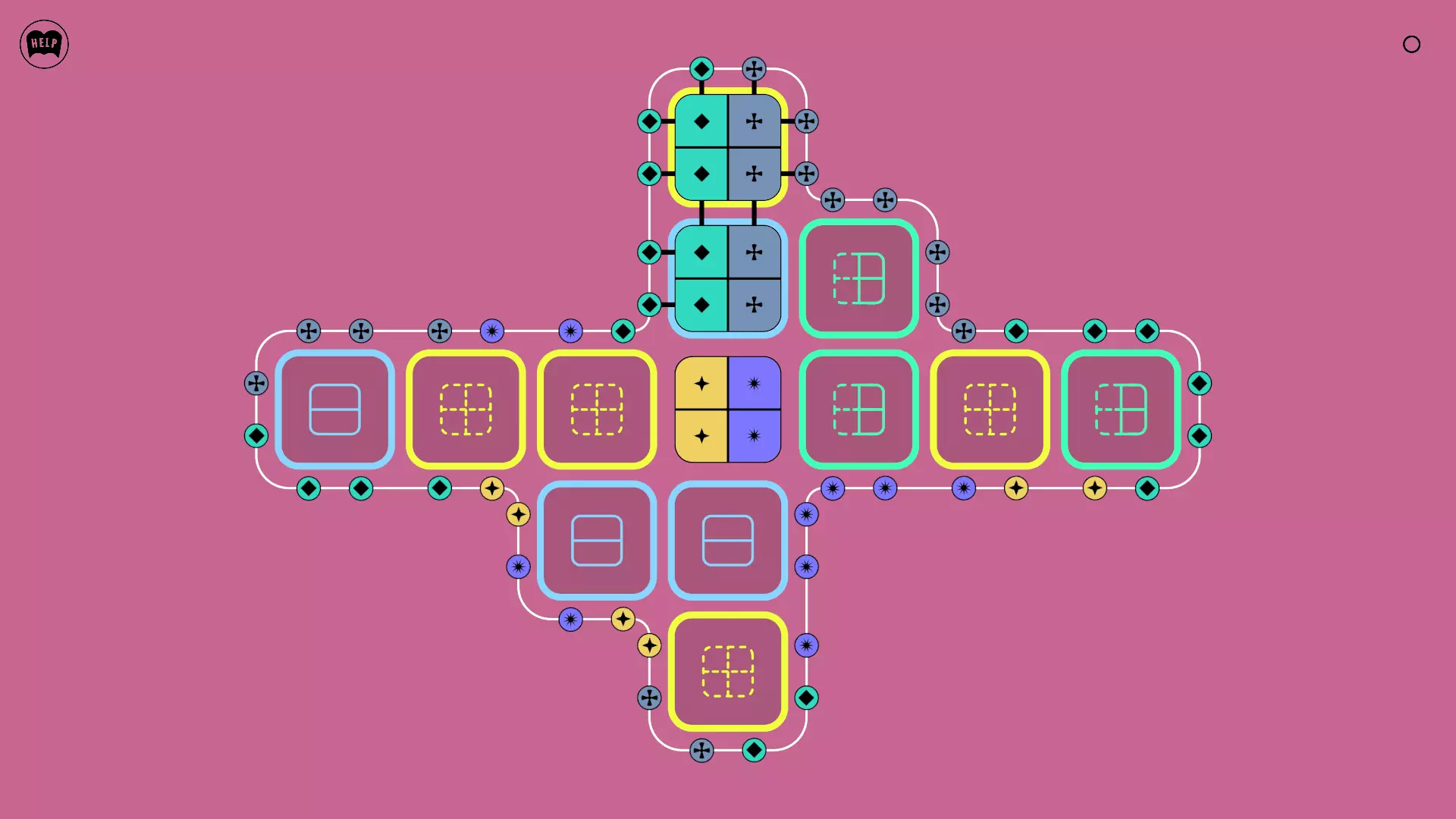 《Lines On Sides》关卡71-84图文攻略 简介 前18个关卡仅提供解决方案,因为解决这些关卡只需旋转或交换方块。 第19关及后续关卡包含步骤说明,解释如何分割、复制和转移方块。 由于Steam的限制,我不得不将本攻略分为两部分。 规则 旋转方块,直到方块上的图标与线条上或相邻方块上的符号匹配。当符号匹配时,它们之间会绘制一条线。 第7关引入了交换被绿线圈住的方块的功能。第14关新增了无法旋转或移动的方块,这类方块外有粗黑线环绕。 第19关新增了分裂平台,该平台外有蓝色线条环绕。此平台可将方块分裂为两个,或将两个方块合并为一个。