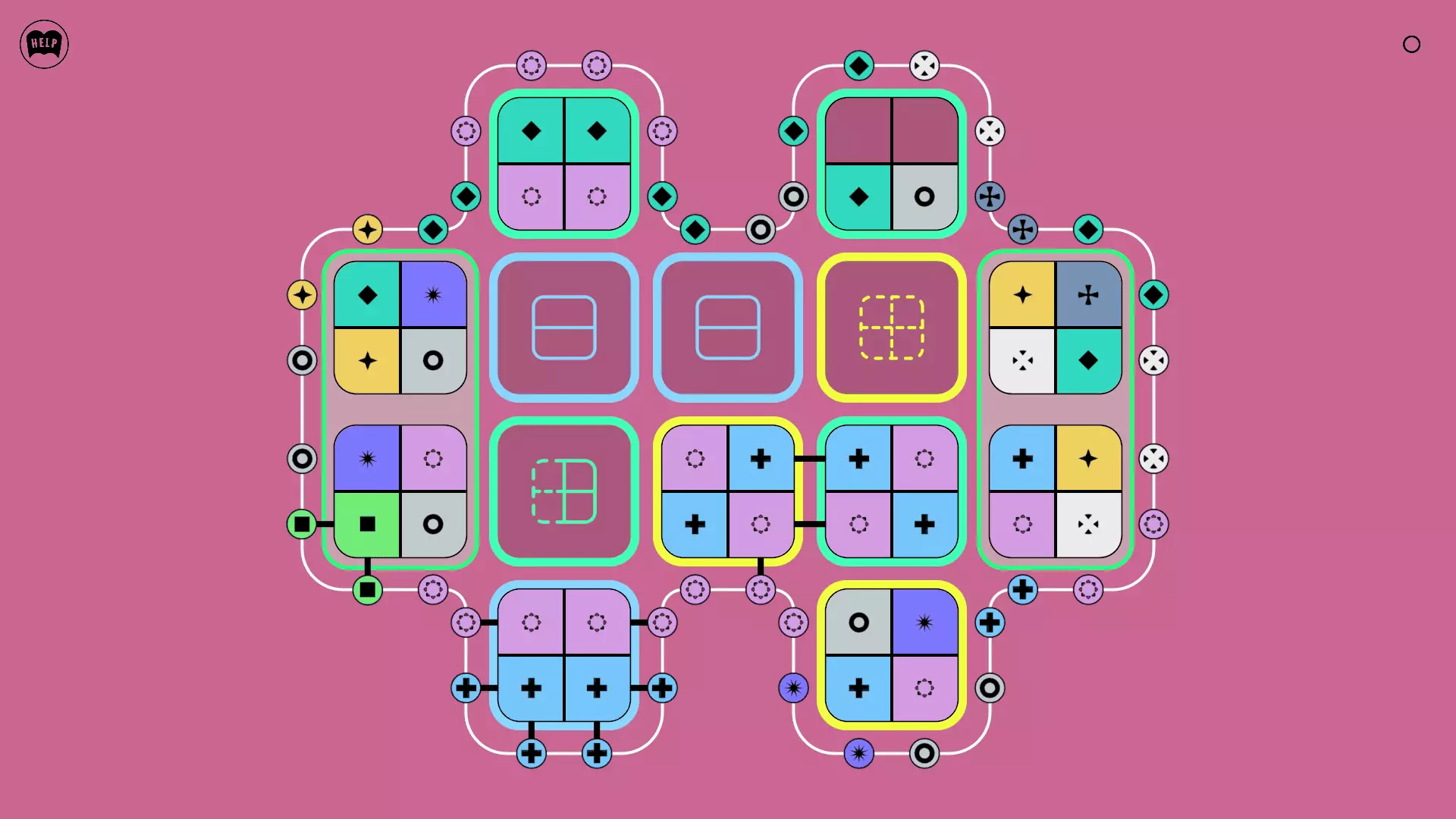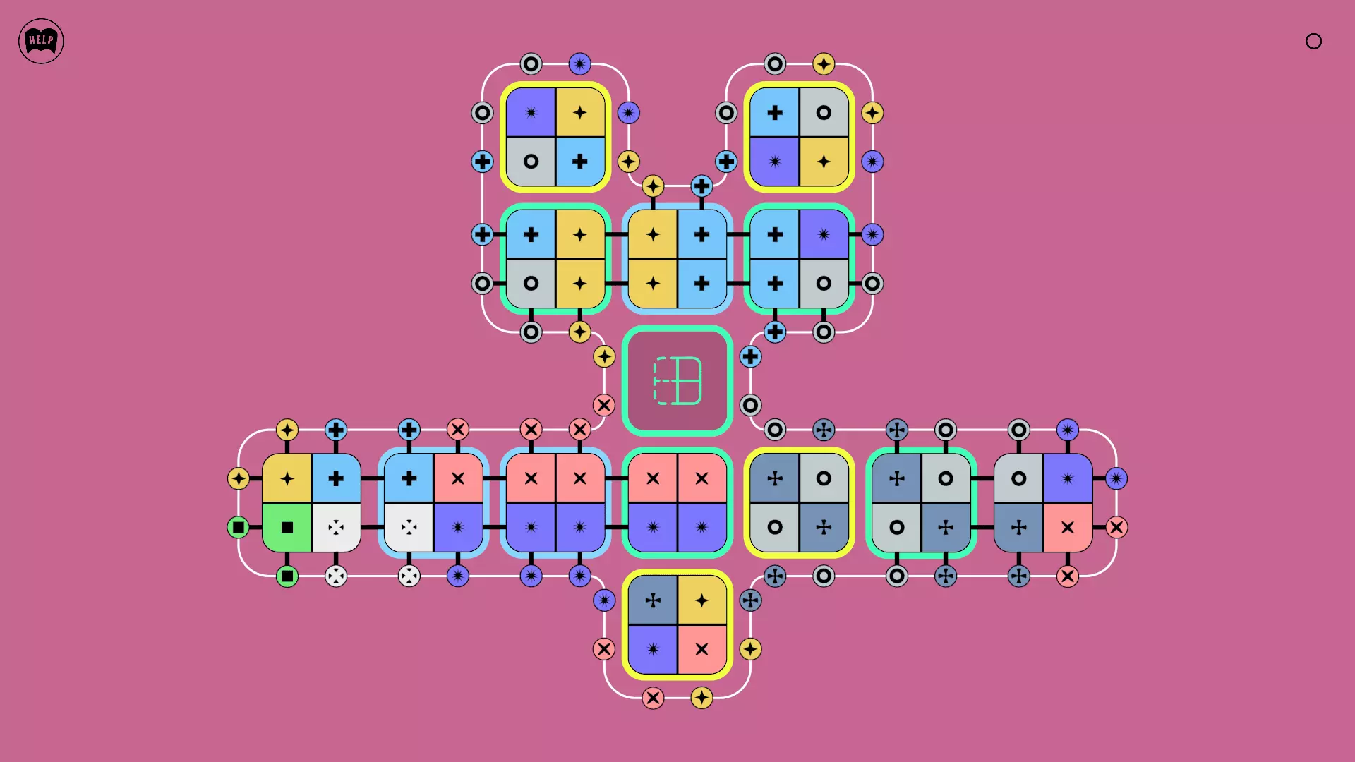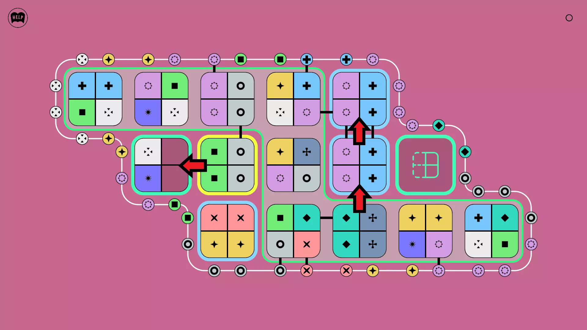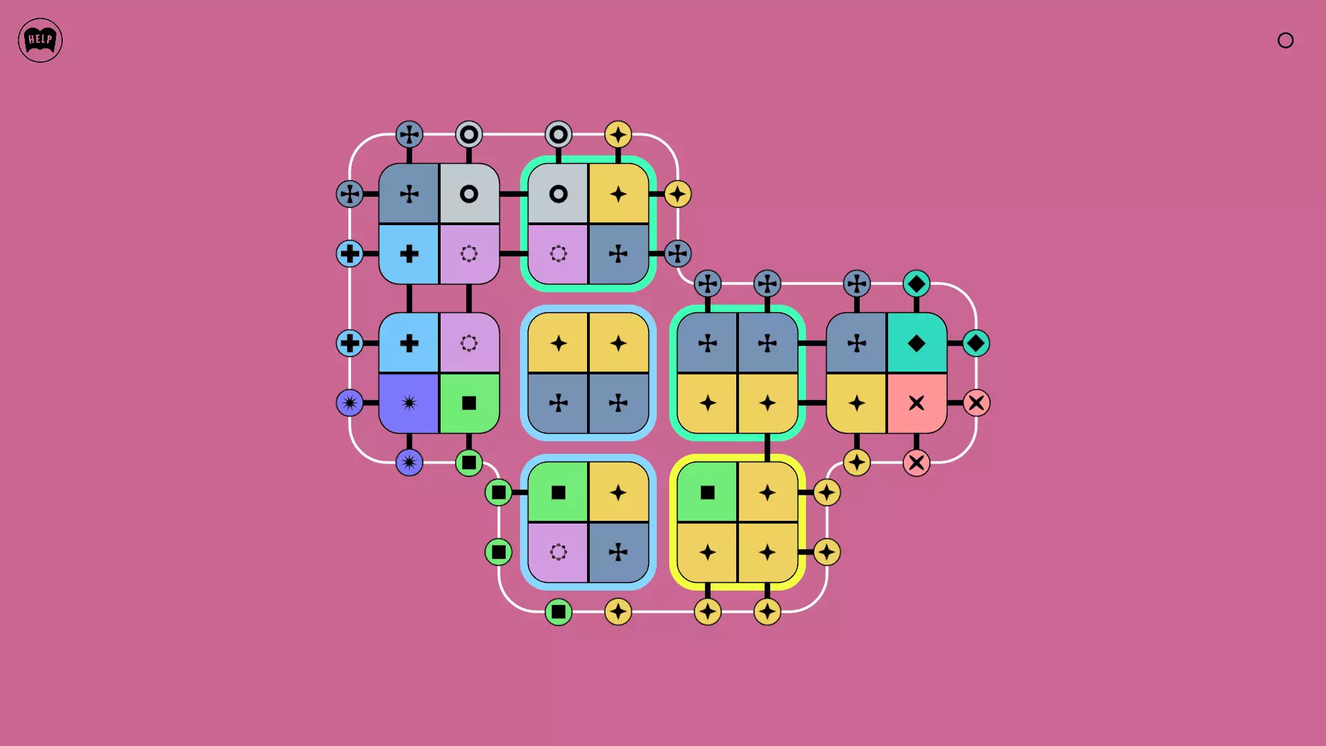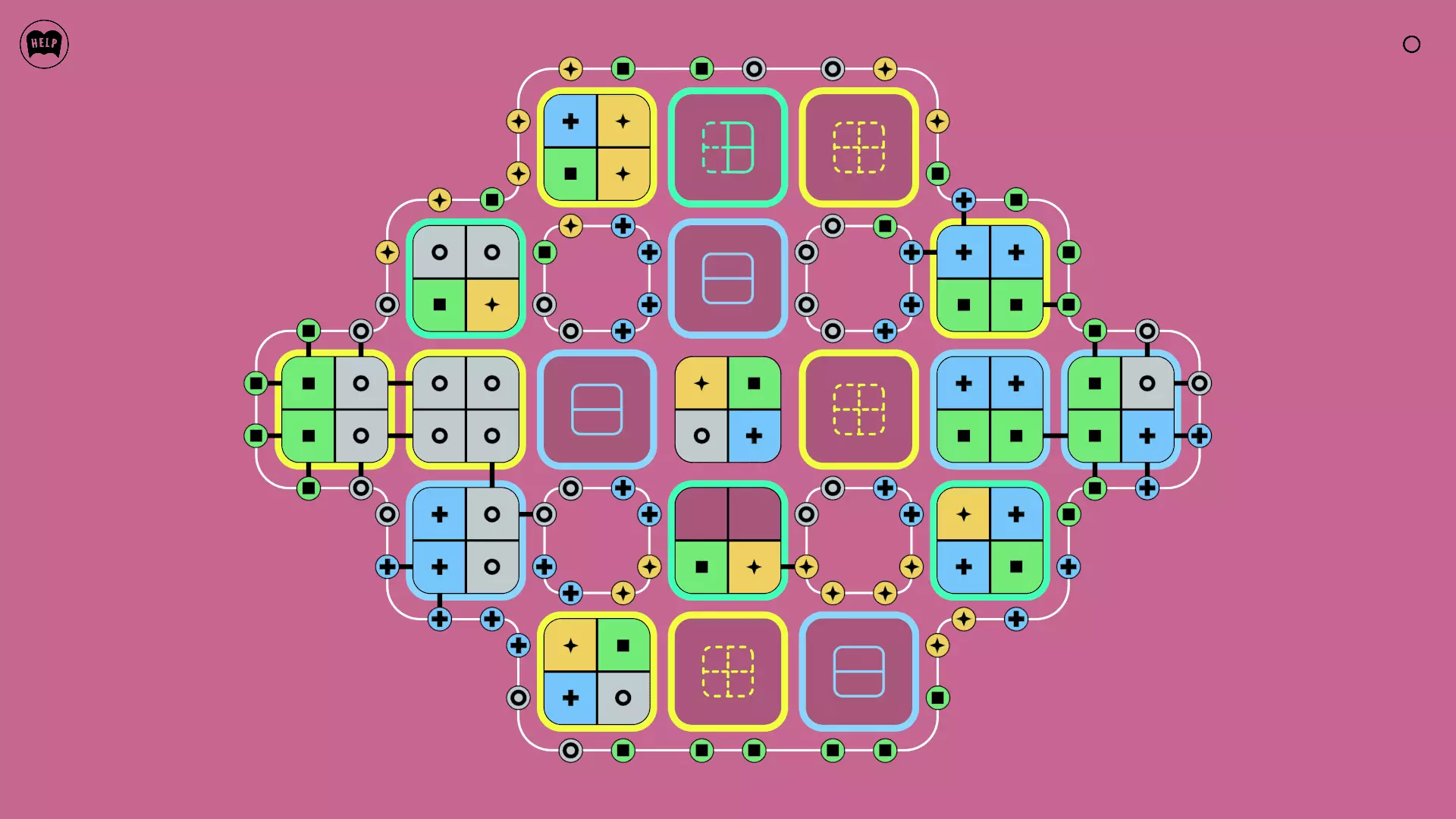 《Lines On Sides》关卡71-84图文攻略 简介 前18个关卡仅提供解决方案,因为解决这些关卡只需旋转或交换方块。 第19关及后续关卡包含步骤说明,解释如何分割、复制和转移方块。 由于Steam的限制,我不得不将本攻略分为两部分。 规则 旋转方块,直到方块上的图标与线条上或相邻方块上的符号匹配。当符号匹配时,它们之间会绘制一条线。 第7关引入了交换被绿线圈住的方块的功能。第14关新增了无法旋转或移动的方块,这类方块外有粗黑线环绕。 第19关新增了分裂平台,该平台外有蓝色线条环绕。此平台可将方块分裂为两个,或将两个方块合并为一个。