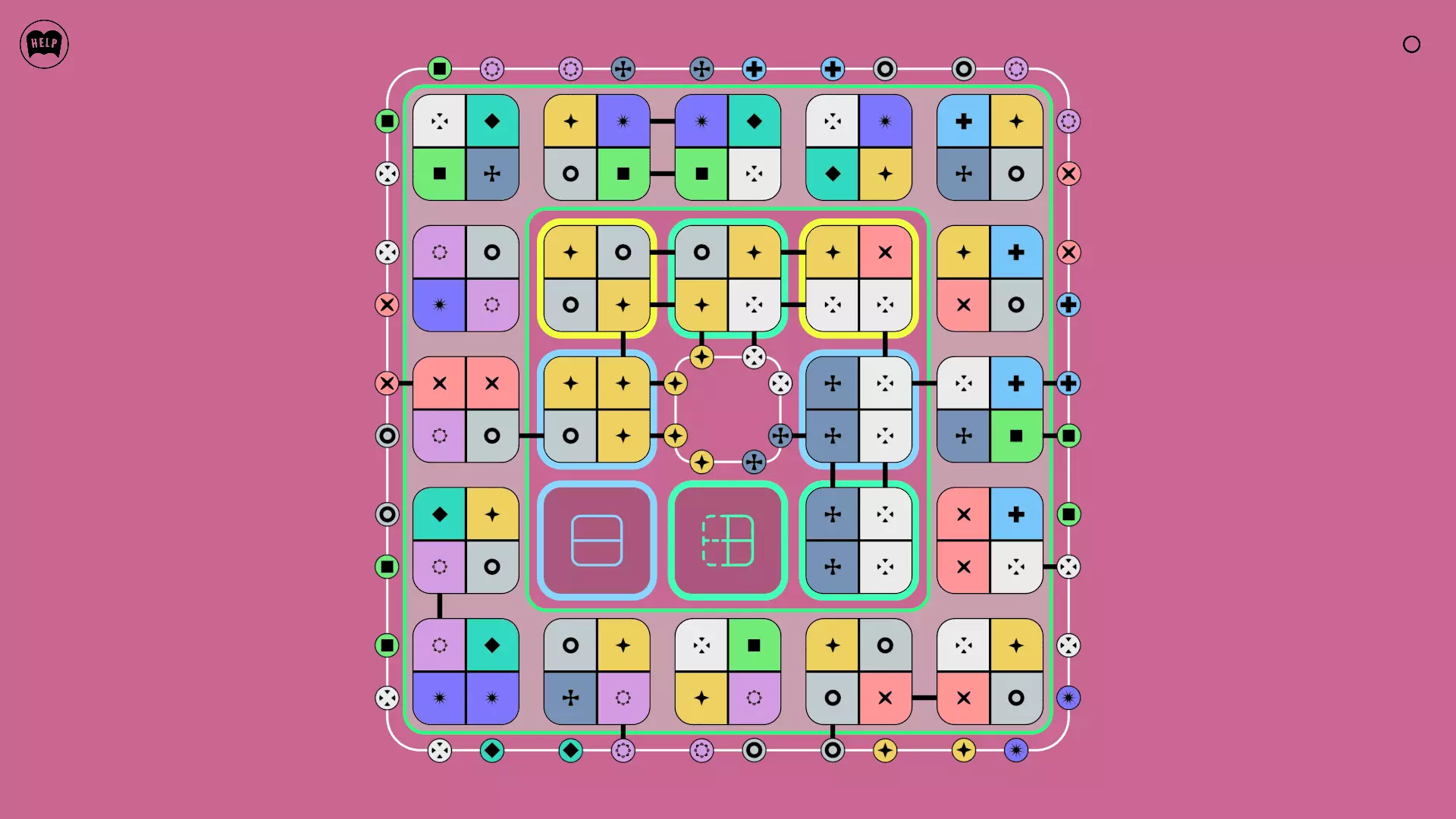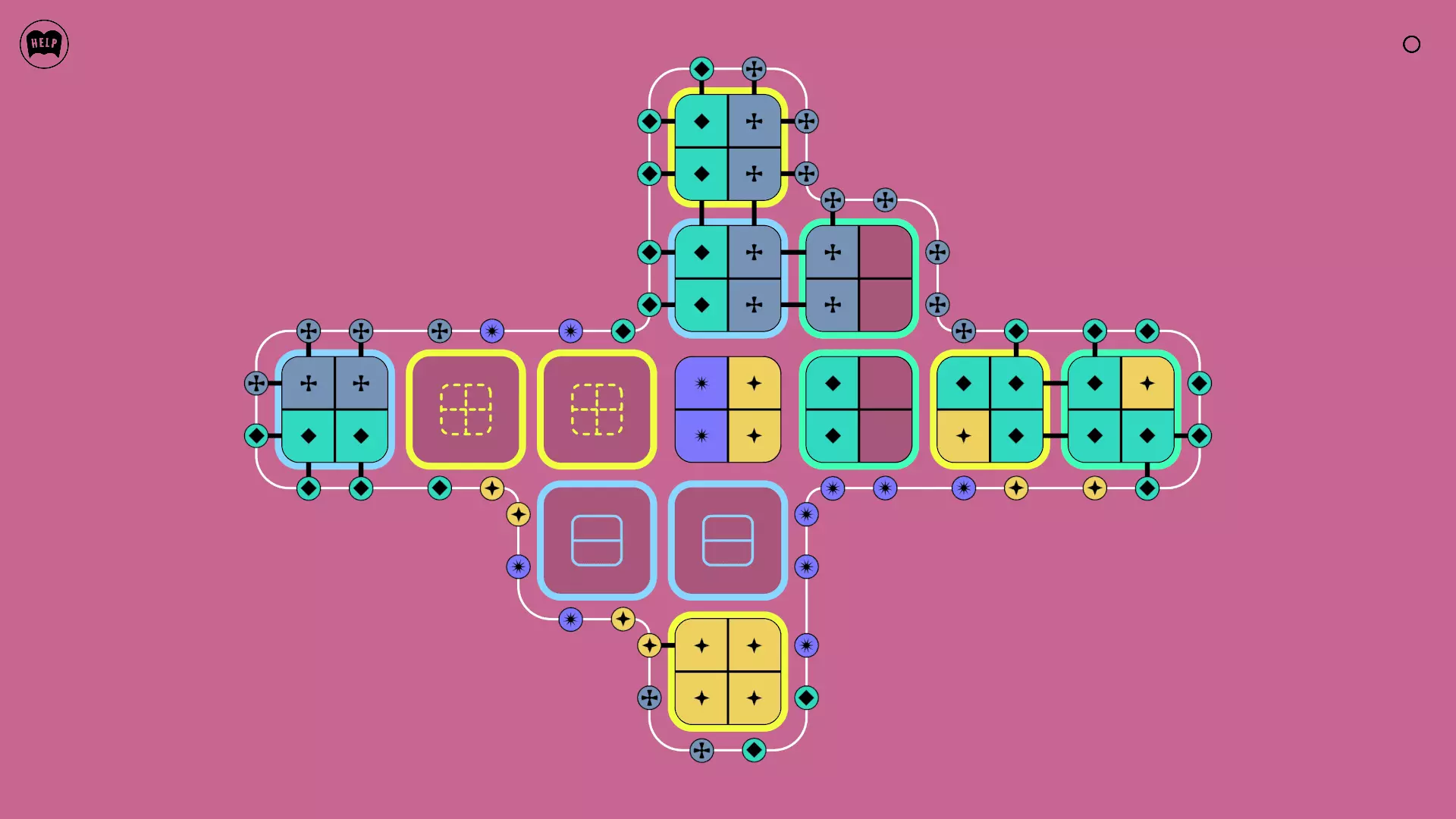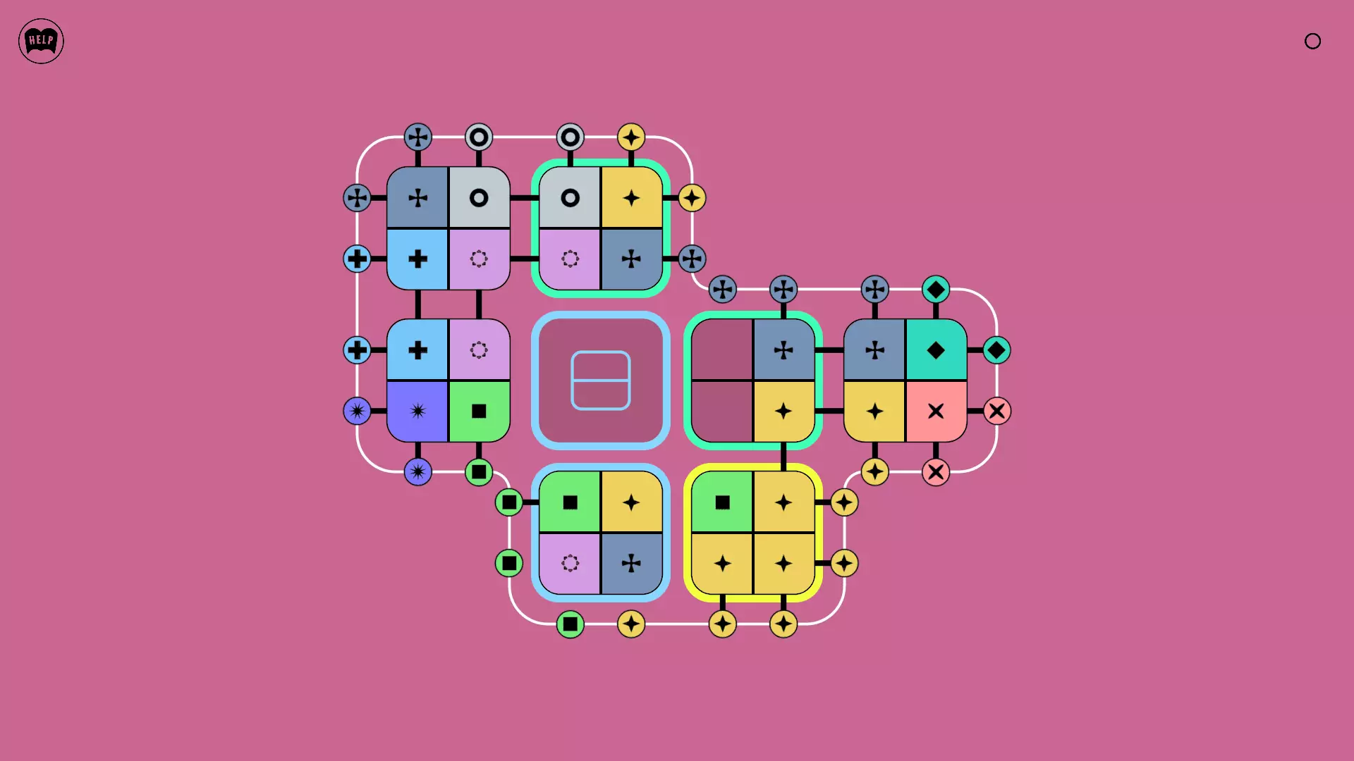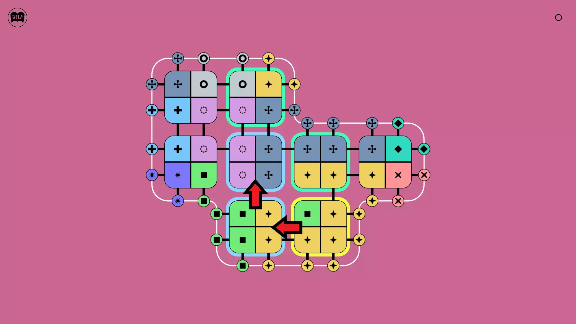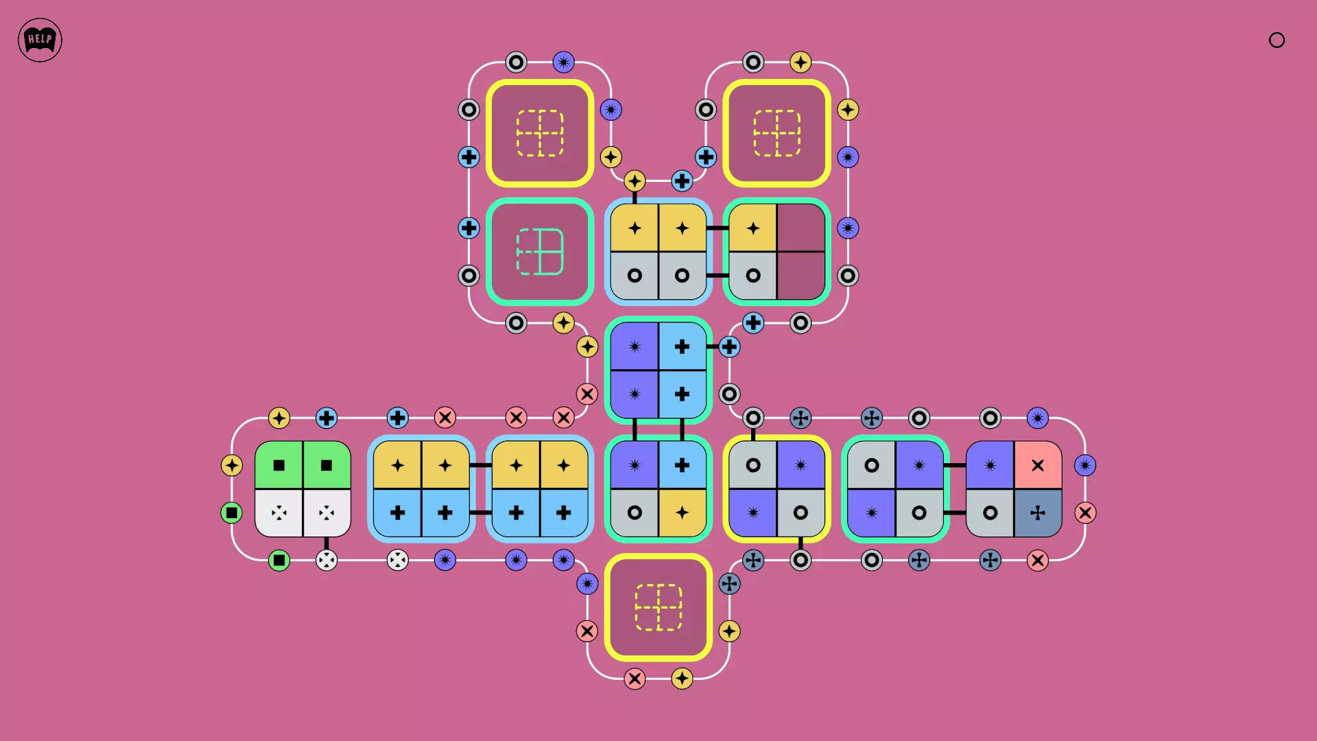 《Lines On Sides》关卡71-84图文攻略 简介 前18个关卡仅提供解决方案,因为解决这些关卡只需旋转或交换方块。 第19关及后续关卡包含步骤说明,解释如何分割、复制和转移方块。 由于Steam的限制,我不得不将本攻略分为两部分。 规则 旋转方块,直到方块上的图标与线条上或相邻方块上的符号匹配。当符号匹配时,它们之间会绘制一条线。 第7关引入了交换被绿线圈住的方块的功能。第14关新增了无法旋转或移动的方块,这类方块外有粗黑线环绕。 第19关新增了分裂平台,该平台外有蓝色线条环绕。此平台可将方块分裂为两个,或将两个方块合并为一个。