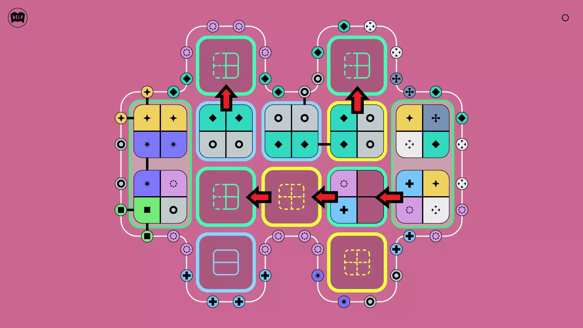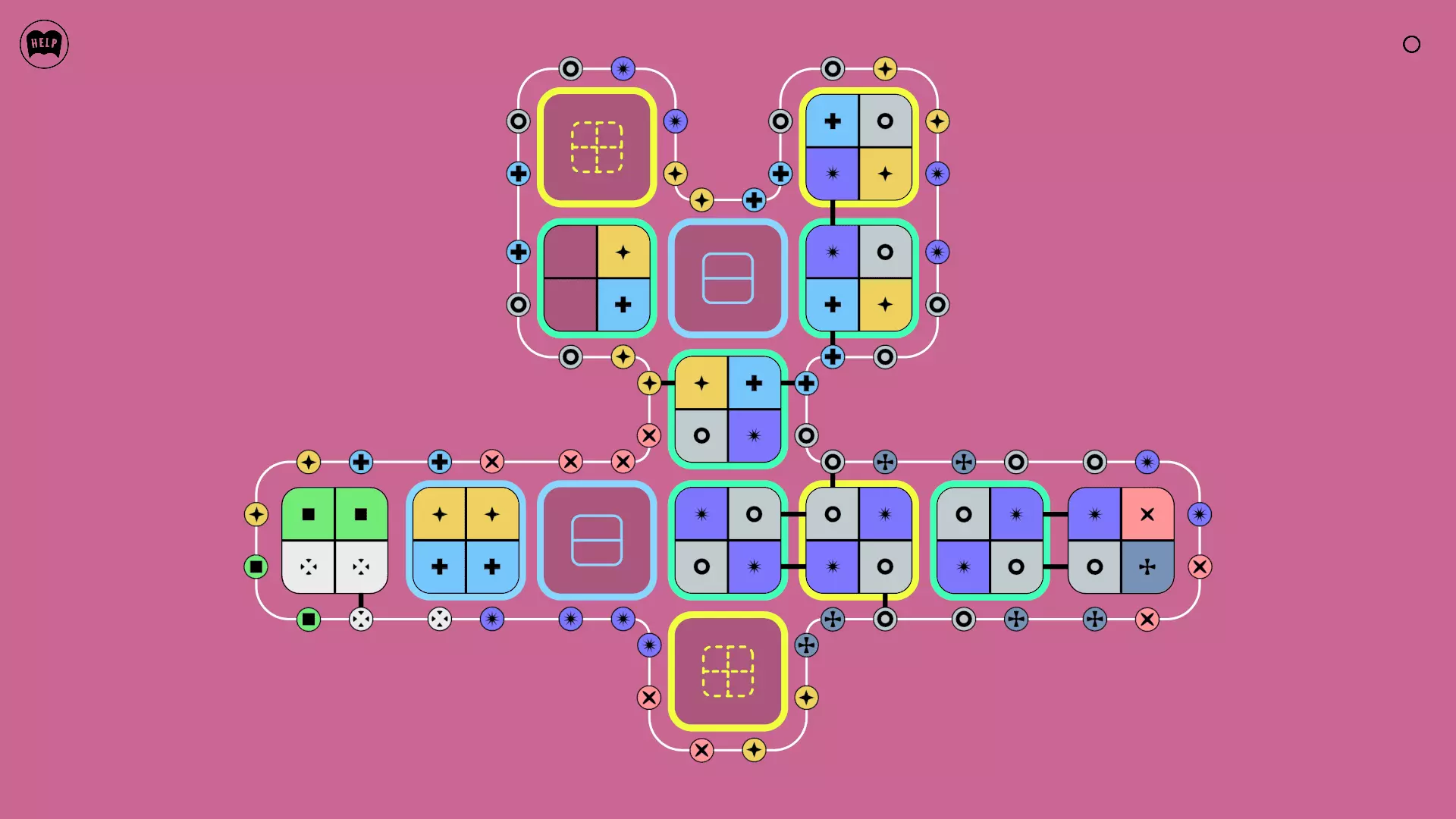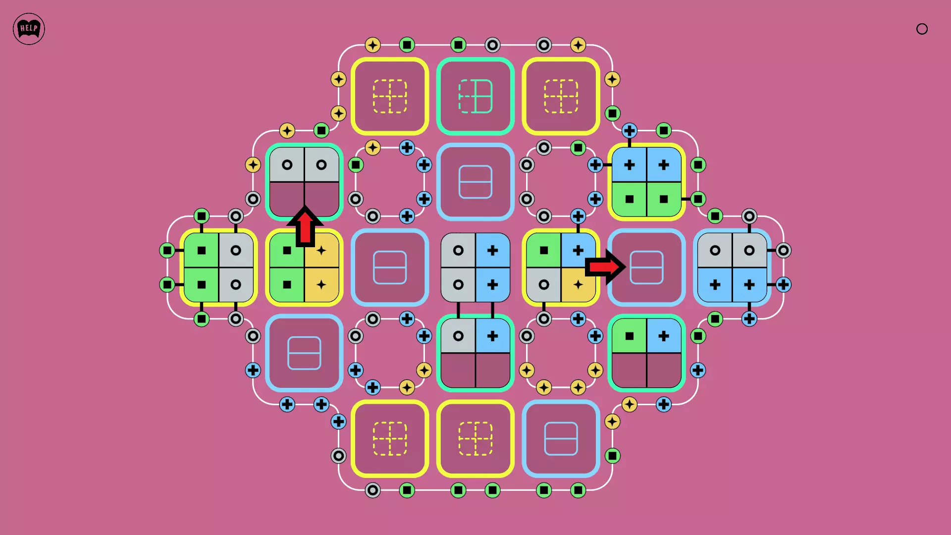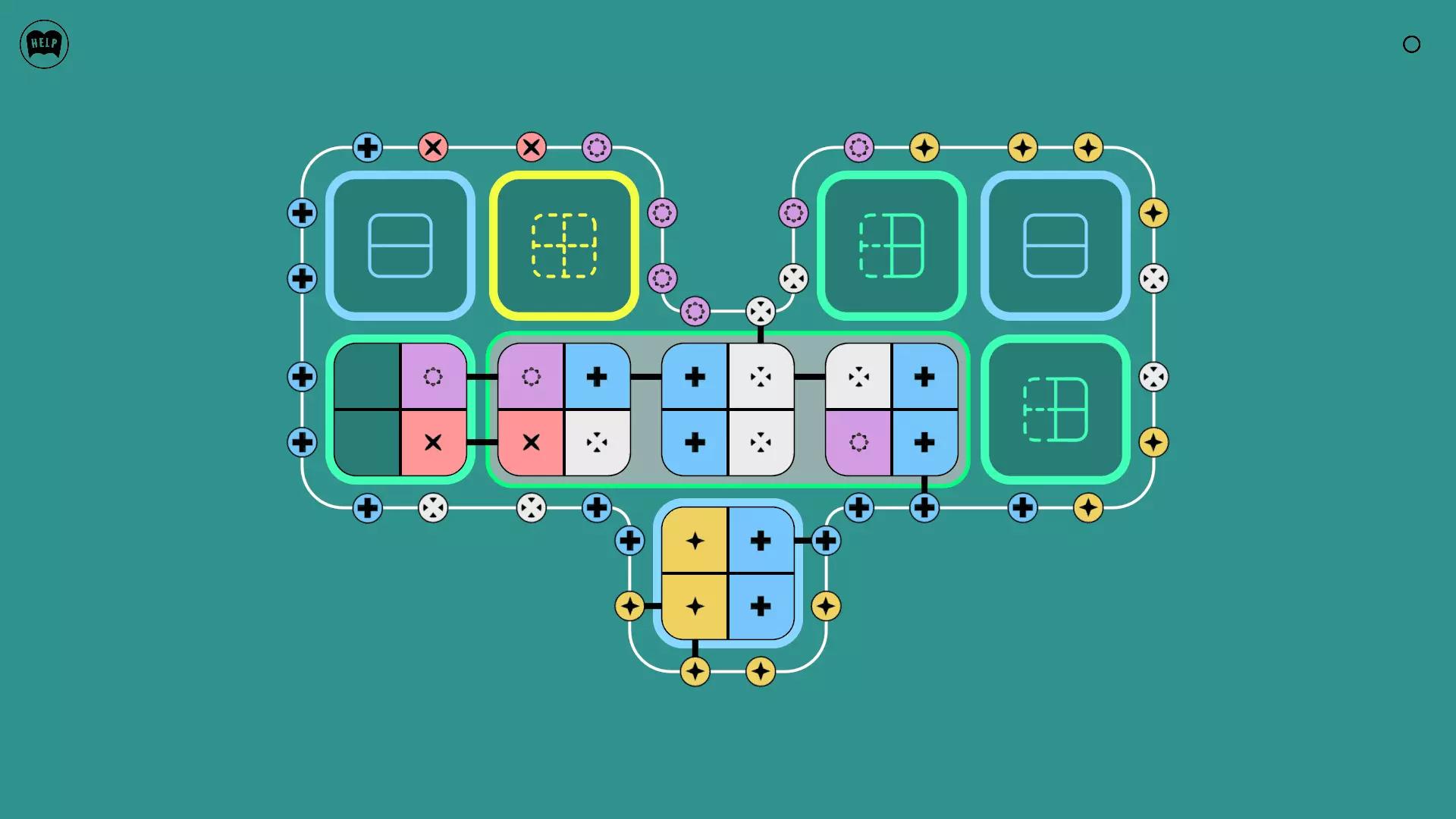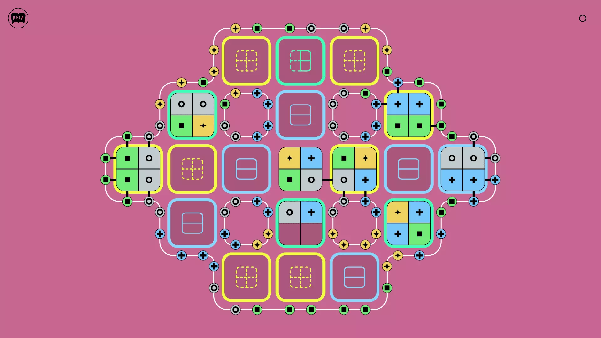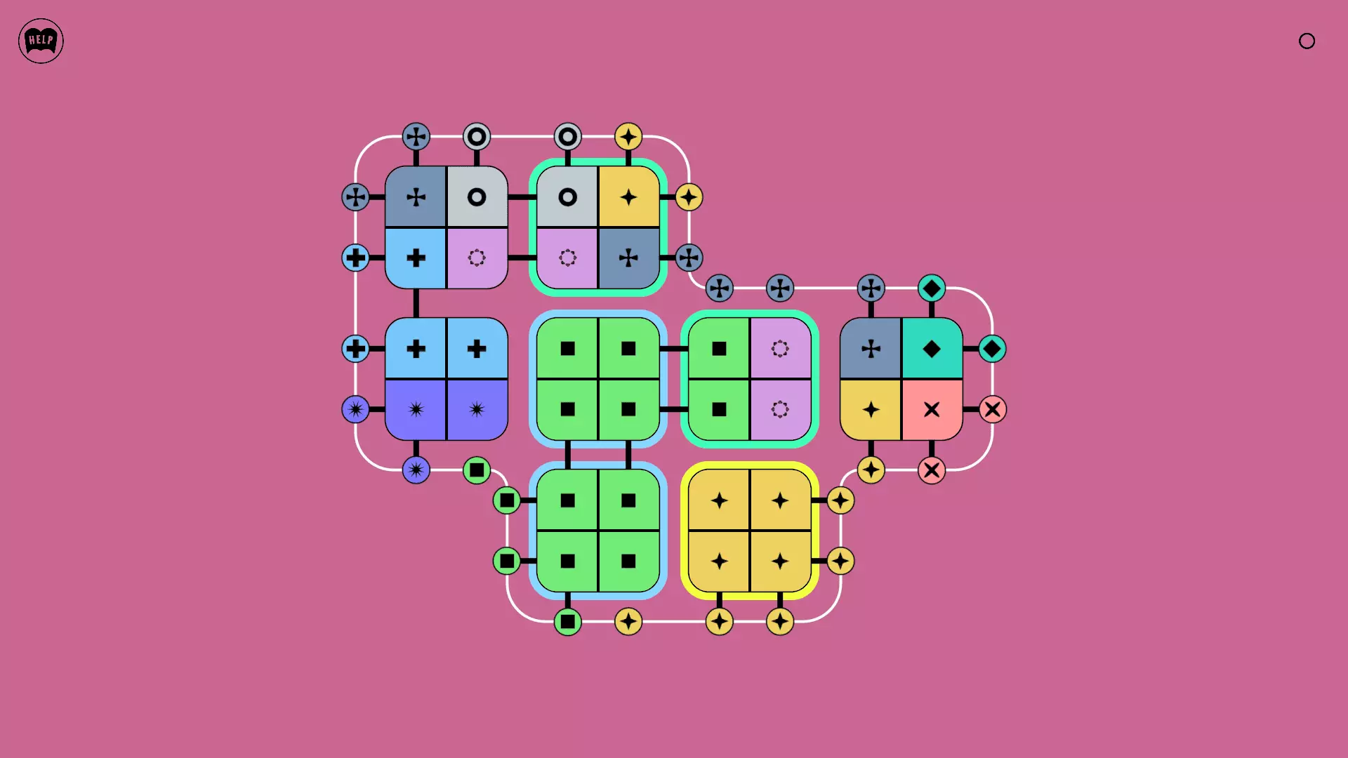 《Lines On Sides》关卡71-84图文攻略 简介 前18个关卡仅提供解决方案,因为解决这些关卡只需旋转或交换方块。 第19关及后续关卡包含步骤说明,解释如何分割、复制和转移方块。 由于Steam的限制,我不得不将本攻略分为两部分。 规则 旋转方块,直到方块上的图标与线条上或相邻方块上的符号匹配。当符号匹配时,它们之间会绘制一条线。 第7关引入了交换被绿线圈住的方块的功能。第14关新增了无法旋转或移动的方块,这类方块外有粗黑线环绕。 第19关新增了分裂平台,该平台外有蓝色线条环绕。此平台可将方块分裂为两个,或将两个方块合并为一个。