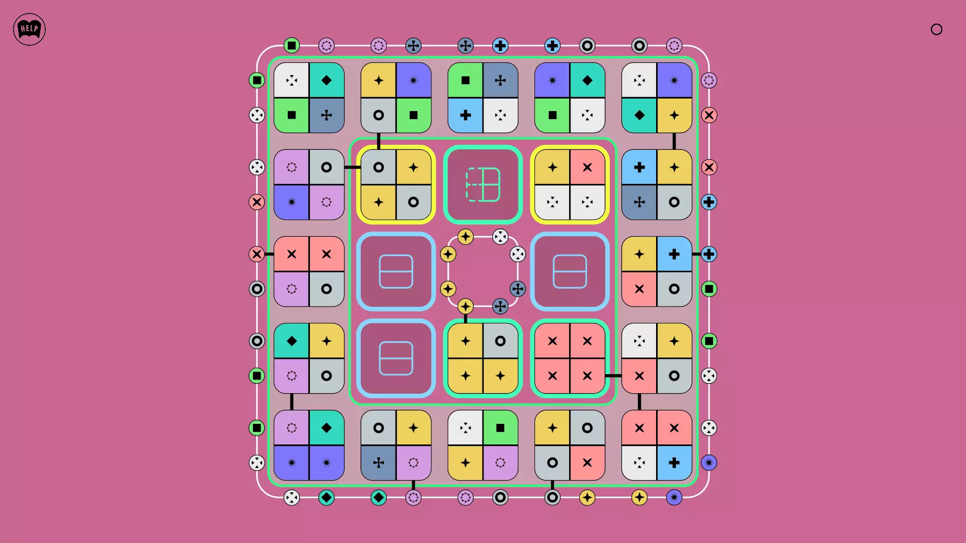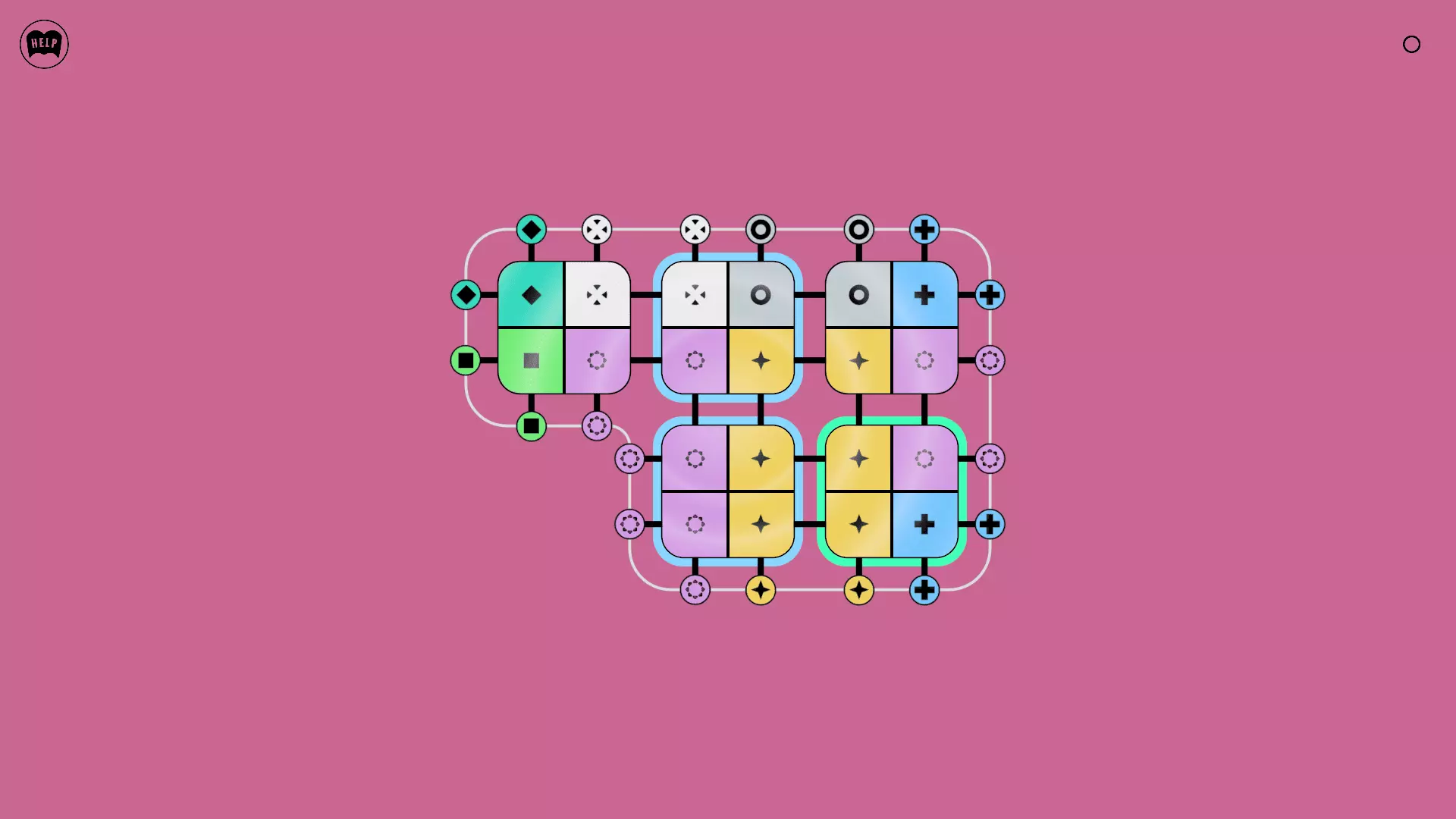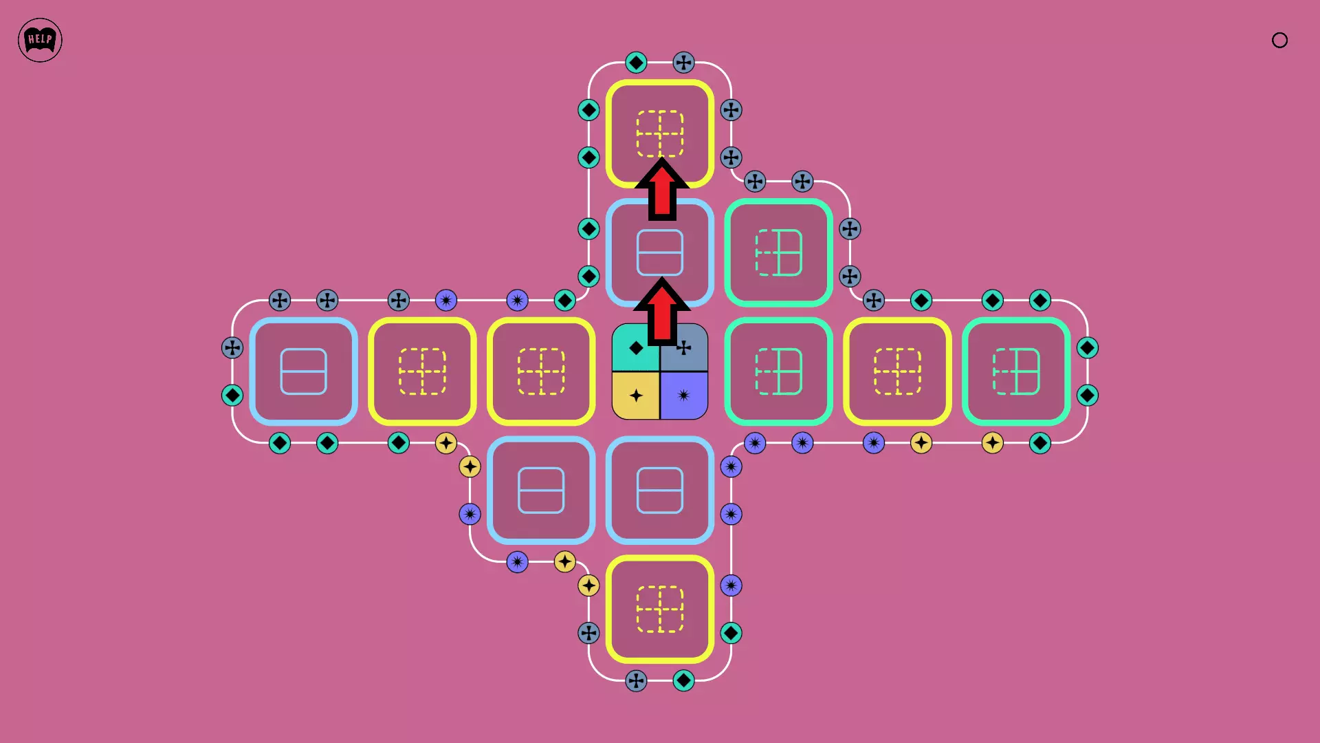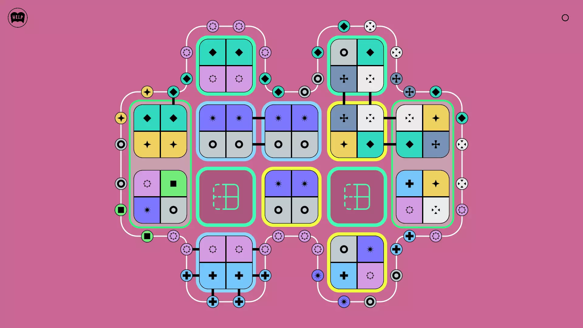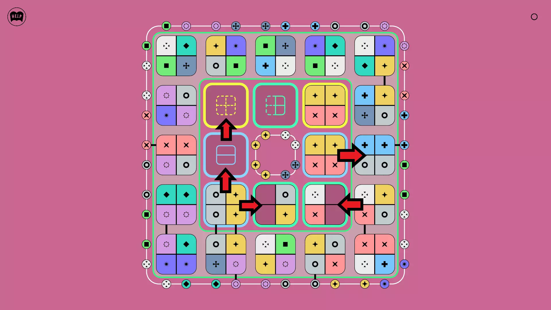 《Lines On Sides》关卡71-84图文攻略 简介 前18个关卡仅提供解决方案,因为解决这些关卡只需旋转或交换方块。 第19关及后续关卡包含步骤说明,解释如何分割、复制和转移方块。 由于Steam的限制,我不得不将本攻略分为两部分。 规则 旋转方块,直到方块上的图标与线条上或相邻方块上的符号匹配。当符号匹配时,它们之间会绘制一条线。 第7关引入了交换被绿线圈住的方块的功能。第14关新增了无法旋转或移动的方块,这类方块外有粗黑线环绕。 第19关新增了分裂平台,该平台外有蓝色线条环绕。此平台可将方块分裂为两个,或将两个方块合并为一个。