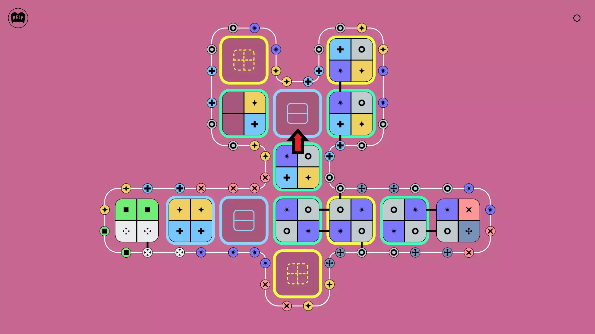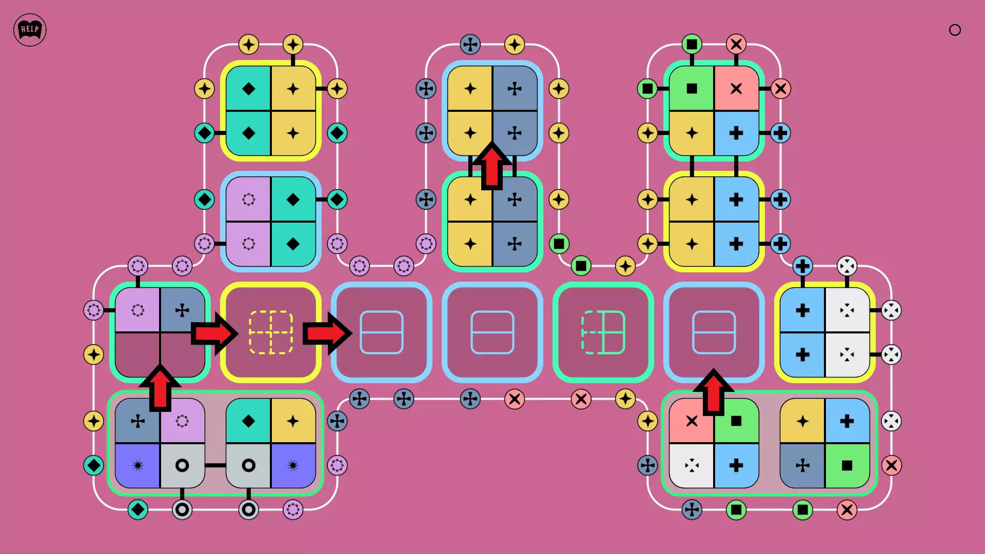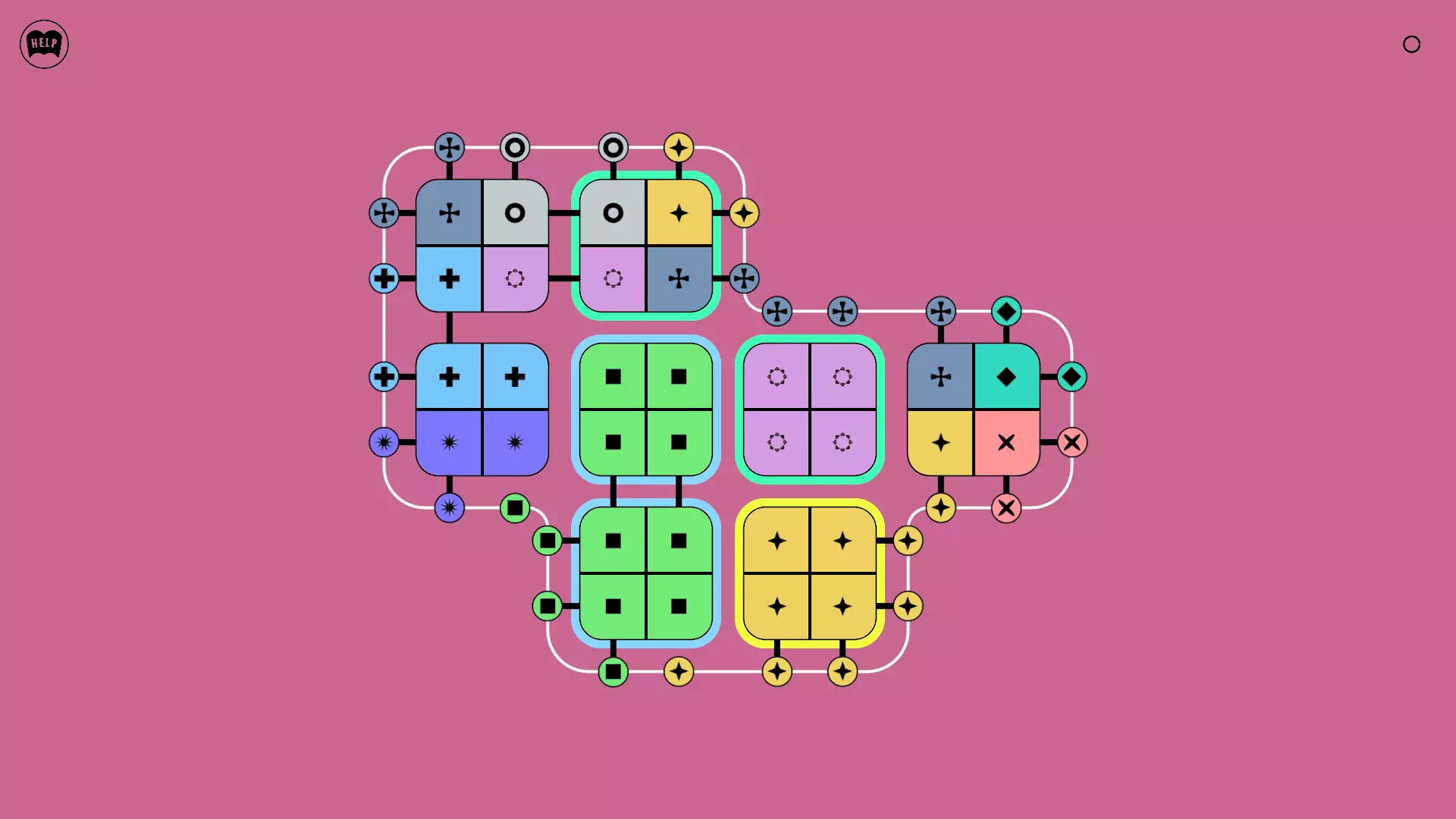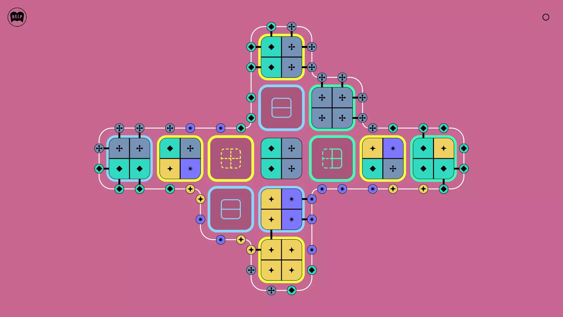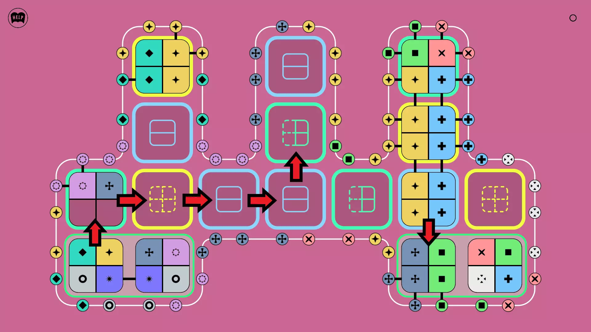 《Lines On Sides》关卡71-84图文攻略 简介 前18个关卡仅提供解决方案,因为解决这些关卡只需旋转或交换方块。 第19关及后续关卡包含步骤说明,解释如何分割、复制和转移方块。 由于Steam的限制,我不得不将本攻略分为两部分。 规则 旋转方块,直到方块上的图标与线条上或相邻方块上的符号匹配。当符号匹配时,它们之间会绘制一条线。 第7关引入了交换被绿线圈住的方块的功能。第14关新增了无法旋转或移动的方块,这类方块外有粗黑线环绕。 第19关新增了分裂平台,该平台外有蓝色线条环绕。此平台可将方块分裂为两个,或将两个方块合并为一个。