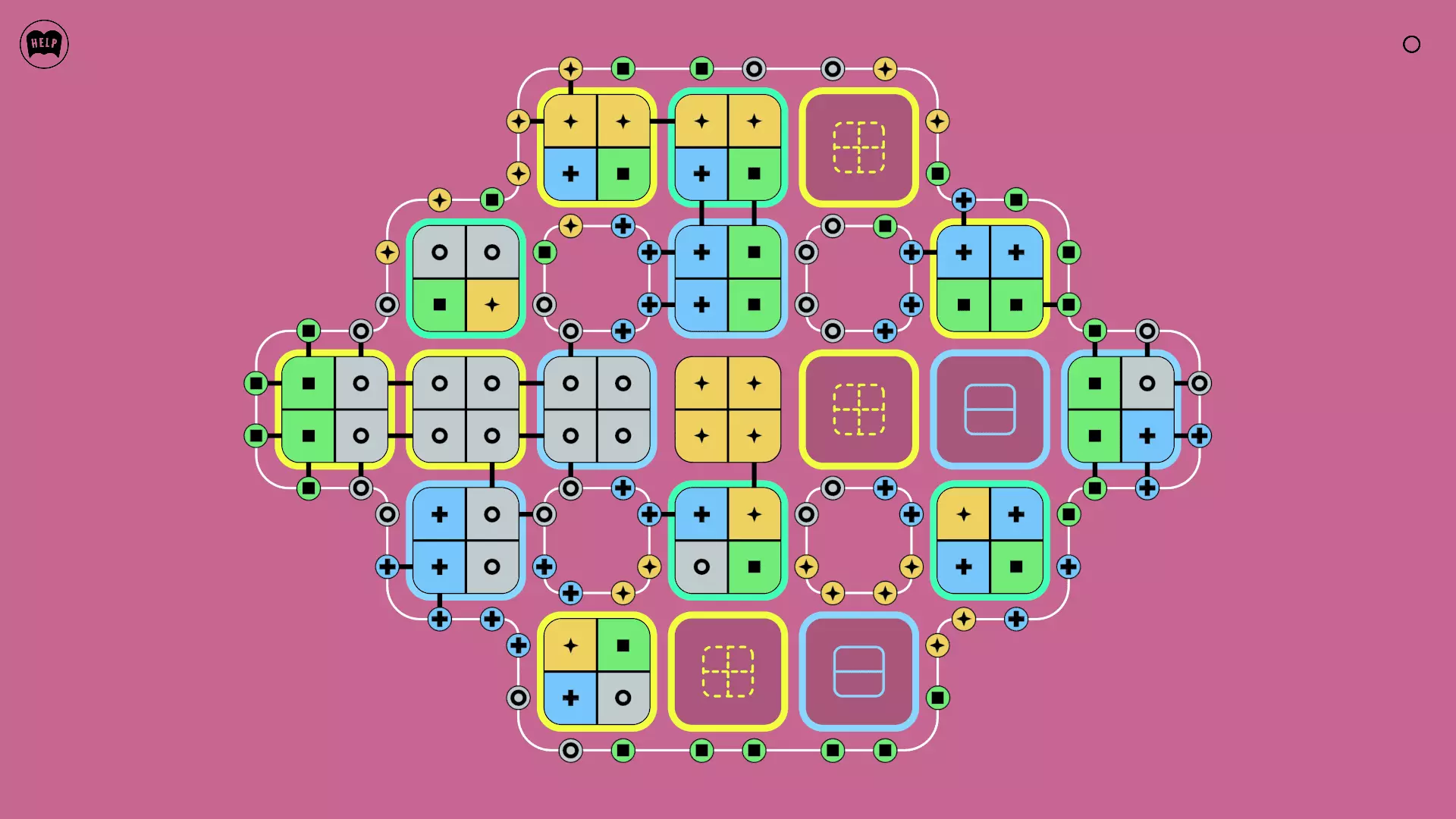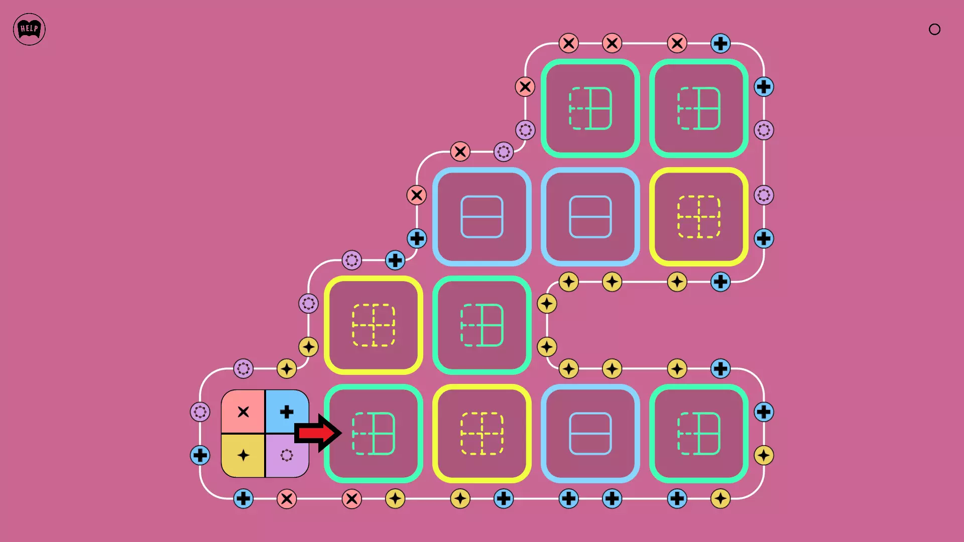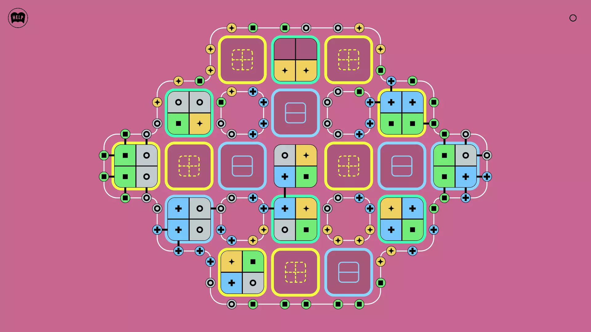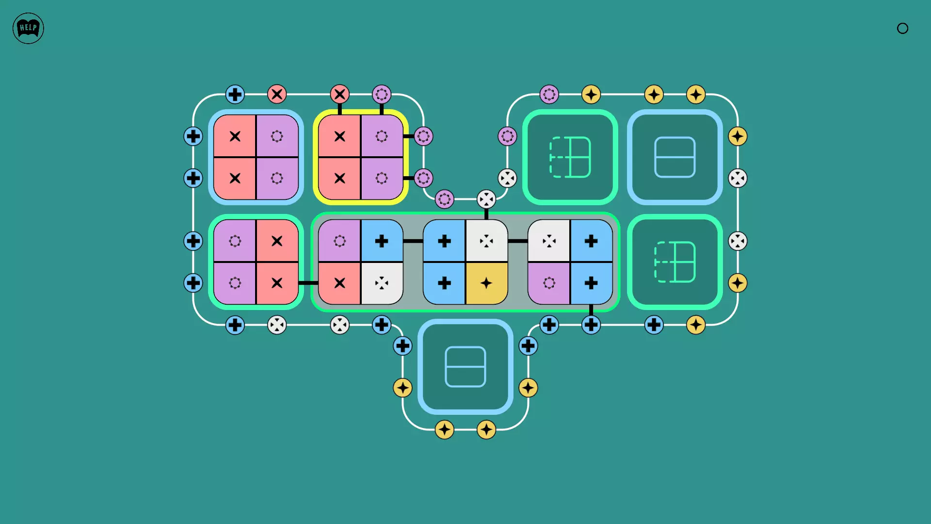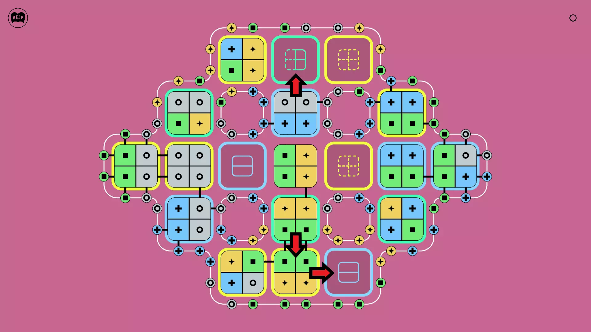 《Lines On Sides》关卡71-84图文攻略 简介 前18个关卡仅提供解决方案,因为解决这些关卡只需旋转或交换方块。 第19关及后续关卡包含步骤说明,解释如何分割、复制和转移方块。 由于Steam的限制,我不得不将本攻略分为两部分。 规则 旋转方块,直到方块上的图标与线条上或相邻方块上的符号匹配。当符号匹配时,它们之间会绘制一条线。 第7关引入了交换被绿线圈住的方块的功能。第14关新增了无法旋转或移动的方块,这类方块外有粗黑线环绕。 第19关新增了分裂平台,该平台外有蓝色线条环绕。此平台可将方块分裂为两个,或将两个方块合并为一个。