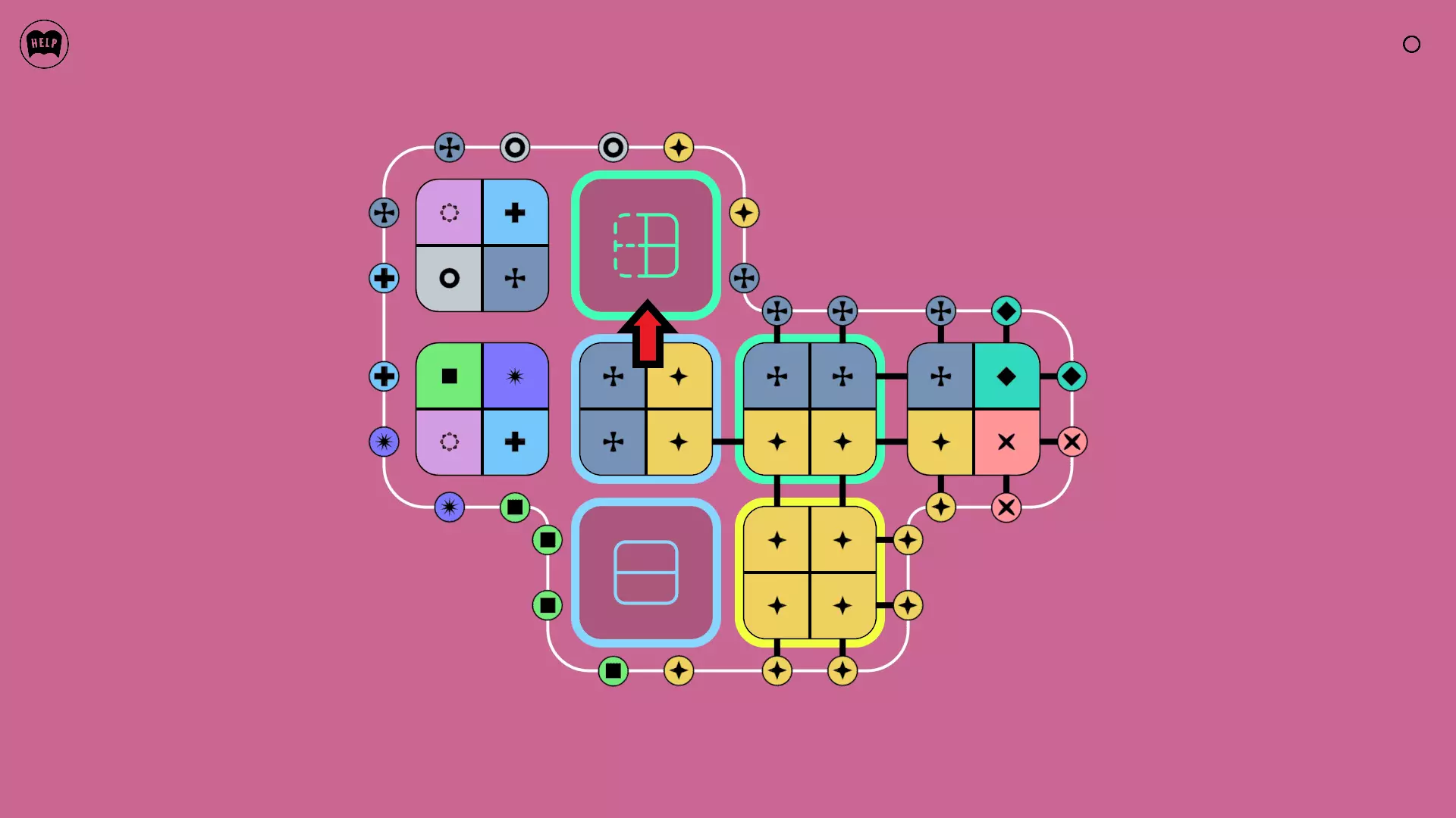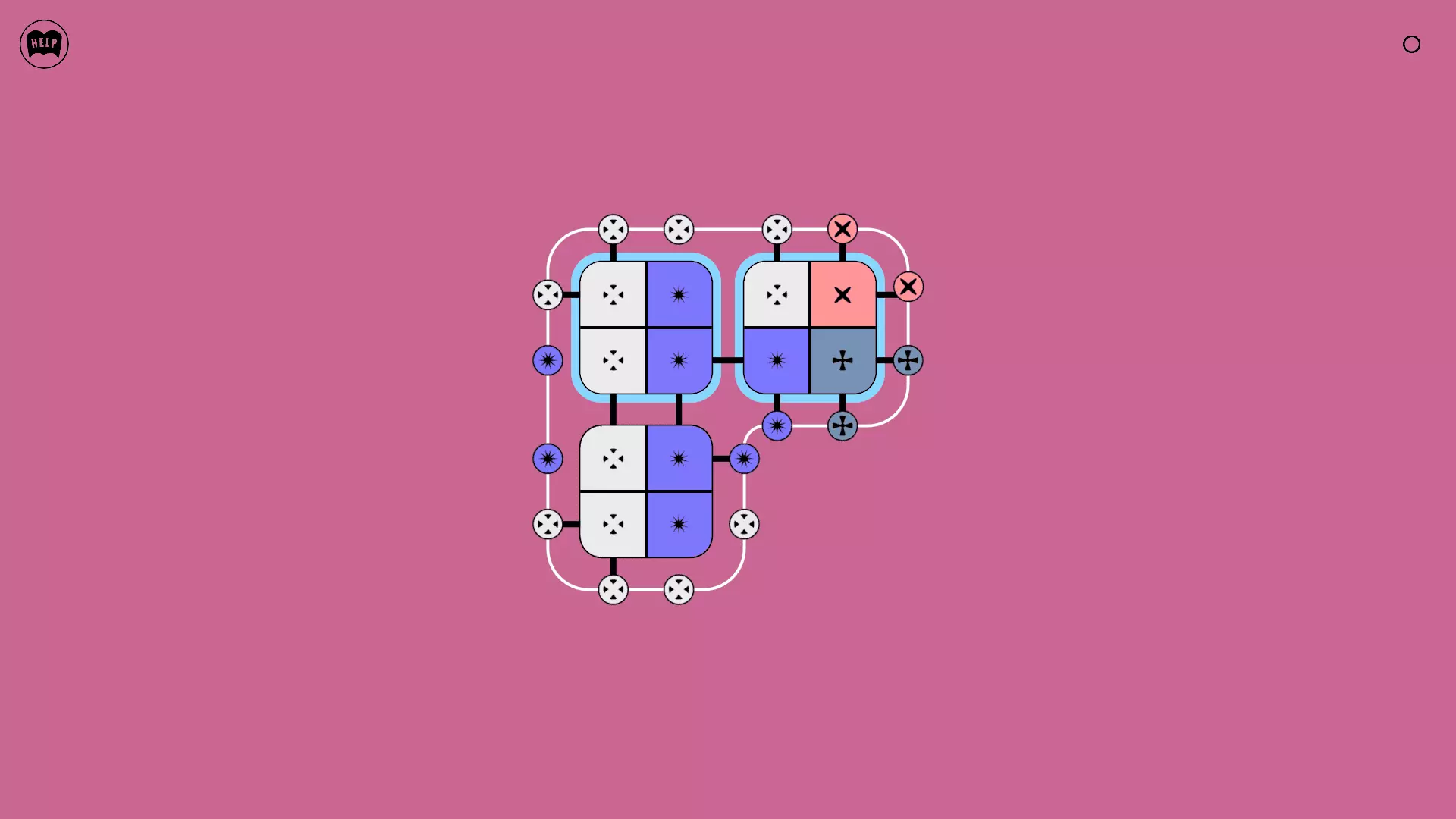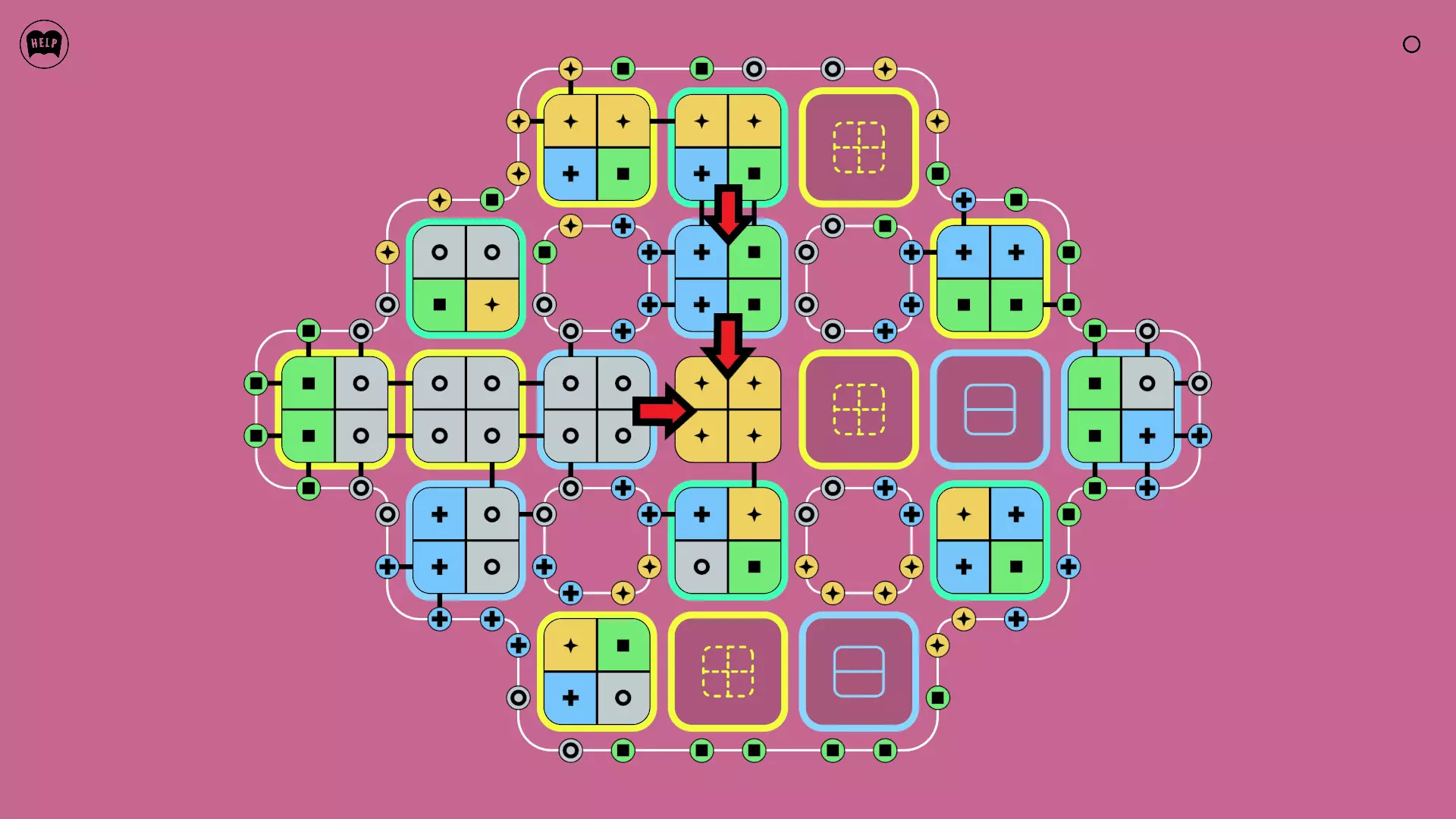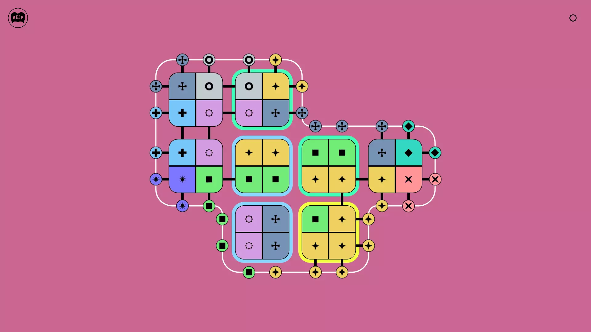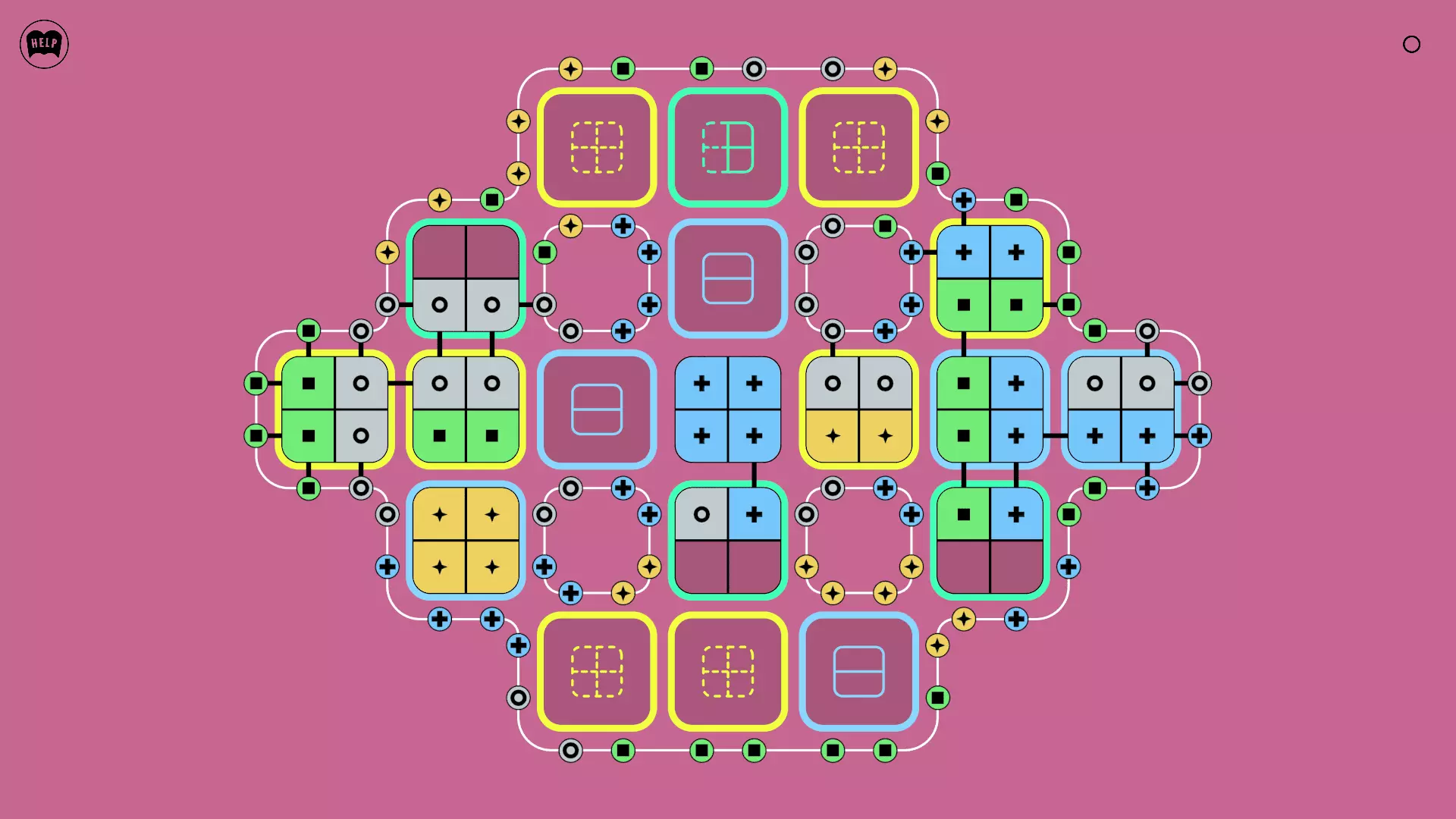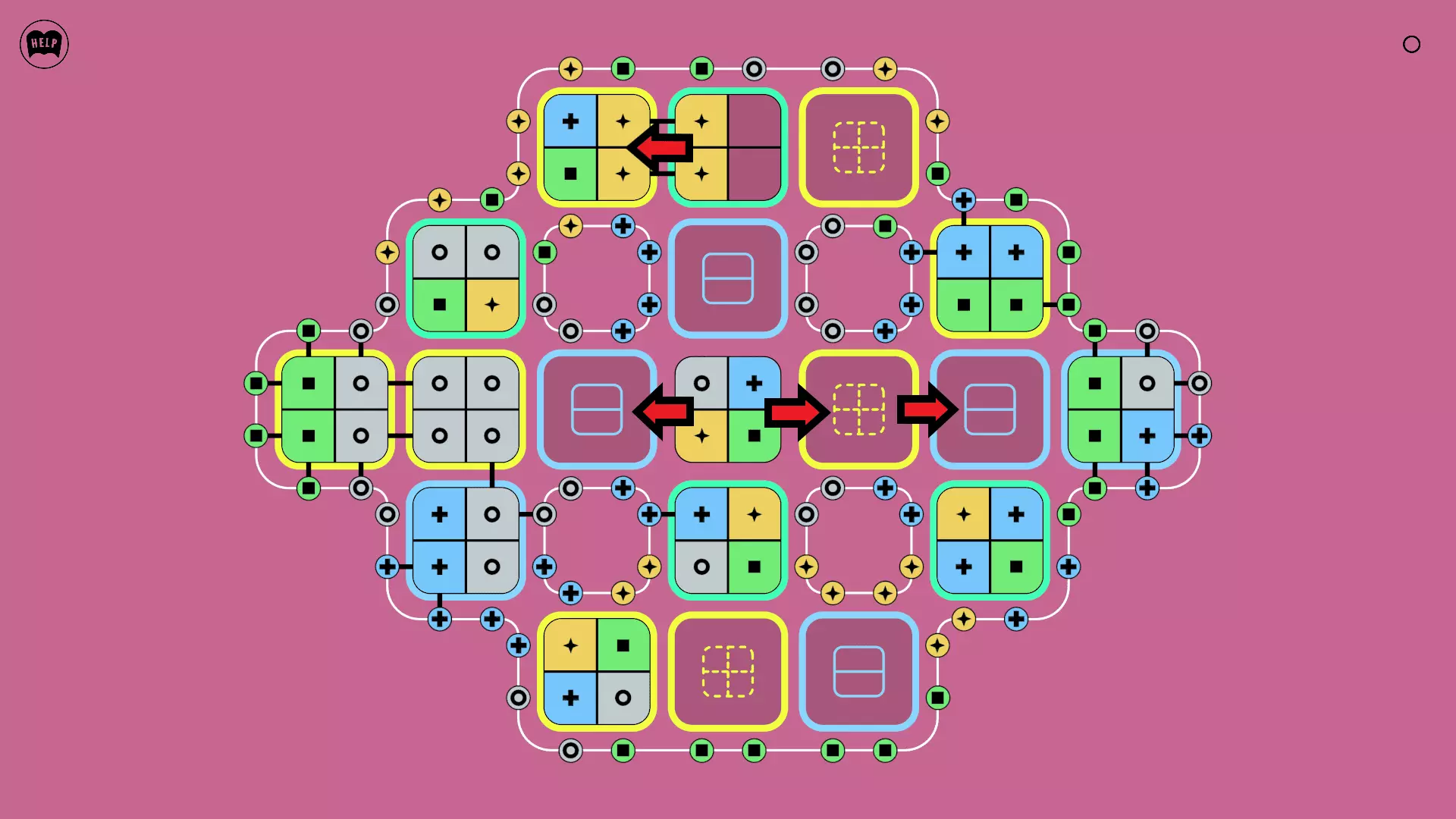 《Lines On Sides》关卡71-84图文攻略 简介 前18个关卡仅提供解决方案,因为解决这些关卡只需旋转或交换方块。 第19关及后续关卡包含步骤说明,解释如何分割、复制和转移方块。 由于Steam的限制,我不得不将本攻略分为两部分。 规则 旋转方块,直到方块上的图标与线条上或相邻方块上的符号匹配。当符号匹配时,它们之间会绘制一条线。 第7关引入了交换被绿线圈住的方块的功能。第14关新增了无法旋转或移动的方块,这类方块外有粗黑线环绕。 第19关新增了分裂平台,该平台外有蓝色线条环绕。此平台可将方块分裂为两个,或将两个方块合并为一个。