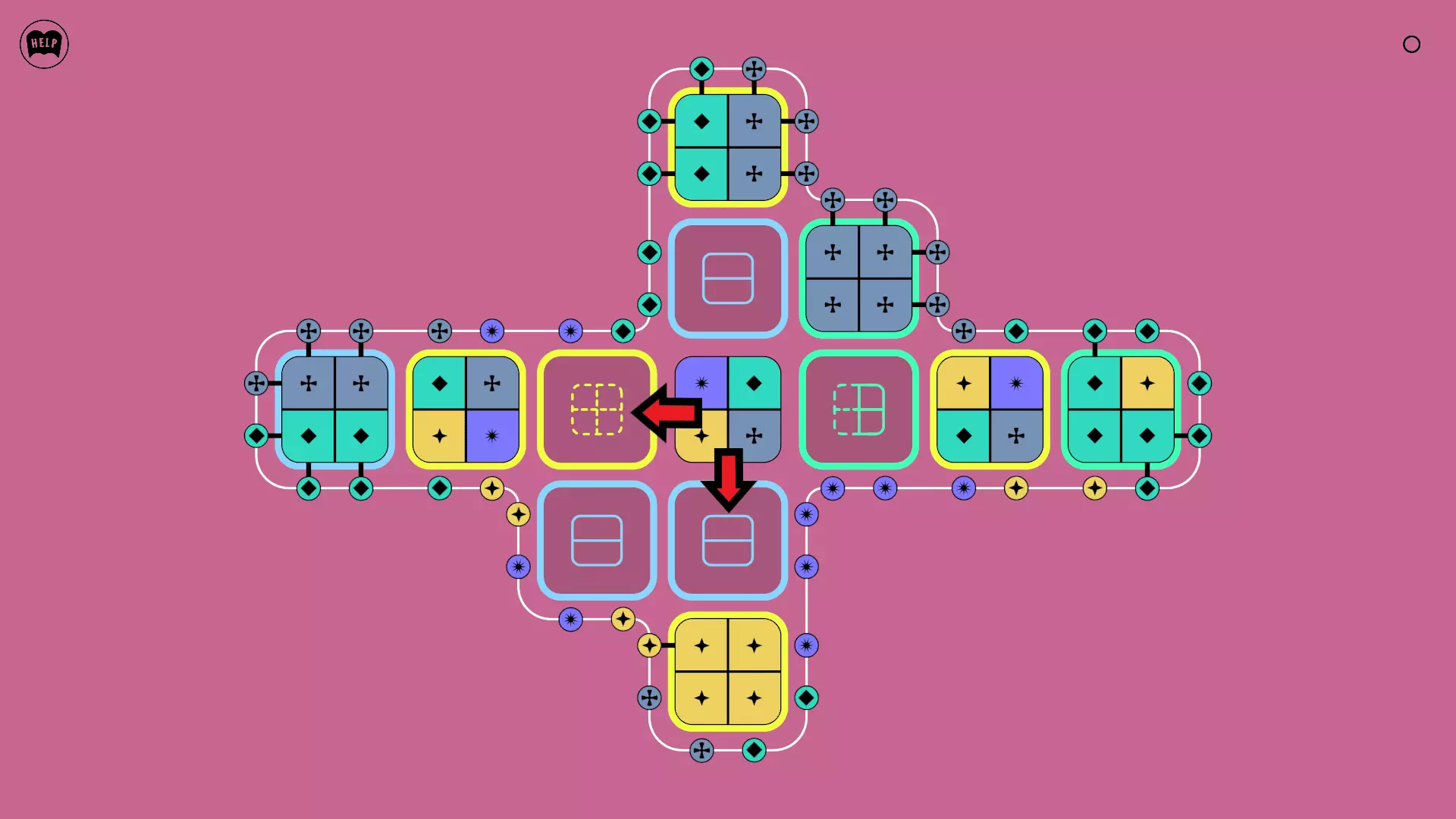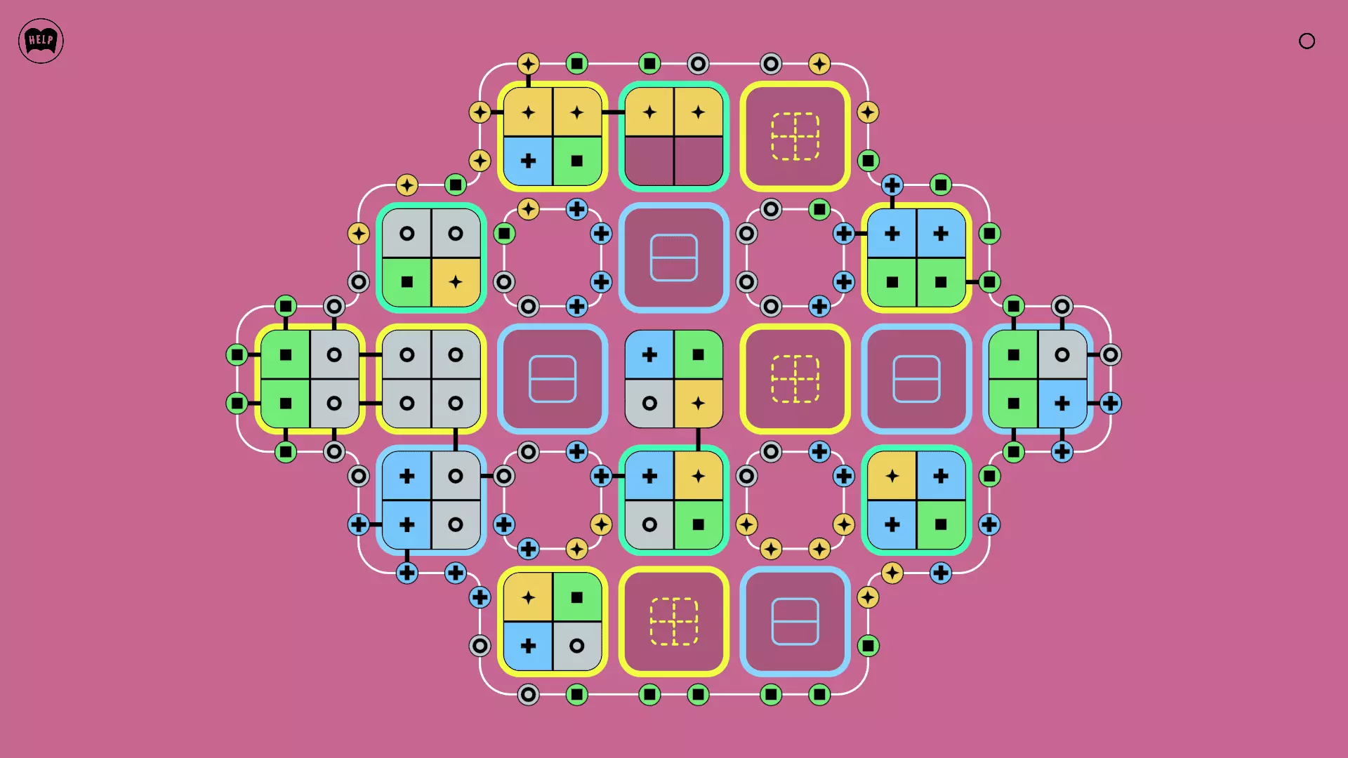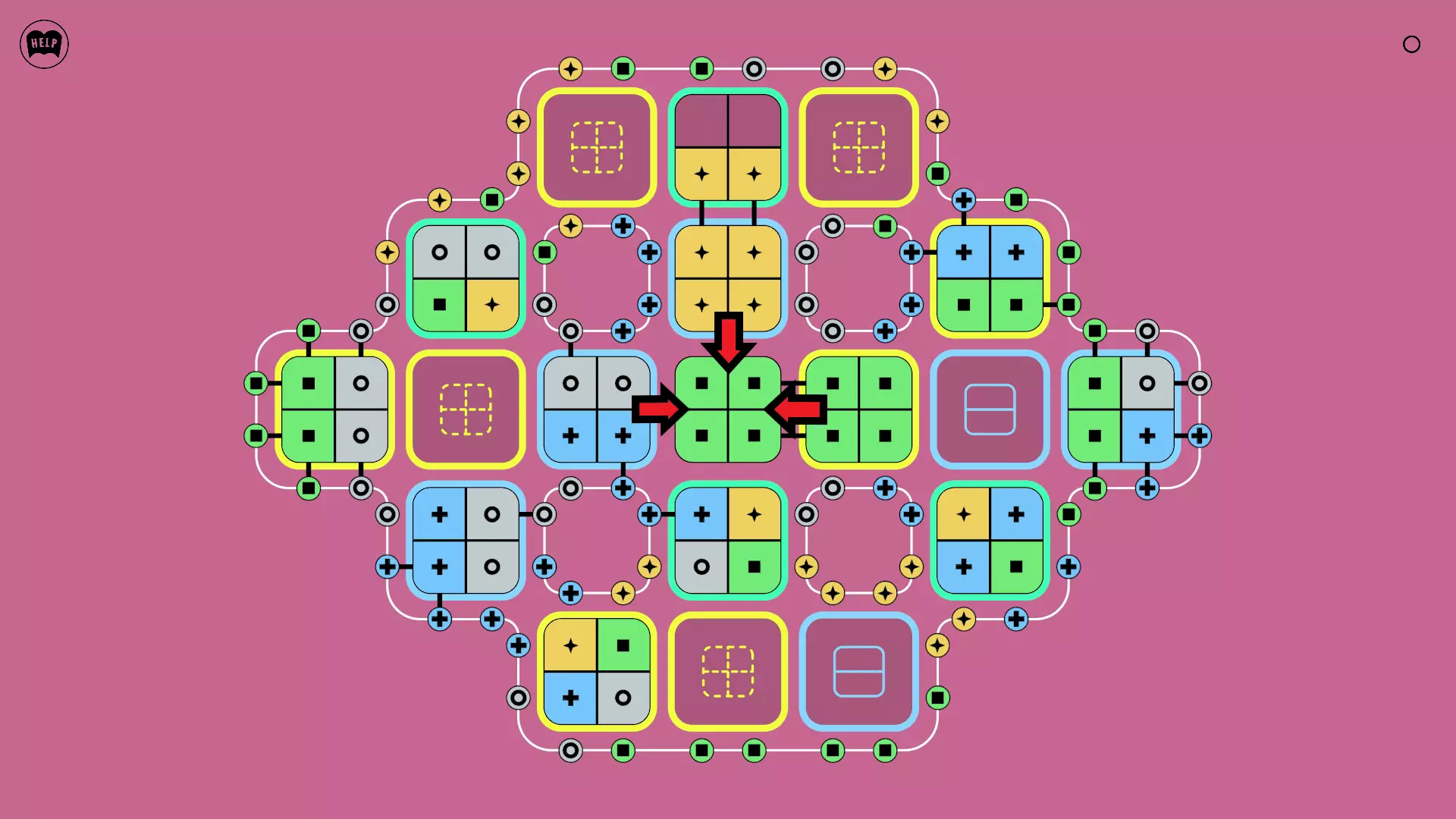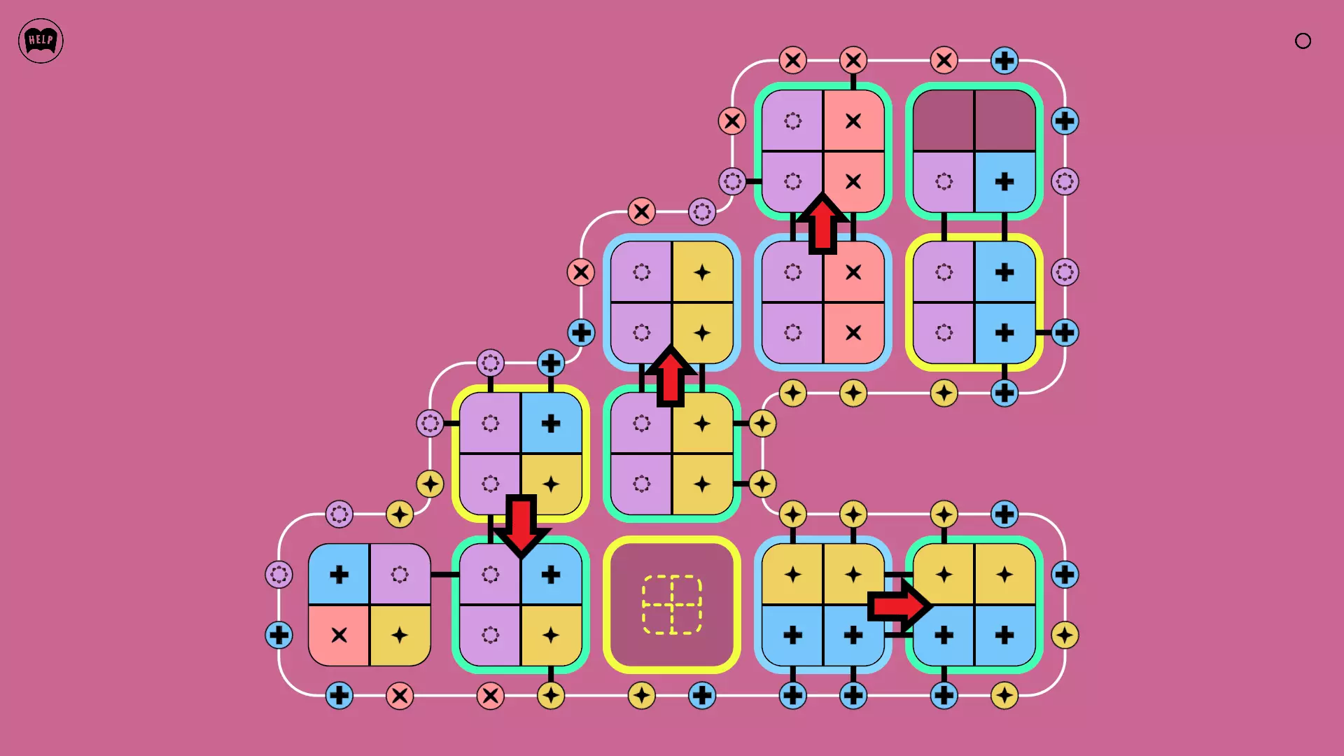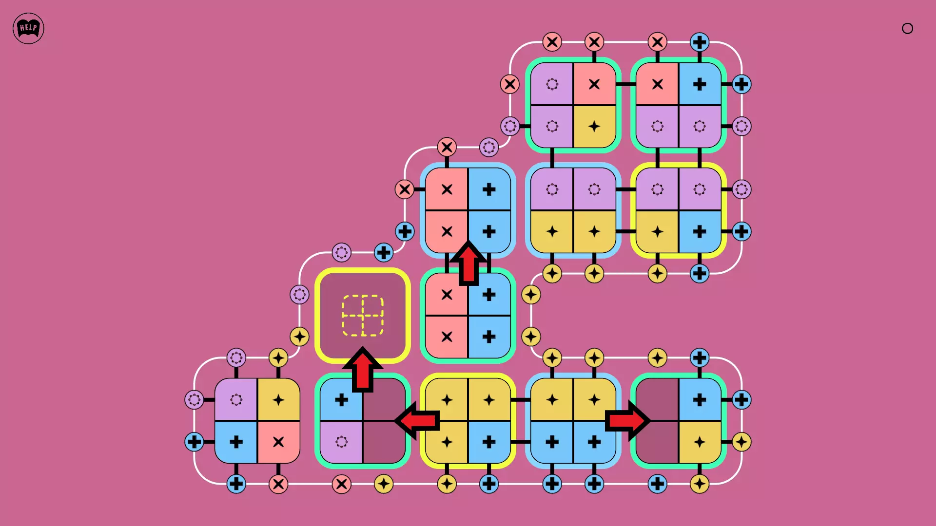 《Lines On Sides》关卡71-84图文攻略 简介 前18个关卡仅提供解决方案,因为解决这些关卡只需旋转或交换方块。 第19关及后续关卡包含步骤说明,解释如何分割、复制和转移方块。 由于Steam的限制,我不得不将本攻略分为两部分。 规则 旋转方块,直到方块上的图标与线条上或相邻方块上的符号匹配。当符号匹配时,它们之间会绘制一条线。 第7关引入了交换被绿线圈住的方块的功能。第14关新增了无法旋转或移动的方块,这类方块外有粗黑线环绕。 第19关新增了分裂平台,该平台外有蓝色线条环绕。此平台可将方块分裂为两个,或将两个方块合并为一个。