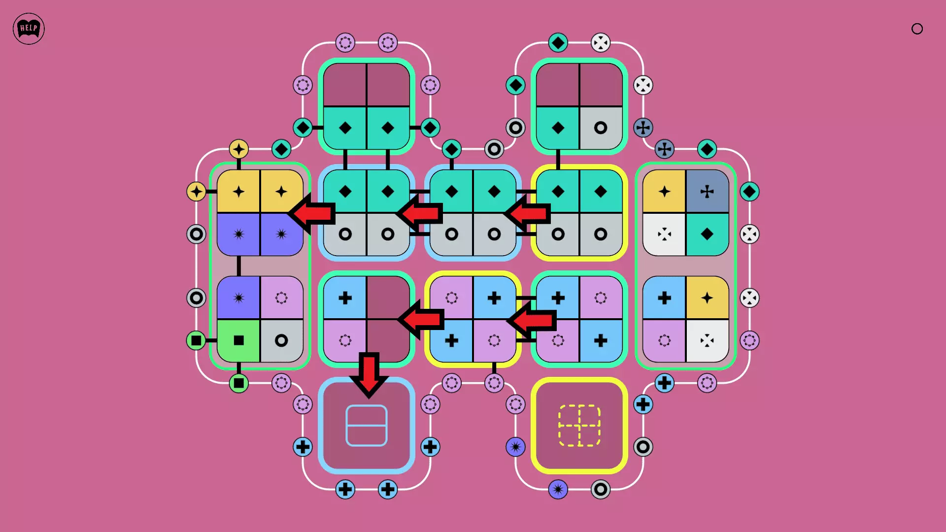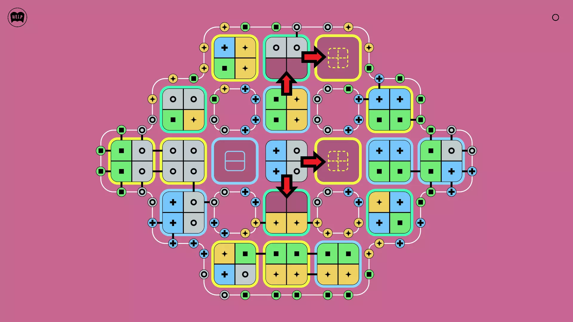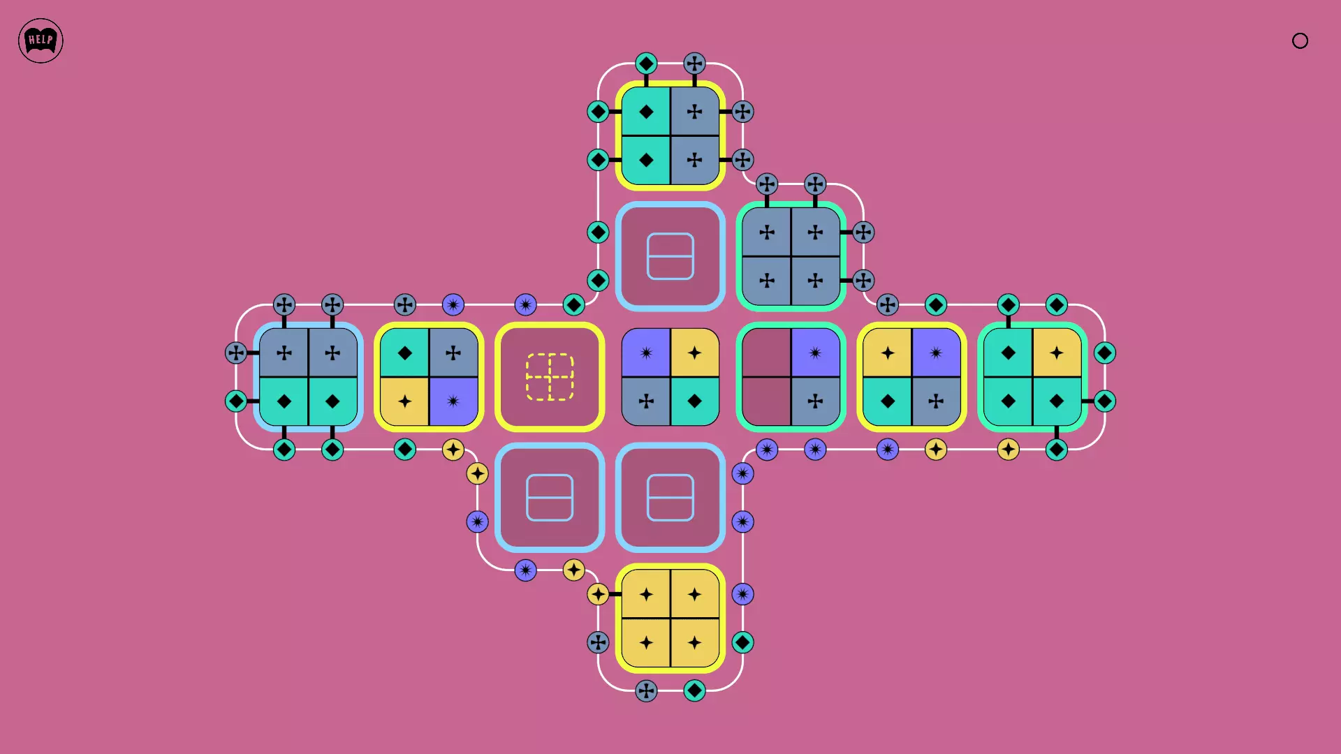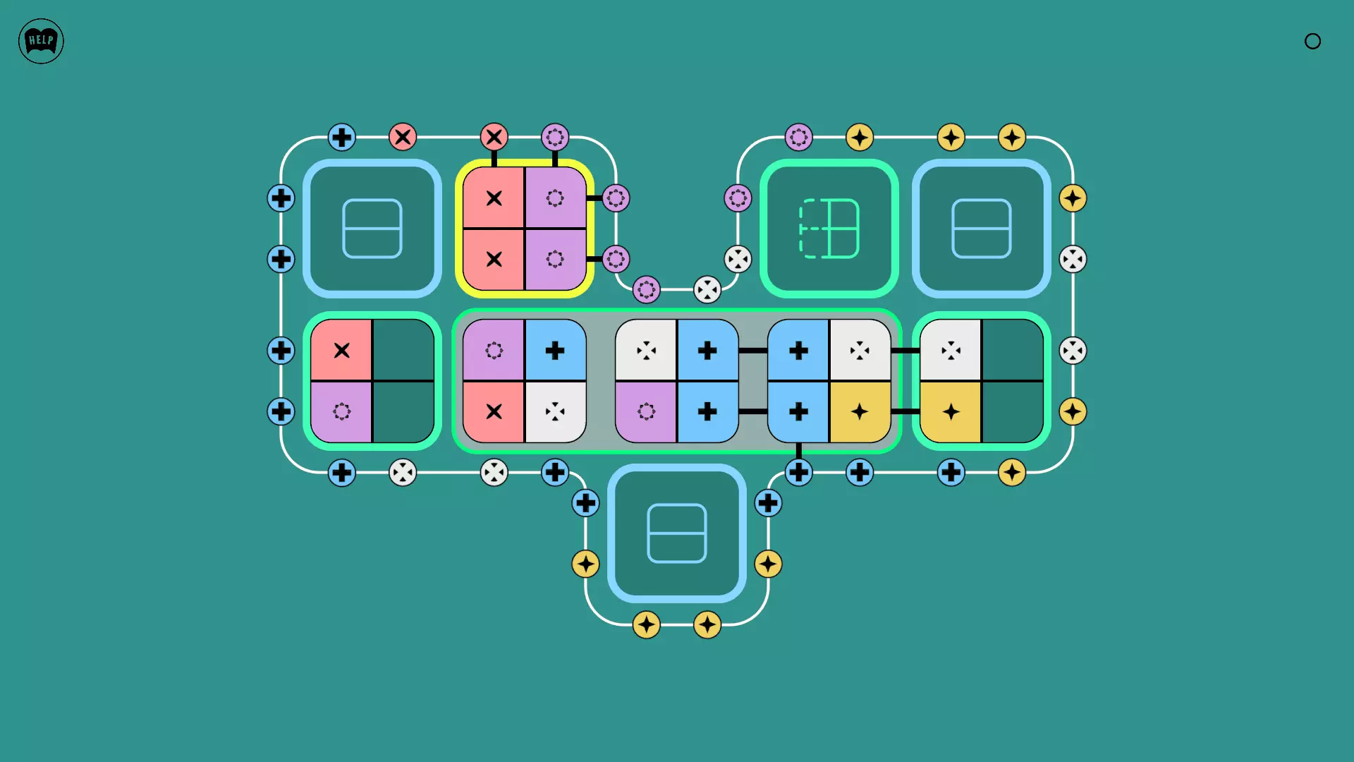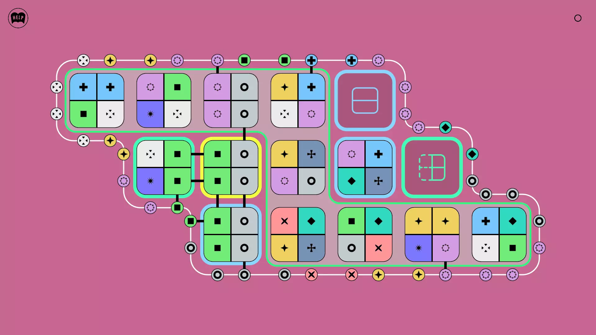 《Lines On Sides》关卡71-84图文攻略 简介 前18个关卡仅提供解决方案,因为解决这些关卡只需旋转或交换方块。 第19关及后续关卡包含步骤说明,解释如何分割、复制和转移方块。 由于Steam的限制,我不得不将本攻略分为两部分。 规则 旋转方块,直到方块上的图标与线条上或相邻方块上的符号匹配。当符号匹配时,它们之间会绘制一条线。 第7关引入了交换被绿线圈住的方块的功能。第14关新增了无法旋转或移动的方块,这类方块外有粗黑线环绕。 第19关新增了分裂平台,该平台外有蓝色线条环绕。此平台可将方块分裂为两个,或将两个方块合并为一个。