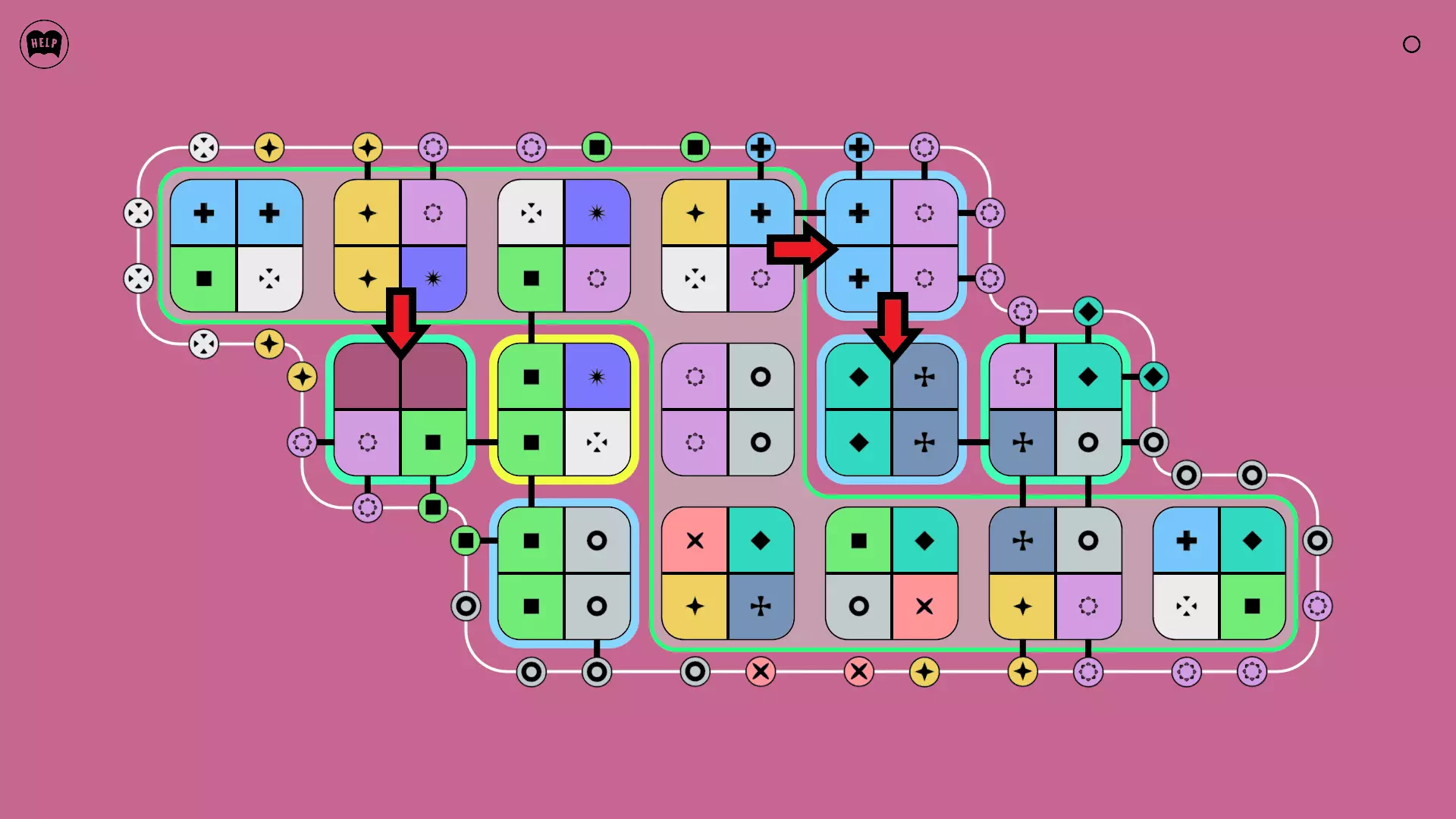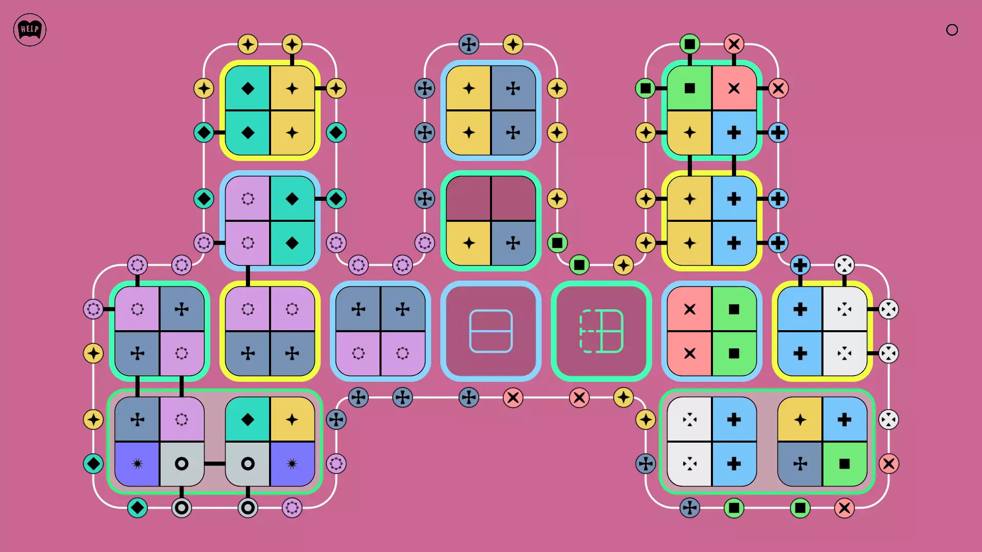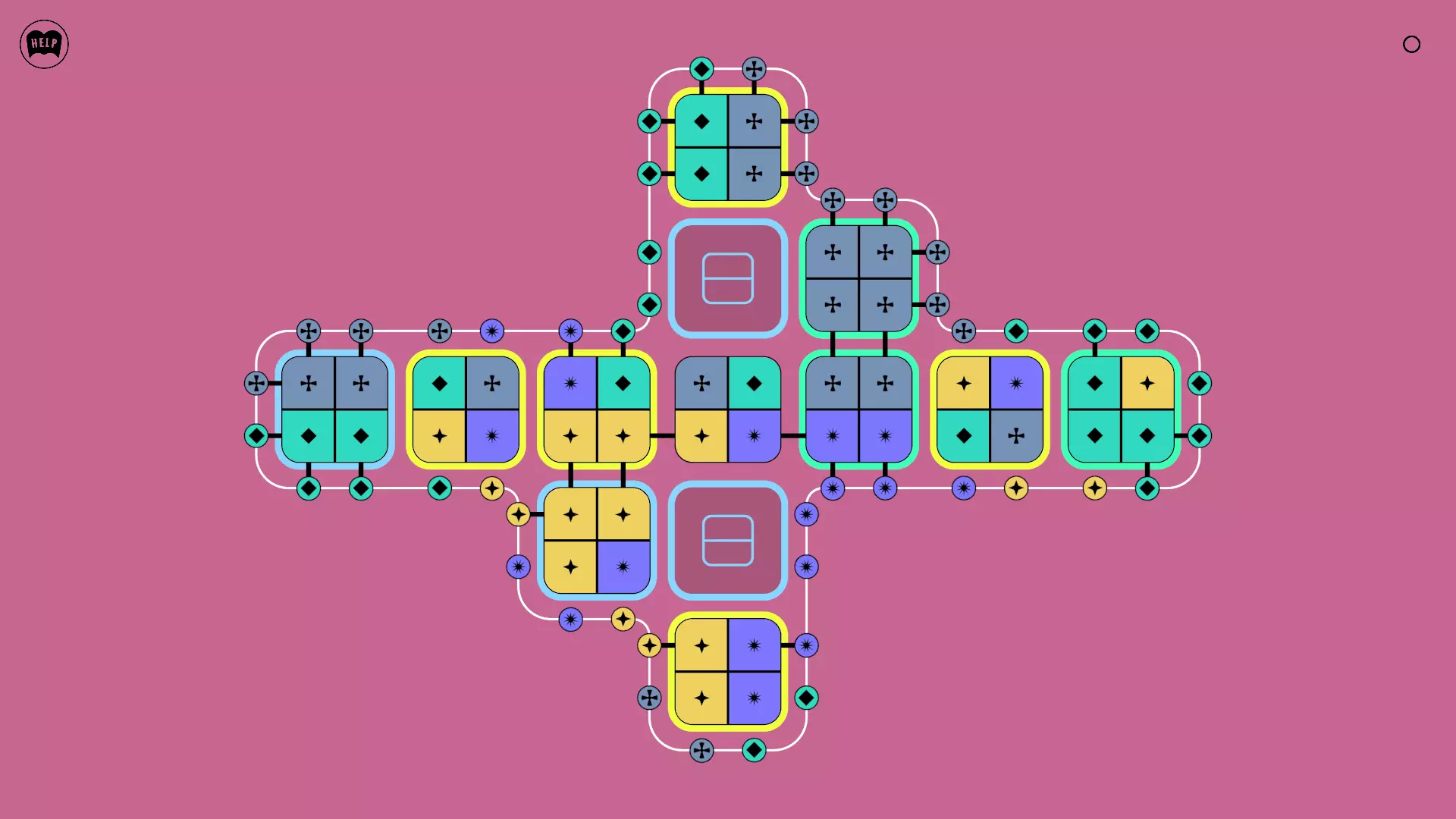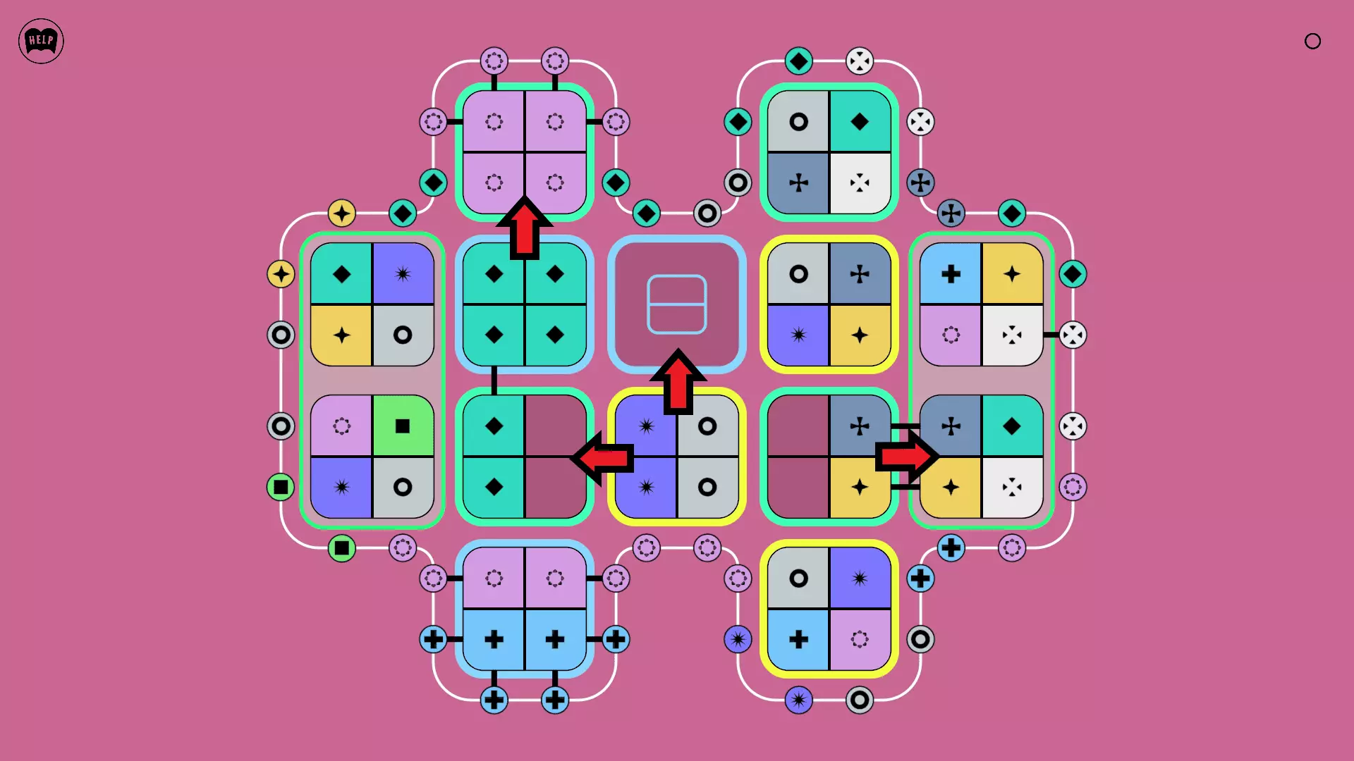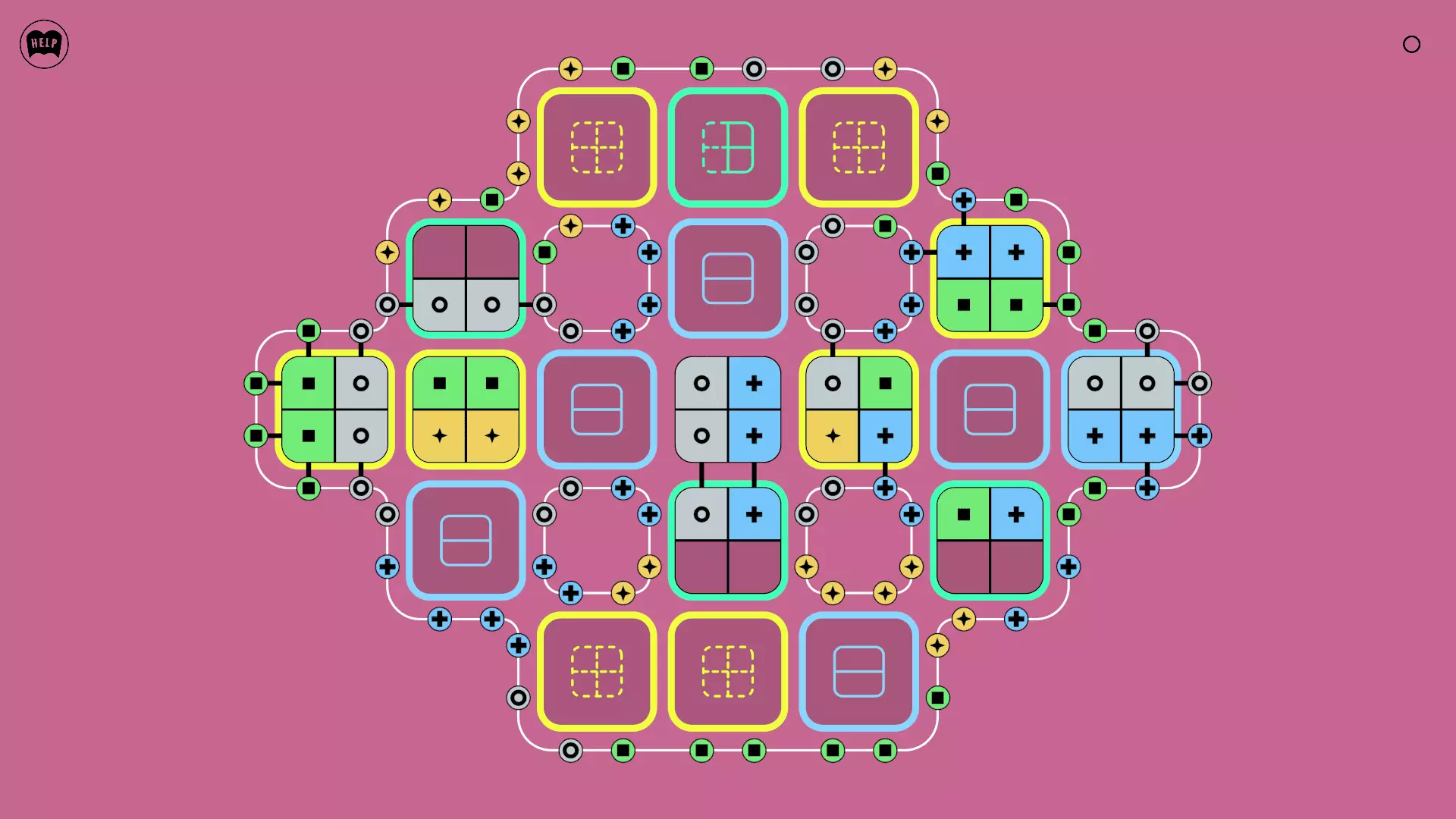 《Lines On Sides》关卡71-84图文攻略 简介 前18个关卡仅提供解决方案,因为解决这些关卡只需旋转或交换方块。 第19关及后续关卡包含步骤说明,解释如何分割、复制和转移方块。 由于Steam的限制,我不得不将本攻略分为两部分。 规则 旋转方块,直到方块上的图标与线条上或相邻方块上的符号匹配。当符号匹配时,它们之间会绘制一条线。 第7关引入了交换被绿线圈住的方块的功能。第14关新增了无法旋转或移动的方块,这类方块外有粗黑线环绕。 第19关新增了分裂平台,该平台外有蓝色线条环绕。此平台可将方块分裂为两个,或将两个方块合并为一个。