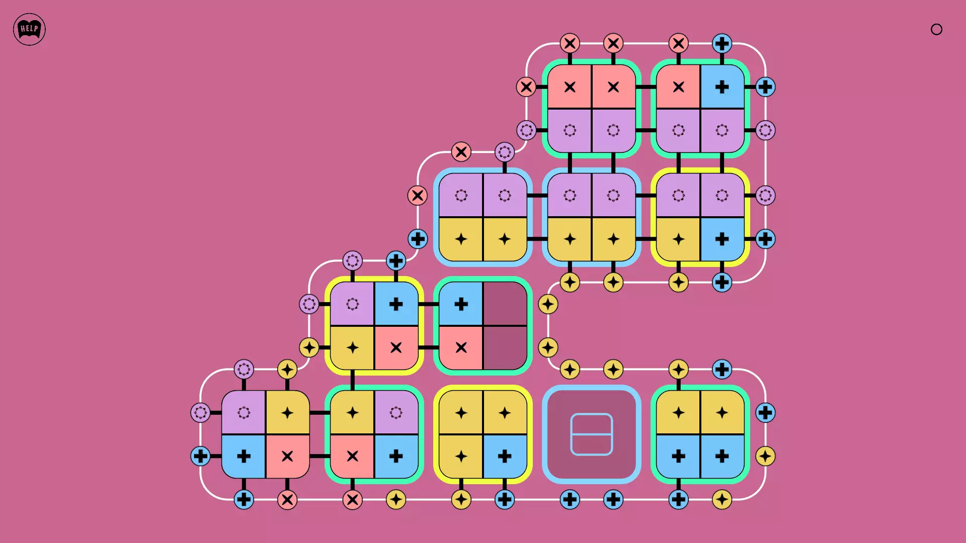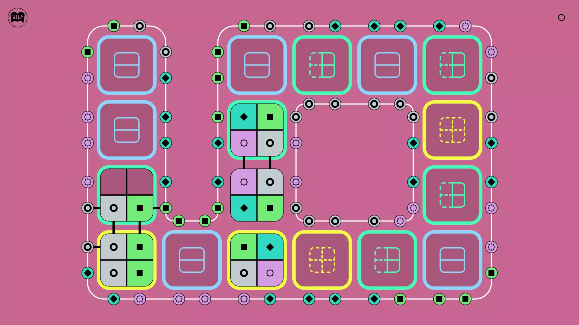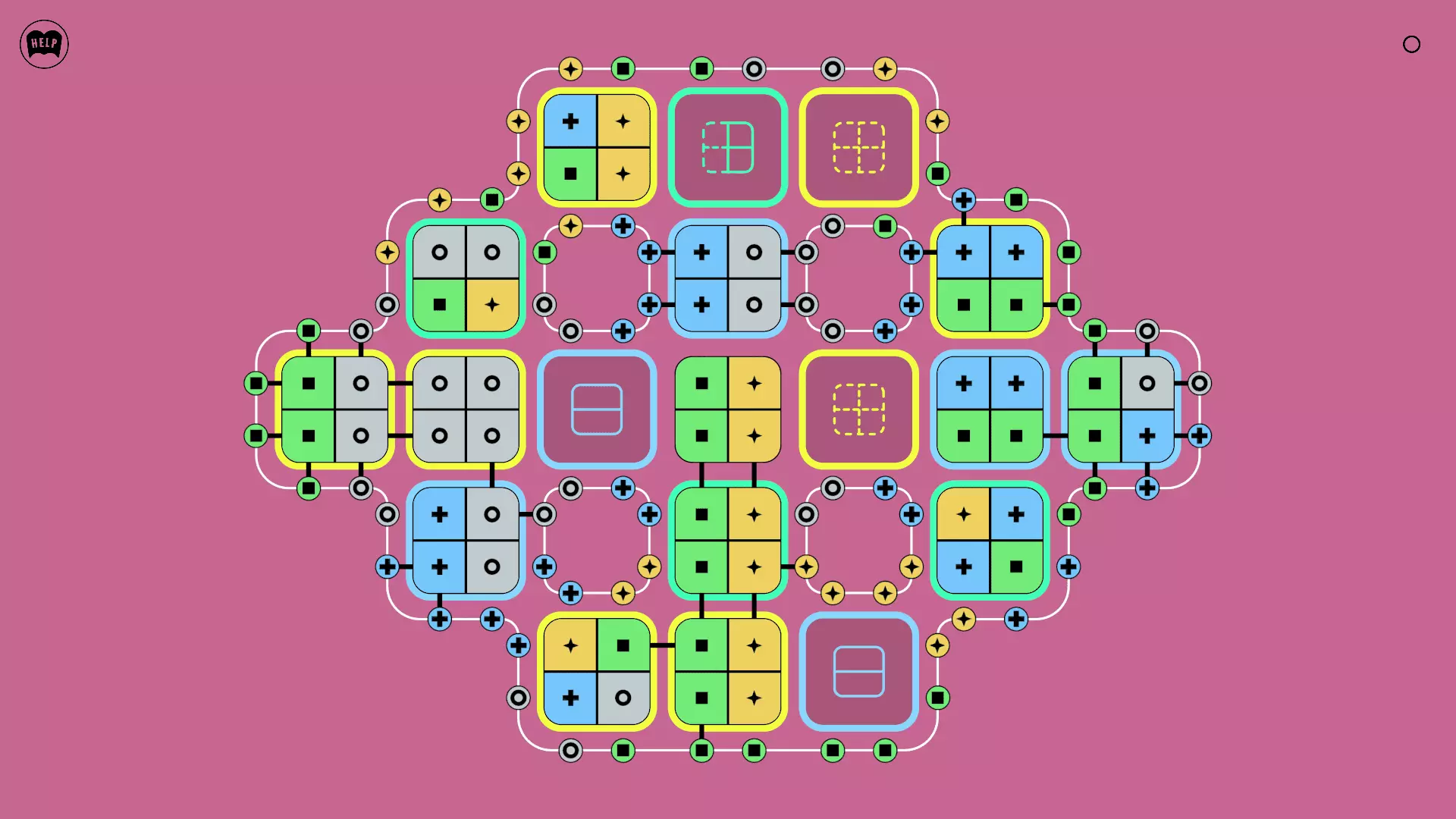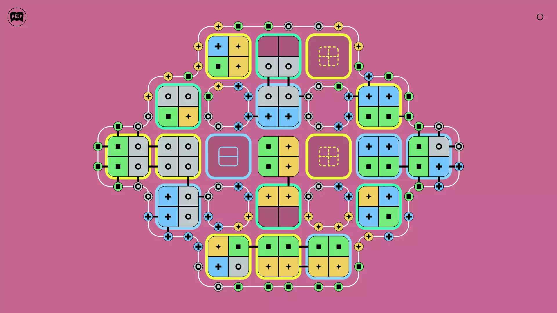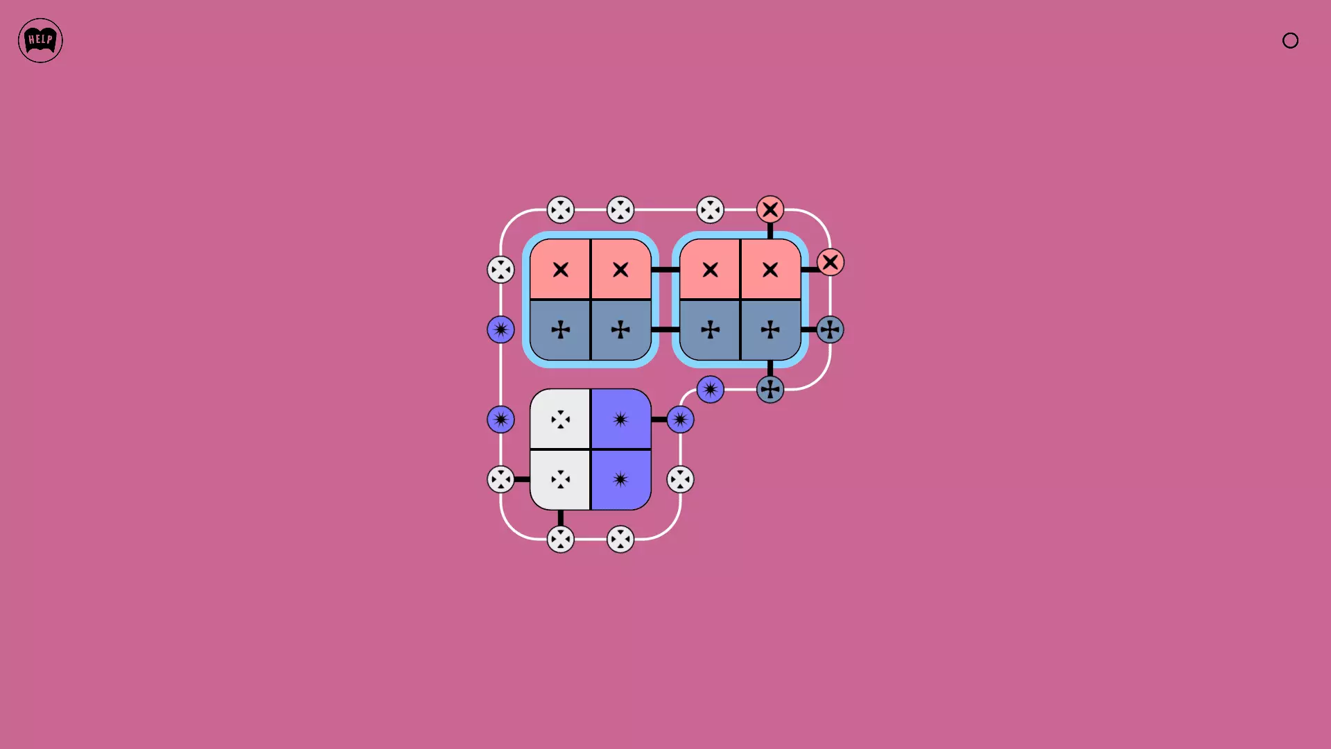 《Lines On Sides》关卡71-84图文攻略 简介 前18个关卡仅提供解决方案,因为解决这些关卡只需旋转或交换方块。 第19关及后续关卡包含步骤说明,解释如何分割、复制和转移方块。 由于Steam的限制,我不得不将本攻略分为两部分。 规则 旋转方块,直到方块上的图标与线条上或相邻方块上的符号匹配。当符号匹配时,它们之间会绘制一条线。 第7关引入了交换被绿线圈住的方块的功能。第14关新增了无法旋转或移动的方块,这类方块外有粗黑线环绕。 第19关新增了分裂平台,该平台外有蓝色线条环绕。此平台可将方块分裂为两个,或将两个方块合并为一个。