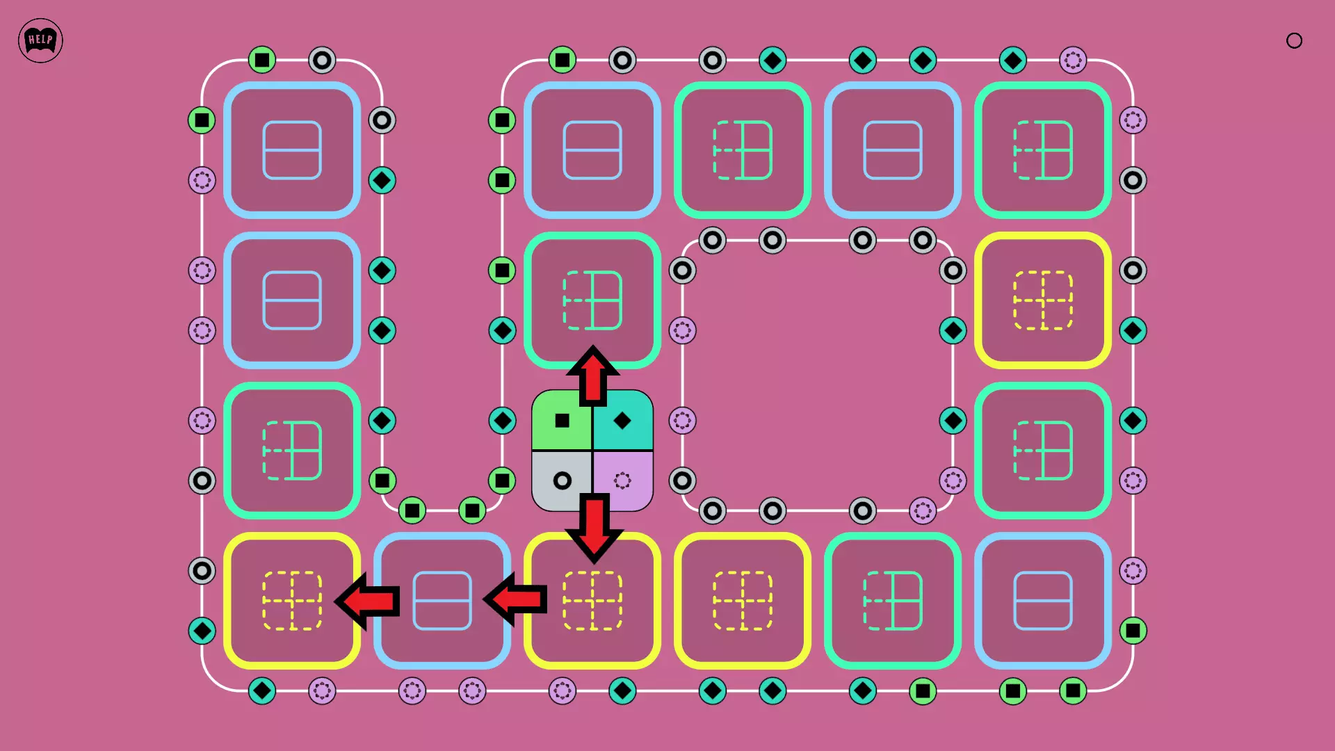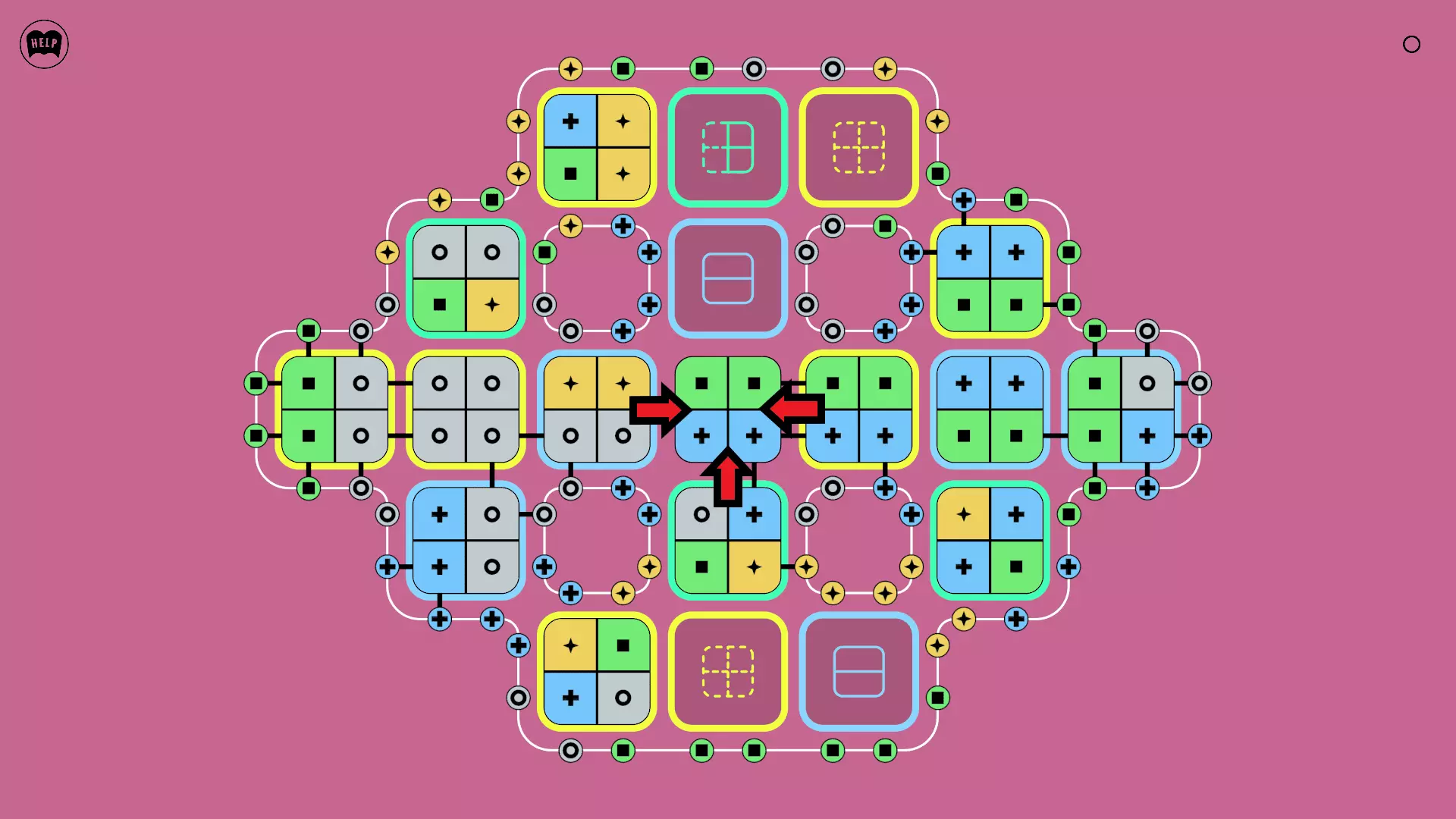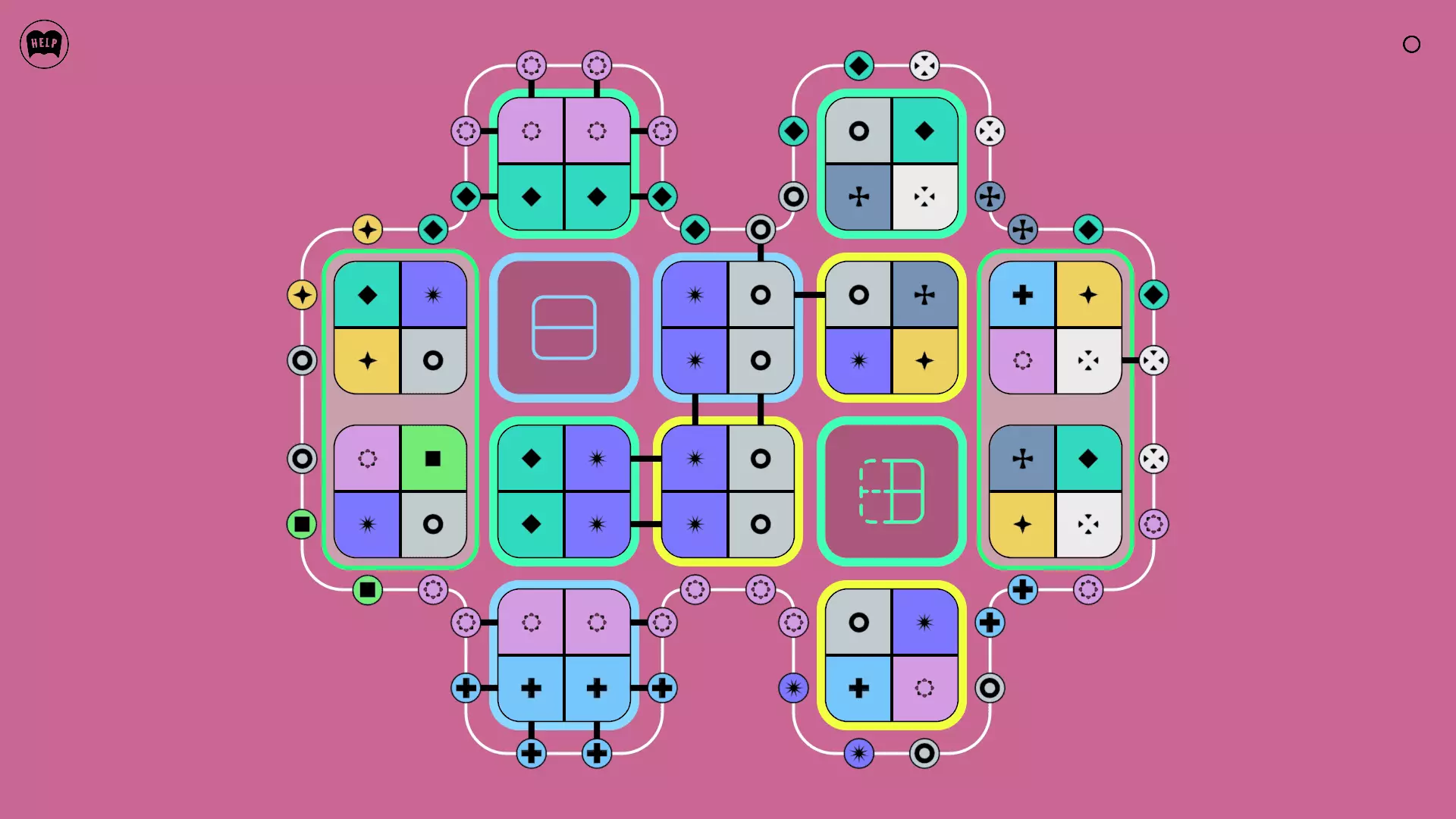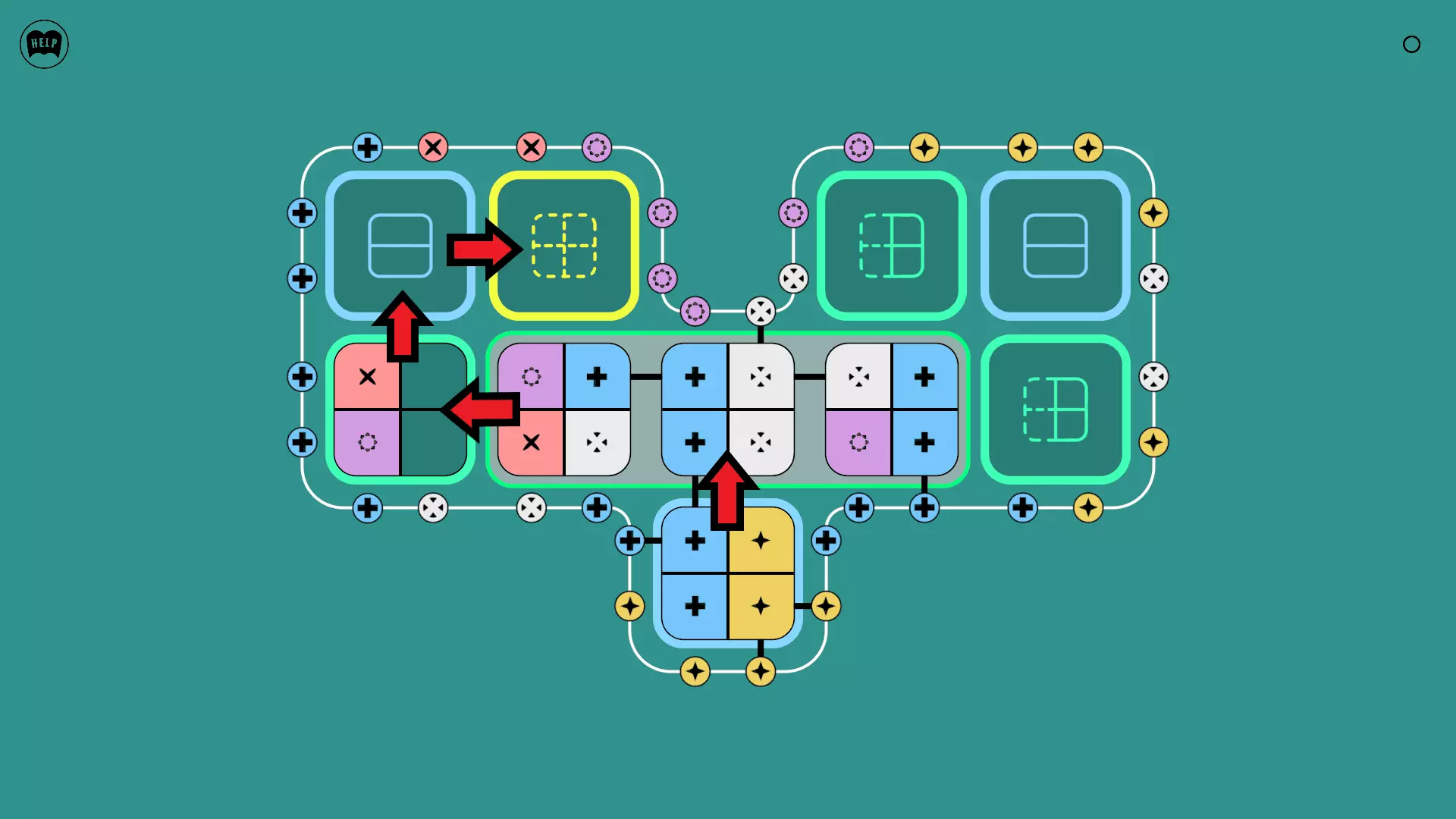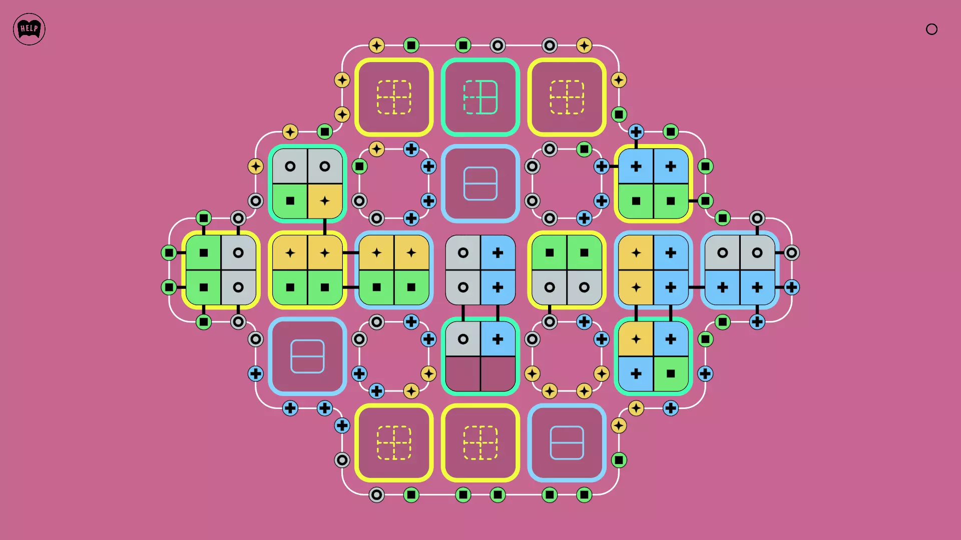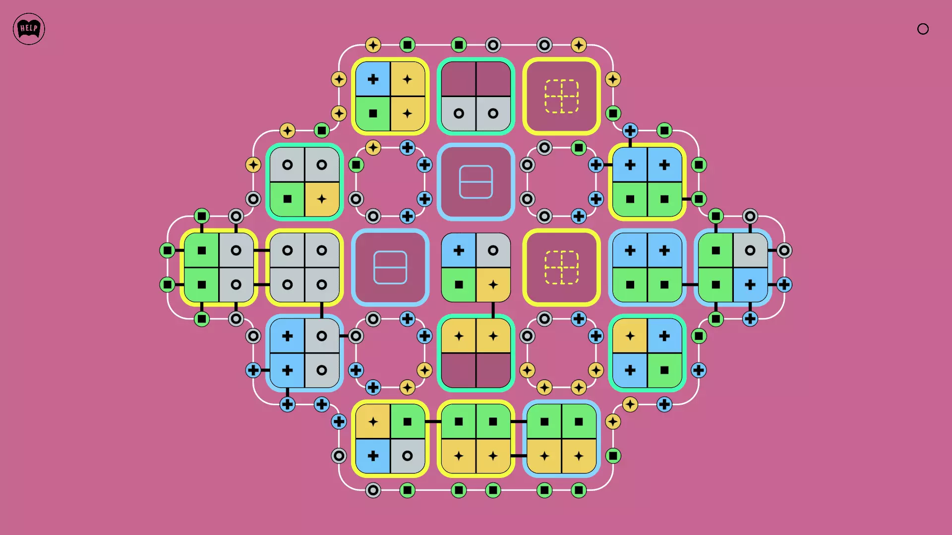 《Lines On Sides》关卡71-84图文攻略 简介 前18个关卡仅提供解决方案,因为解决这些关卡只需旋转或交换方块。 第19关及后续关卡包含步骤说明,解释如何分割、复制和转移方块。 由于Steam的限制,我不得不将本攻略分为两部分。 规则 旋转方块,直到方块上的图标与线条上或相邻方块上的符号匹配。当符号匹配时,它们之间会绘制一条线。 第7关引入了交换被绿线圈住的方块的功能。第14关新增了无法旋转或移动的方块,这类方块外有粗黑线环绕。 第19关新增了分裂平台,该平台外有蓝色线条环绕。此平台可将方块分裂为两个,或将两个方块合并为一个。