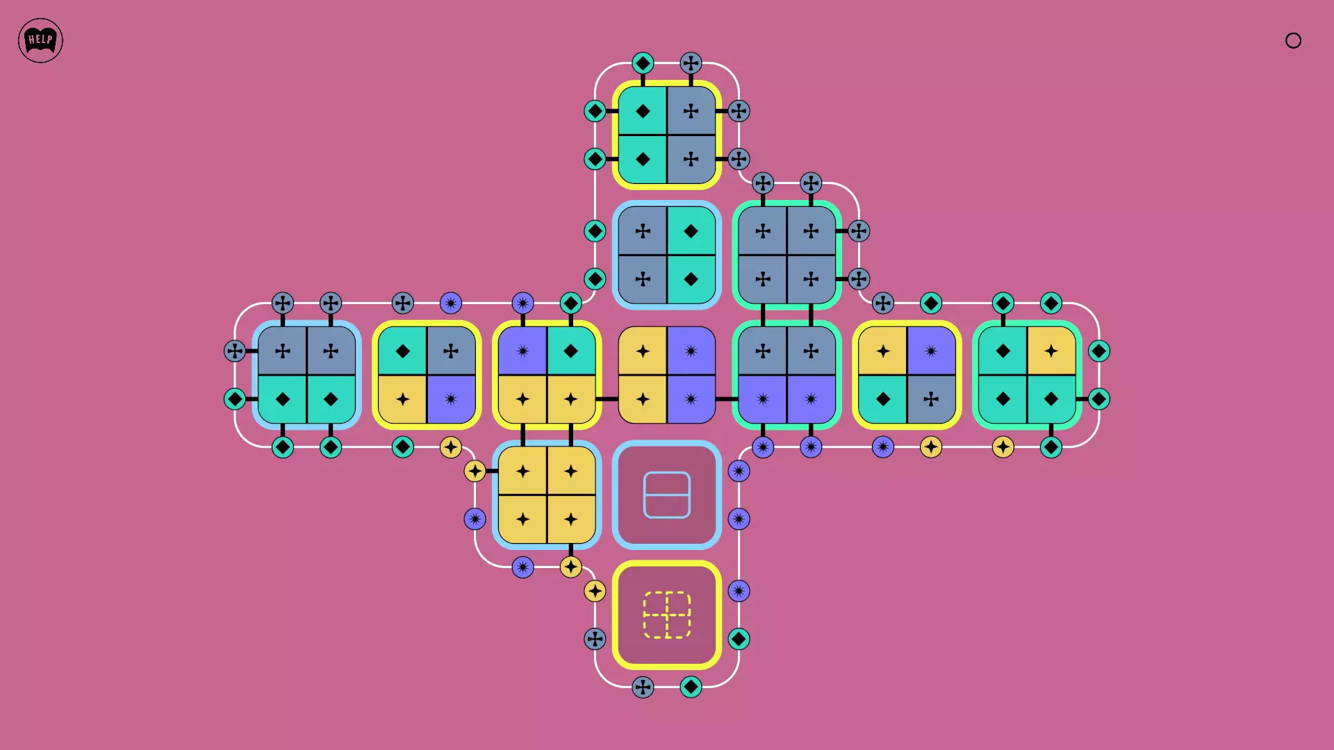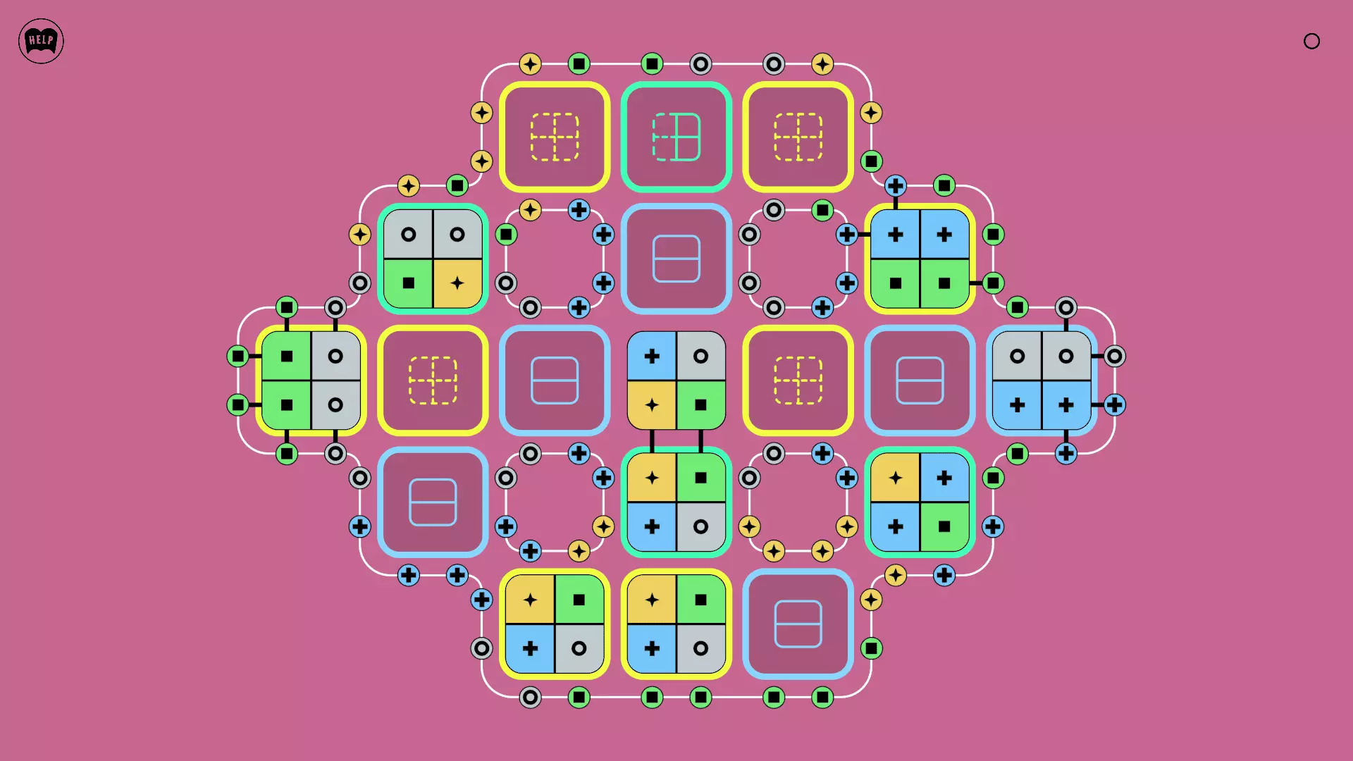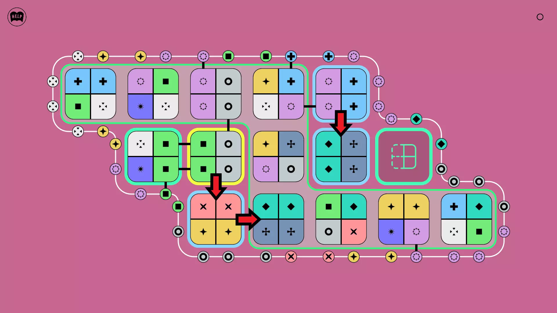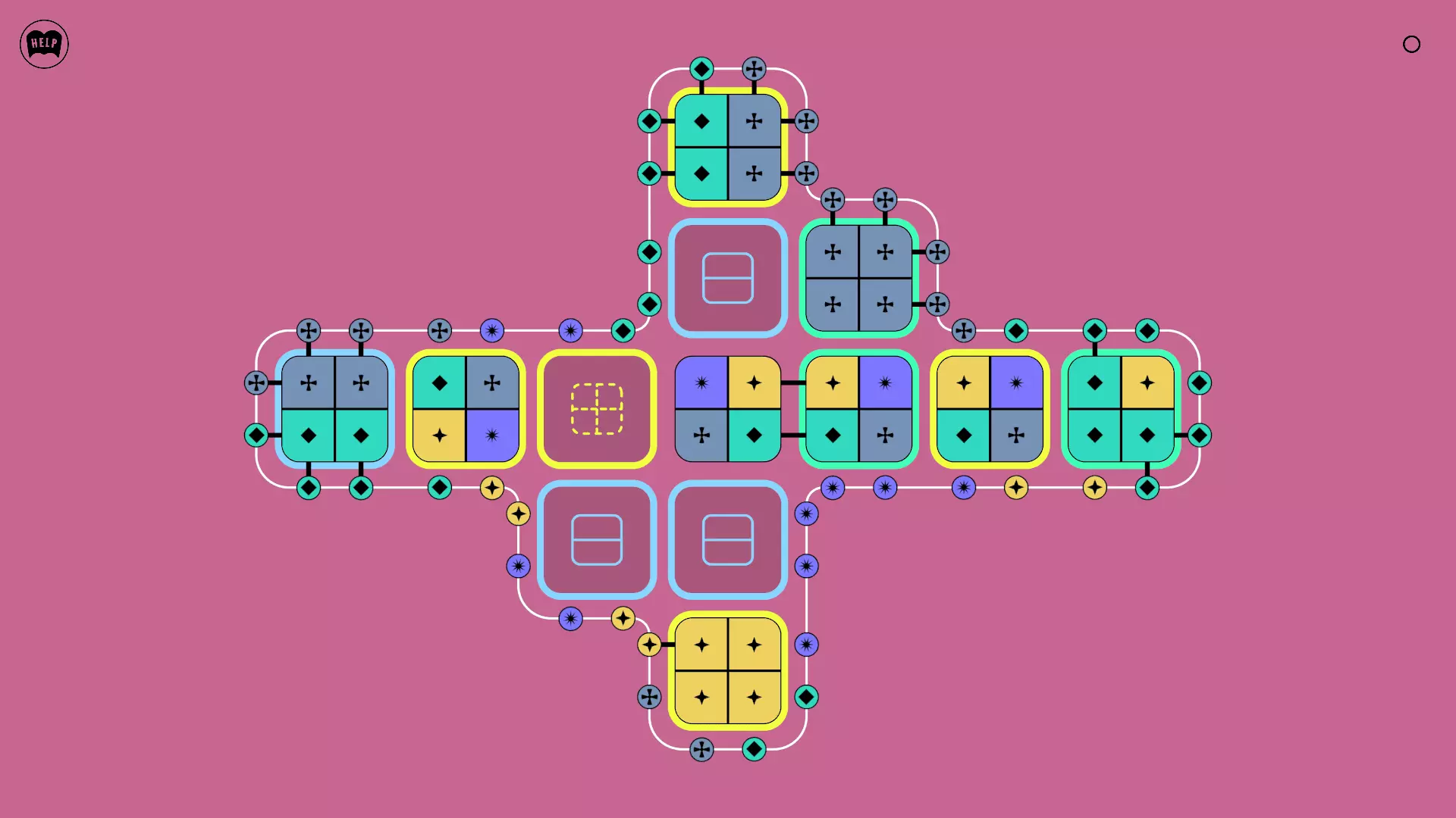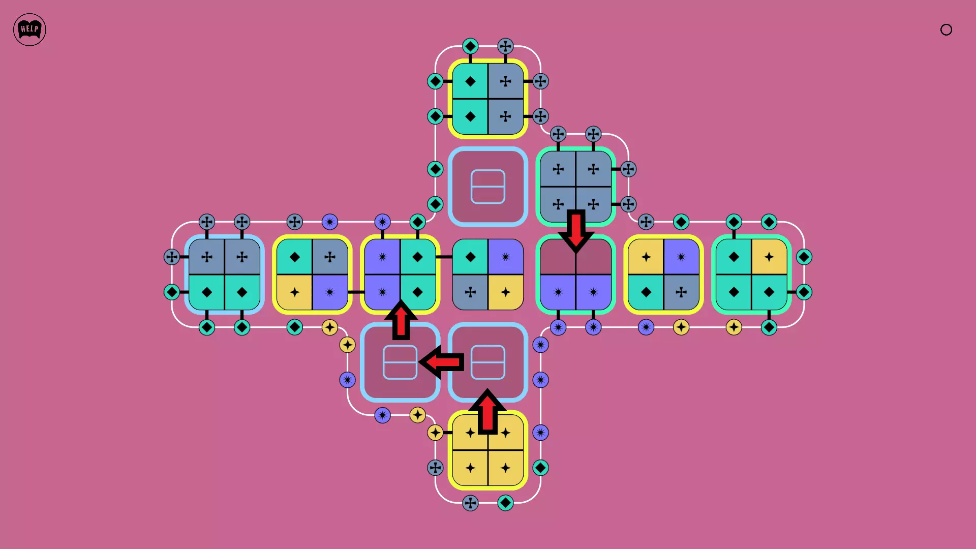 《Lines On Sides》关卡71-84图文攻略 简介 前18个关卡仅提供解决方案,因为解决这些关卡只需旋转或交换方块。 第19关及后续关卡包含步骤说明,解释如何分割、复制和转移方块。 由于Steam的限制,我不得不将本攻略分为两部分。 规则 旋转方块,直到方块上的图标与线条上或相邻方块上的符号匹配。当符号匹配时,它们之间会绘制一条线。 第7关引入了交换被绿线圈住的方块的功能。第14关新增了无法旋转或移动的方块,这类方块外有粗黑线环绕。 第19关新增了分裂平台,该平台外有蓝色线条环绕。此平台可将方块分裂为两个,或将两个方块合并为一个。