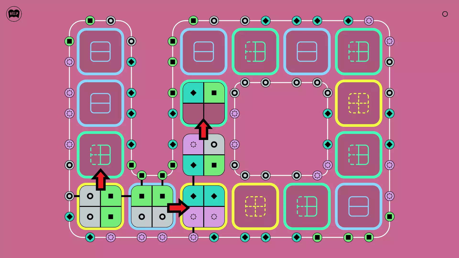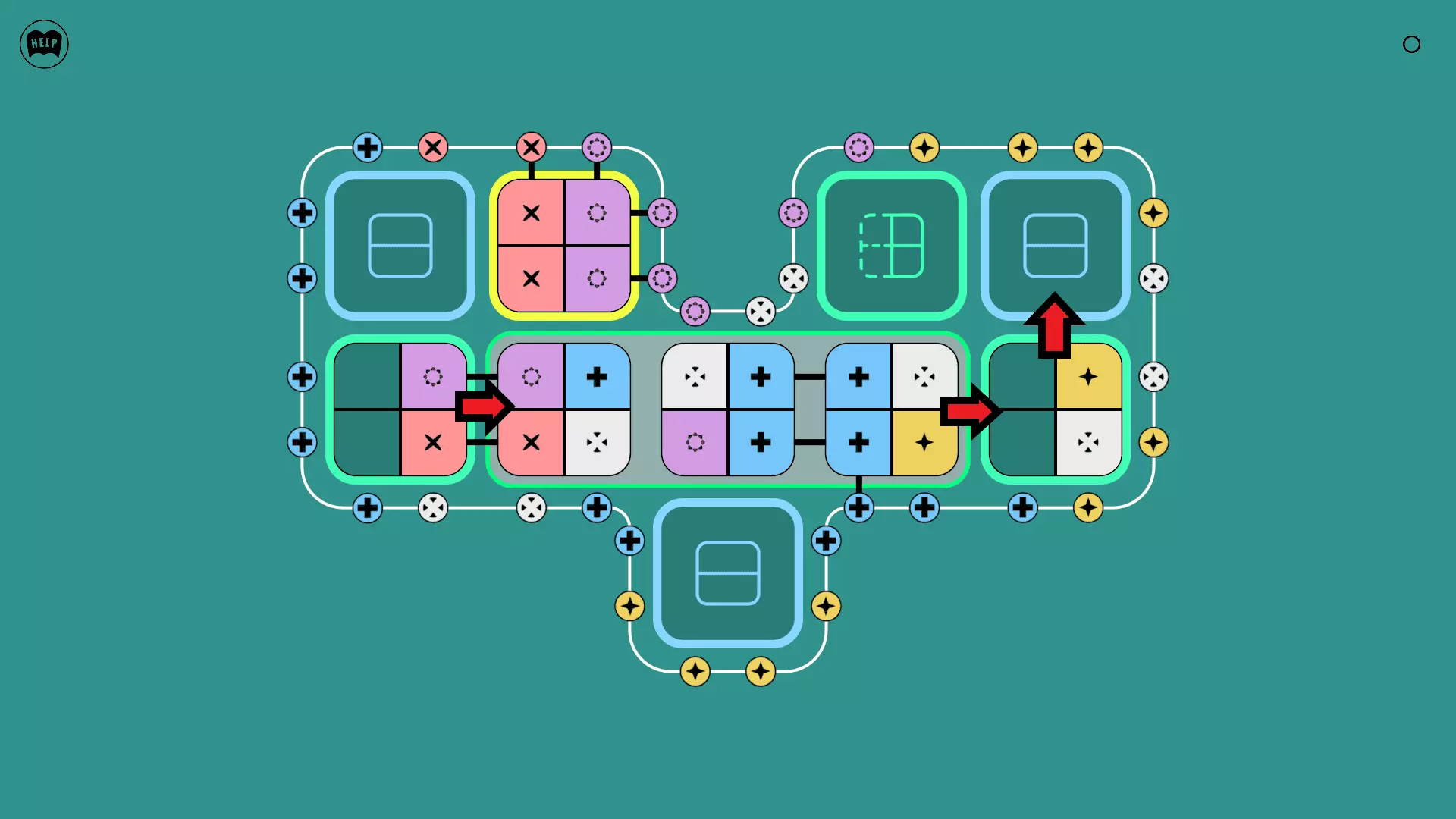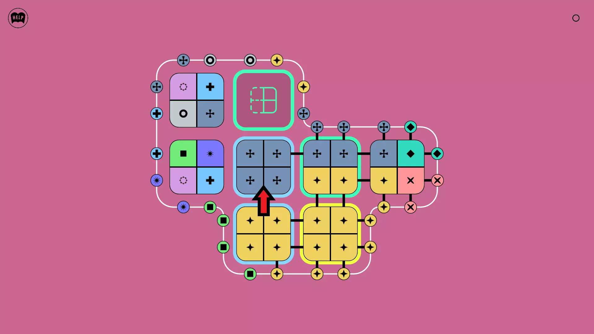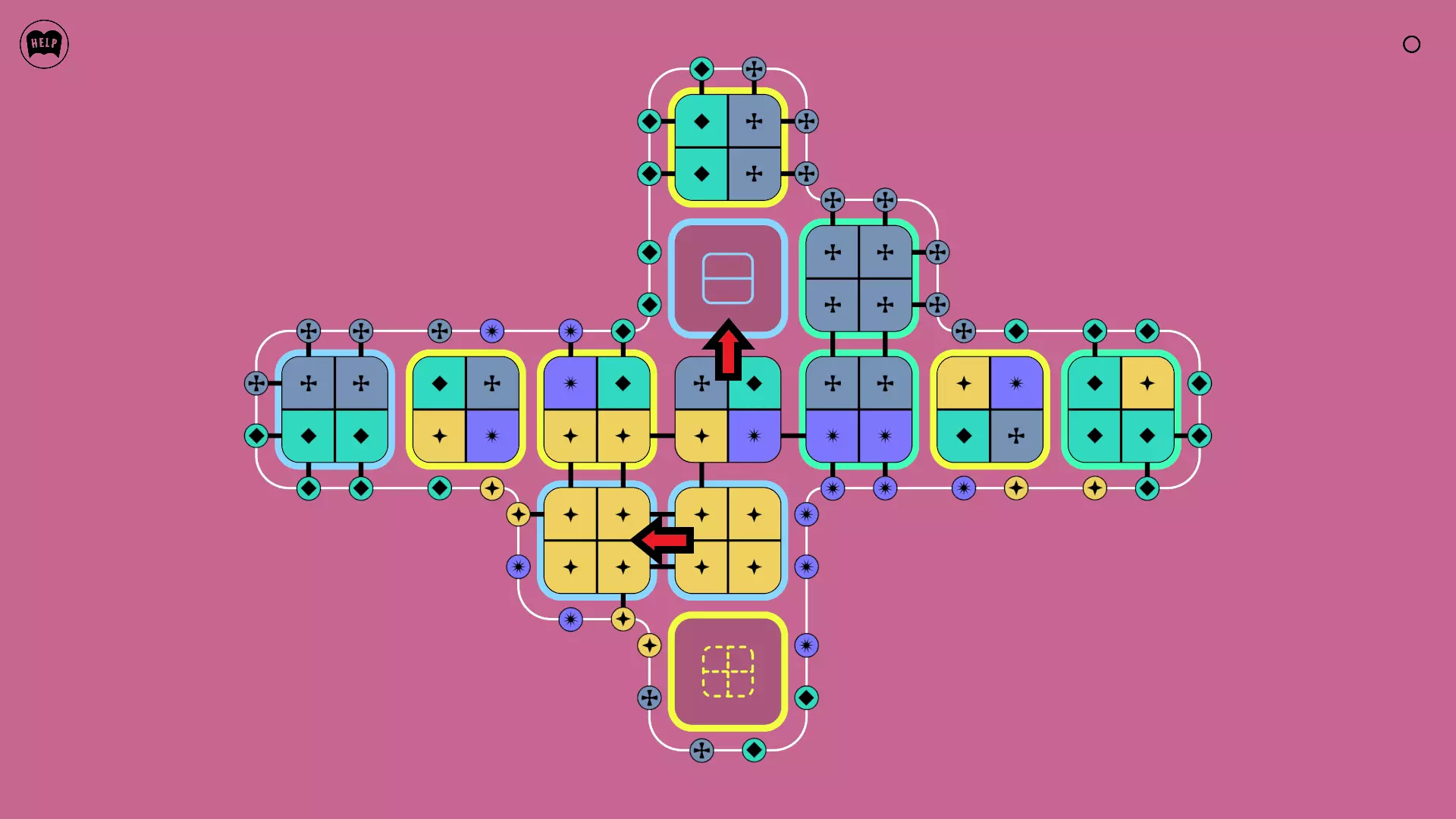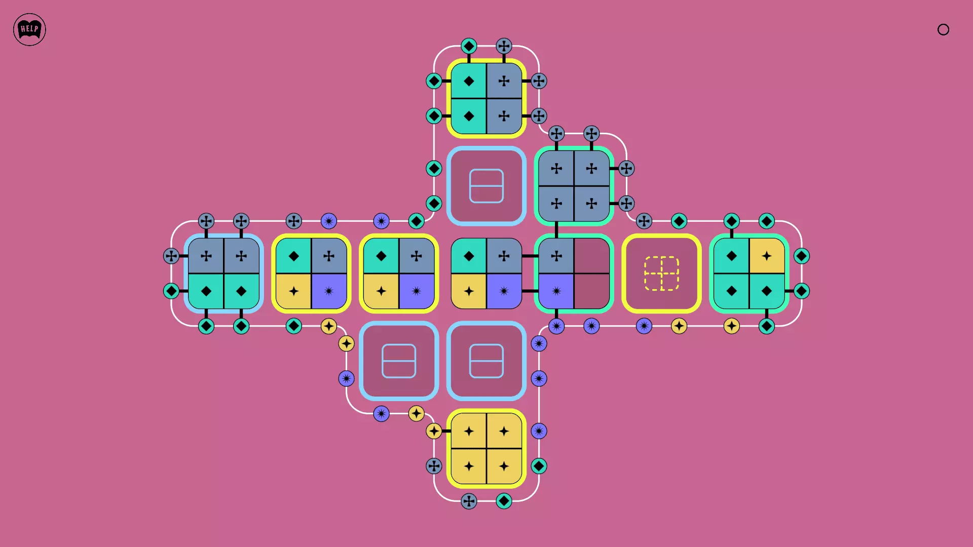 《Lines On Sides》关卡71-84图文攻略 简介 前18个关卡仅提供解决方案,因为解决这些关卡只需旋转或交换方块。 第19关及后续关卡包含步骤说明,解释如何分割、复制和转移方块。 由于Steam的限制,我不得不将本攻略分为两部分。 规则 旋转方块,直到方块上的图标与线条上或相邻方块上的符号匹配。当符号匹配时,它们之间会绘制一条线。 第7关引入了交换被绿线圈住的方块的功能。第14关新增了无法旋转或移动的方块,这类方块外有粗黑线环绕。 第19关新增了分裂平台,该平台外有蓝色线条环绕。此平台可将方块分裂为两个,或将两个方块合并为一个。
