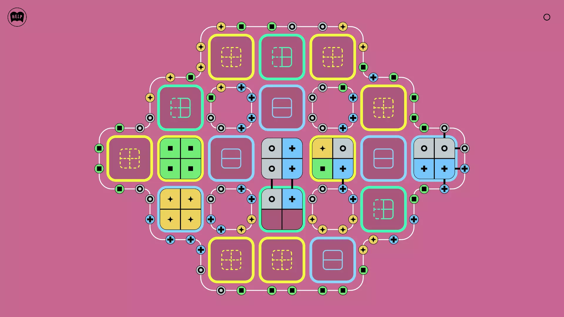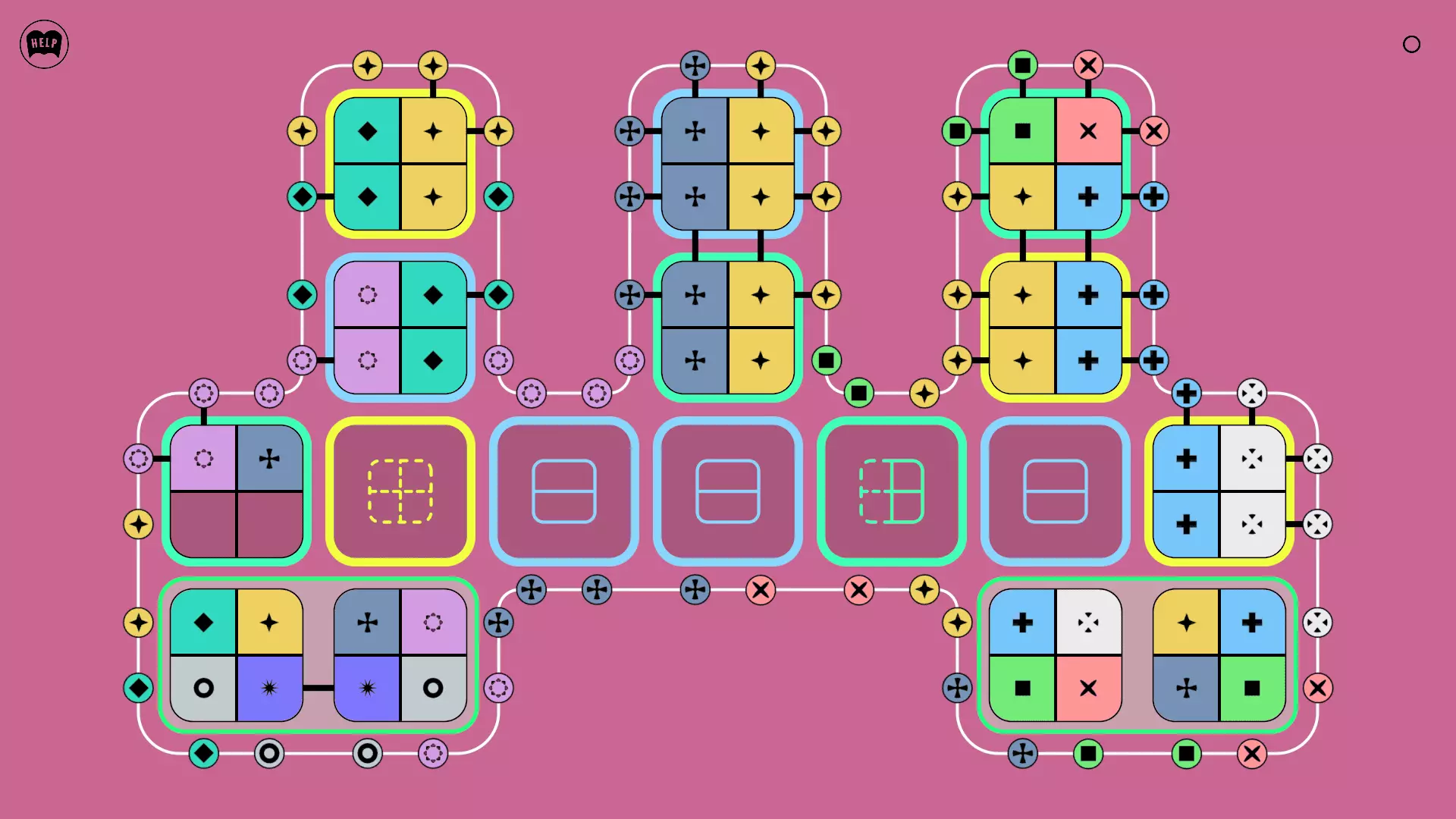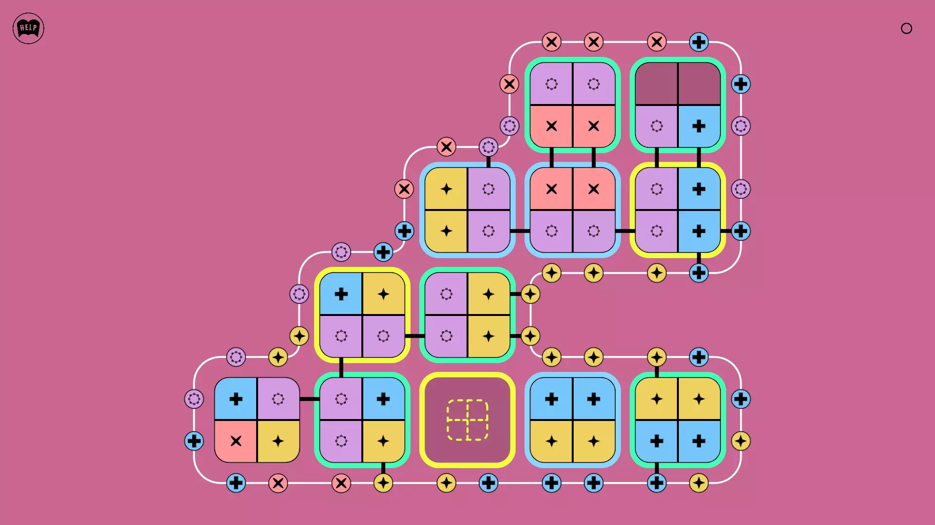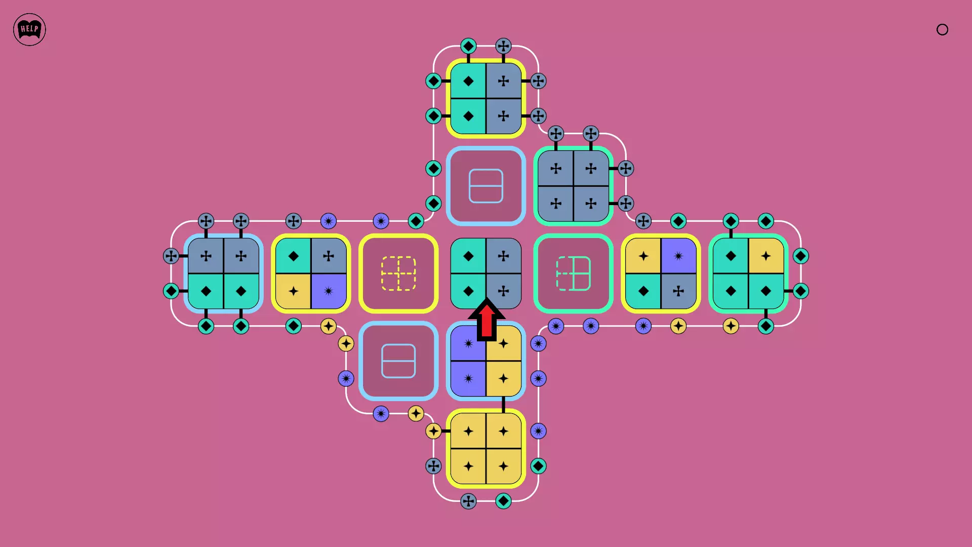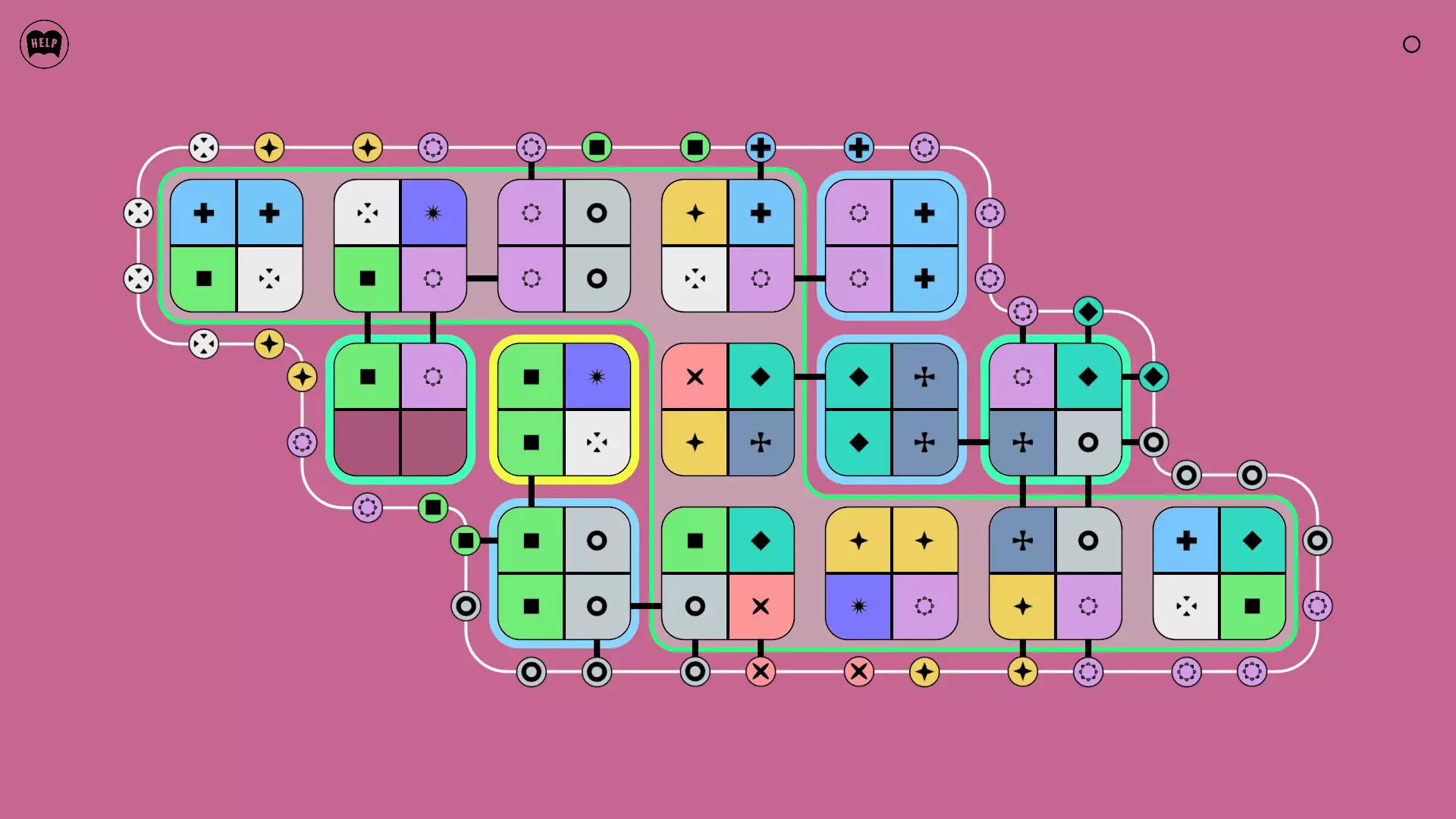 《Lines On Sides》关卡71-84图文攻略 简介 前18个关卡仅提供解决方案,因为解决这些关卡只需旋转或交换方块。 第19关及后续关卡包含步骤说明,解释如何分割、复制和转移方块。 由于Steam的限制,我不得不将本攻略分为两部分。 规则 旋转方块,直到方块上的图标与线条上或相邻方块上的符号匹配。当符号匹配时,它们之间会绘制一条线。 第7关引入了交换被绿线圈住的方块的功能。第14关新增了无法旋转或移动的方块,这类方块外有粗黑线环绕。 第19关新增了分裂平台,该平台外有蓝色线条环绕。此平台可将方块分裂为两个,或将两个方块合并为一个。