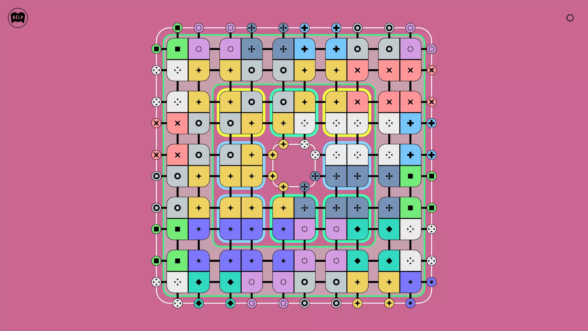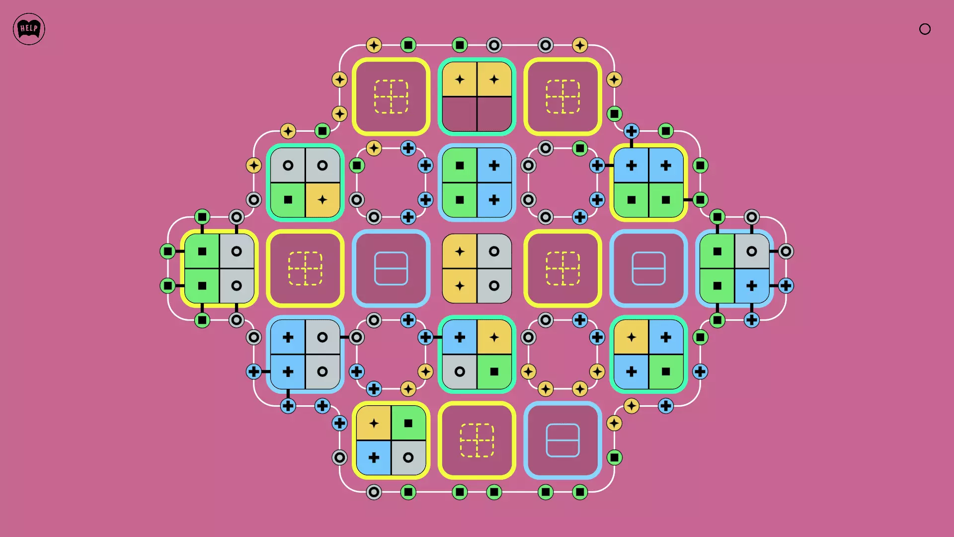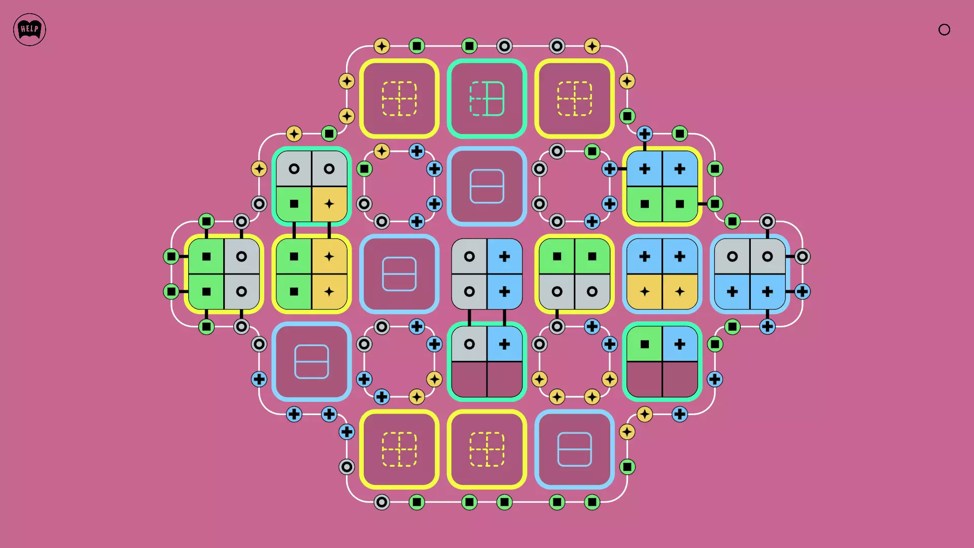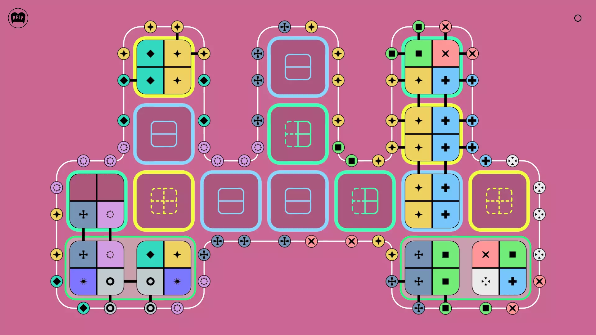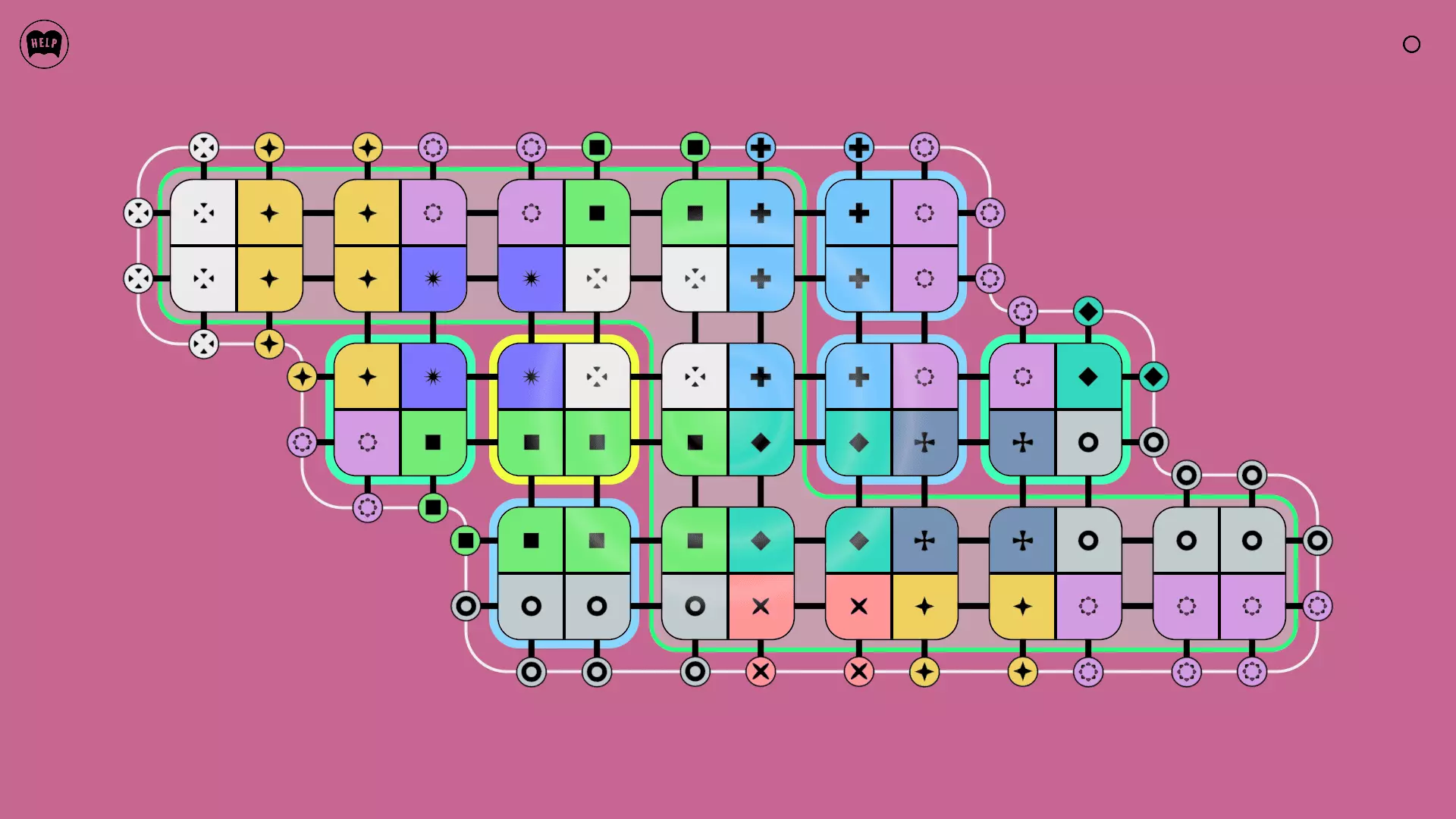 《Lines On Sides》关卡71-84图文攻略 简介 前18个关卡仅提供解决方案,因为解决这些关卡只需旋转或交换方块。 第19关及后续关卡包含步骤说明,解释如何分割、复制和转移方块。 由于Steam的限制,我不得不将本攻略分为两部分。 规则 旋转方块,直到方块上的图标与线条上或相邻方块上的符号匹配。当符号匹配时,它们之间会绘制一条线。 第7关引入了交换被绿线圈住的方块的功能。第14关新增了无法旋转或移动的方块,这类方块外有粗黑线环绕。 第19关新增了分裂平台,该平台外有蓝色线条环绕。此平台可将方块分裂为两个,或将两个方块合并为一个。