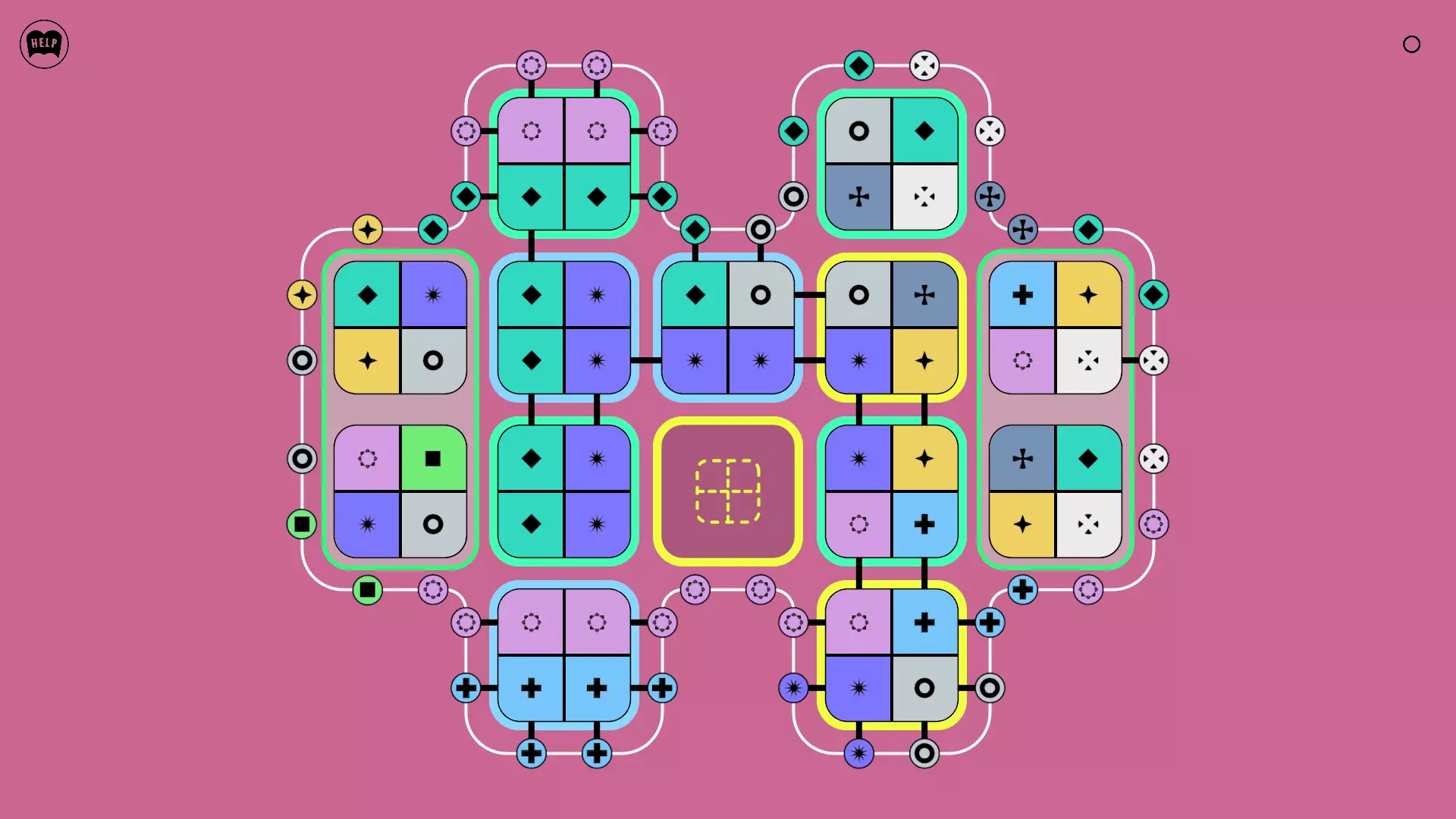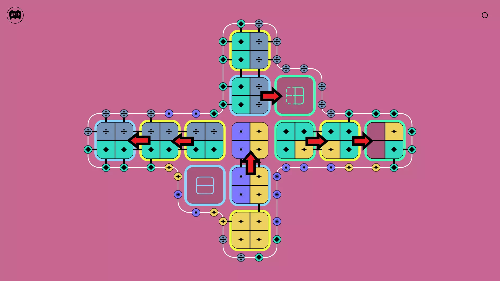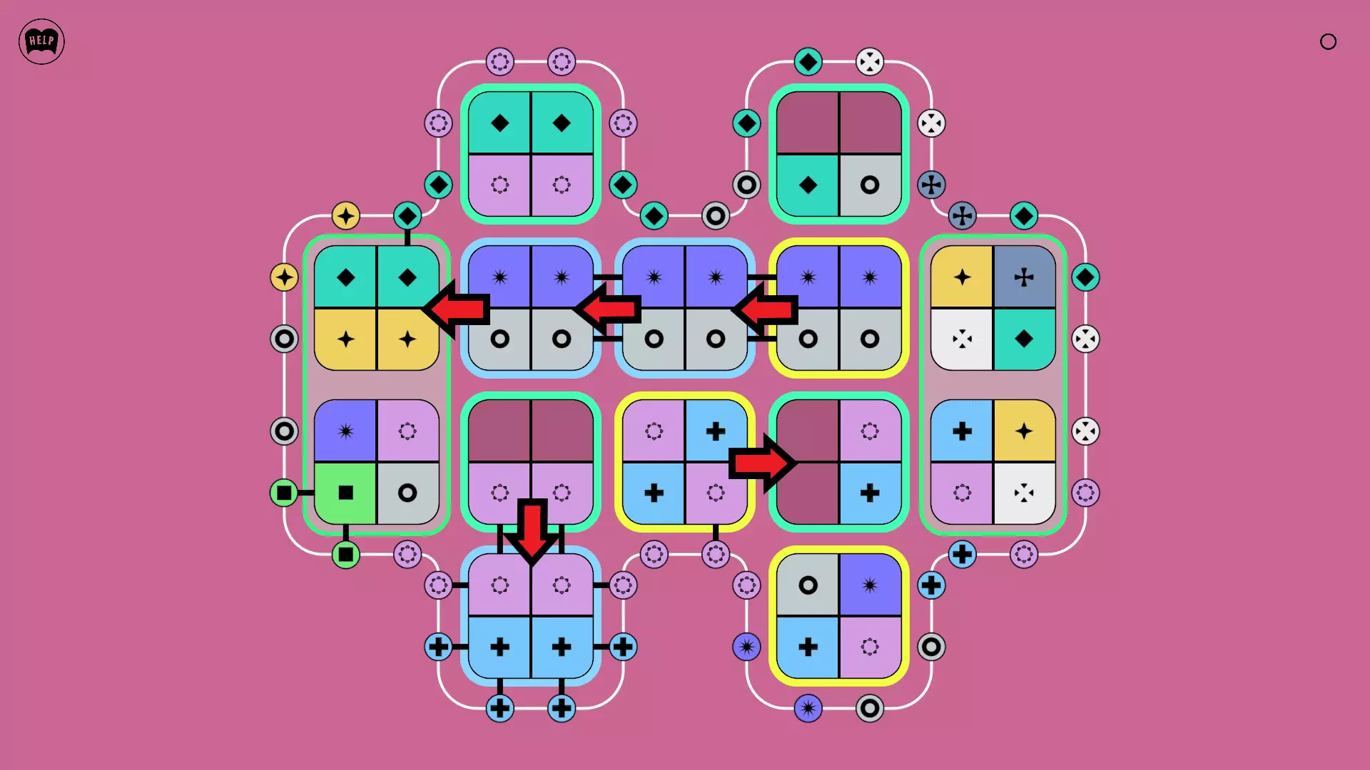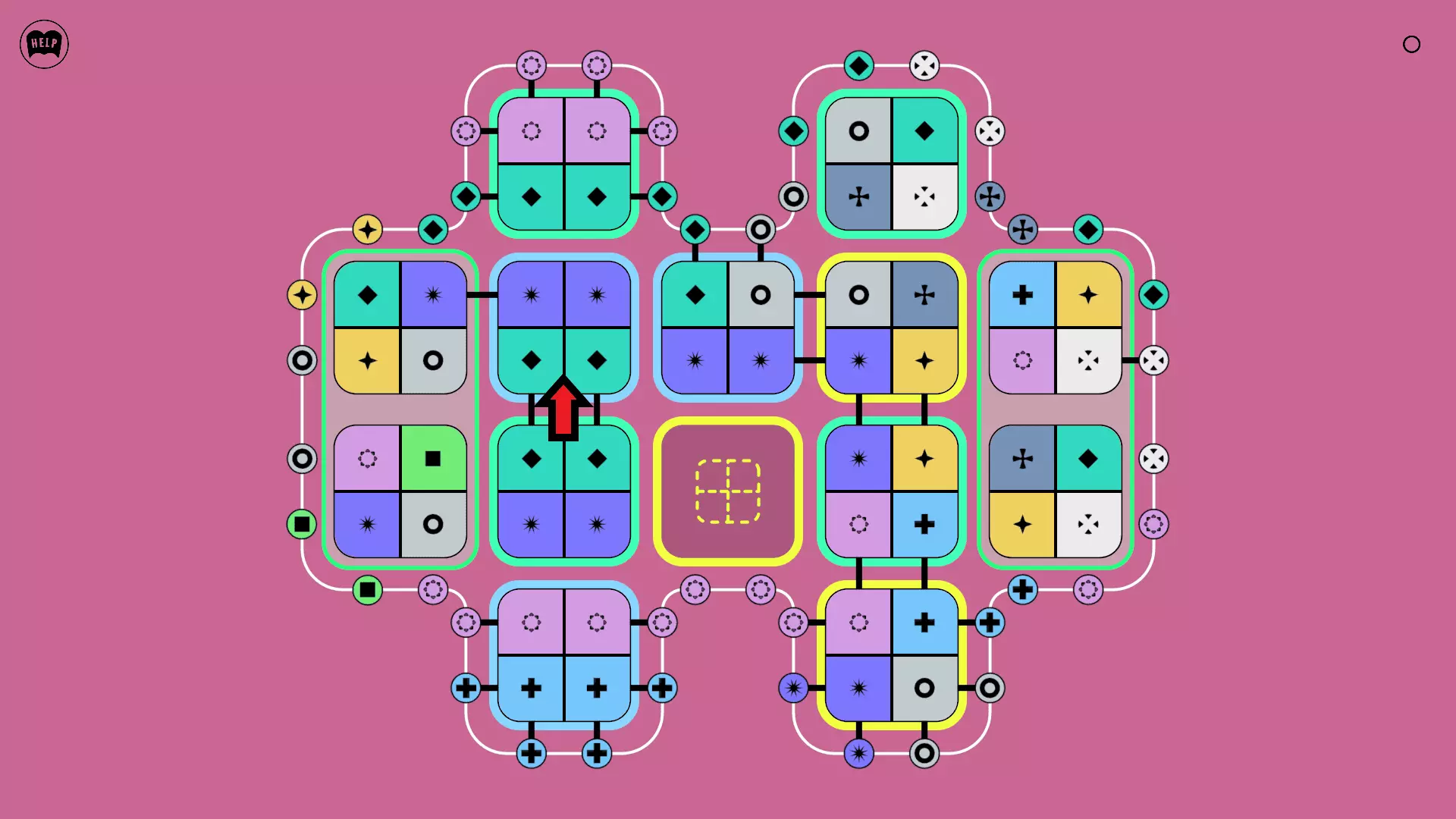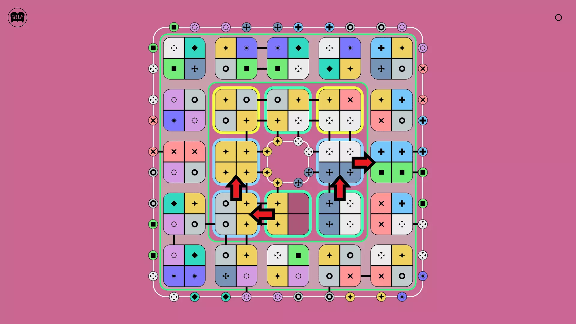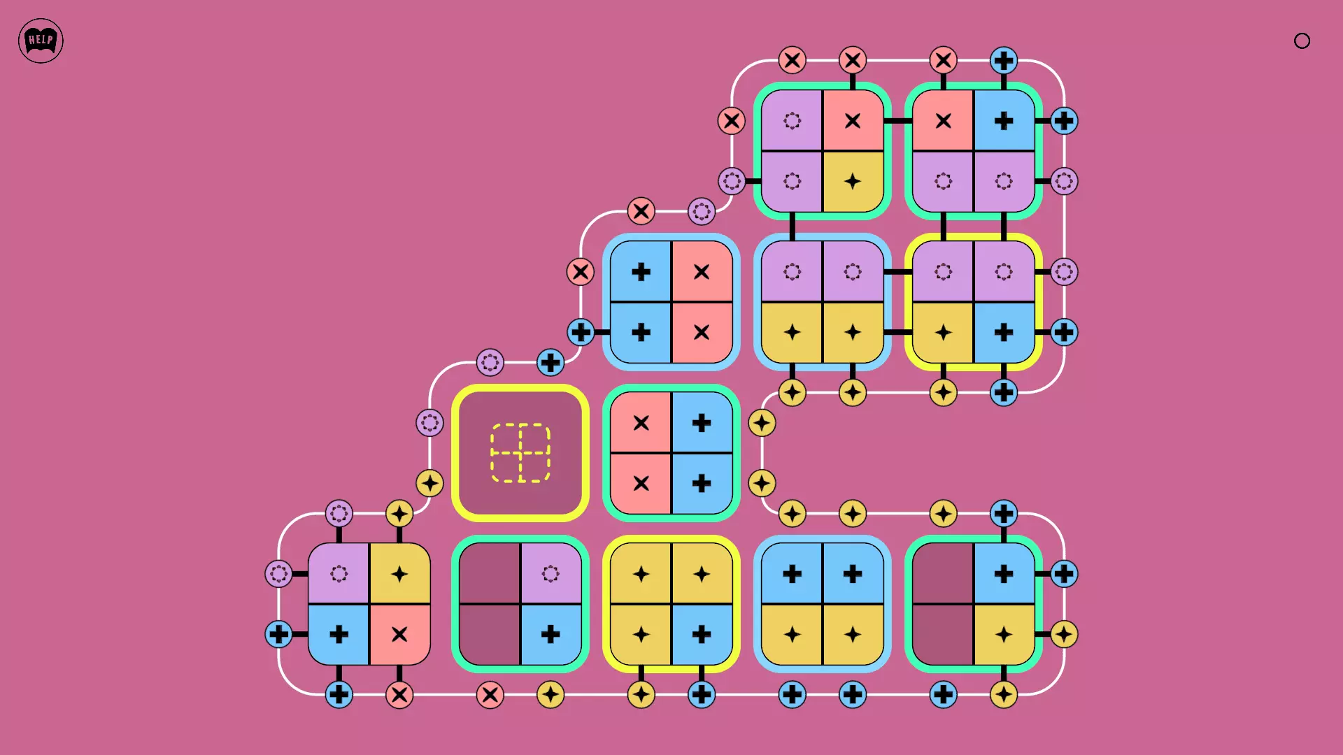 《Lines On Sides》关卡71-84图文攻略 简介 前18个关卡仅提供解决方案,因为解决这些关卡只需旋转或交换方块。 第19关及后续关卡包含步骤说明,解释如何分割、复制和转移方块。 由于Steam的限制,我不得不将本攻略分为两部分。 规则 旋转方块,直到方块上的图标与线条上或相邻方块上的符号匹配。当符号匹配时,它们之间会绘制一条线。 第7关引入了交换被绿线圈住的方块的功能。第14关新增了无法旋转或移动的方块,这类方块外有粗黑线环绕。 第19关新增了分裂平台,该平台外有蓝色线条环绕。此平台可将方块分裂为两个,或将两个方块合并为一个。