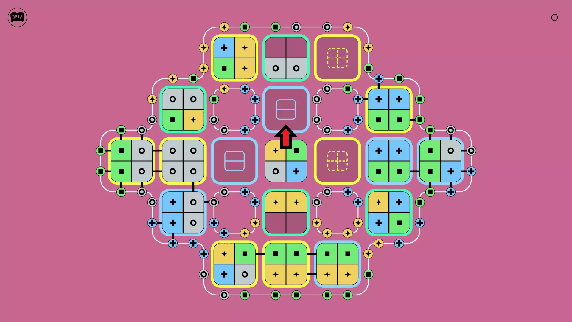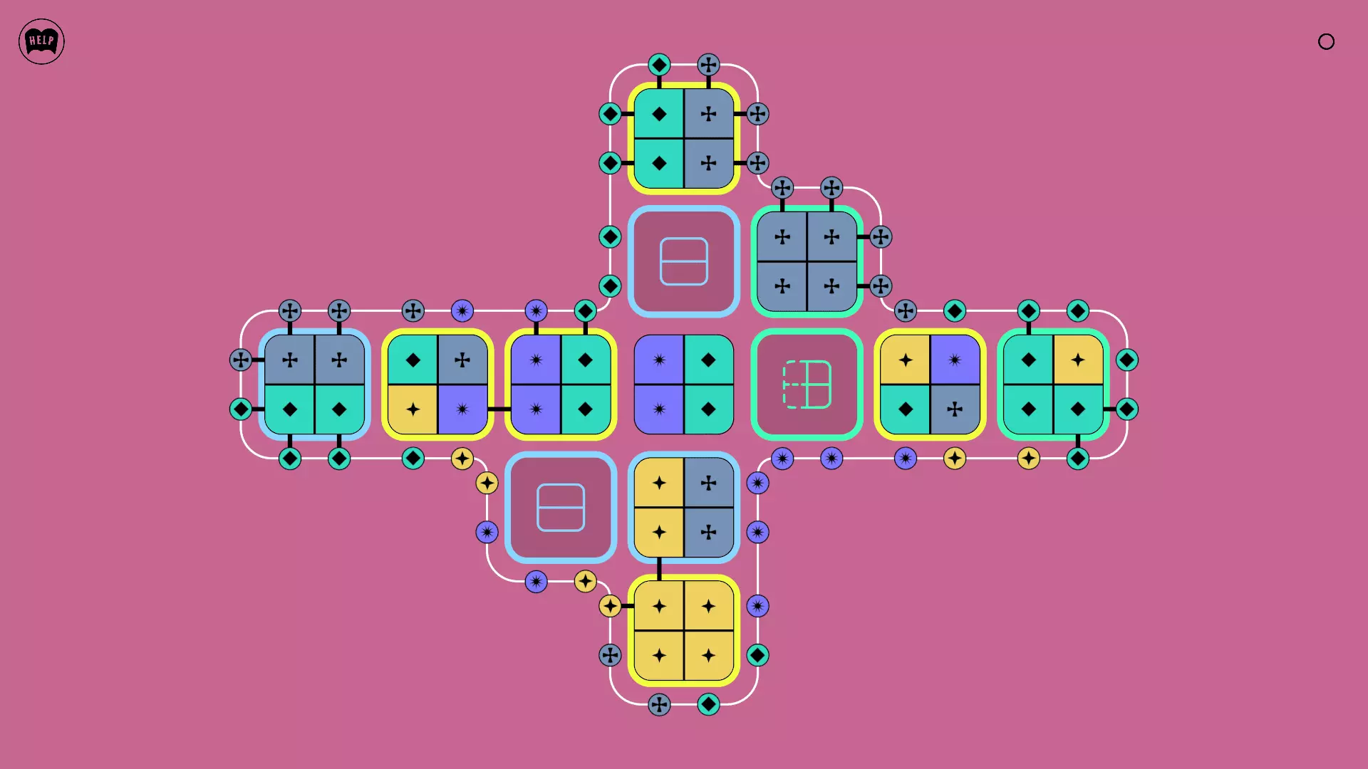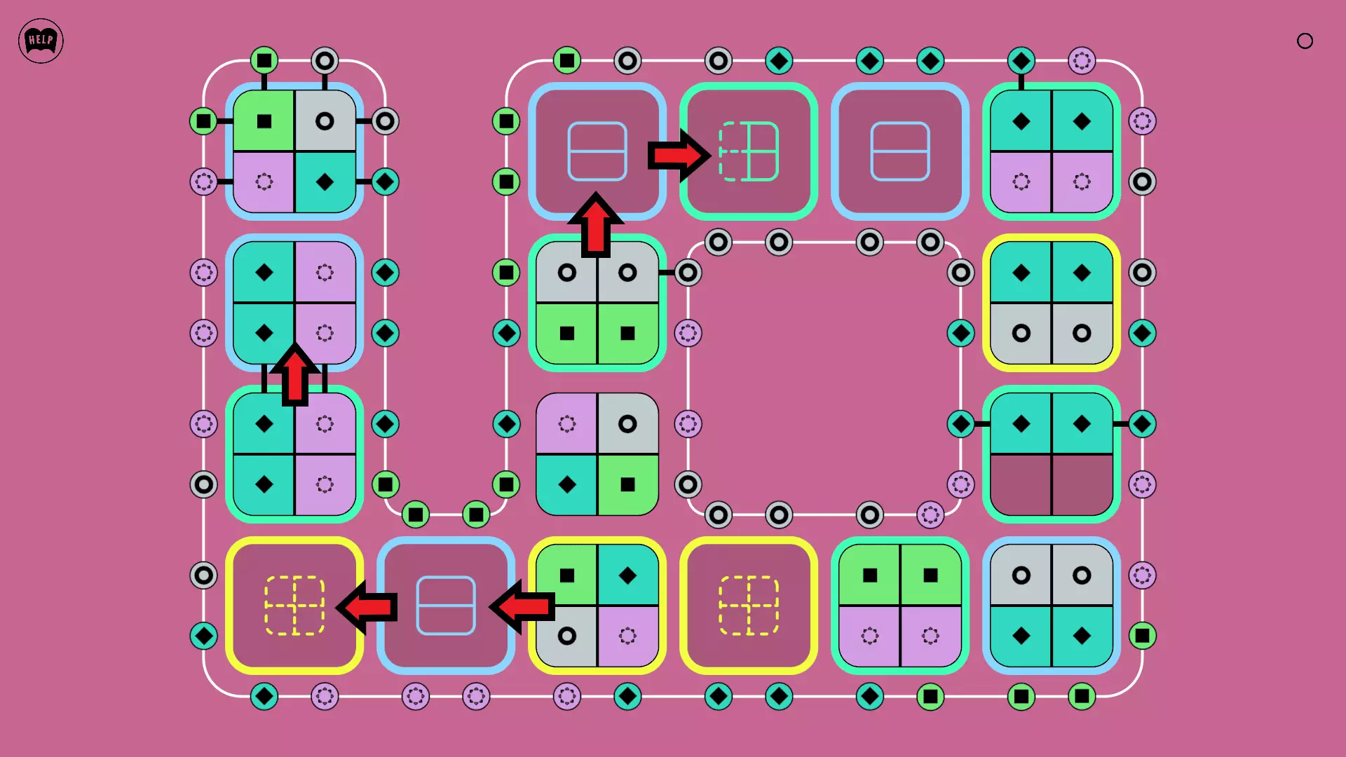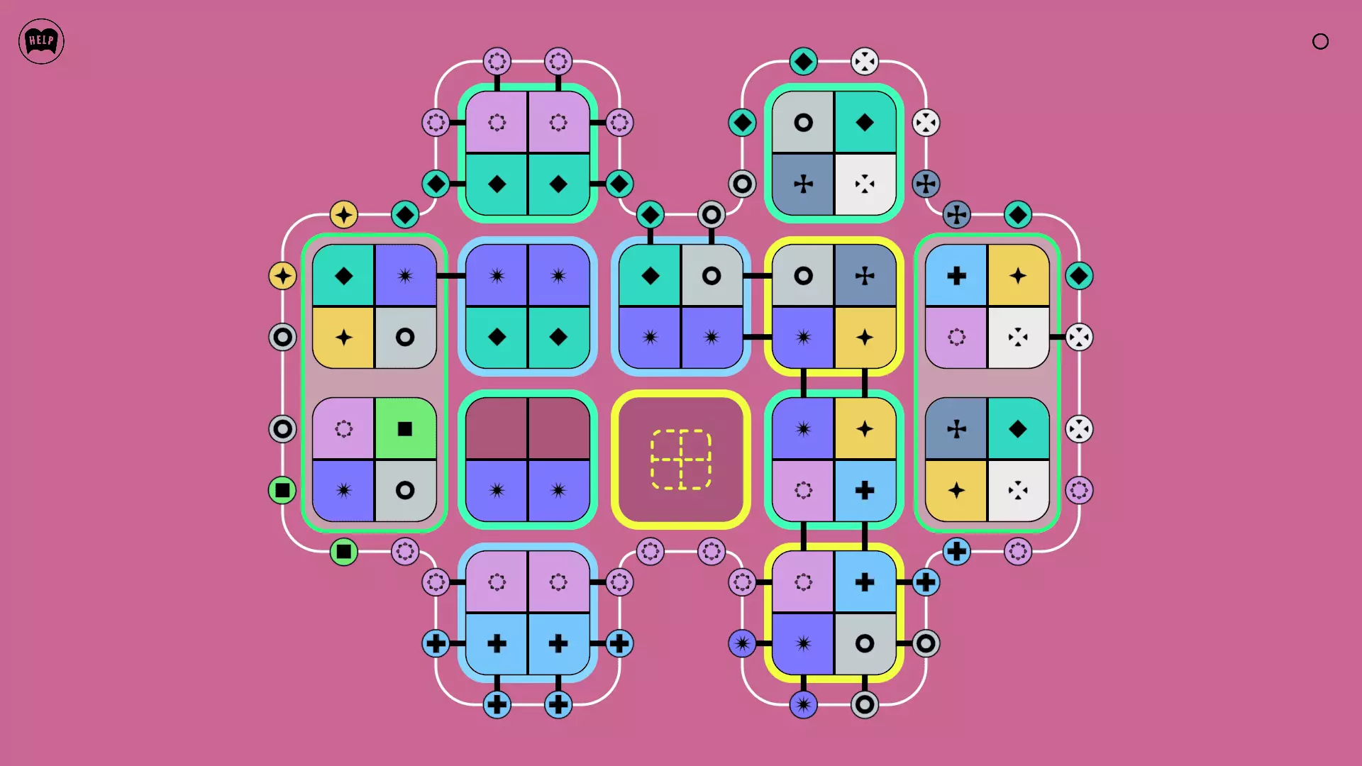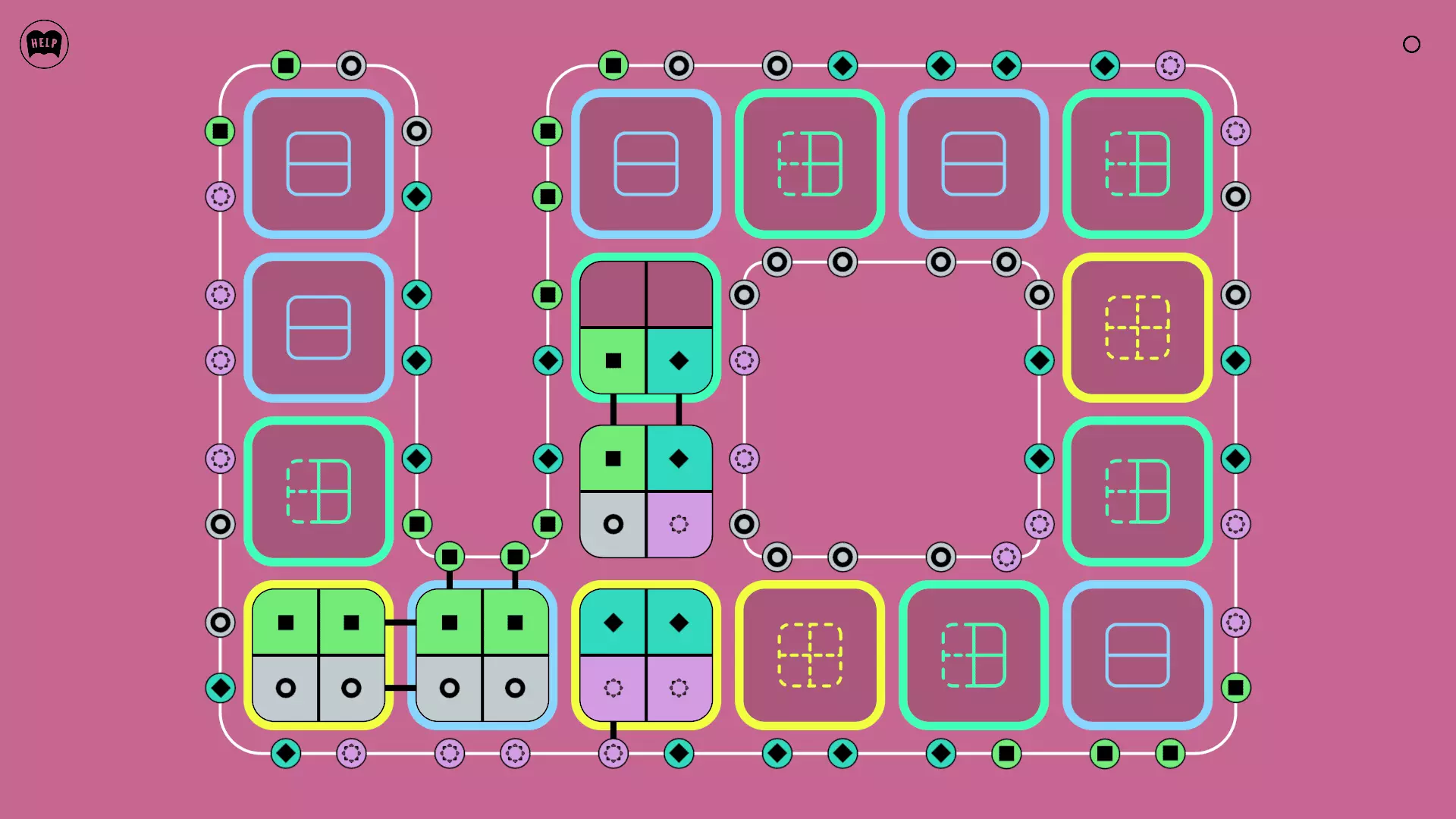 《Lines On Sides》关卡71-84图文攻略 简介 前18个关卡仅提供解决方案,因为解决这些关卡只需旋转或交换方块。 第19关及后续关卡包含步骤说明,解释如何分割、复制和转移方块。 由于Steam的限制,我不得不将本攻略分为两部分。 规则 旋转方块,直到方块上的图标与线条上或相邻方块上的符号匹配。当符号匹配时,它们之间会绘制一条线。 第7关引入了交换被绿线圈住的方块的功能。第14关新增了无法旋转或移动的方块,这类方块外有粗黑线环绕。 第19关新增了分裂平台,该平台外有蓝色线条环绕。此平台可将方块分裂为两个,或将两个方块合并为一个。