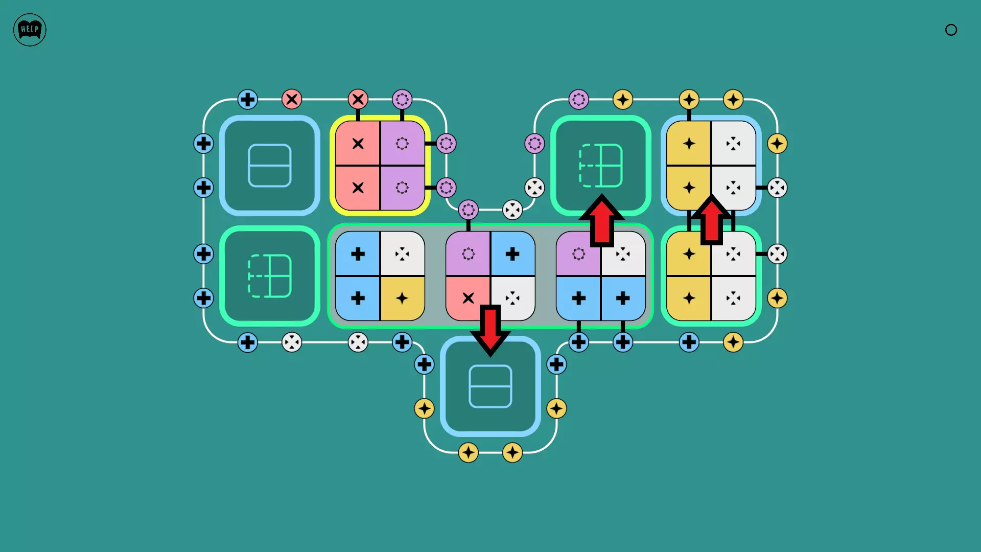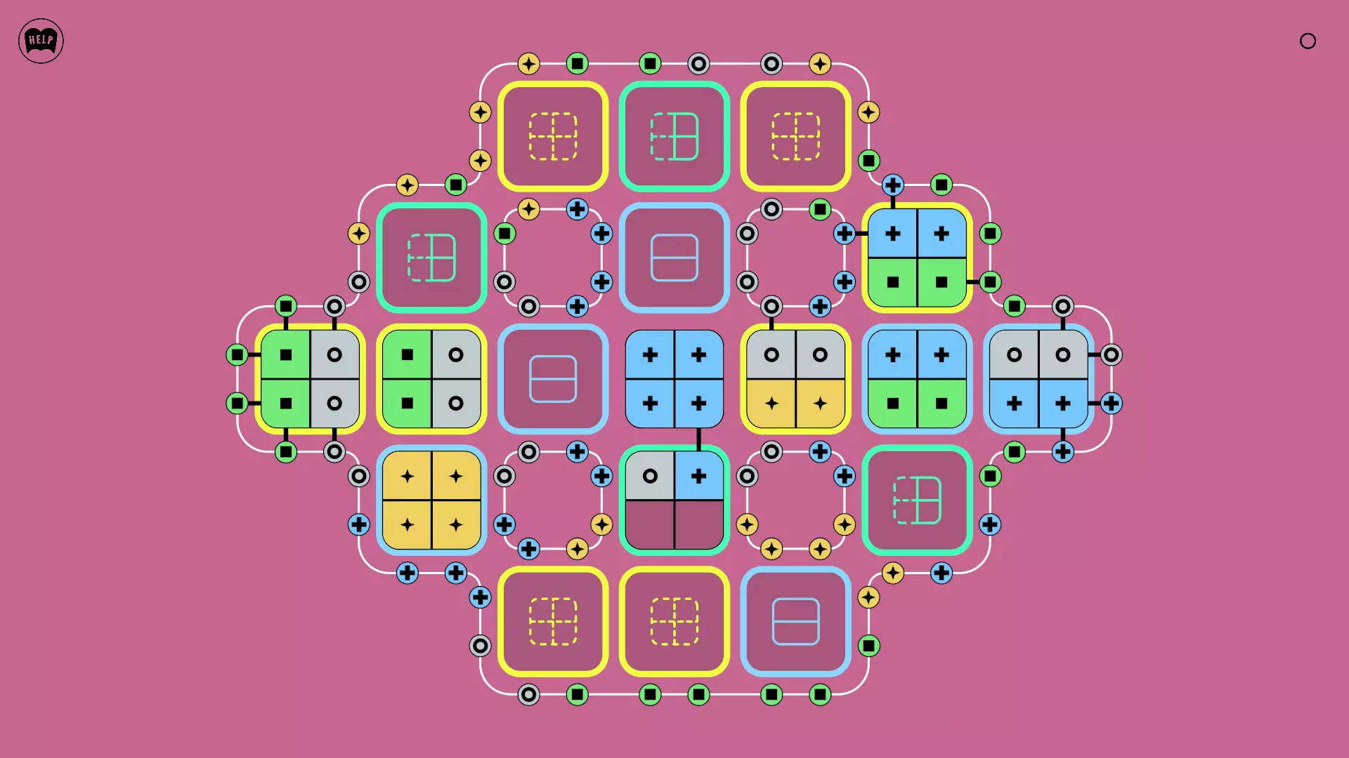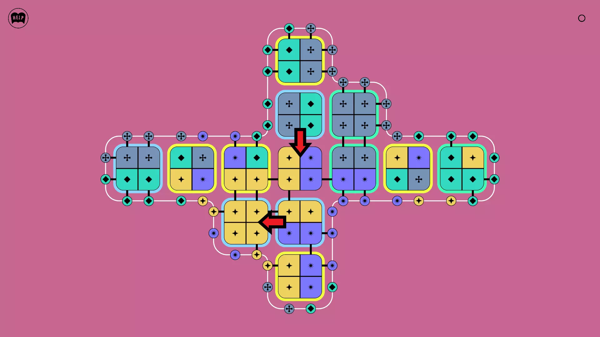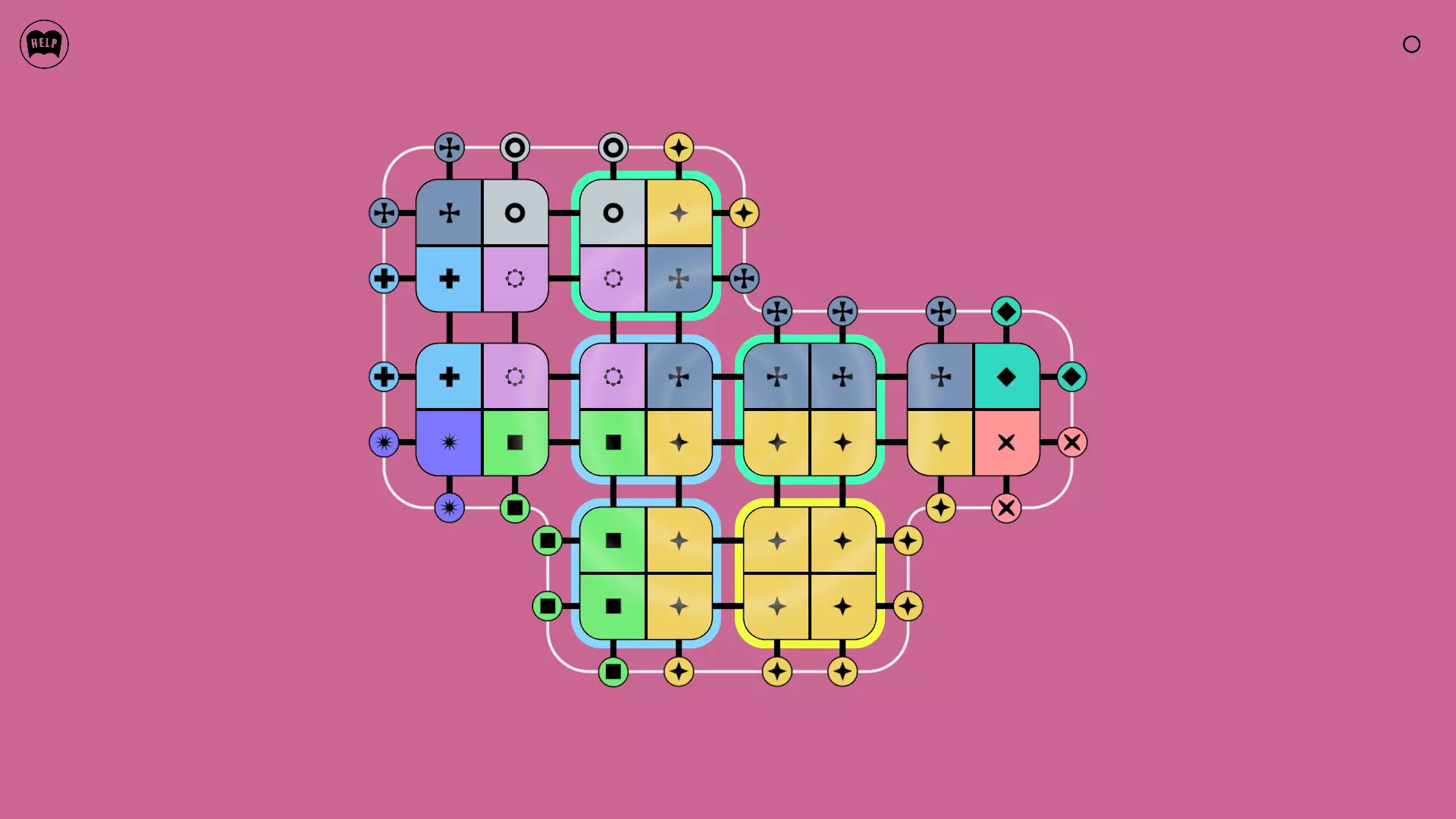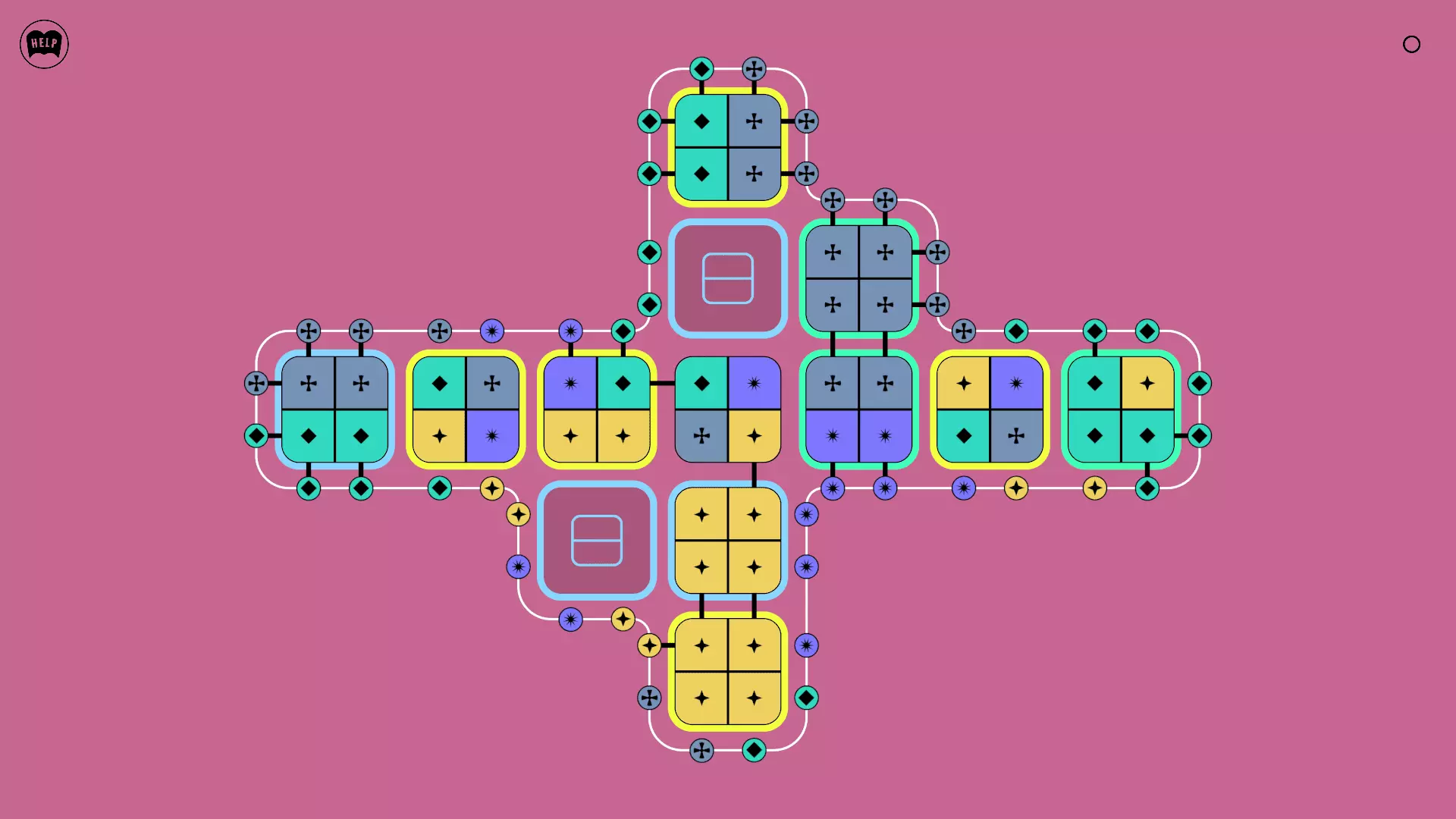 《Lines On Sides》关卡71-84图文攻略 简介 前18个关卡仅提供解决方案,因为解决这些关卡只需旋转或交换方块。 第19关及后续关卡包含步骤说明,解释如何分割、复制和转移方块。 由于Steam的限制,我不得不将本攻略分为两部分。 规则 旋转方块,直到方块上的图标与线条上或相邻方块上的符号匹配。当符号匹配时,它们之间会绘制一条线。 第7关引入了交换被绿线圈住的方块的功能。第14关新增了无法旋转或移动的方块,这类方块外有粗黑线环绕。 第19关新增了分裂平台,该平台外有蓝色线条环绕。此平台可将方块分裂为两个,或将两个方块合并为一个。