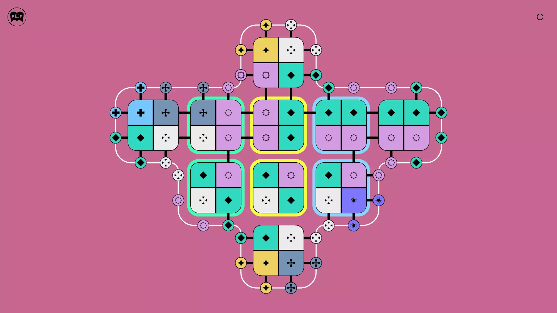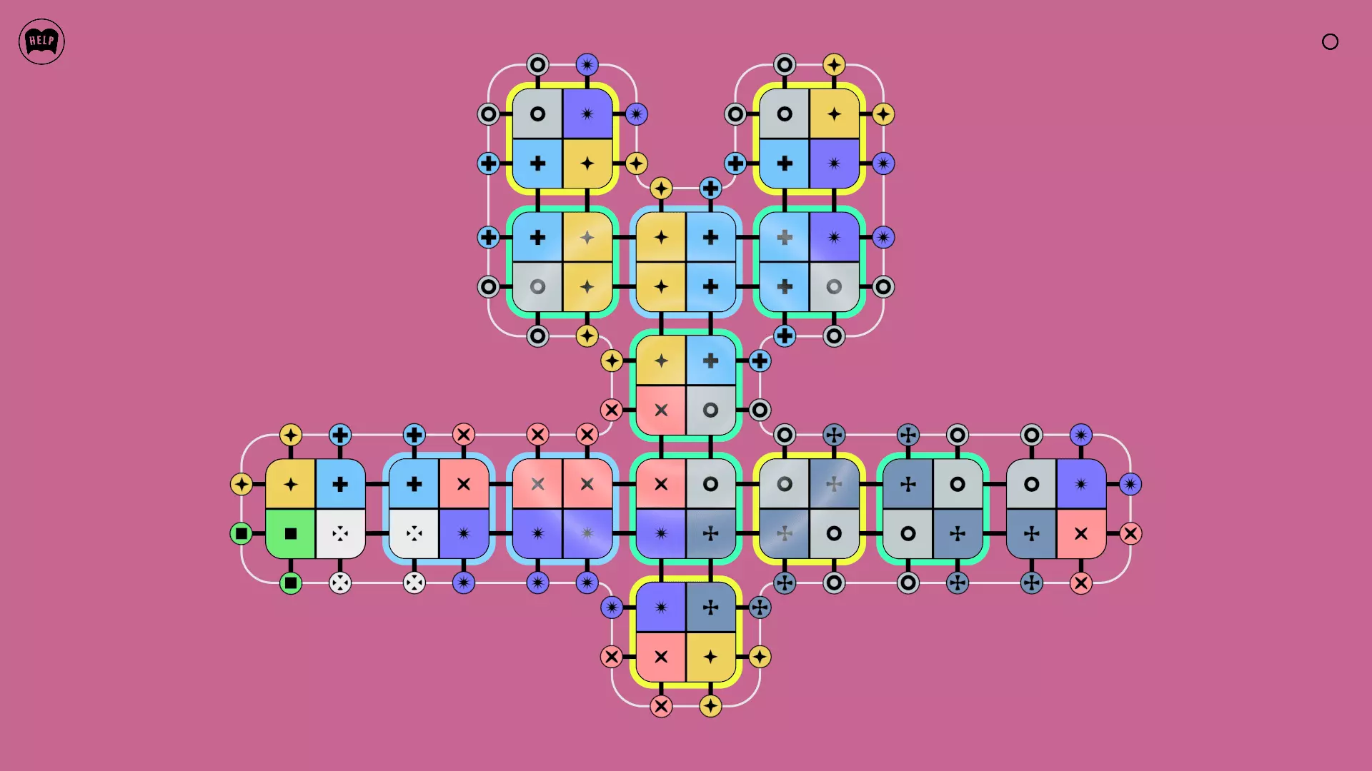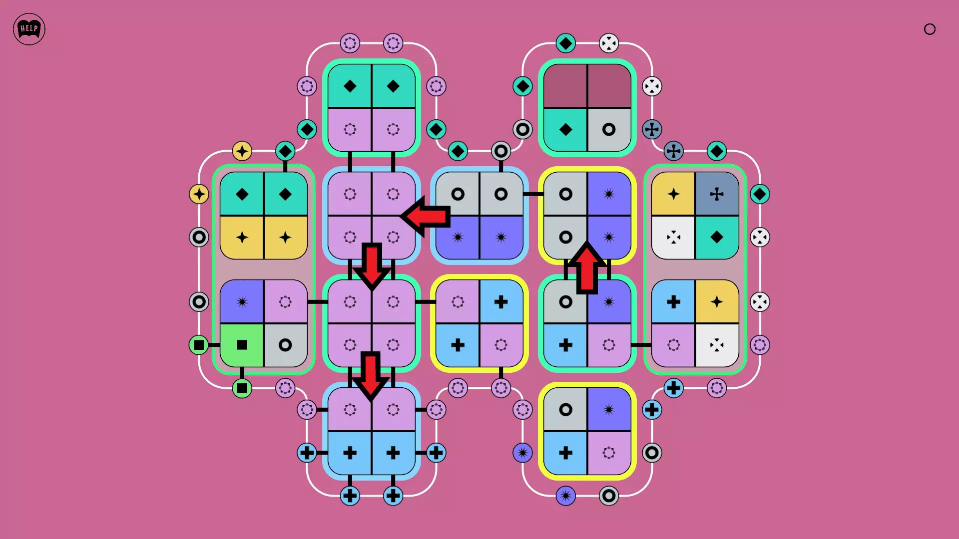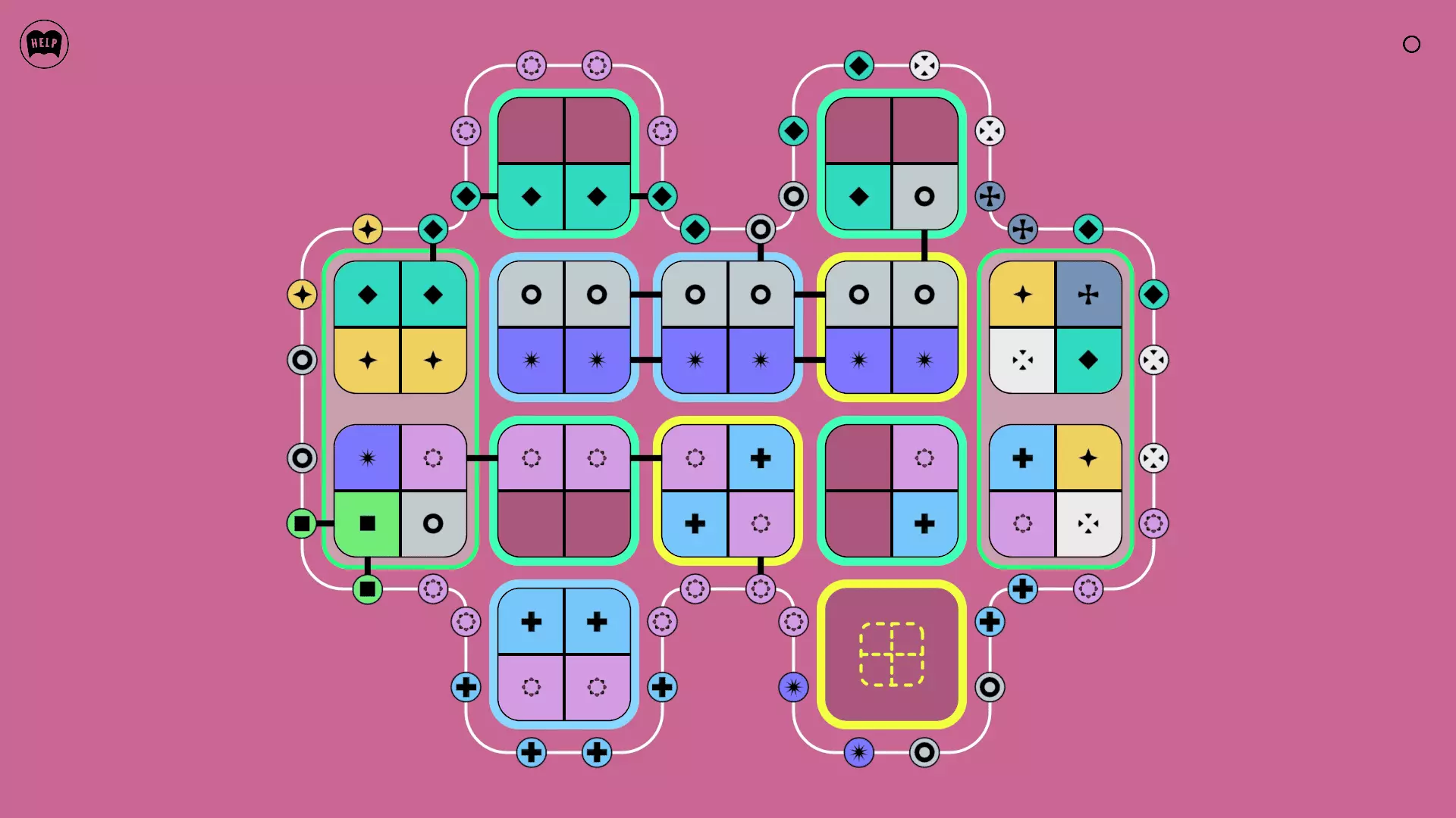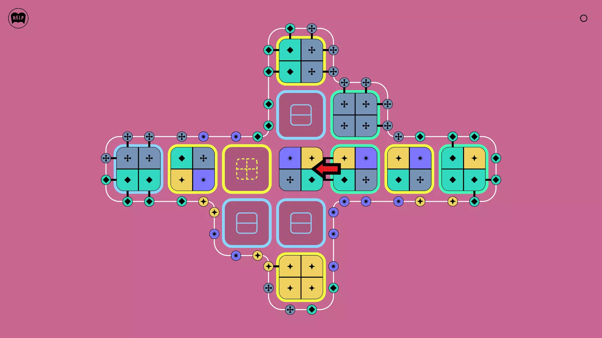 《Lines On Sides》关卡71-84图文攻略 简介 前18个关卡仅提供解决方案,因为解决这些关卡只需旋转或交换方块。 第19关及后续关卡包含步骤说明,解释如何分割、复制和转移方块。 由于Steam的限制,我不得不将本攻略分为两部分。 规则 旋转方块,直到方块上的图标与线条上或相邻方块上的符号匹配。当符号匹配时,它们之间会绘制一条线。 第7关引入了交换被绿线圈住的方块的功能。第14关新增了无法旋转或移动的方块,这类方块外有粗黑线环绕。 第19关新增了分裂平台,该平台外有蓝色线条环绕。此平台可将方块分裂为两个,或将两个方块合并为一个。
