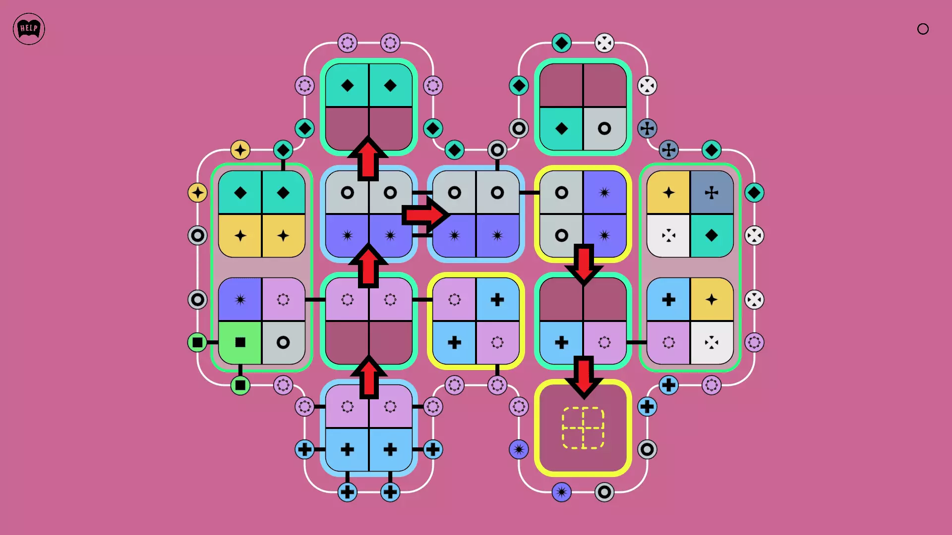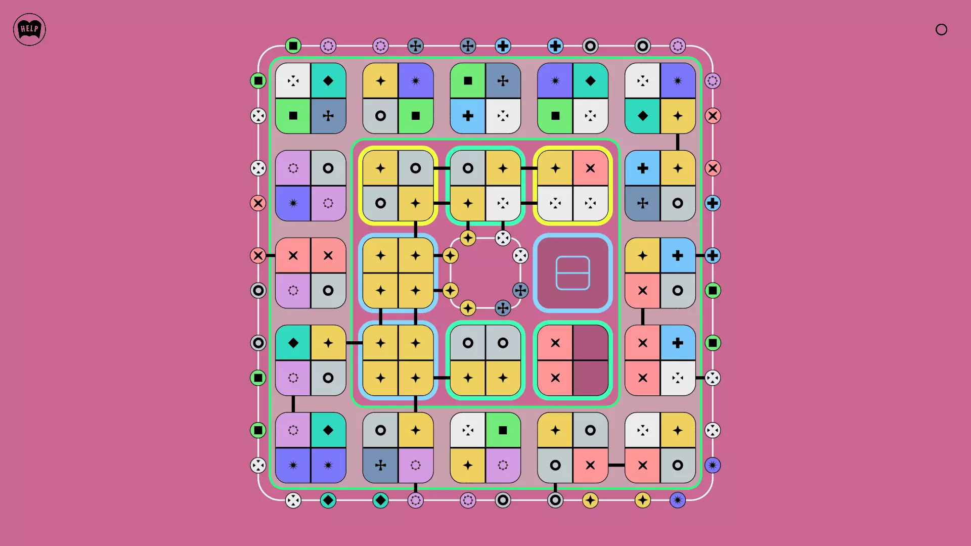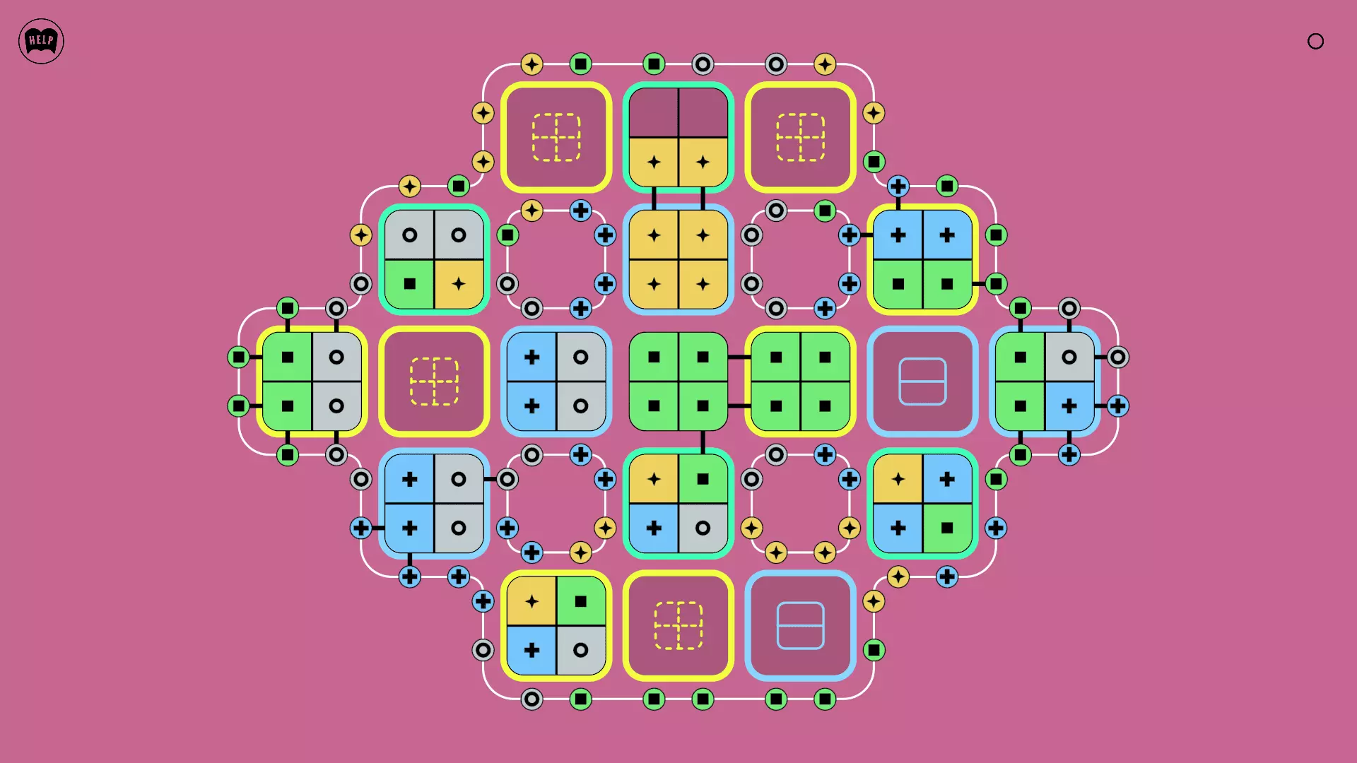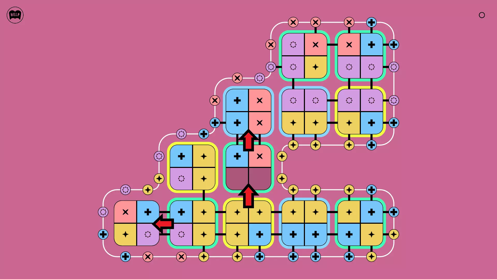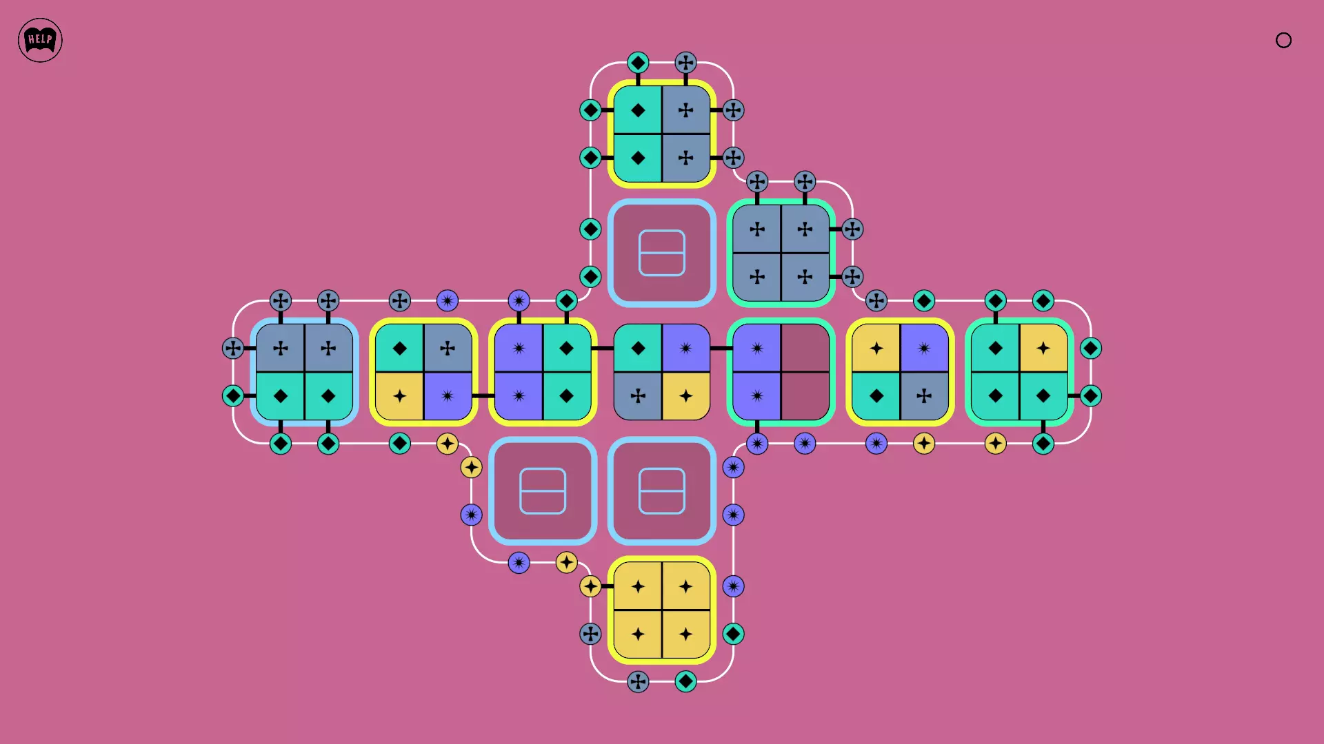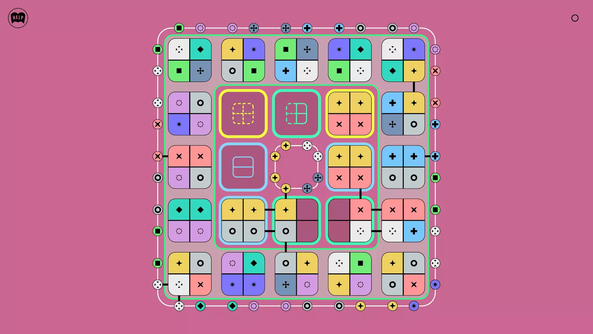 《Lines On Sides》关卡71-84图文攻略 简介 前18个关卡仅提供解决方案,因为解决这些关卡只需旋转或交换方块。 第19关及后续关卡包含步骤说明,解释如何分割、复制和转移方块。 由于Steam的限制,我不得不将本攻略分为两部分。 规则 旋转方块,直到方块上的图标与线条上或相邻方块上的符号匹配。当符号匹配时,它们之间会绘制一条线。 第7关引入了交换被绿线圈住的方块的功能。第14关新增了无法旋转或移动的方块,这类方块外有粗黑线环绕。 第19关新增了分裂平台,该平台外有蓝色线条环绕。此平台可将方块分裂为两个,或将两个方块合并为一个。