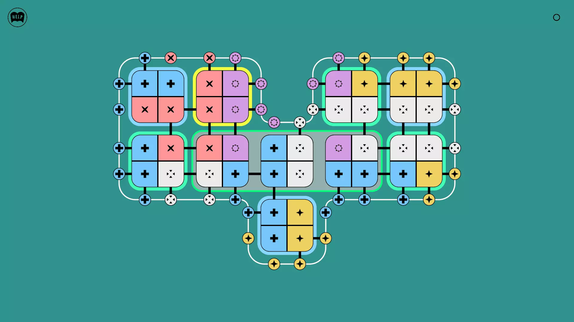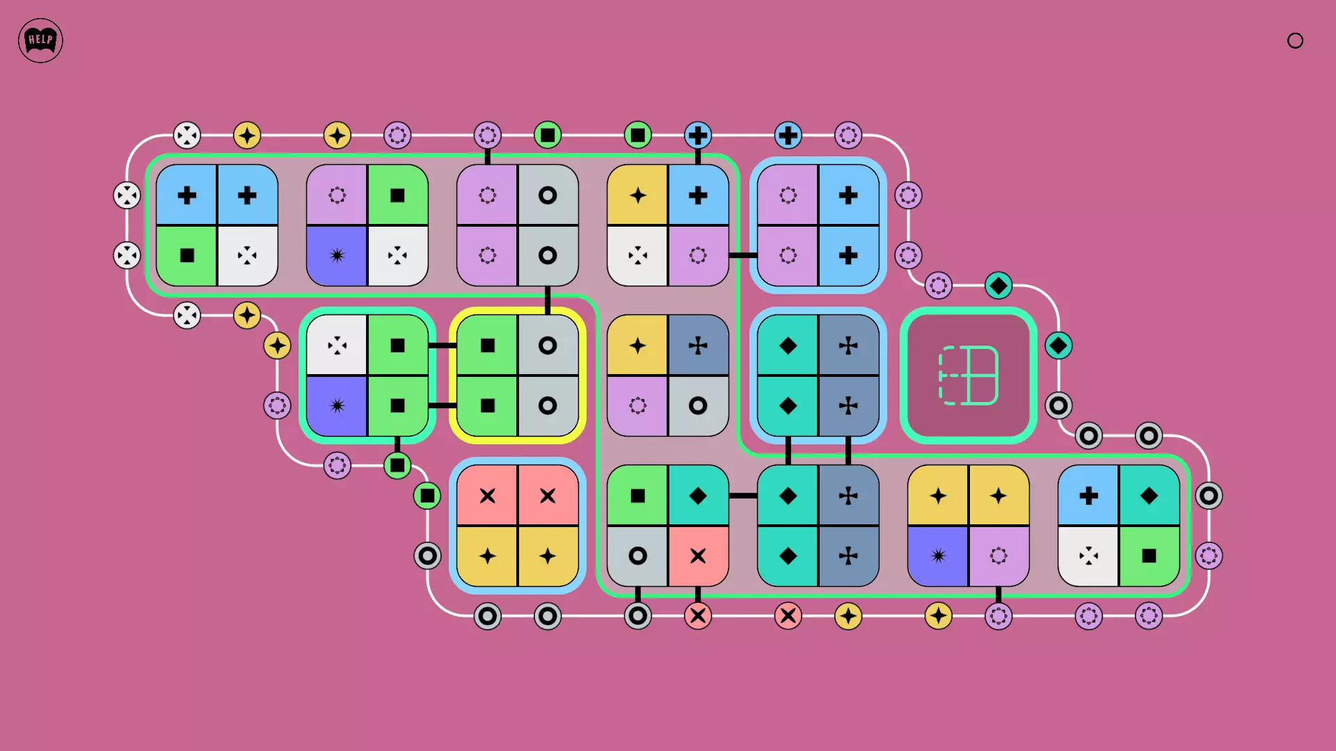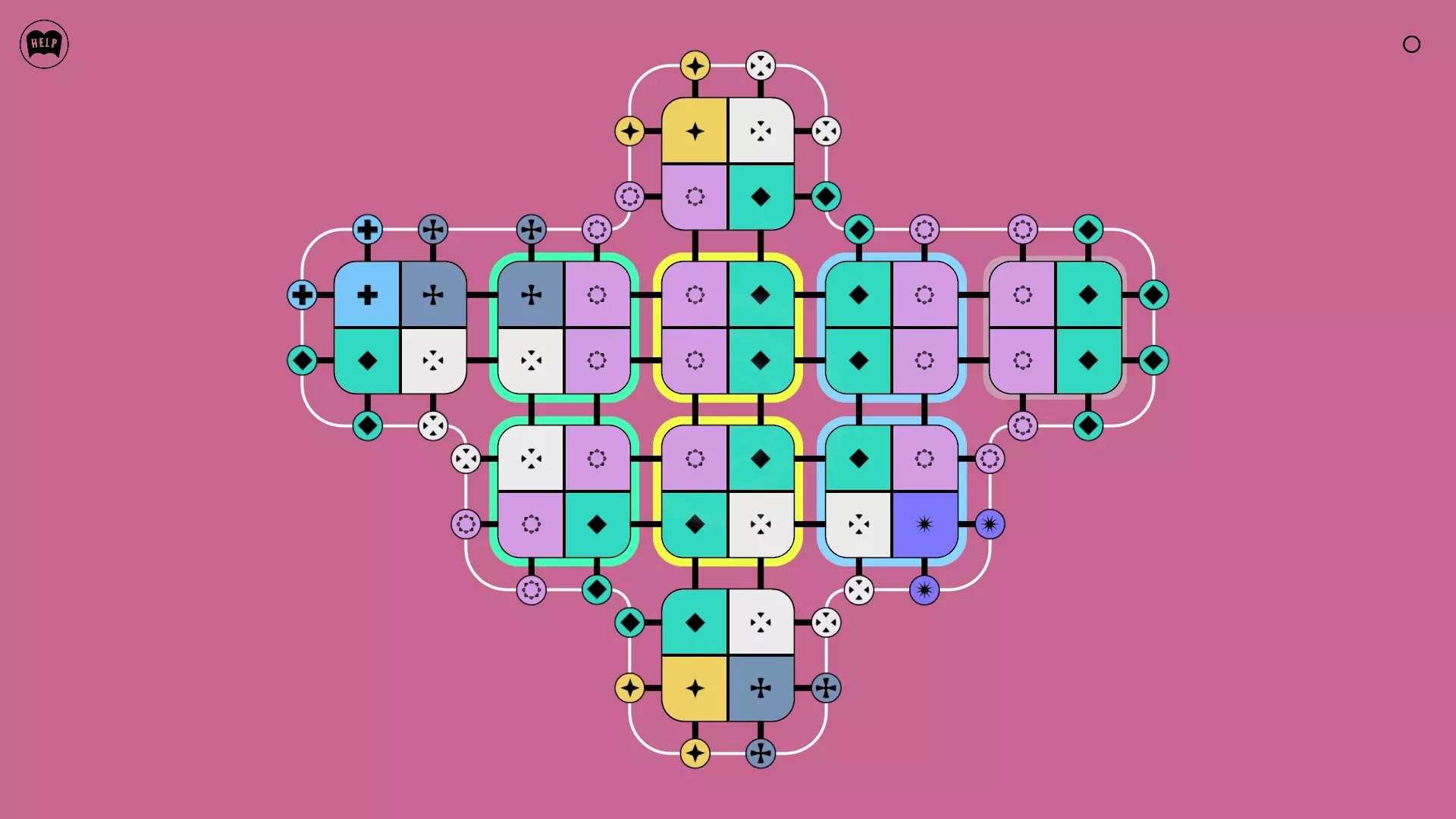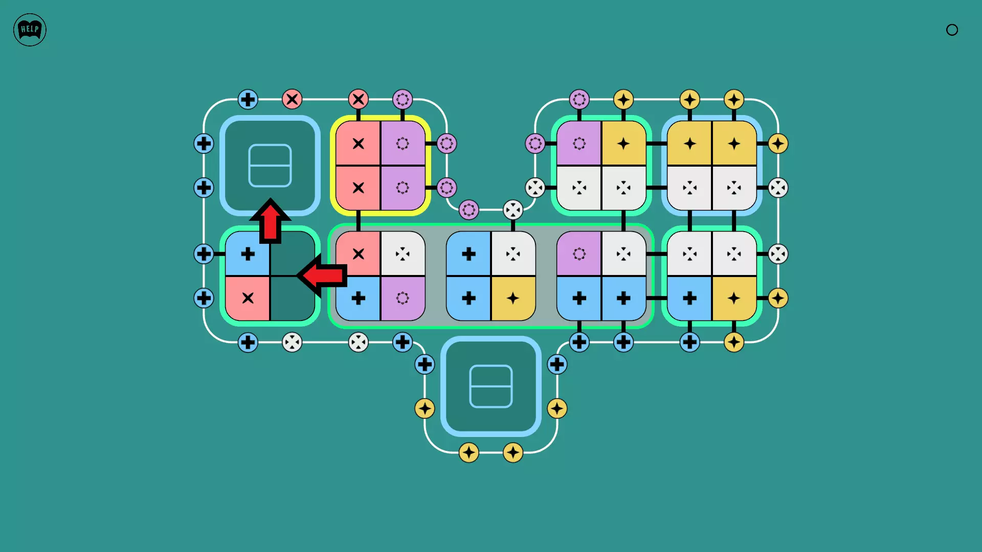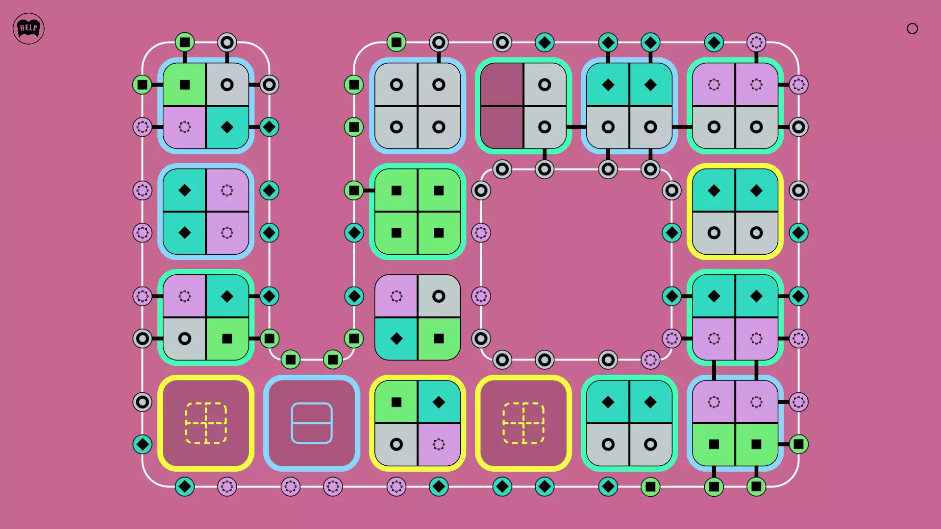 《Lines On Sides》关卡71-84图文攻略 简介 前18个关卡仅提供解决方案,因为解决这些关卡只需旋转或交换方块。 第19关及后续关卡包含步骤说明,解释如何分割、复制和转移方块。 由于Steam的限制,我不得不将本攻略分为两部分。 规则 旋转方块,直到方块上的图标与线条上或相邻方块上的符号匹配。当符号匹配时,它们之间会绘制一条线。 第7关引入了交换被绿线圈住的方块的功能。第14关新增了无法旋转或移动的方块,这类方块外有粗黑线环绕。 第19关新增了分裂平台,该平台外有蓝色线条环绕。此平台可将方块分裂为两个,或将两个方块合并为一个。
