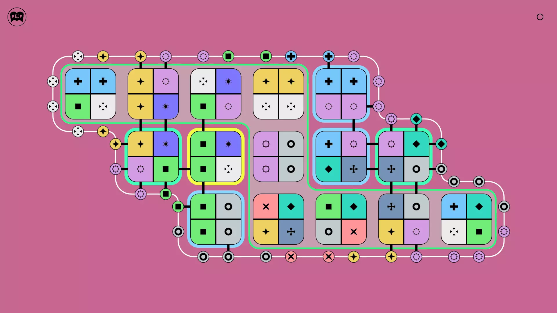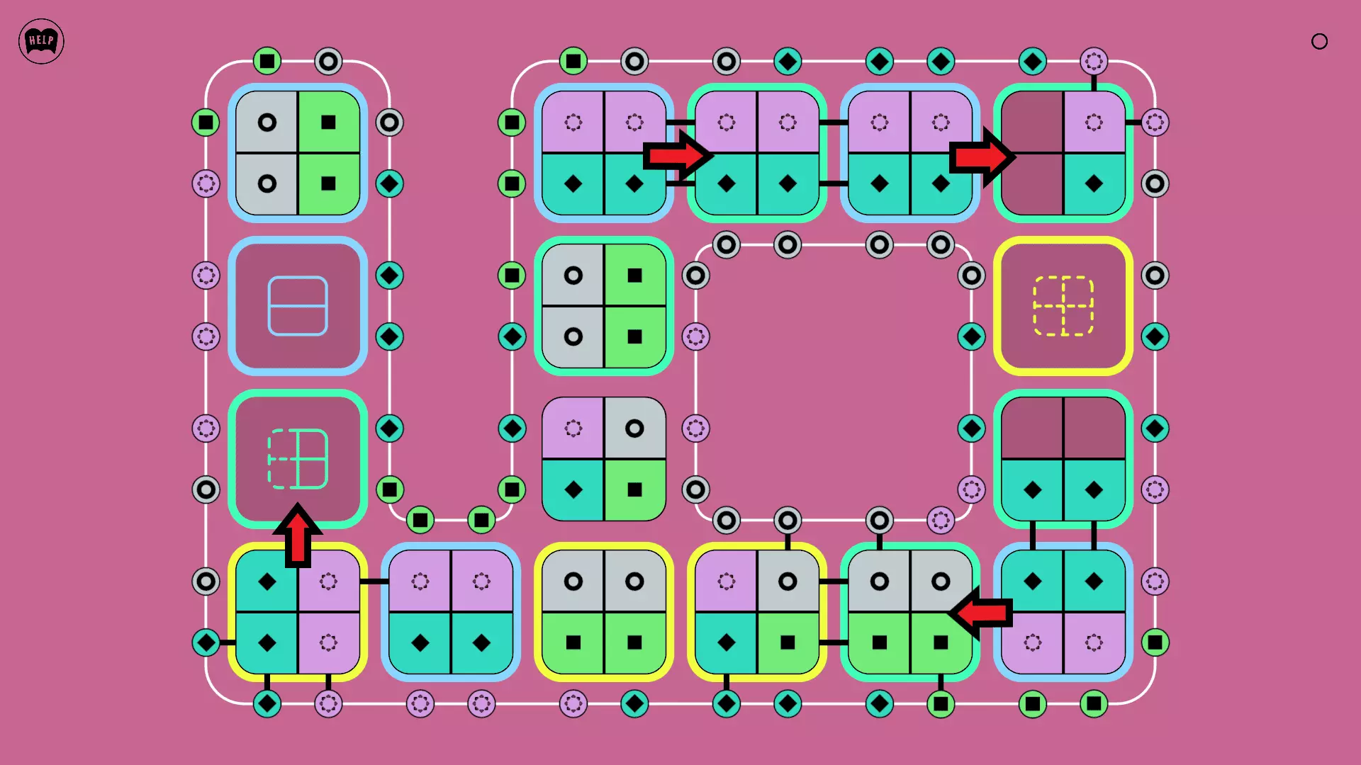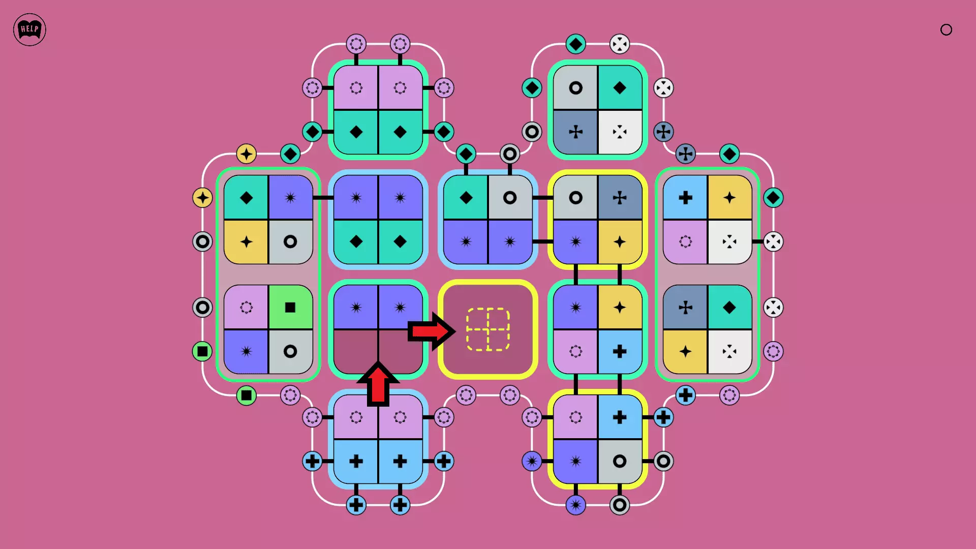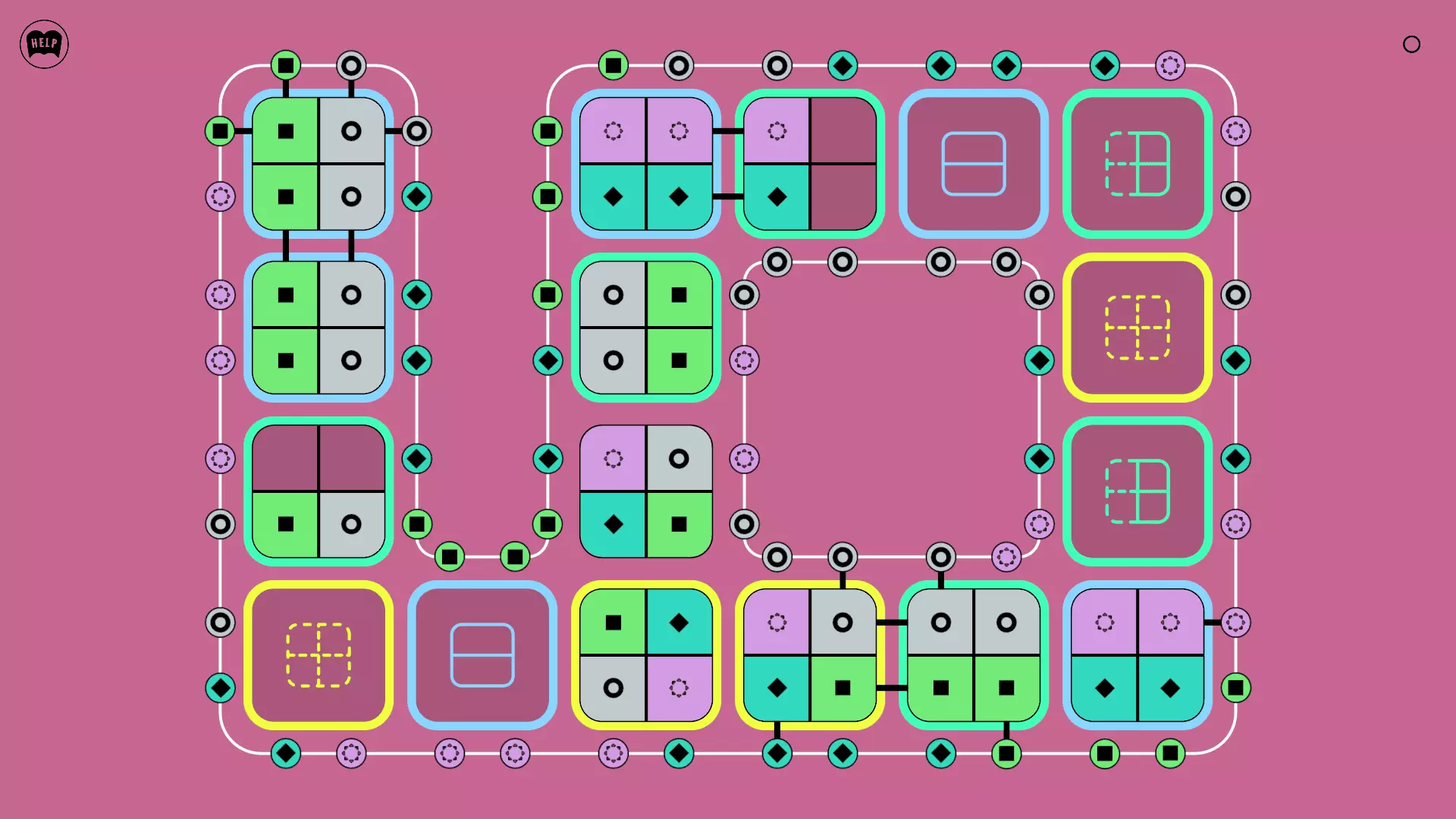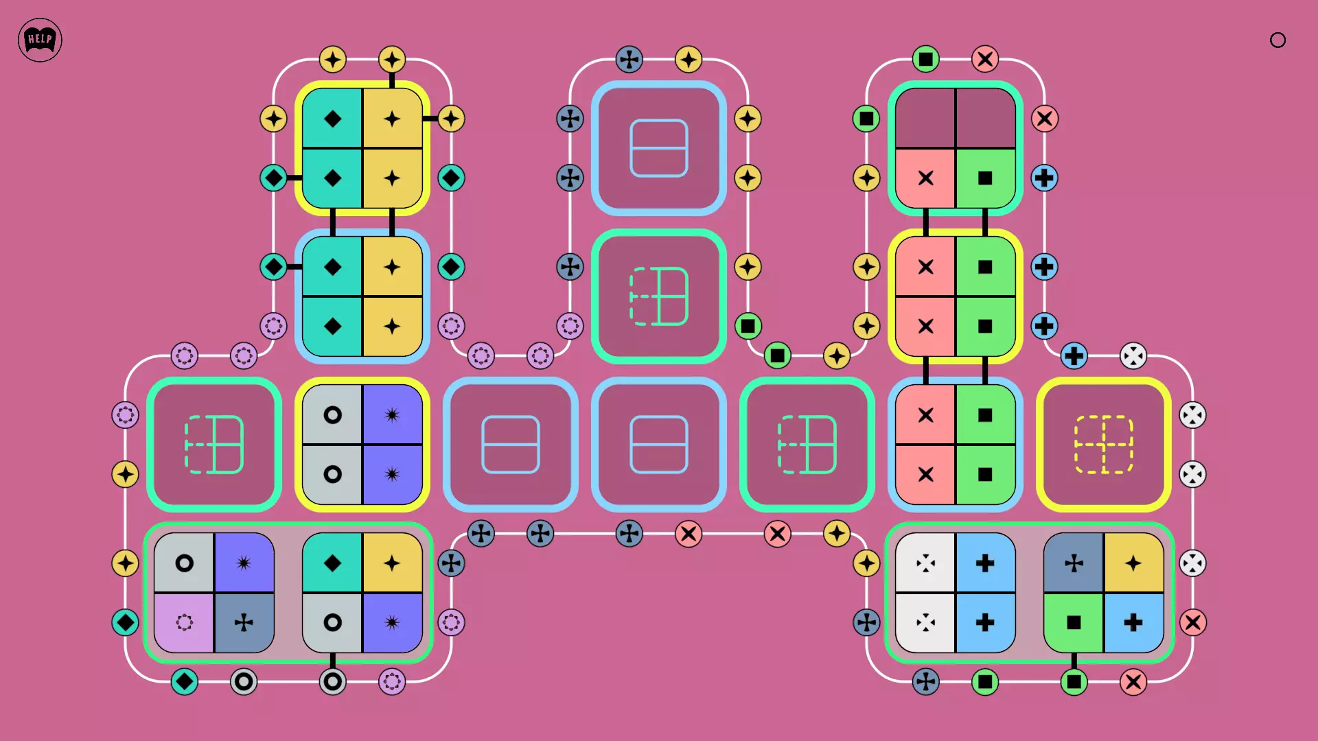 《Lines On Sides》关卡71-84图文攻略 简介 前18个关卡仅提供解决方案,因为解决这些关卡只需旋转或交换方块。 第19关及后续关卡包含步骤说明,解释如何分割、复制和转移方块。 由于Steam的限制,我不得不将本攻略分为两部分。 规则 旋转方块,直到方块上的图标与线条上或相邻方块上的符号匹配。当符号匹配时,它们之间会绘制一条线。 第7关引入了交换被绿线圈住的方块的功能。第14关新增了无法旋转或移动的方块,这类方块外有粗黑线环绕。 第19关新增了分裂平台,该平台外有蓝色线条环绕。此平台可将方块分裂为两个,或将两个方块合并为一个。