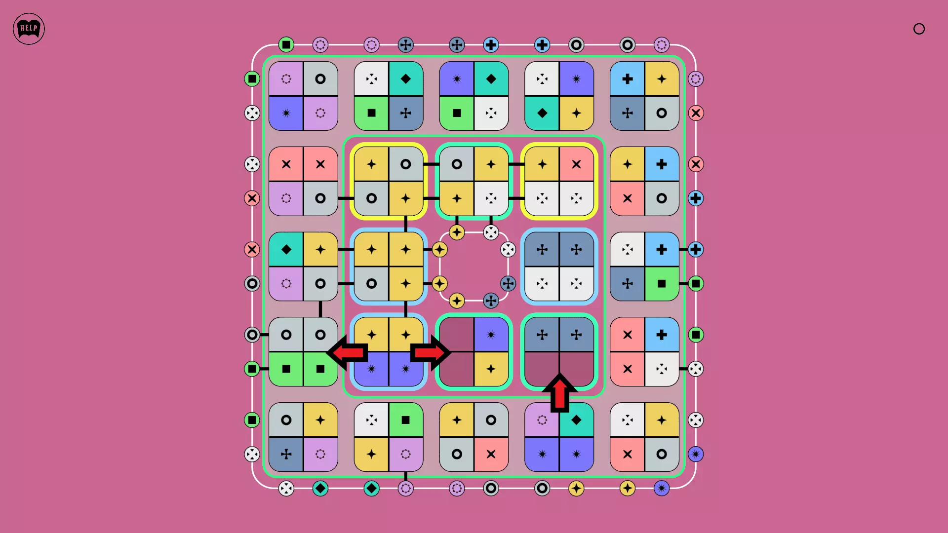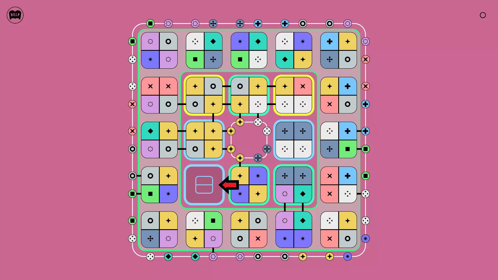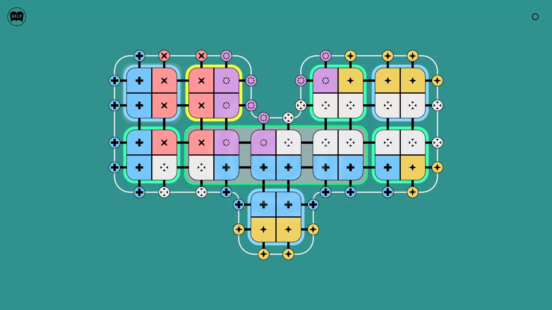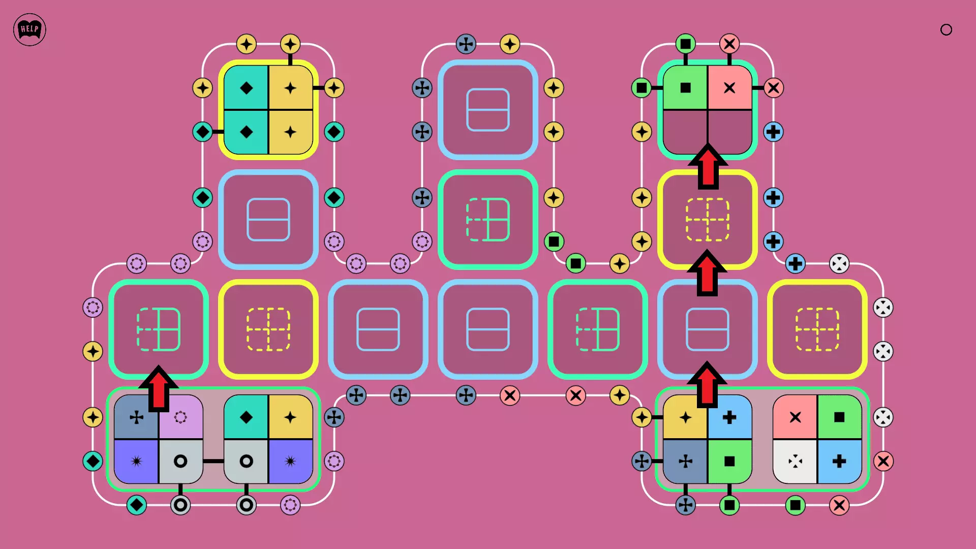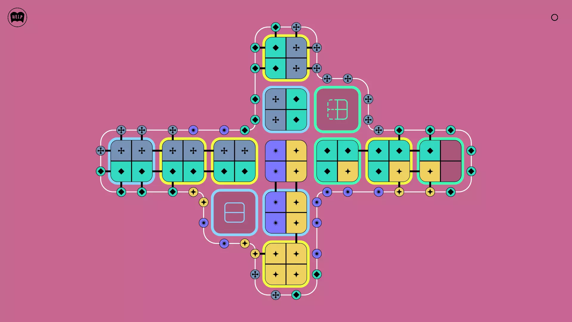 《Lines On Sides》关卡71-84图文攻略 简介 前18个关卡仅提供解决方案,因为解决这些关卡只需旋转或交换方块。 第19关及后续关卡包含步骤说明,解释如何分割、复制和转移方块。 由于Steam的限制,我不得不将本攻略分为两部分。 规则 旋转方块,直到方块上的图标与线条上或相邻方块上的符号匹配。当符号匹配时,它们之间会绘制一条线。 第7关引入了交换被绿线圈住的方块的功能。第14关新增了无法旋转或移动的方块,这类方块外有粗黑线环绕。 第19关新增了分裂平台,该平台外有蓝色线条环绕。此平台可将方块分裂为两个,或将两个方块合并为一个。