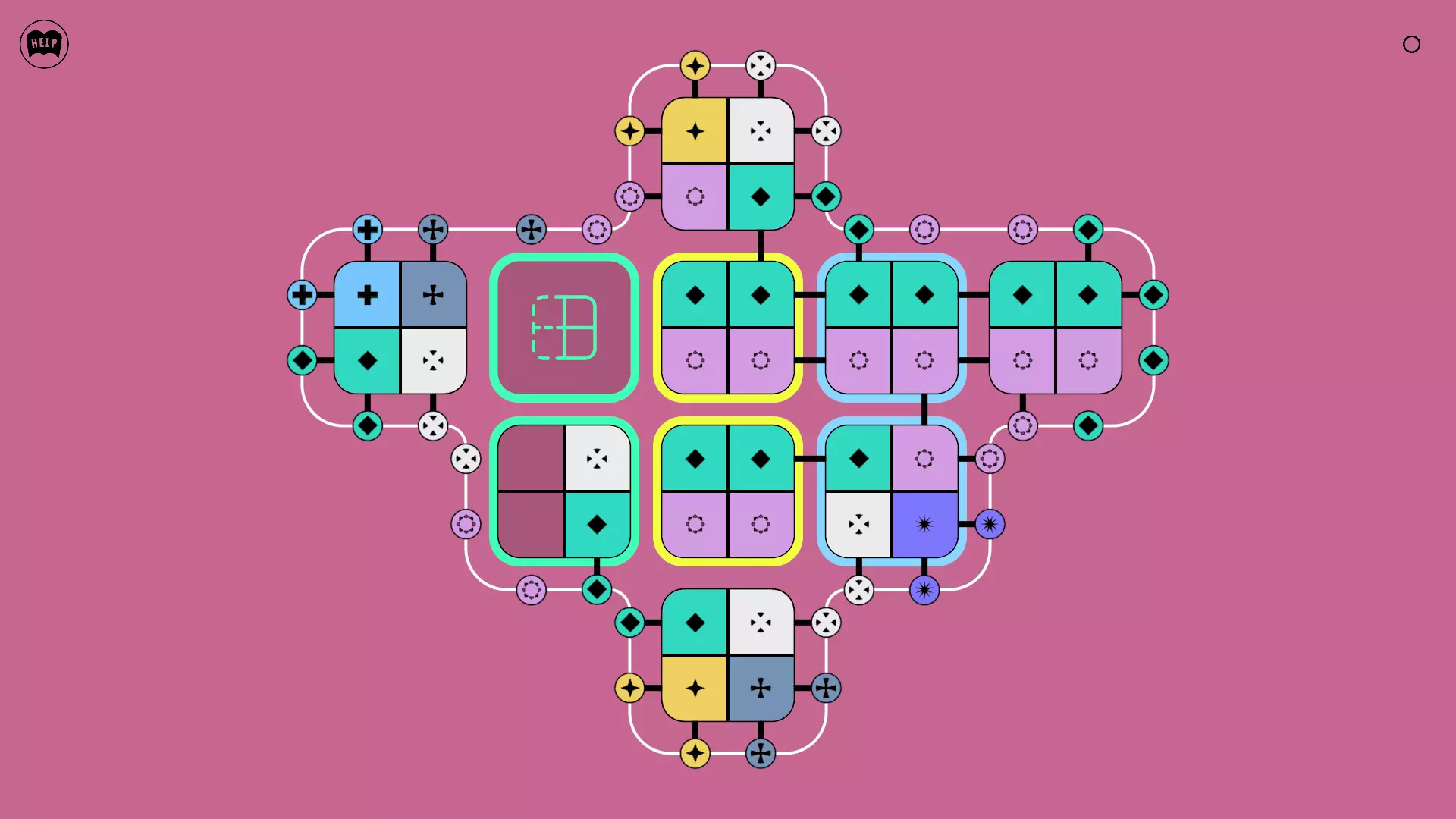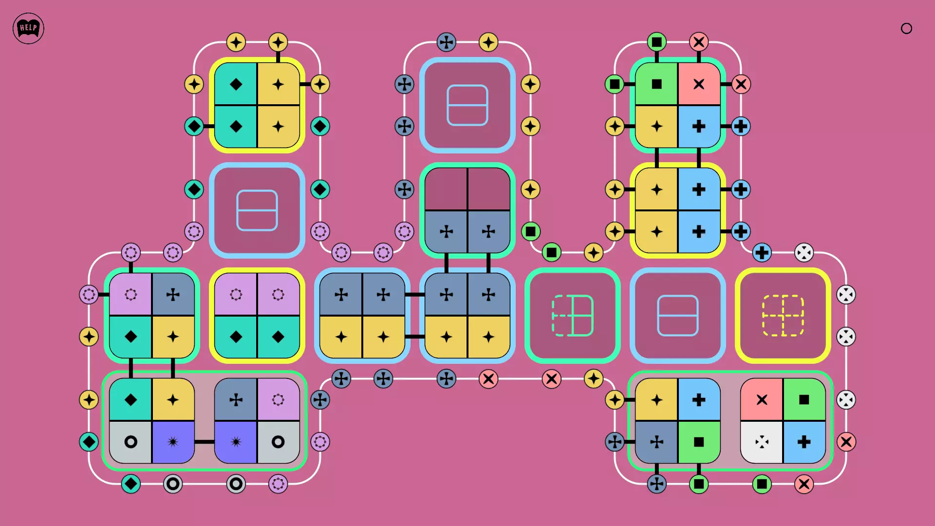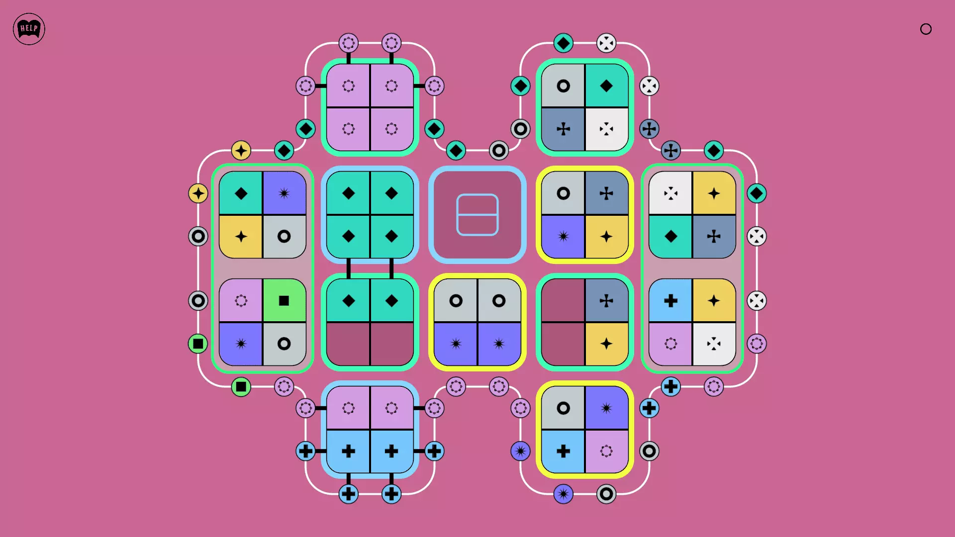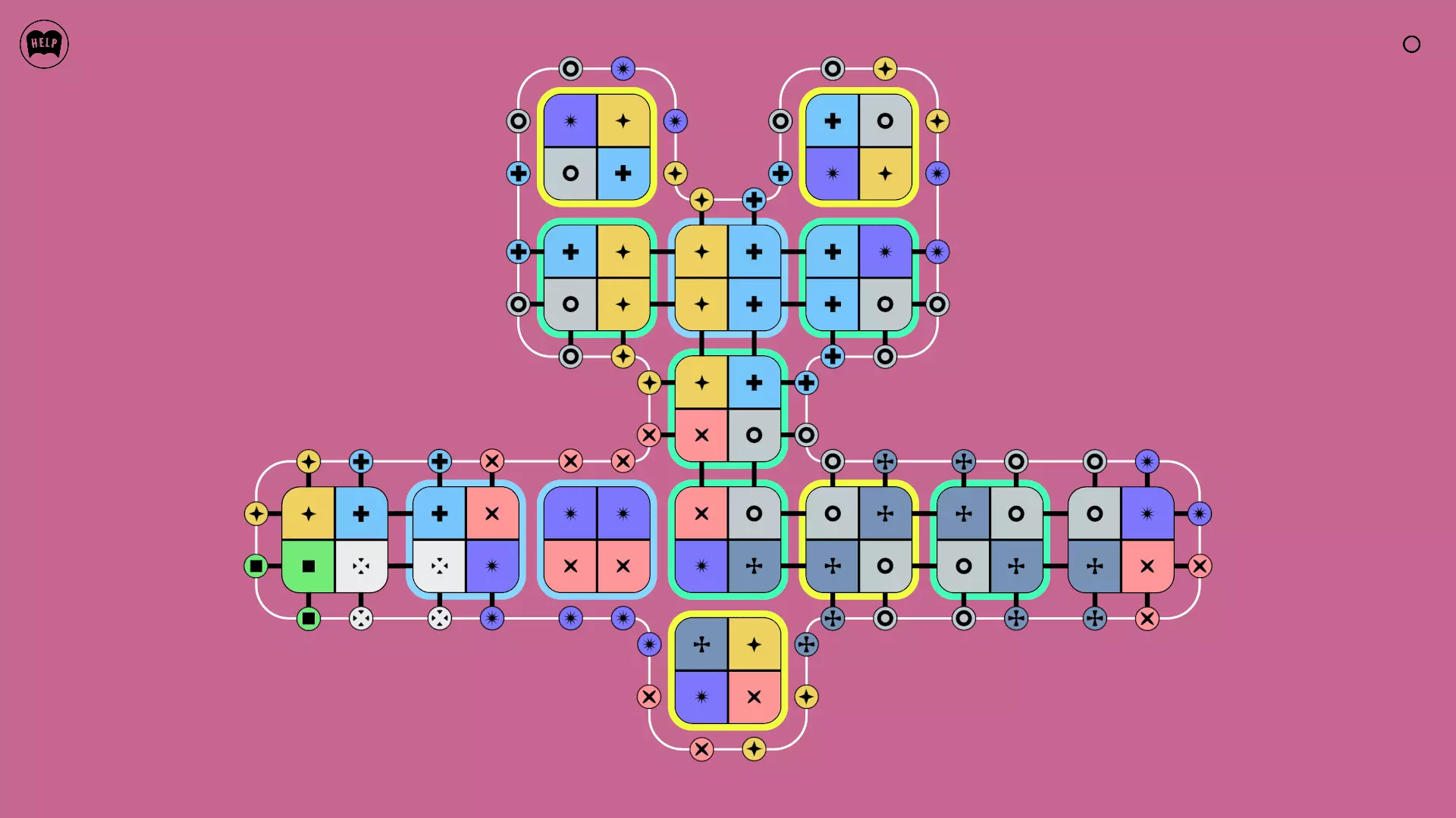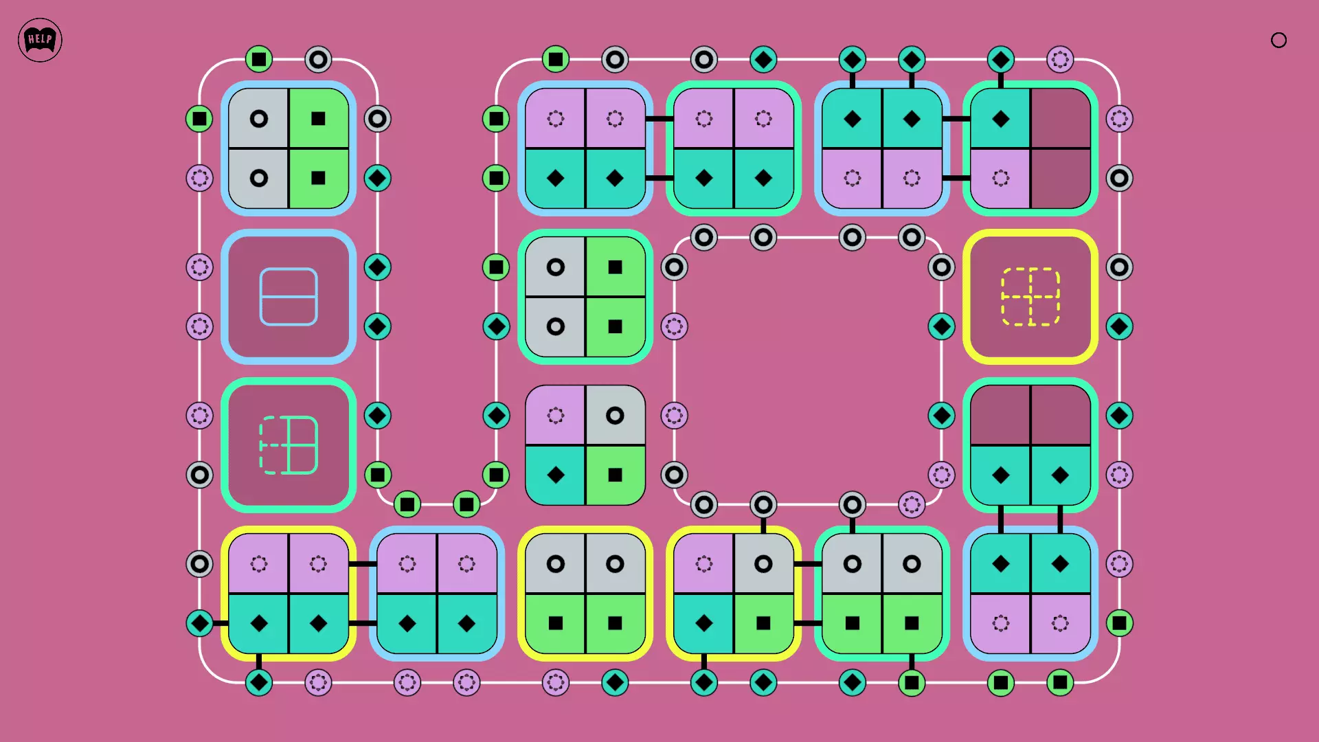 《Lines On Sides》关卡71-84图文攻略 简介 前18个关卡仅提供解决方案,因为解决这些关卡只需旋转或交换方块。 第19关及后续关卡包含步骤说明,解释如何分割、复制和转移方块。 由于Steam的限制,我不得不将本攻略分为两部分。 规则 旋转方块,直到方块上的图标与线条上或相邻方块上的符号匹配。当符号匹配时,它们之间会绘制一条线。 第7关引入了交换被绿线圈住的方块的功能。第14关新增了无法旋转或移动的方块,这类方块外有粗黑线环绕。 第19关新增了分裂平台,该平台外有蓝色线条环绕。此平台可将方块分裂为两个,或将两个方块合并为一个。
