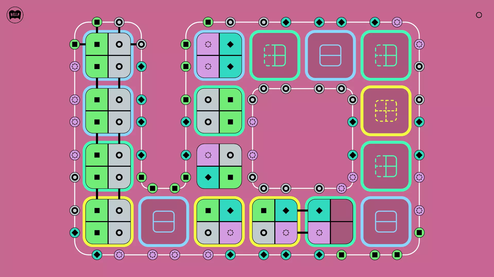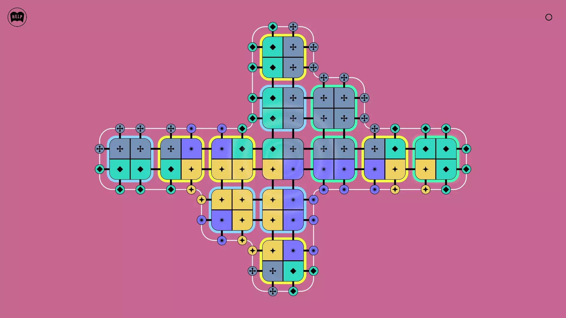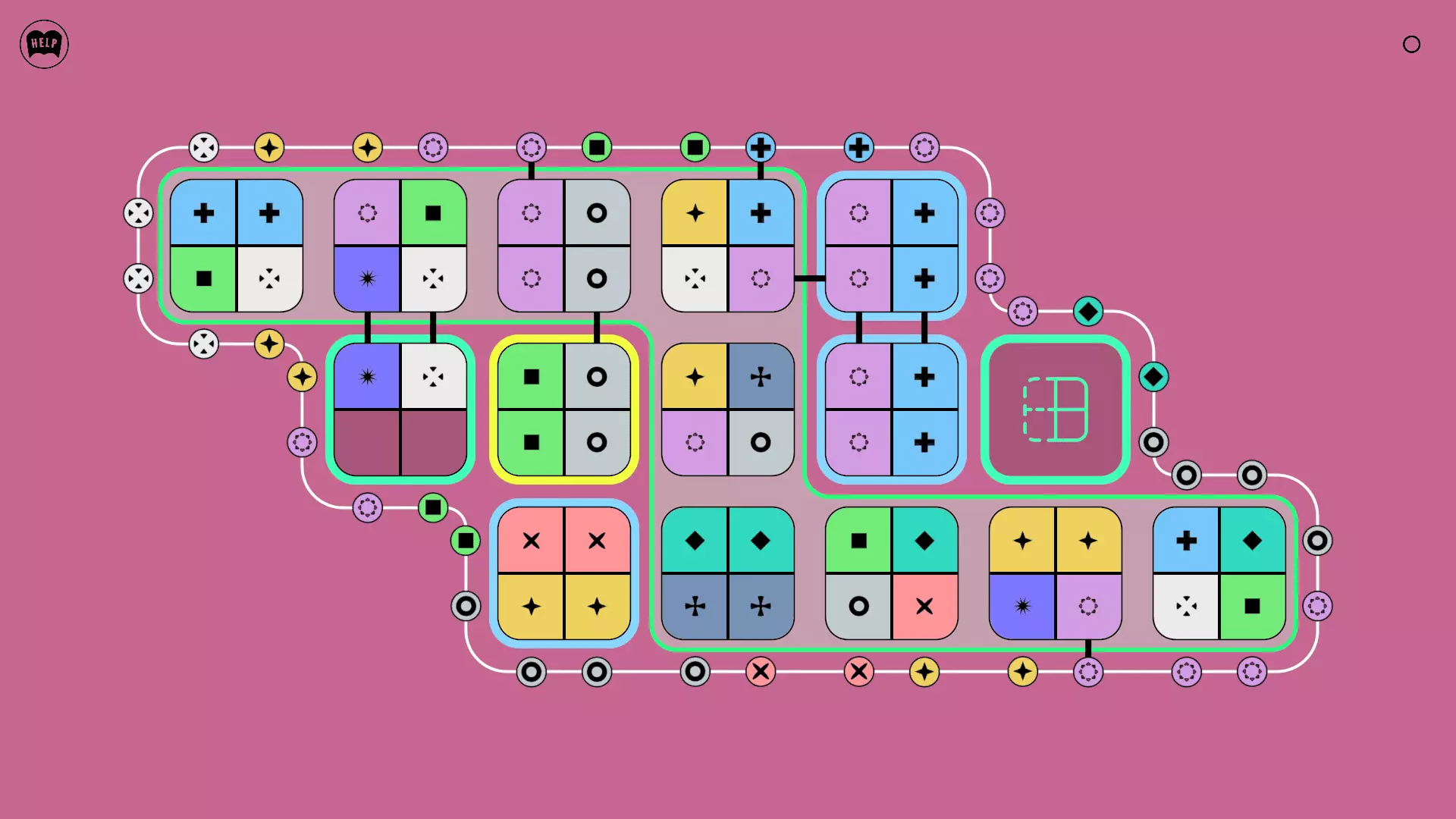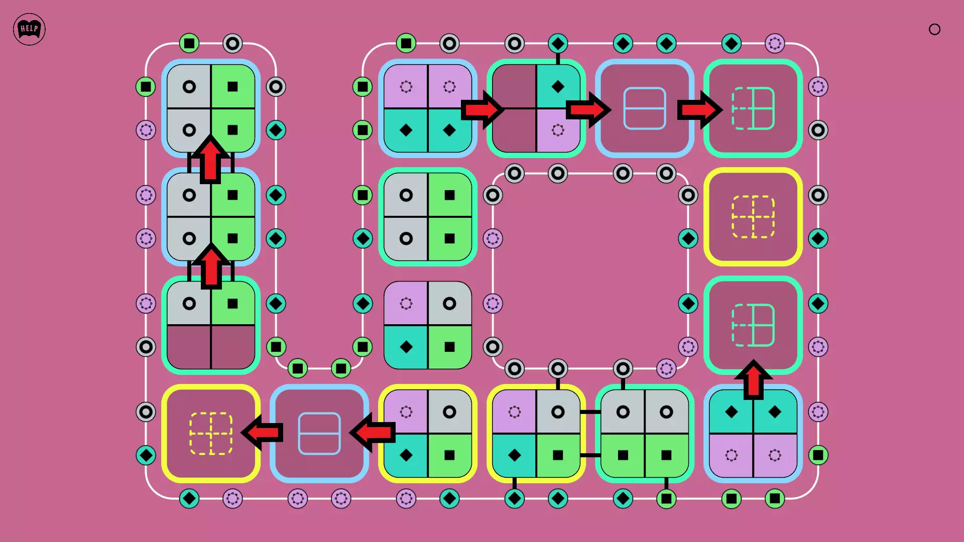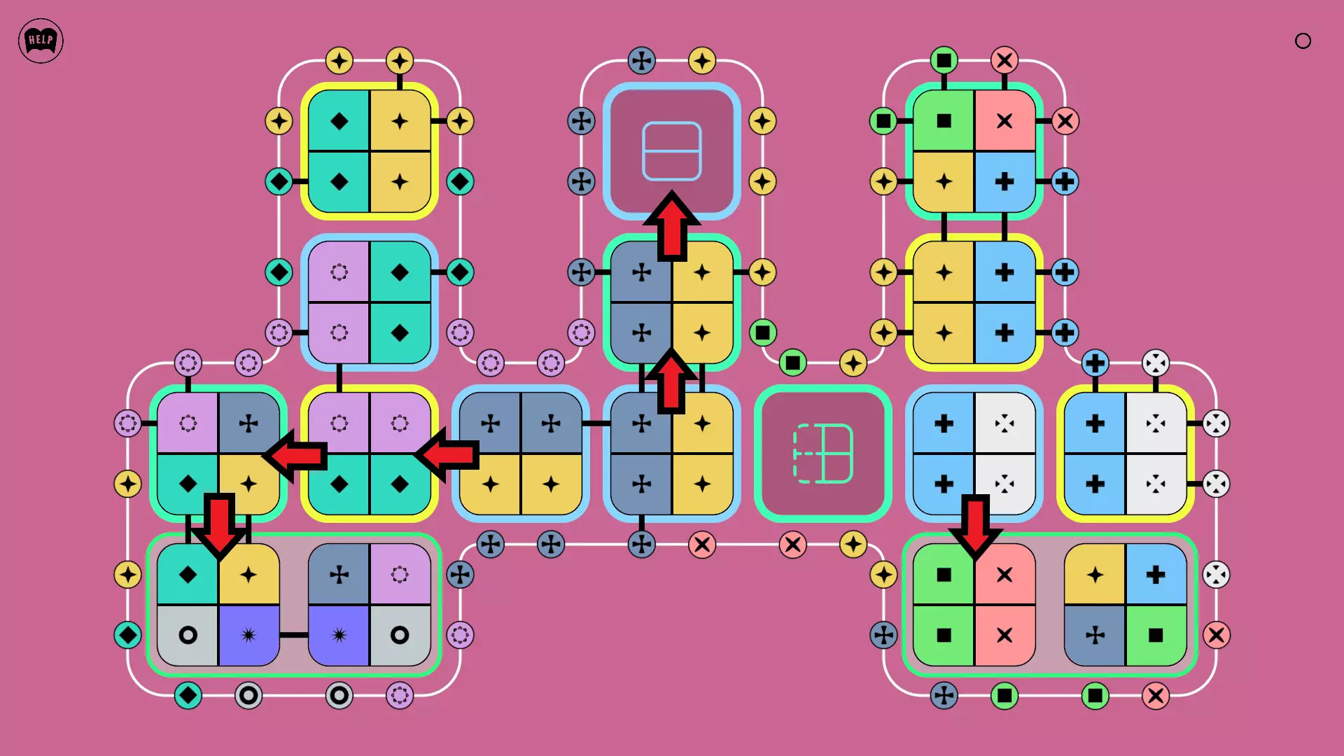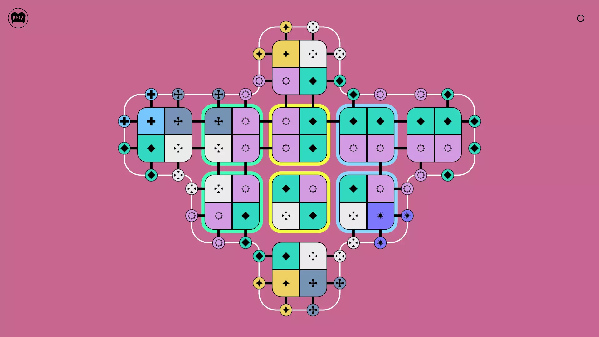 《Lines On Sides》关卡71-84图文攻略 简介 前18个关卡仅提供解决方案,因为解决这些关卡只需旋转或交换方块。 第19关及后续关卡包含步骤说明,解释如何分割、复制和转移方块。 由于Steam的限制,我不得不将本攻略分为两部分。 规则 旋转方块,直到方块上的图标与线条上或相邻方块上的符号匹配。当符号匹配时,它们之间会绘制一条线。 第7关引入了交换被绿线圈住的方块的功能。第14关新增了无法旋转或移动的方块,这类方块外有粗黑线环绕。 第19关新增了分裂平台,该平台外有蓝色线条环绕。此平台可将方块分裂为两个,或将两个方块合并为一个。