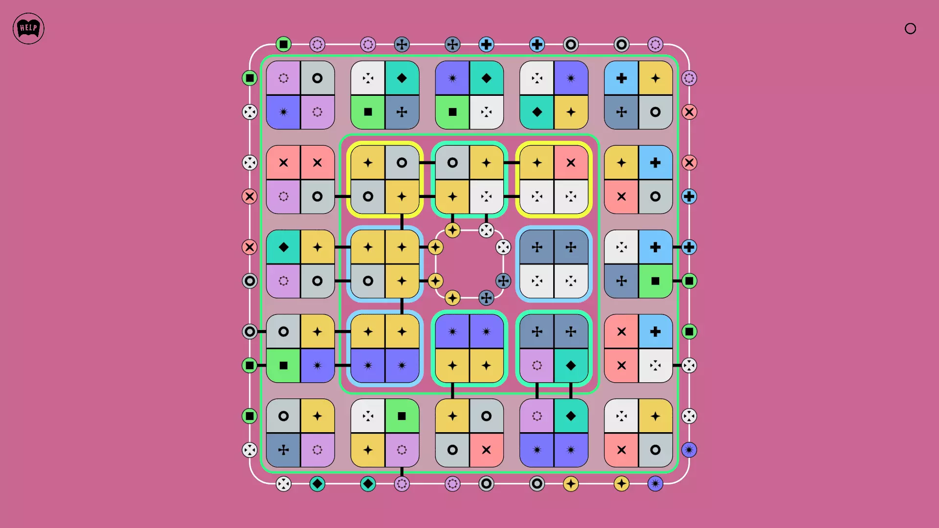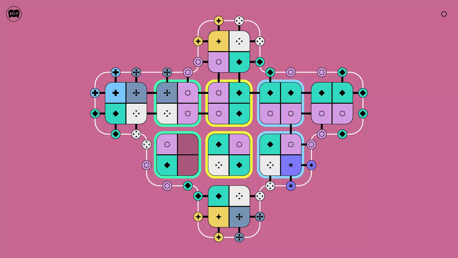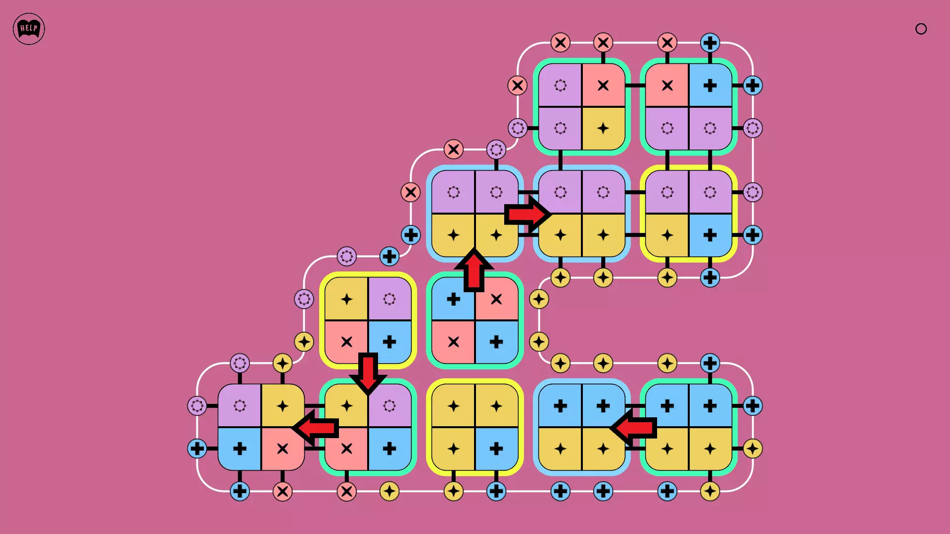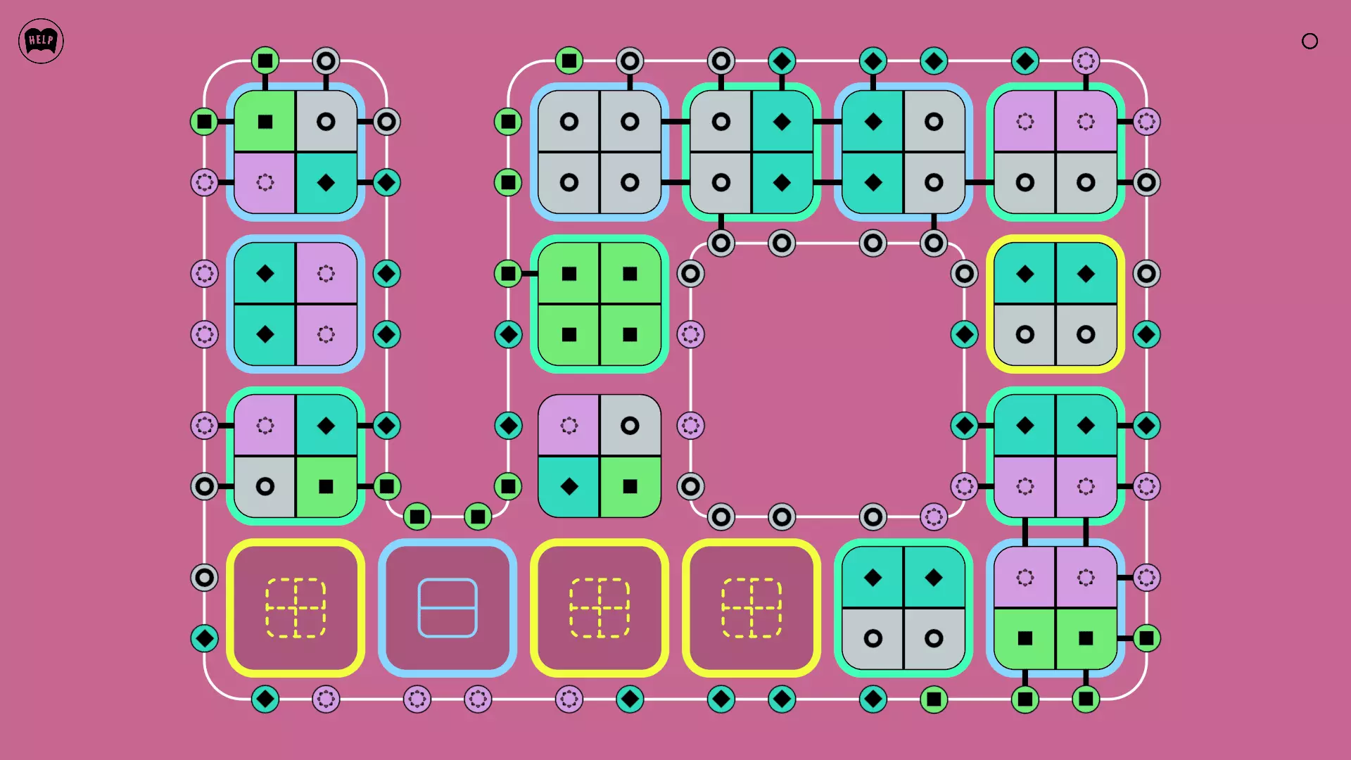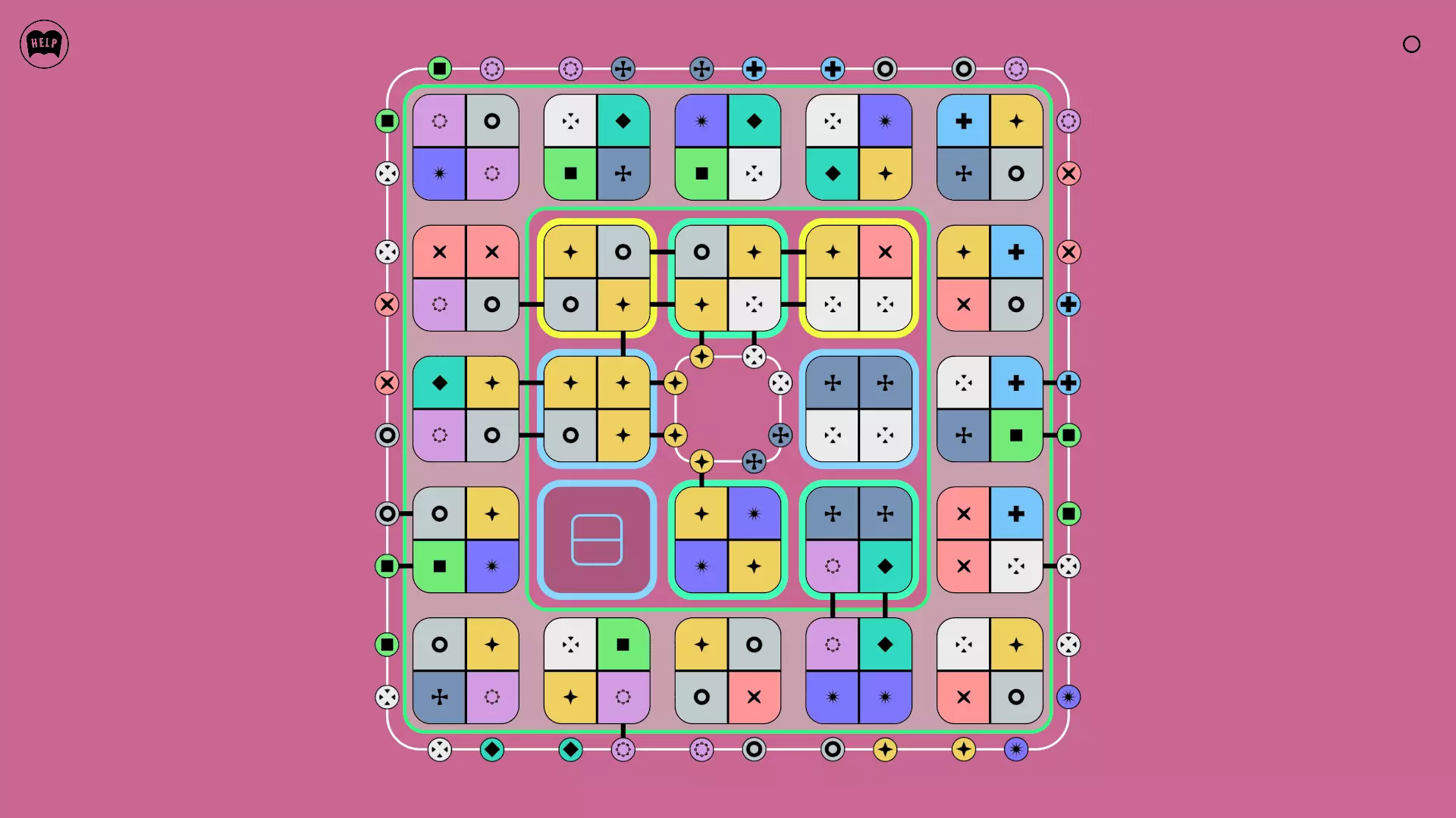 《Lines On Sides》关卡71-84图文攻略 简介 前18个关卡仅提供解决方案,因为解决这些关卡只需旋转或交换方块。 第19关及后续关卡包含步骤说明,解释如何分割、复制和转移方块。 由于Steam的限制,我不得不将本攻略分为两部分。 规则 旋转方块,直到方块上的图标与线条上或相邻方块上的符号匹配。当符号匹配时,它们之间会绘制一条线。 第7关引入了交换被绿线圈住的方块的功能。第14关新增了无法旋转或移动的方块,这类方块外有粗黑线环绕。 第19关新增了分裂平台,该平台外有蓝色线条环绕。此平台可将方块分裂为两个,或将两个方块合并为一个。