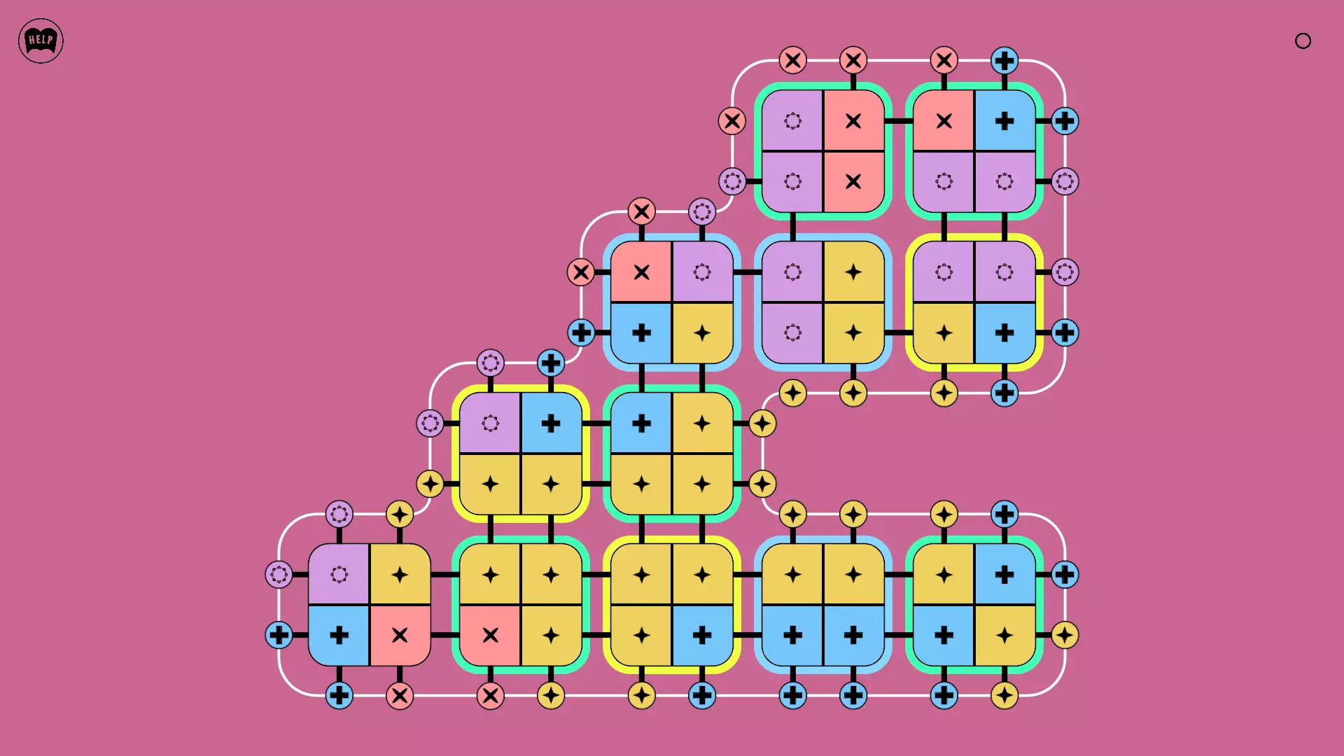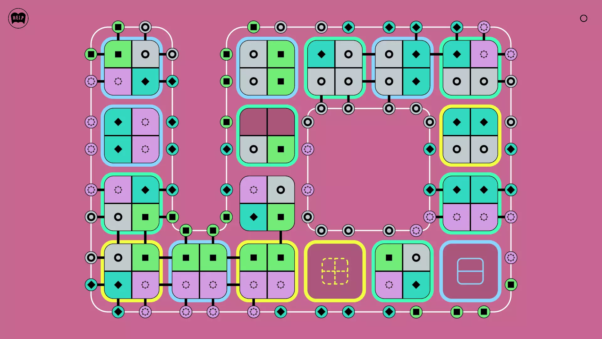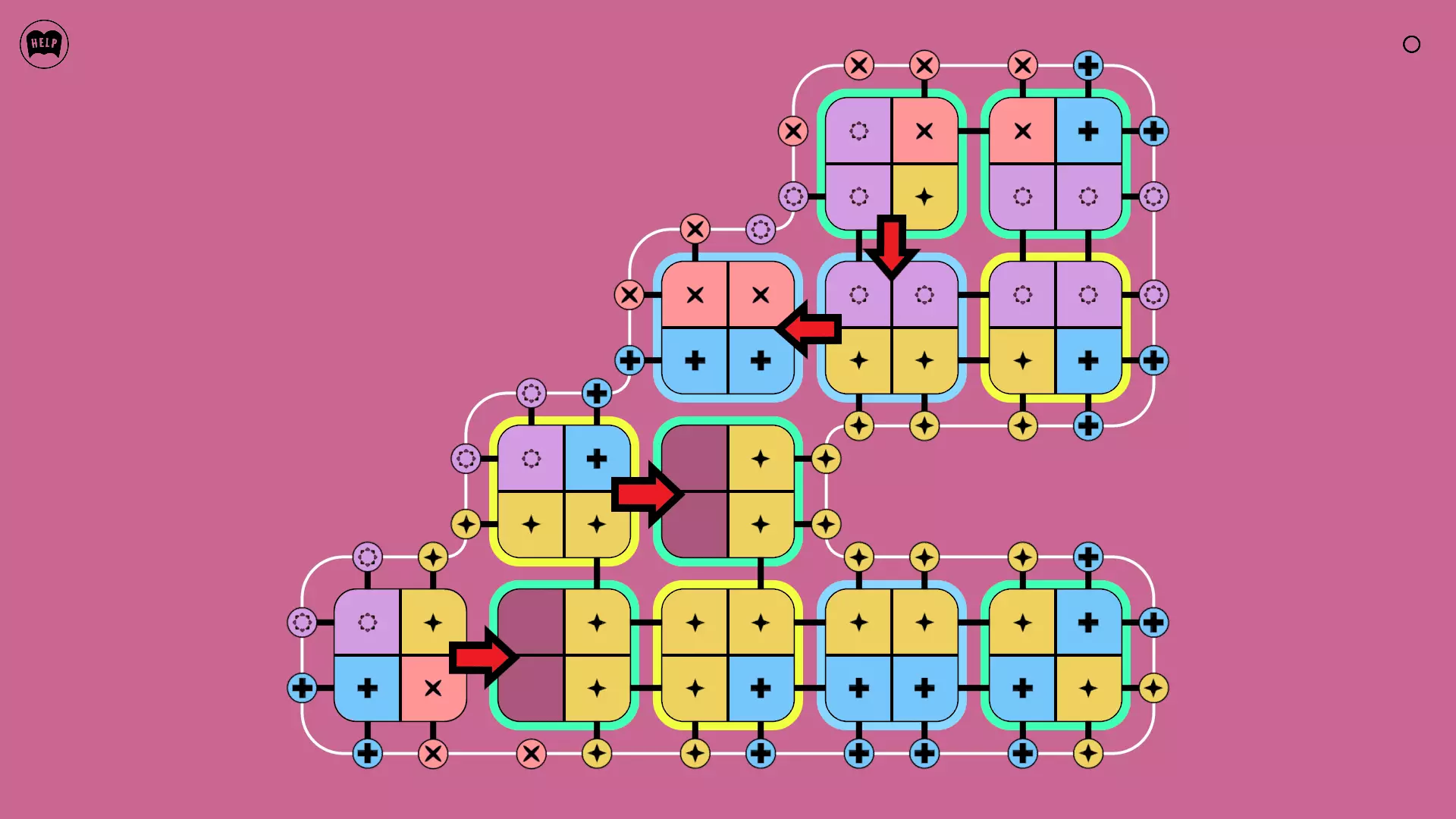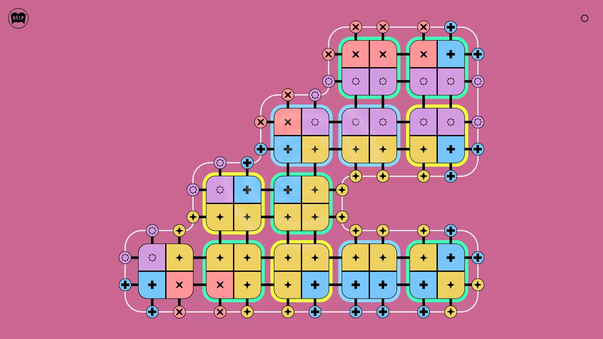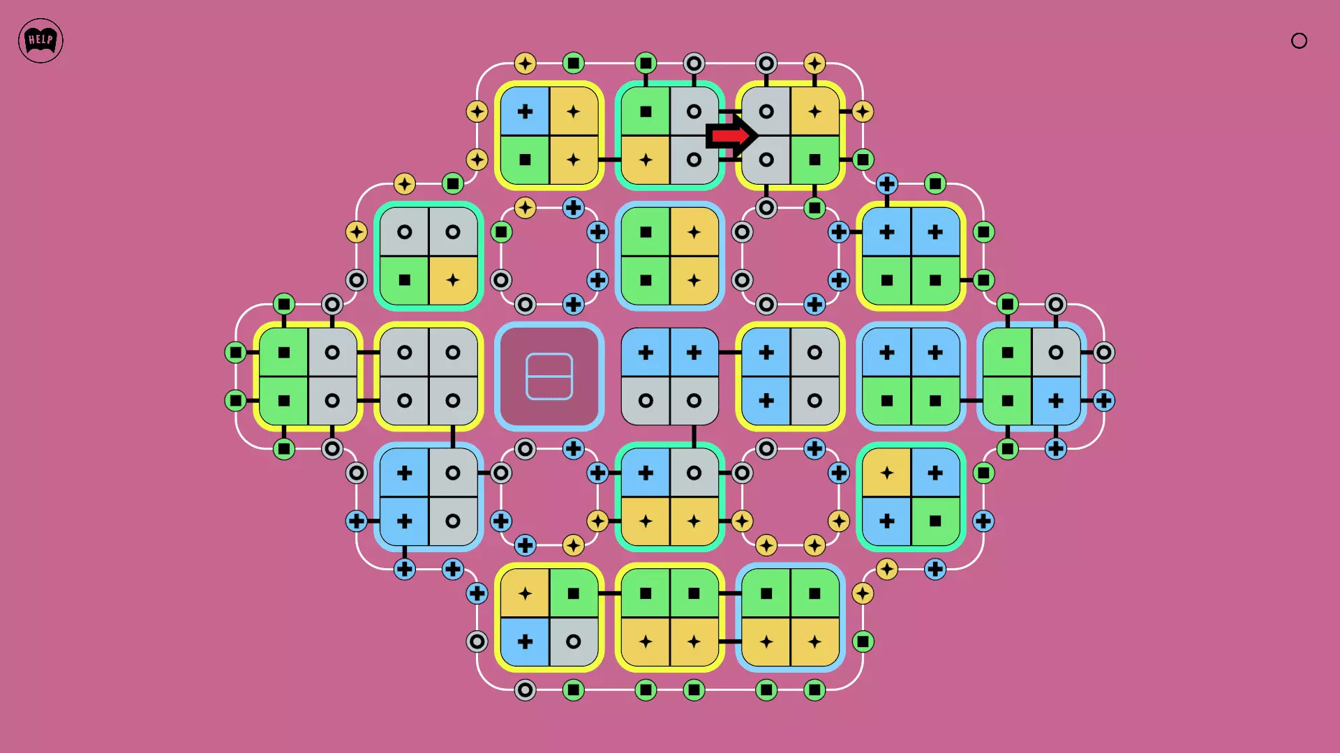 《Lines On Sides》关卡71-84图文攻略 简介 前18个关卡仅提供解决方案,因为解决这些关卡只需旋转或交换方块。 第19关及后续关卡包含步骤说明,解释如何分割、复制和转移方块。 由于Steam的限制,我不得不将本攻略分为两部分。 规则 旋转方块,直到方块上的图标与线条上或相邻方块上的符号匹配。当符号匹配时,它们之间会绘制一条线。 第7关引入了交换被绿线圈住的方块的功能。第14关新增了无法旋转或移动的方块,这类方块外有粗黑线环绕。 第19关新增了分裂平台,该平台外有蓝色线条环绕。此平台可将方块分裂为两个,或将两个方块合并为一个。