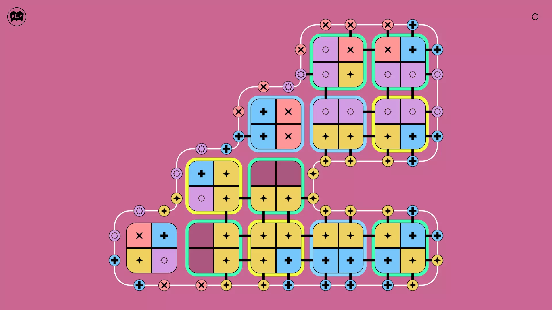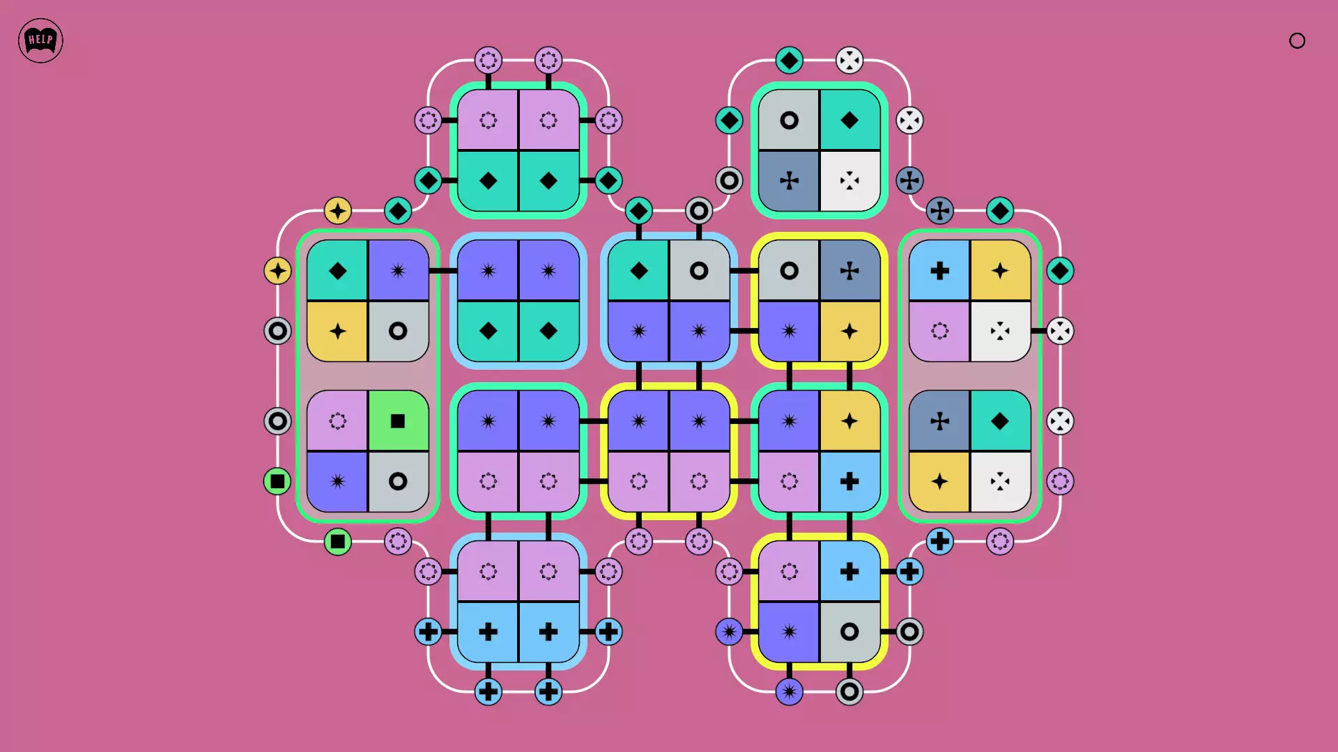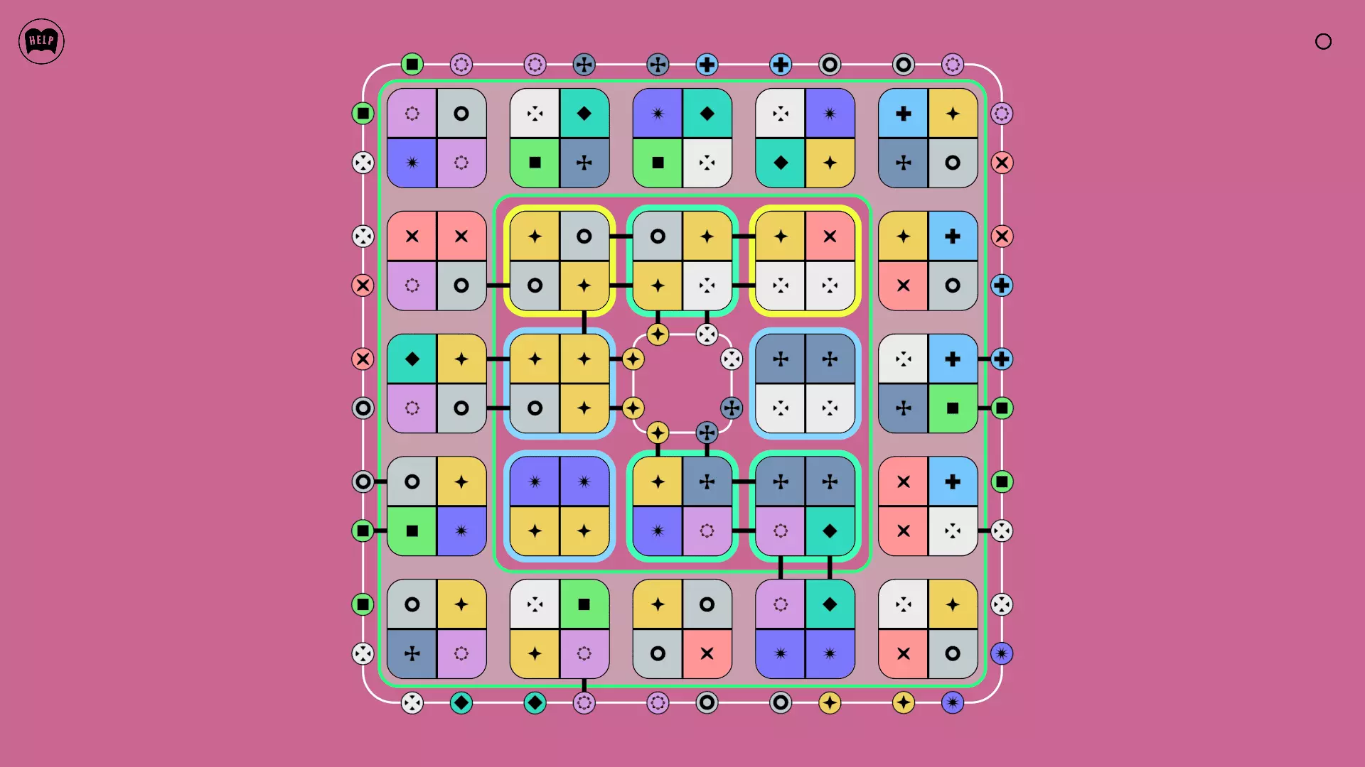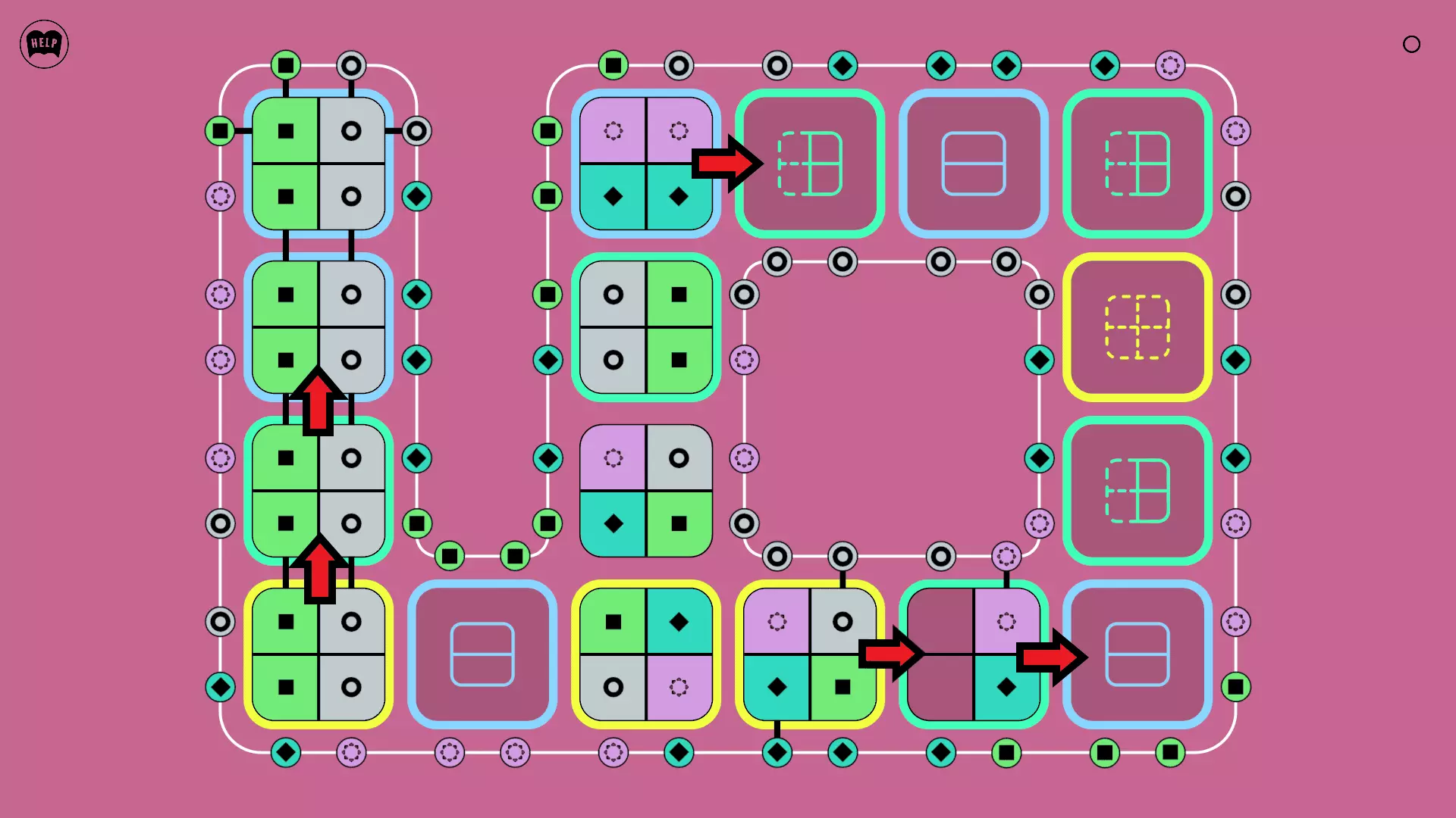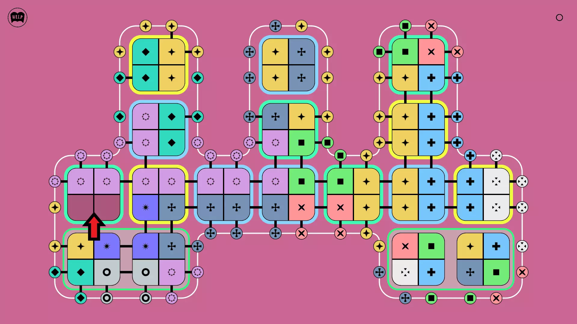《Lines On Sides》关卡71-84图文攻略 简介 前18个关卡仅提供解决方案,因为解决这些关卡只需旋转或交换方块。 第19关及后续关卡包含步骤说明,解释如何分割、复制和转移方块。 由于Steam的限制,我不得不将本攻略分为两部分。 规则 旋转方块,直到方块上的图标与线条上或相邻方块上的符号匹配。当符号匹配时,它们之间会绘制一条线。 第7关引入了交换被绿线圈住的方块的功能。第14关新增了无法旋转或移动的方块,这类方块外有粗黑线环绕。 第19关新增了分裂平台,该平台外有蓝色线条环绕。此平台可将方块分裂为两个,或将两个方块合并为一个。