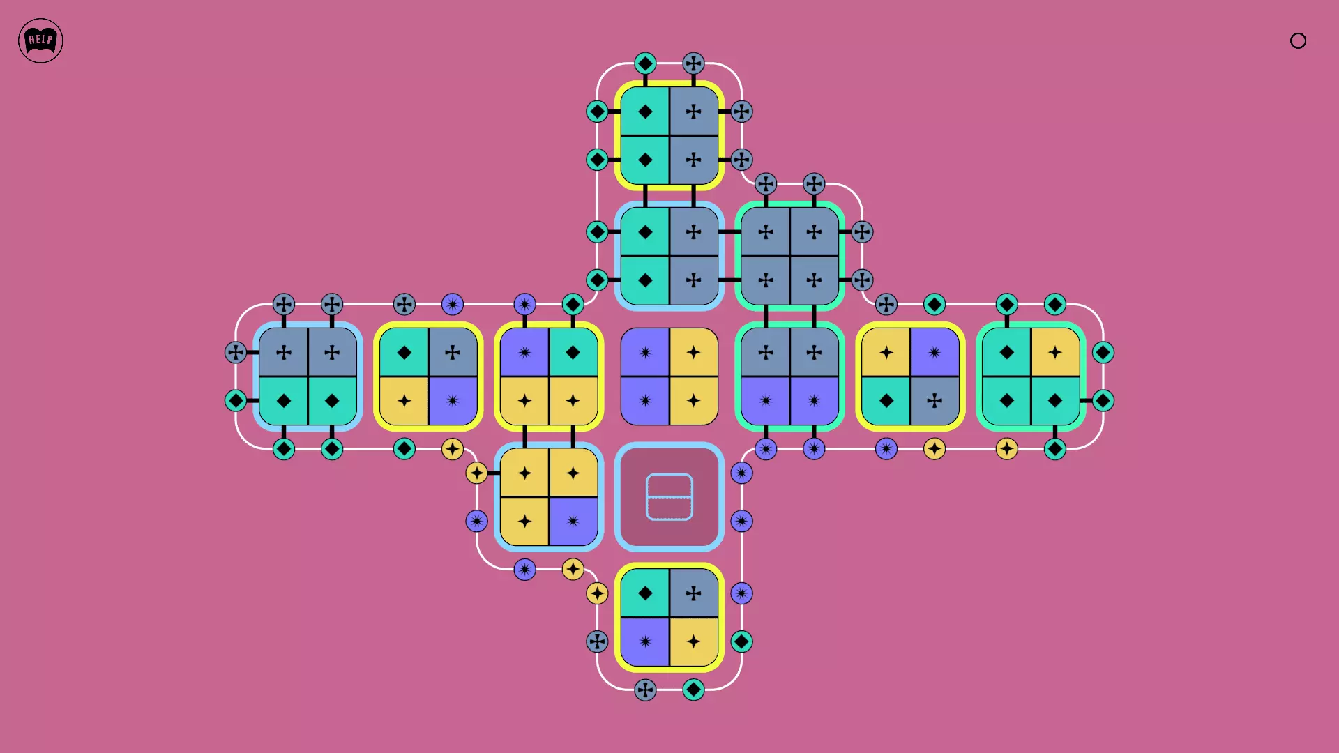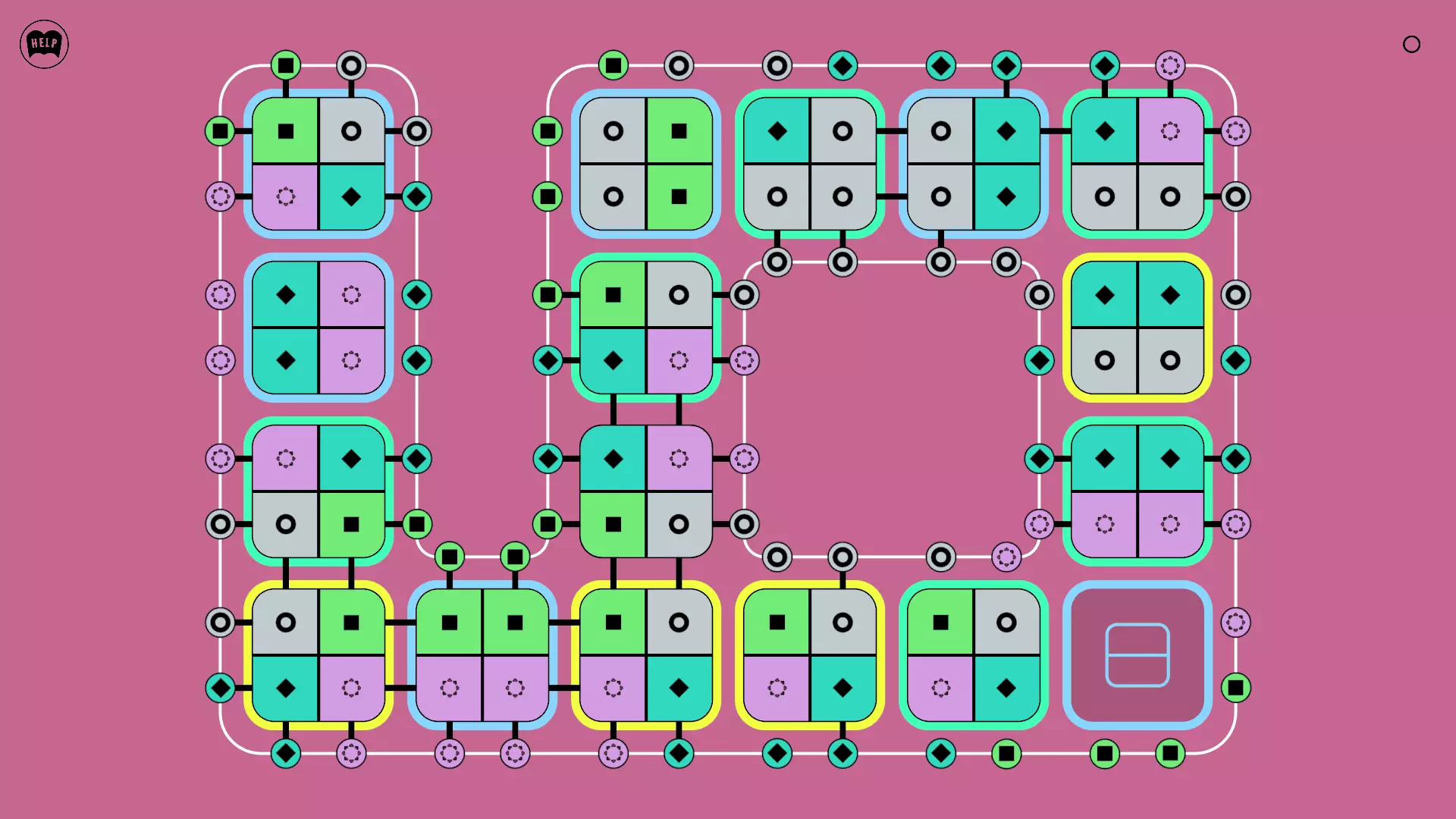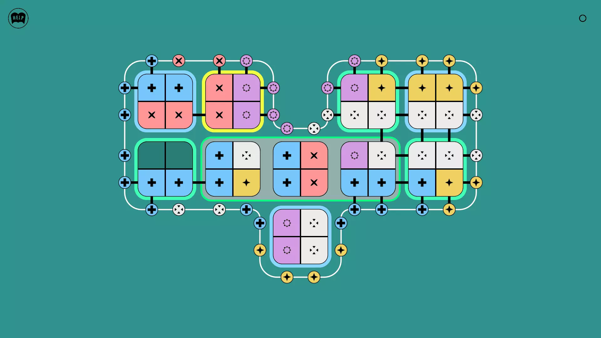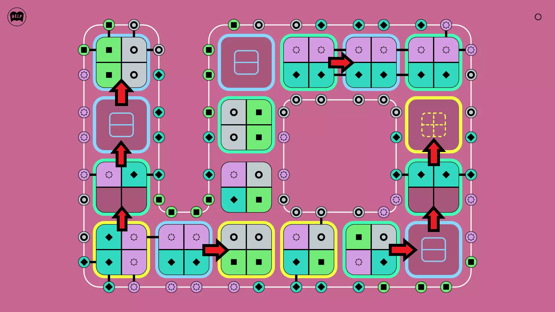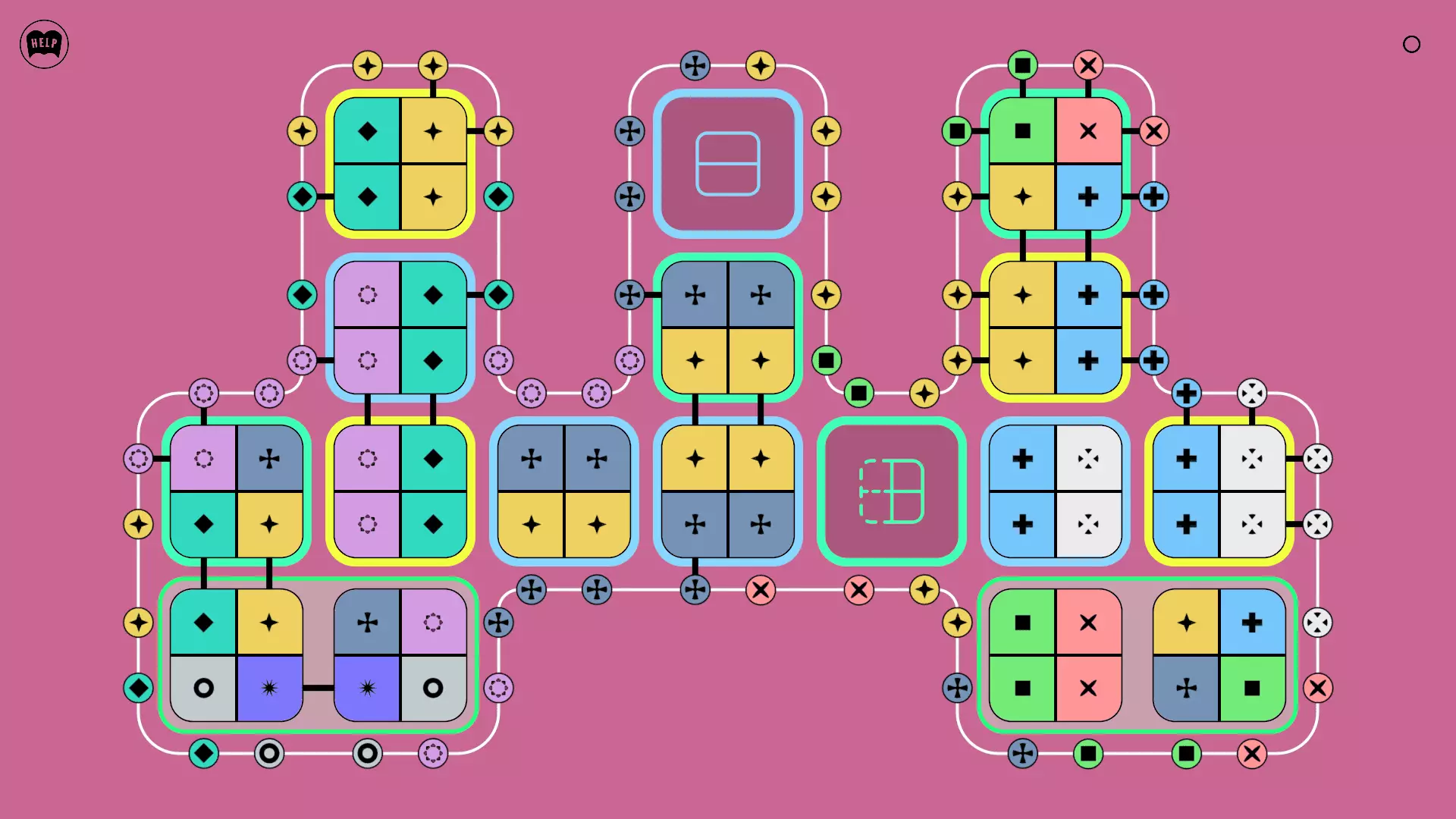 《Lines On Sides》关卡71-84图文攻略 简介 前18个关卡仅提供解决方案,因为解决这些关卡只需旋转或交换方块。 第19关及后续关卡包含步骤说明,解释如何分割、复制和转移方块。 由于Steam的限制,我不得不将本攻略分为两部分。 规则 旋转方块,直到方块上的图标与线条上或相邻方块上的符号匹配。当符号匹配时,它们之间会绘制一条线。 第7关引入了交换被绿线圈住的方块的功能。第14关新增了无法旋转或移动的方块,这类方块外有粗黑线环绕。 第19关新增了分裂平台,该平台外有蓝色线条环绕。此平台可将方块分裂为两个,或将两个方块合并为一个。