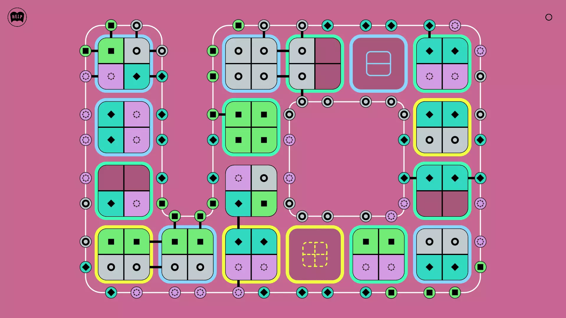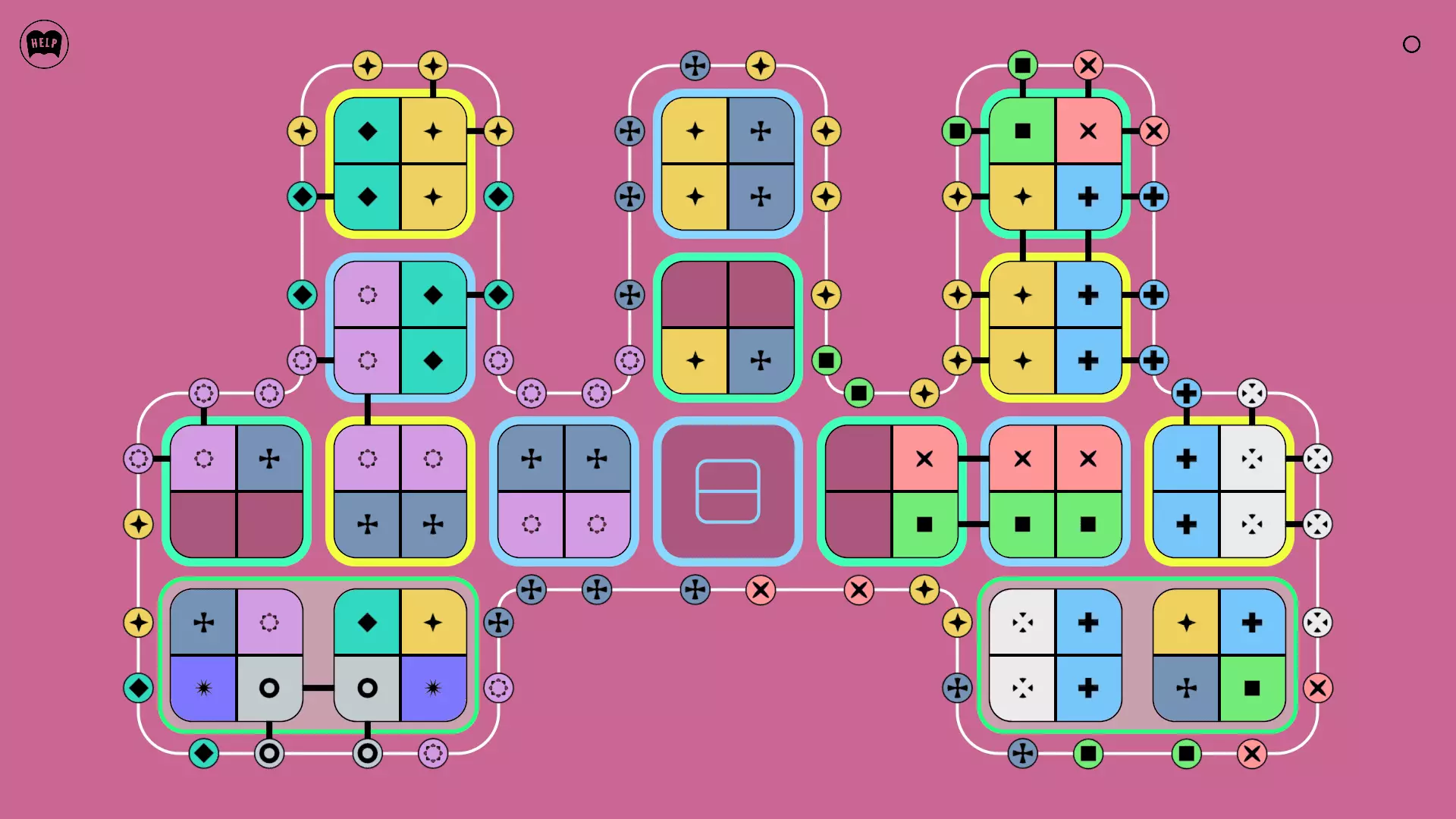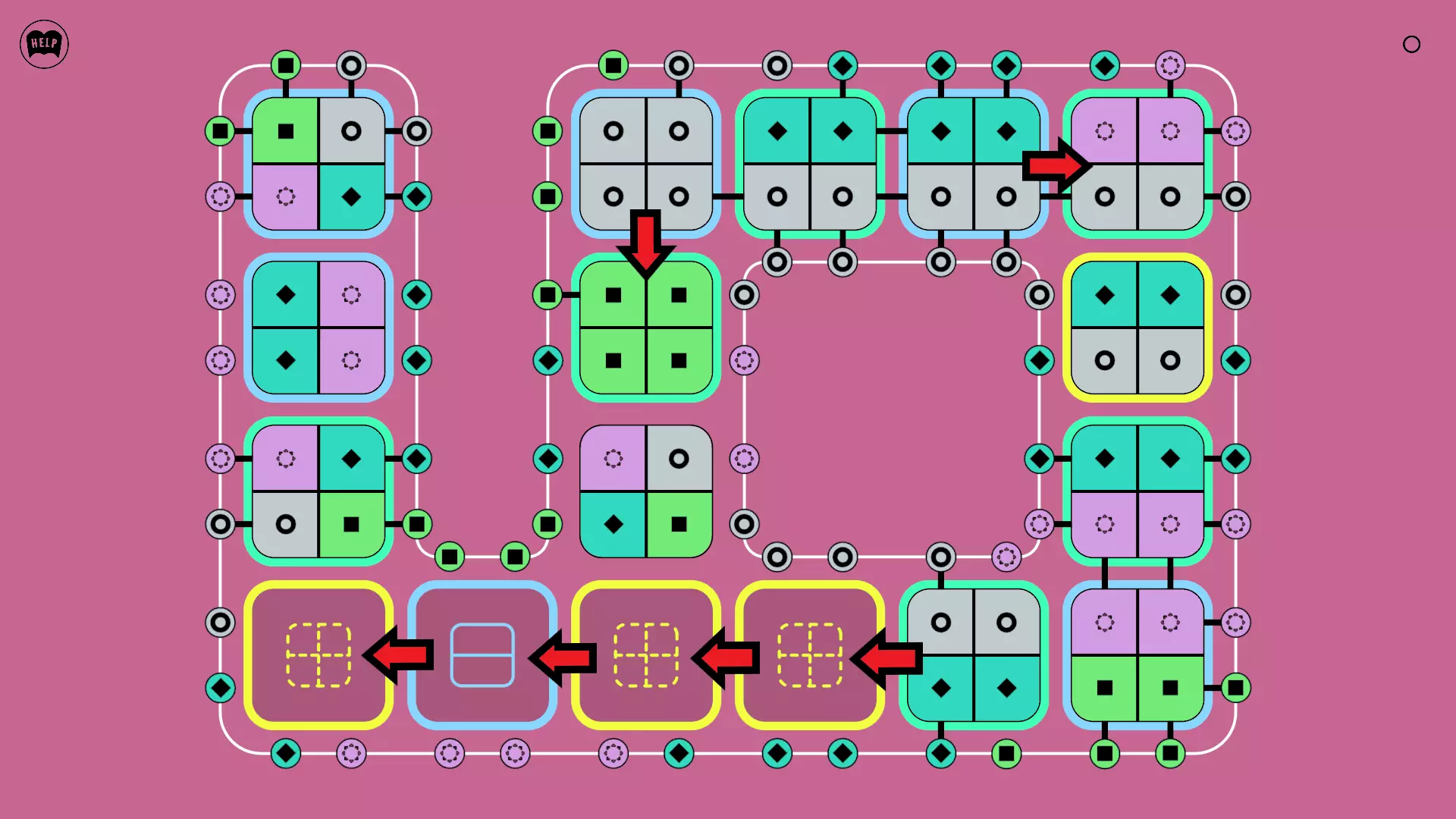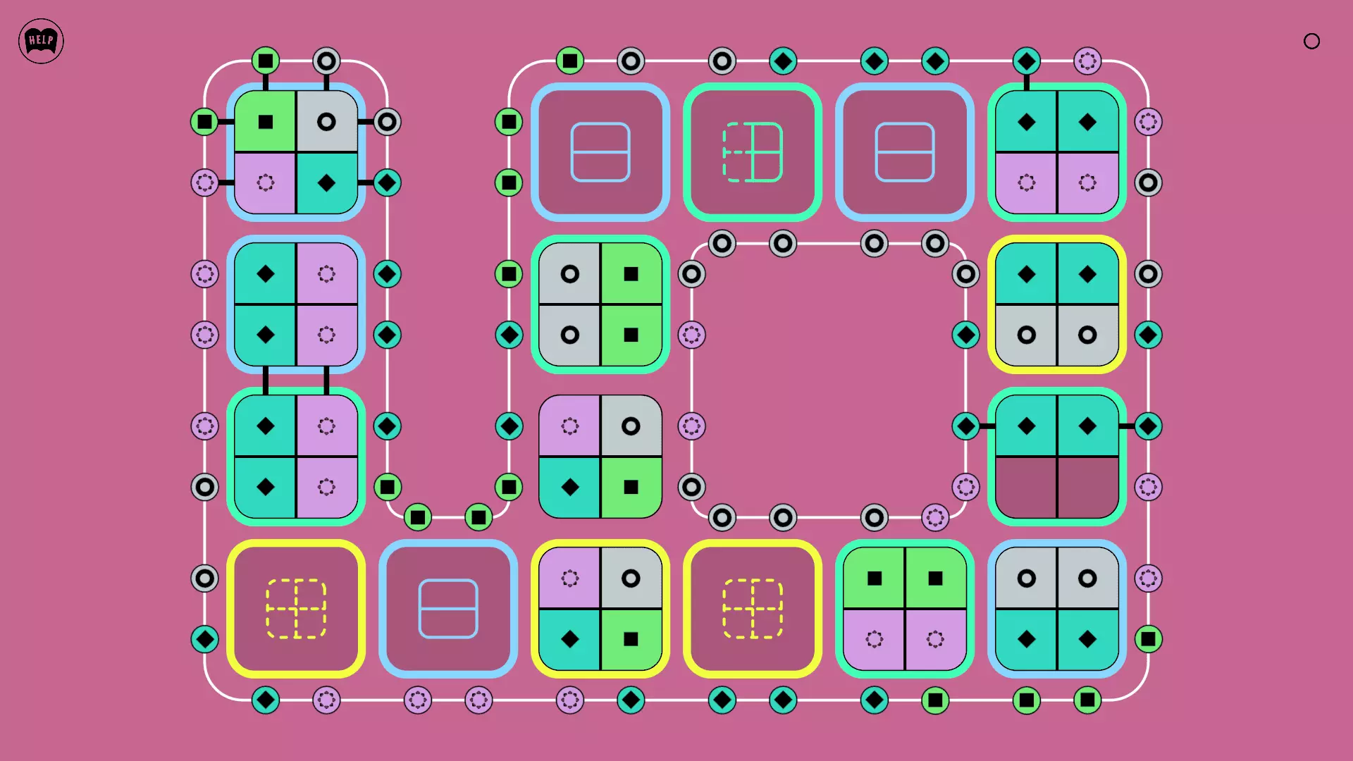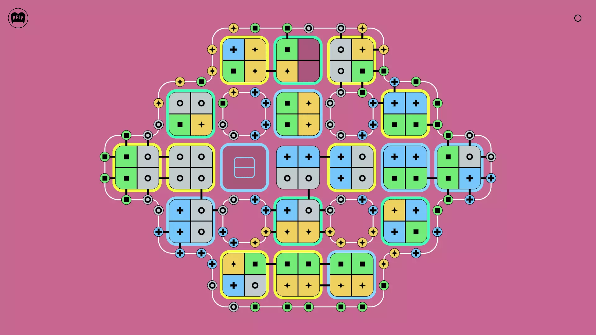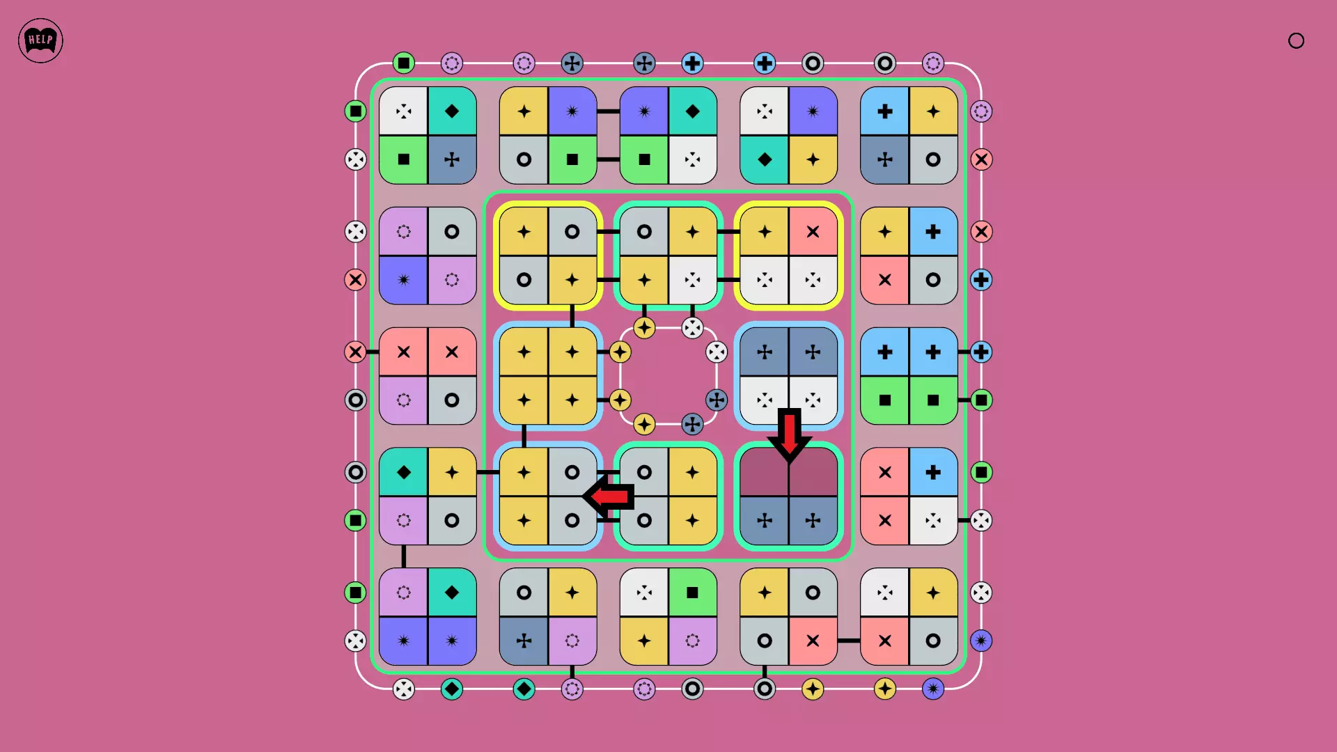 《Lines On Sides》关卡71-84图文攻略 简介 前18个关卡仅提供解决方案,因为解决这些关卡只需旋转或交换方块。 第19关及后续关卡包含步骤说明,解释如何分割、复制和转移方块。 由于Steam的限制,我不得不将本攻略分为两部分。 规则 旋转方块,直到方块上的图标与线条上或相邻方块上的符号匹配。当符号匹配时,它们之间会绘制一条线。 第7关引入了交换被绿线圈住的方块的功能。第14关新增了无法旋转或移动的方块,这类方块外有粗黑线环绕。 第19关新增了分裂平台,该平台外有蓝色线条环绕。此平台可将方块分裂为两个,或将两个方块合并为一个。