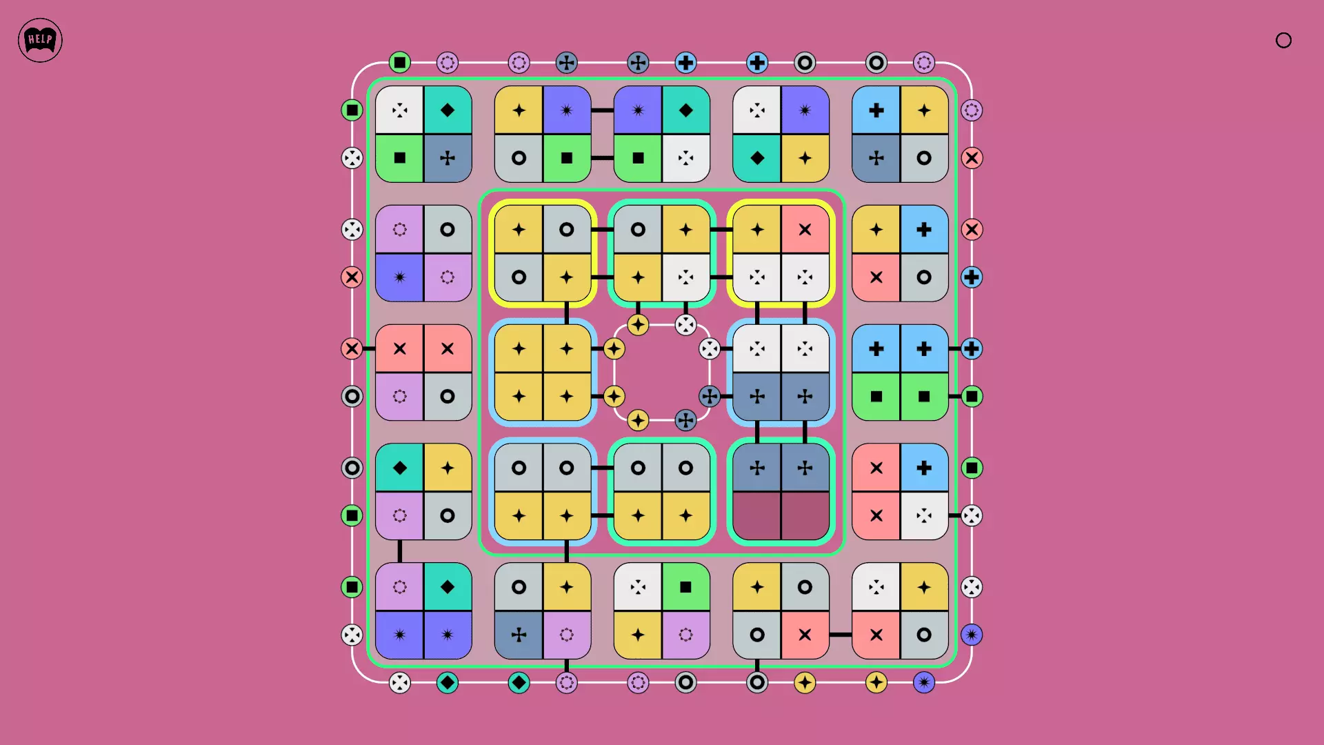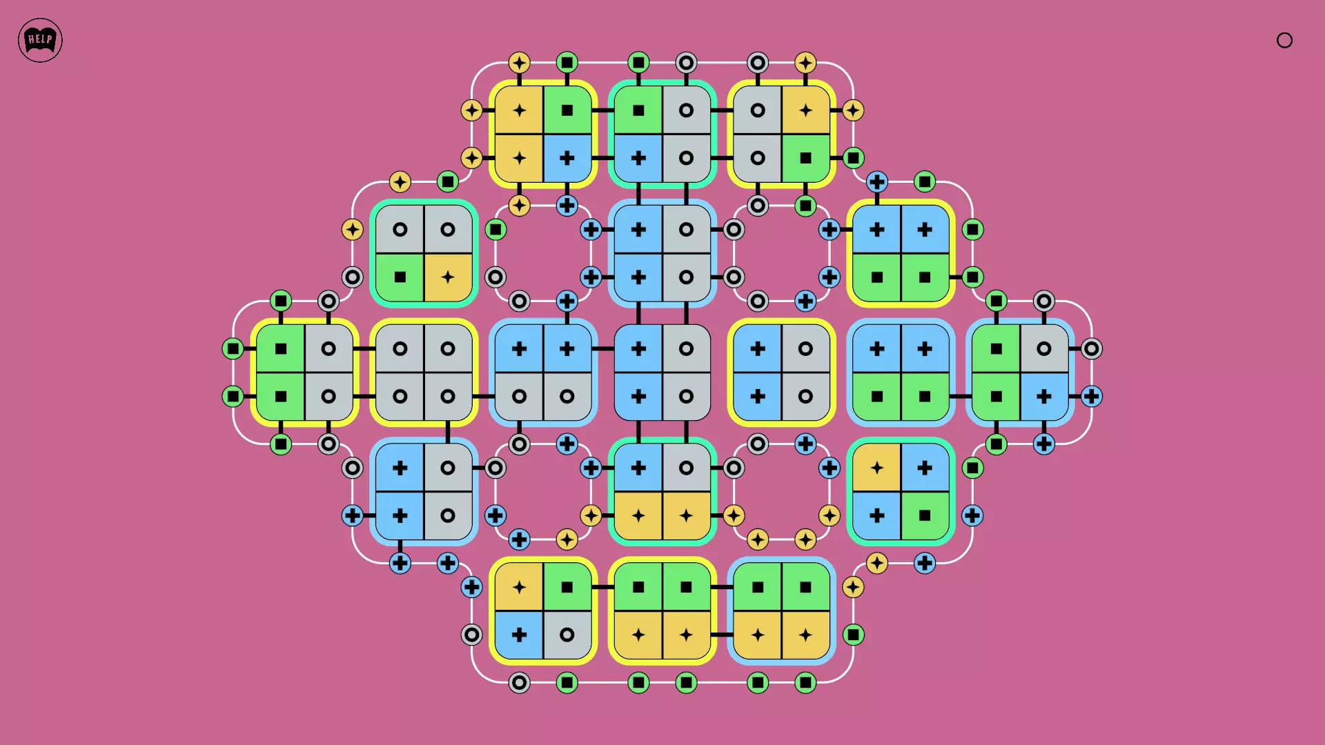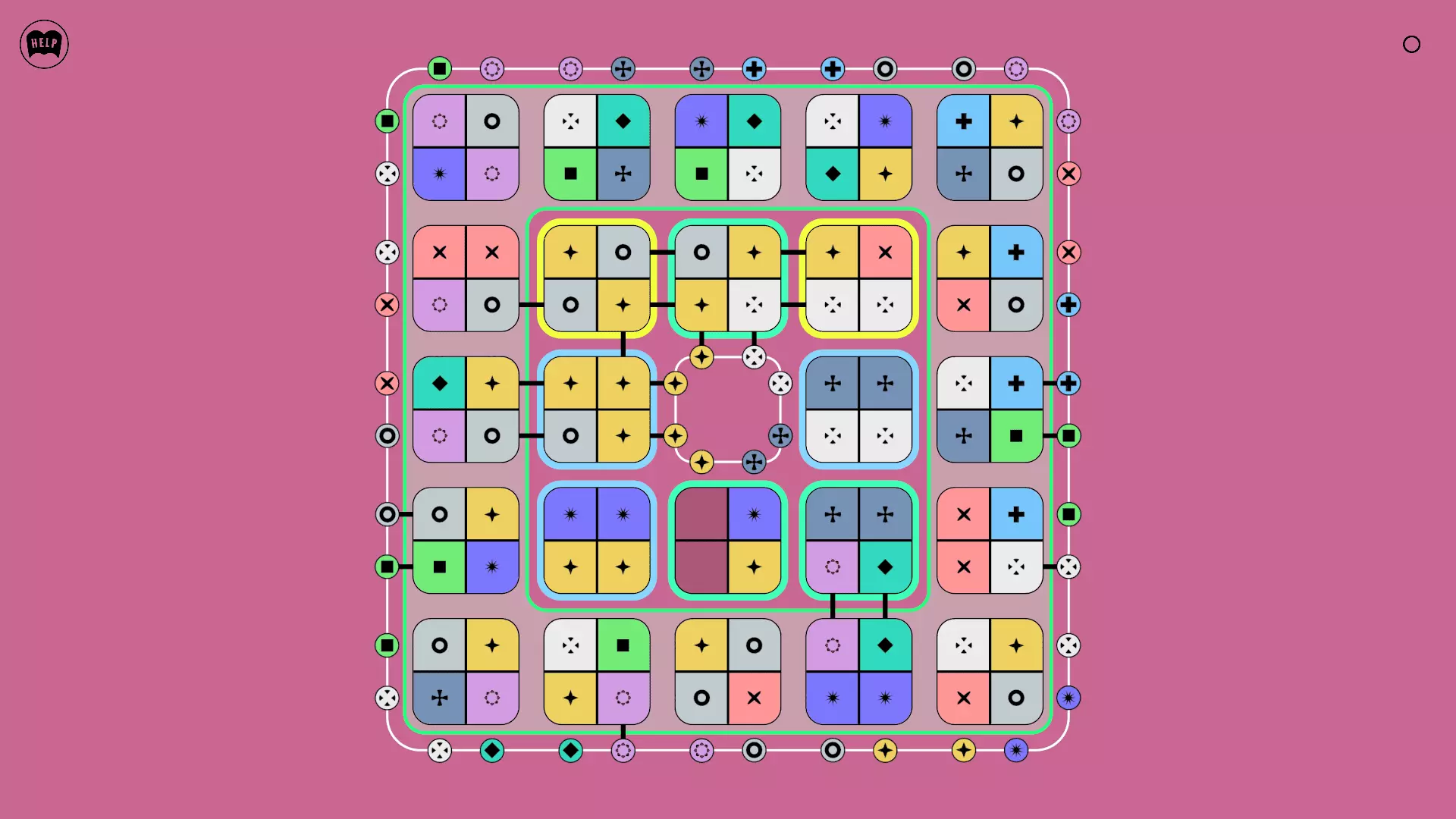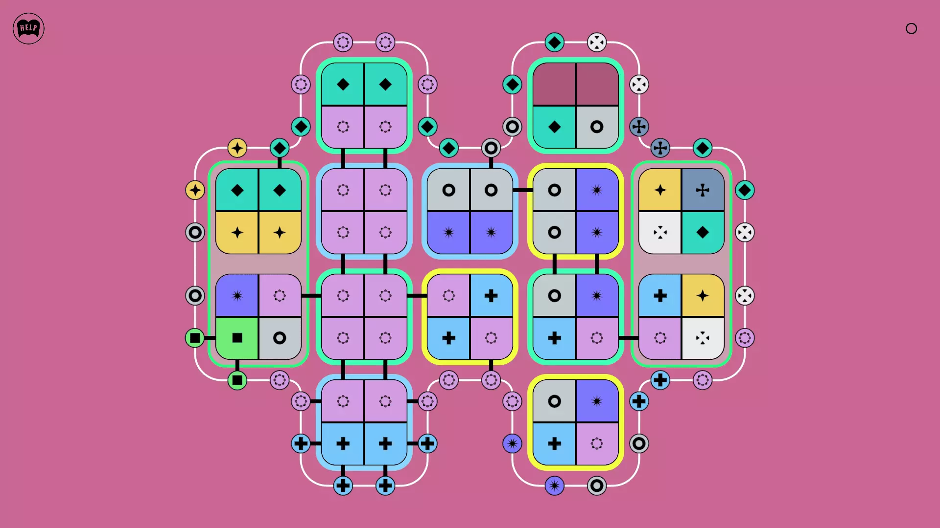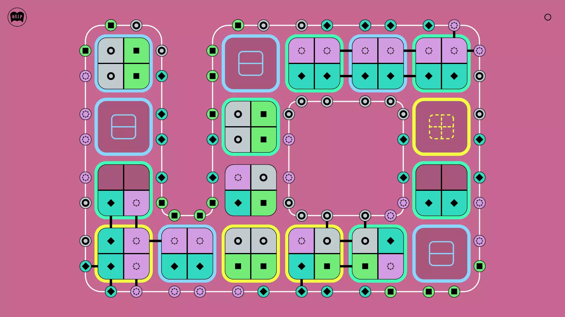 《Lines On Sides》关卡71-84图文攻略 简介 前18个关卡仅提供解决方案,因为解决这些关卡只需旋转或交换方块。 第19关及后续关卡包含步骤说明,解释如何分割、复制和转移方块。 由于Steam的限制,我不得不将本攻略分为两部分。 规则 旋转方块,直到方块上的图标与线条上或相邻方块上的符号匹配。当符号匹配时,它们之间会绘制一条线。 第7关引入了交换被绿线圈住的方块的功能。第14关新增了无法旋转或移动的方块,这类方块外有粗黑线环绕。 第19关新增了分裂平台,该平台外有蓝色线条环绕。此平台可将方块分裂为两个,或将两个方块合并为一个。