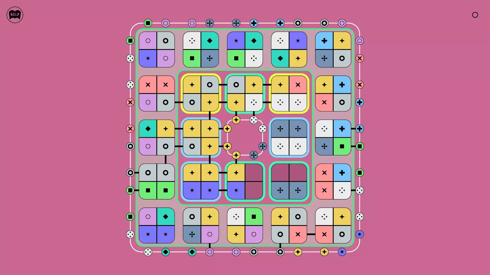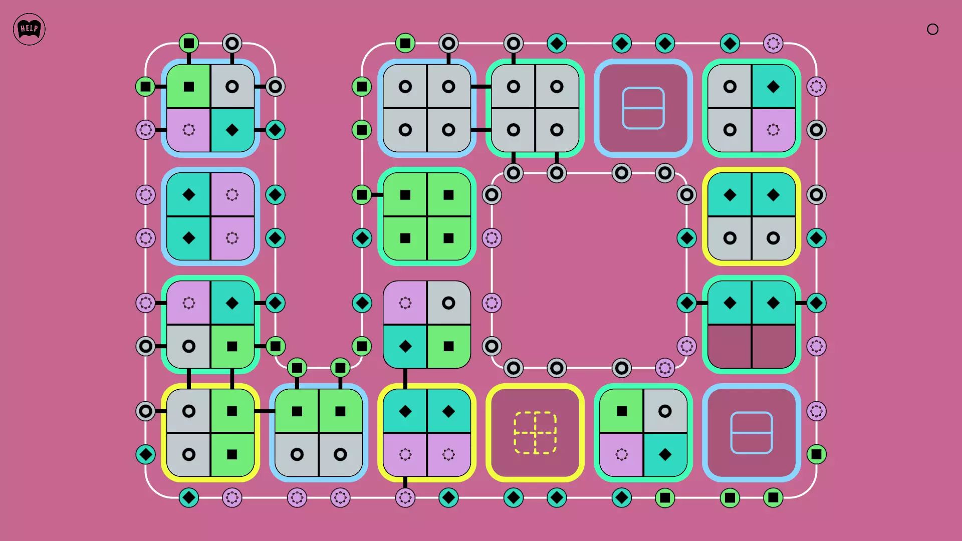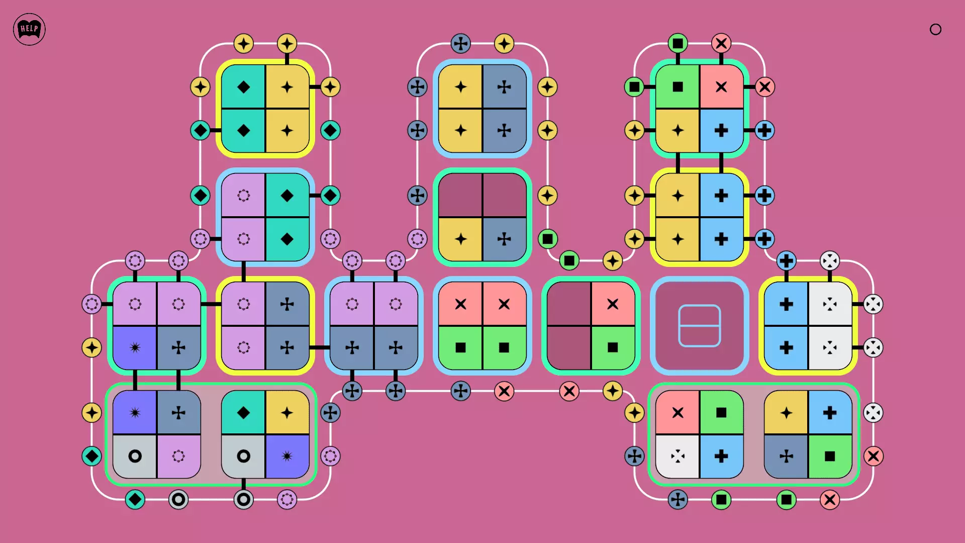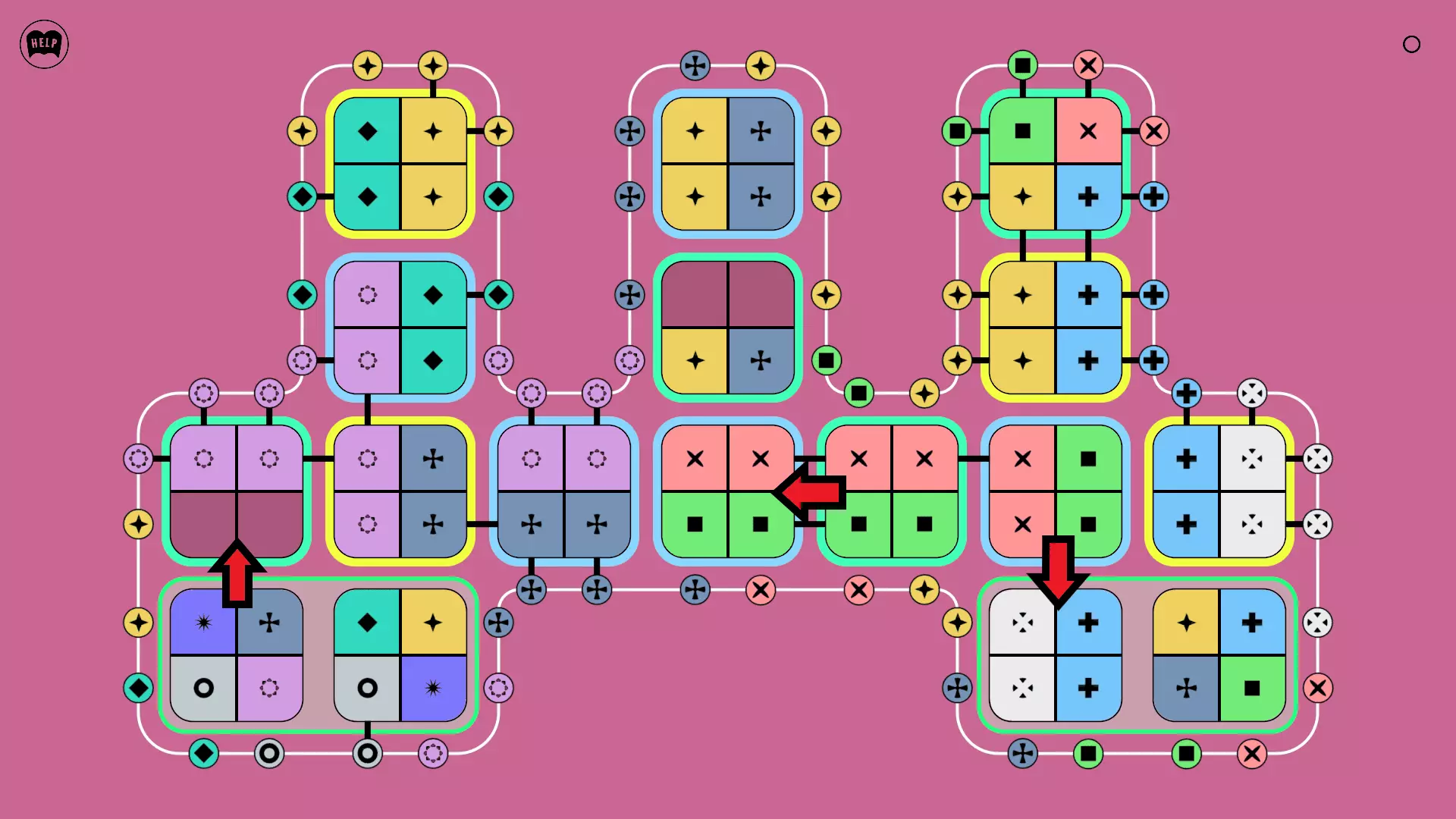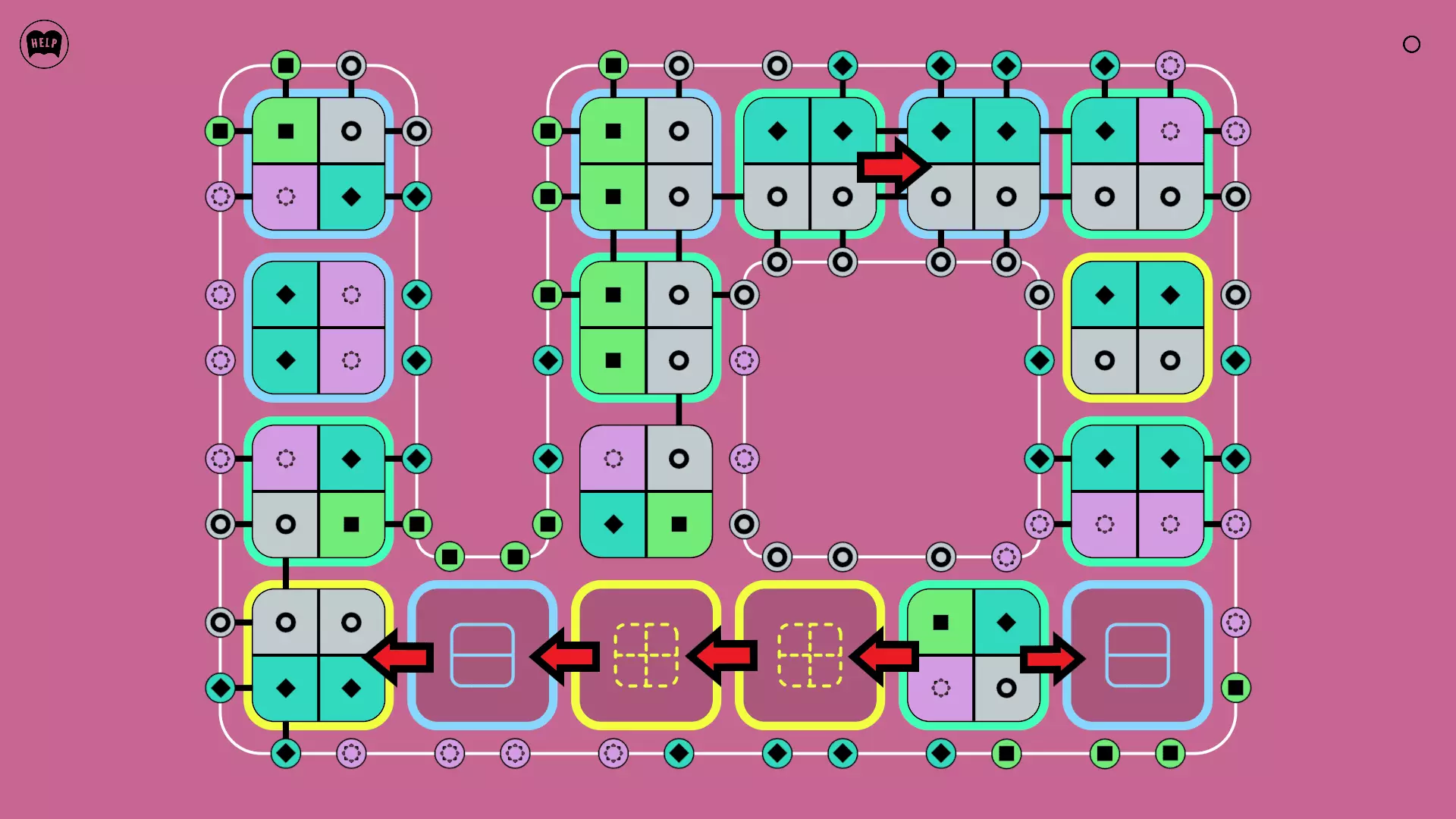《Lines On Sides》关卡71-84图文攻略 简介 前18个关卡仅提供解决方案,因为解决这些关卡只需旋转或交换方块。 第19关及后续关卡包含步骤说明,解释如何分割、复制和转移方块。 由于Steam的限制,我不得不将本攻略分为两部分。 规则 旋转方块,直到方块上的图标与线条上或相邻方块上的符号匹配。当符号匹配时,它们之间会绘制一条线。 第7关引入了交换被绿线圈住的方块的功能。第14关新增了无法旋转或移动的方块,这类方块外有粗黑线环绕。 第19关新增了分裂平台,该平台外有蓝色线条环绕。此平台可将方块分裂为两个,或将两个方块合并为一个。