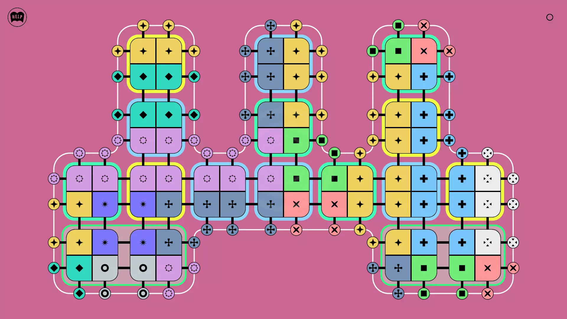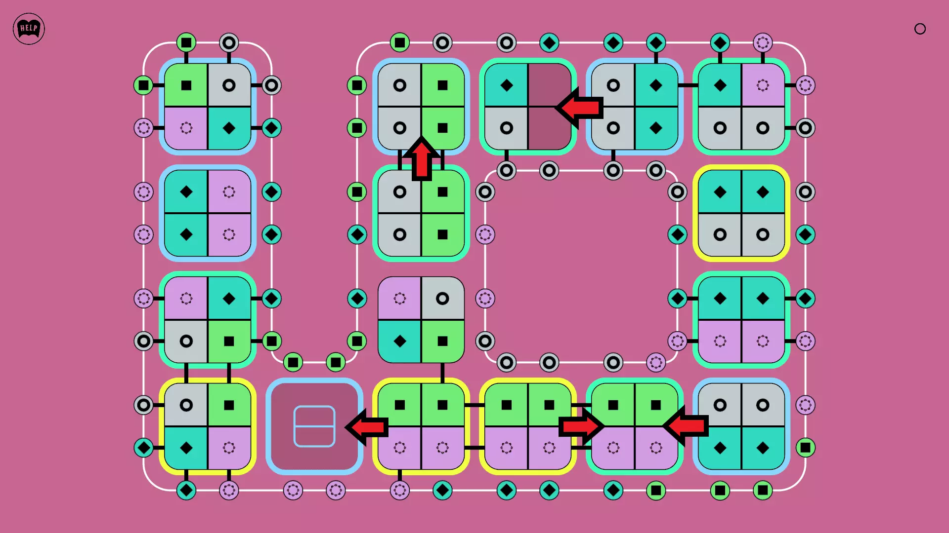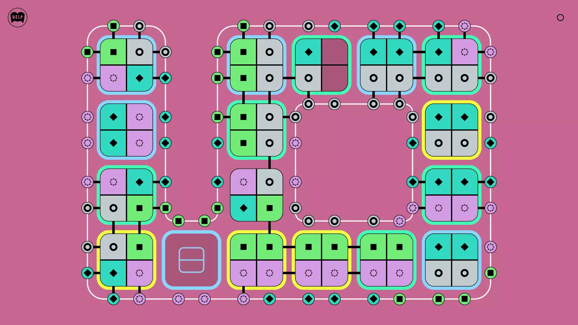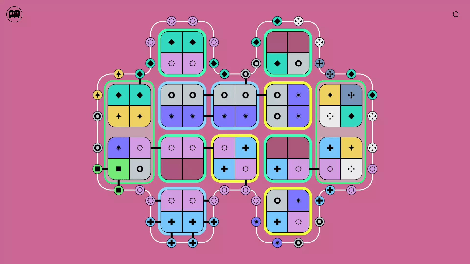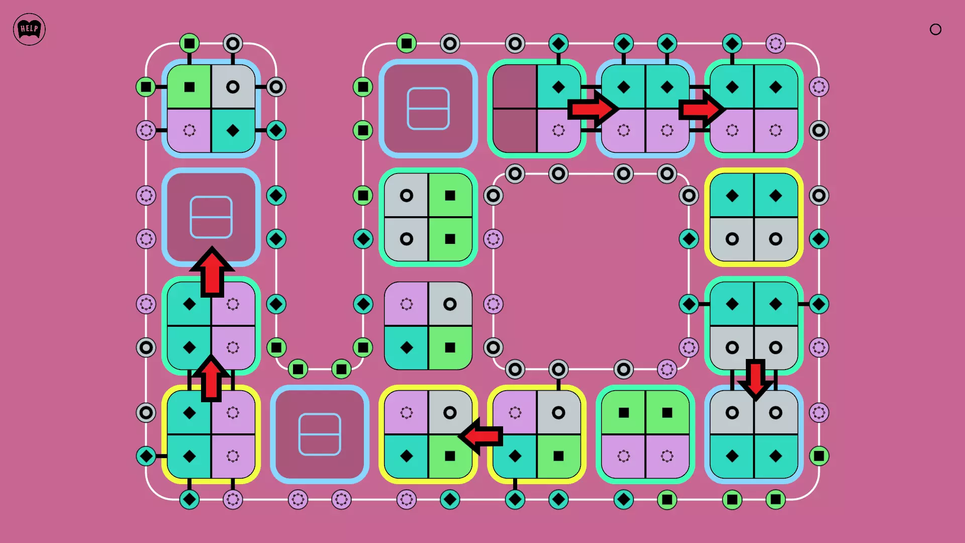 《Lines On Sides》关卡71-84图文攻略 简介 前18个关卡仅提供解决方案,因为解决这些关卡只需旋转或交换方块。 第19关及后续关卡包含步骤说明,解释如何分割、复制和转移方块。 由于Steam的限制,我不得不将本攻略分为两部分。 规则 旋转方块,直到方块上的图标与线条上或相邻方块上的符号匹配。当符号匹配时,它们之间会绘制一条线。 第7关引入了交换被绿线圈住的方块的功能。第14关新增了无法旋转或移动的方块,这类方块外有粗黑线环绕。 第19关新增了分裂平台,该平台外有蓝色线条环绕。此平台可将方块分裂为两个,或将两个方块合并为一个。