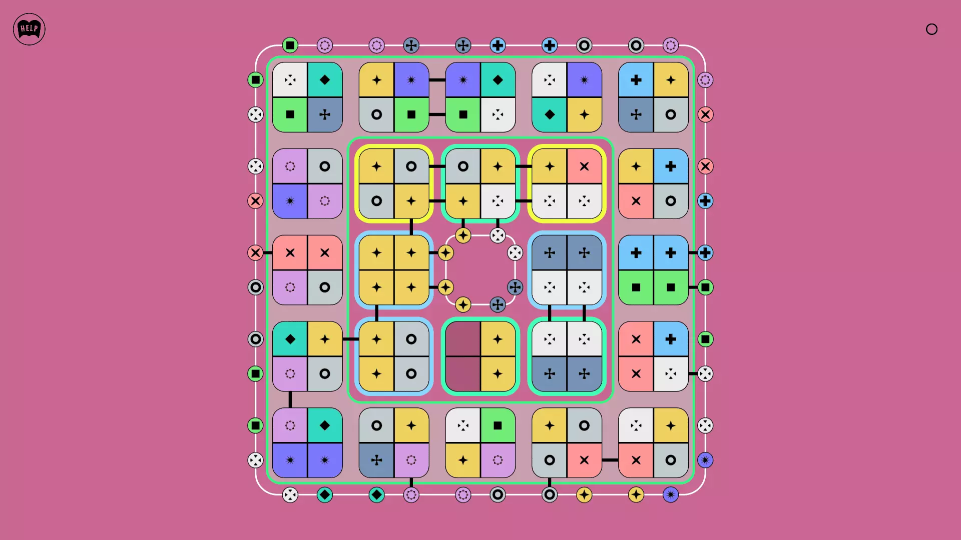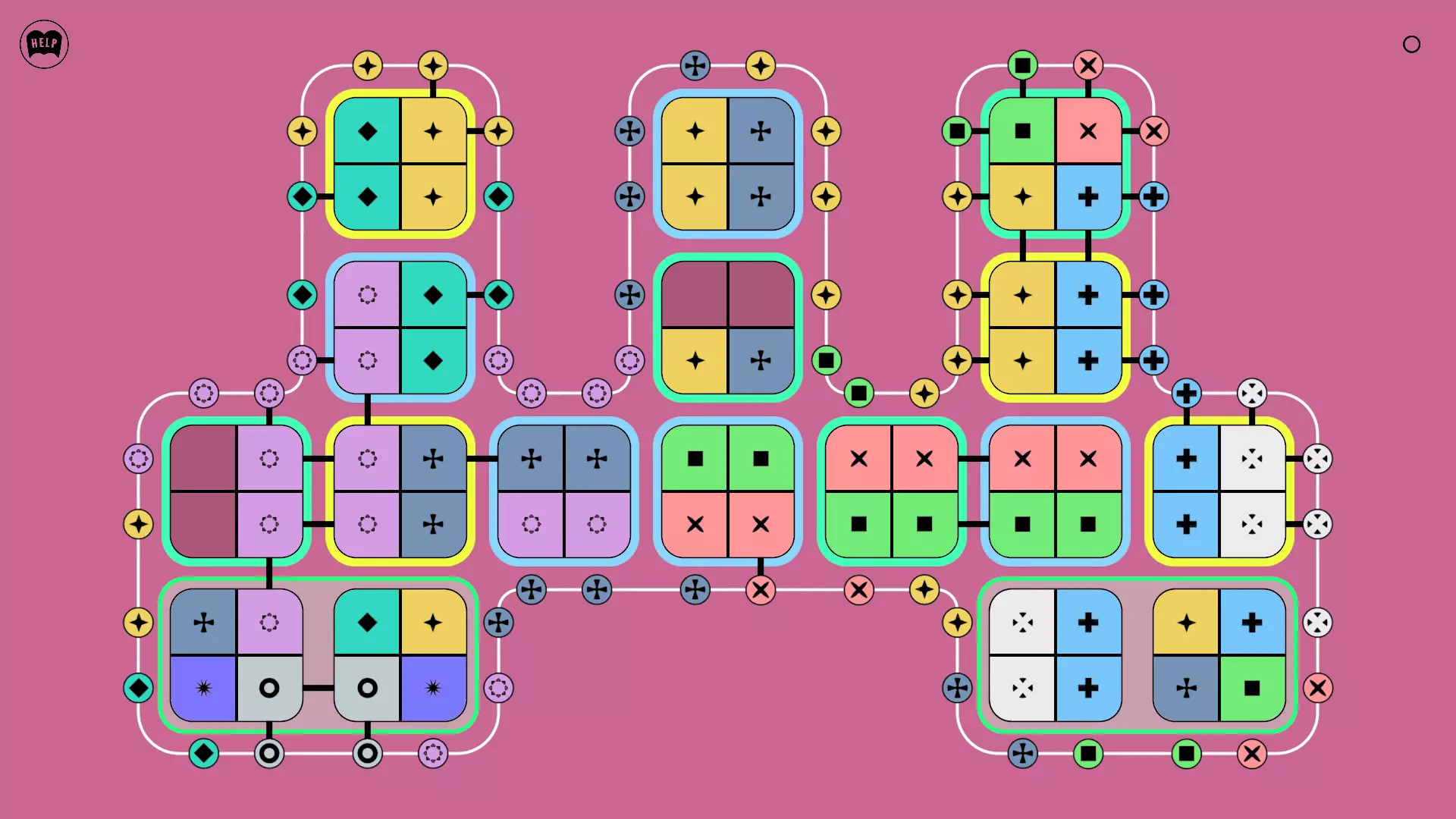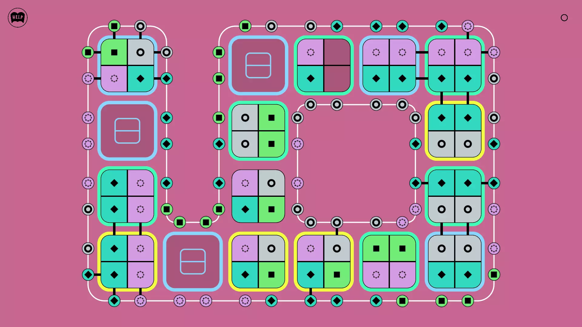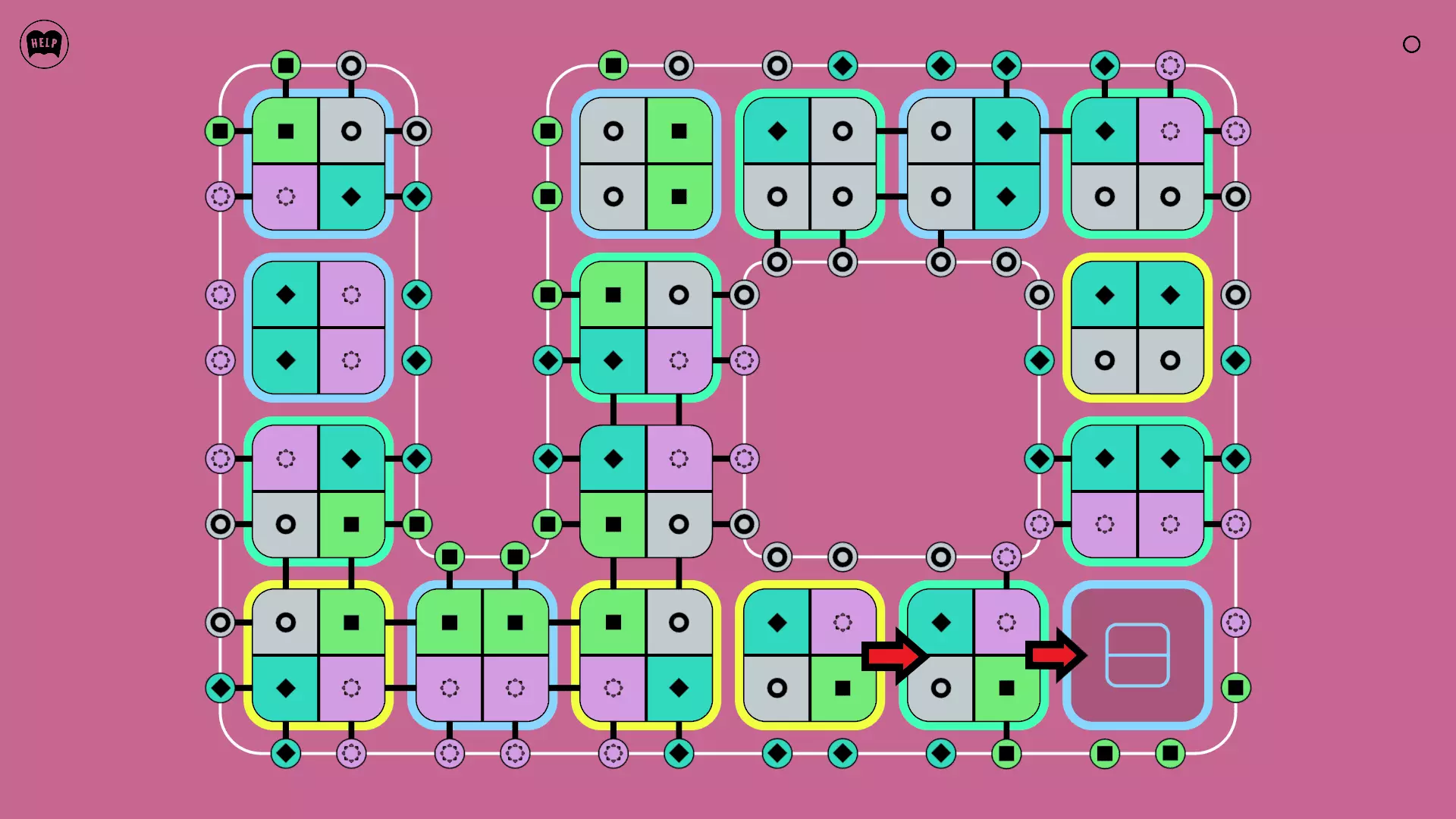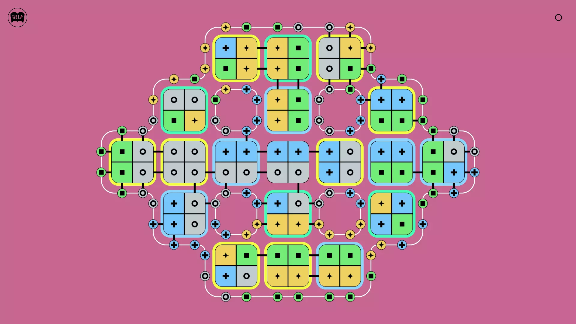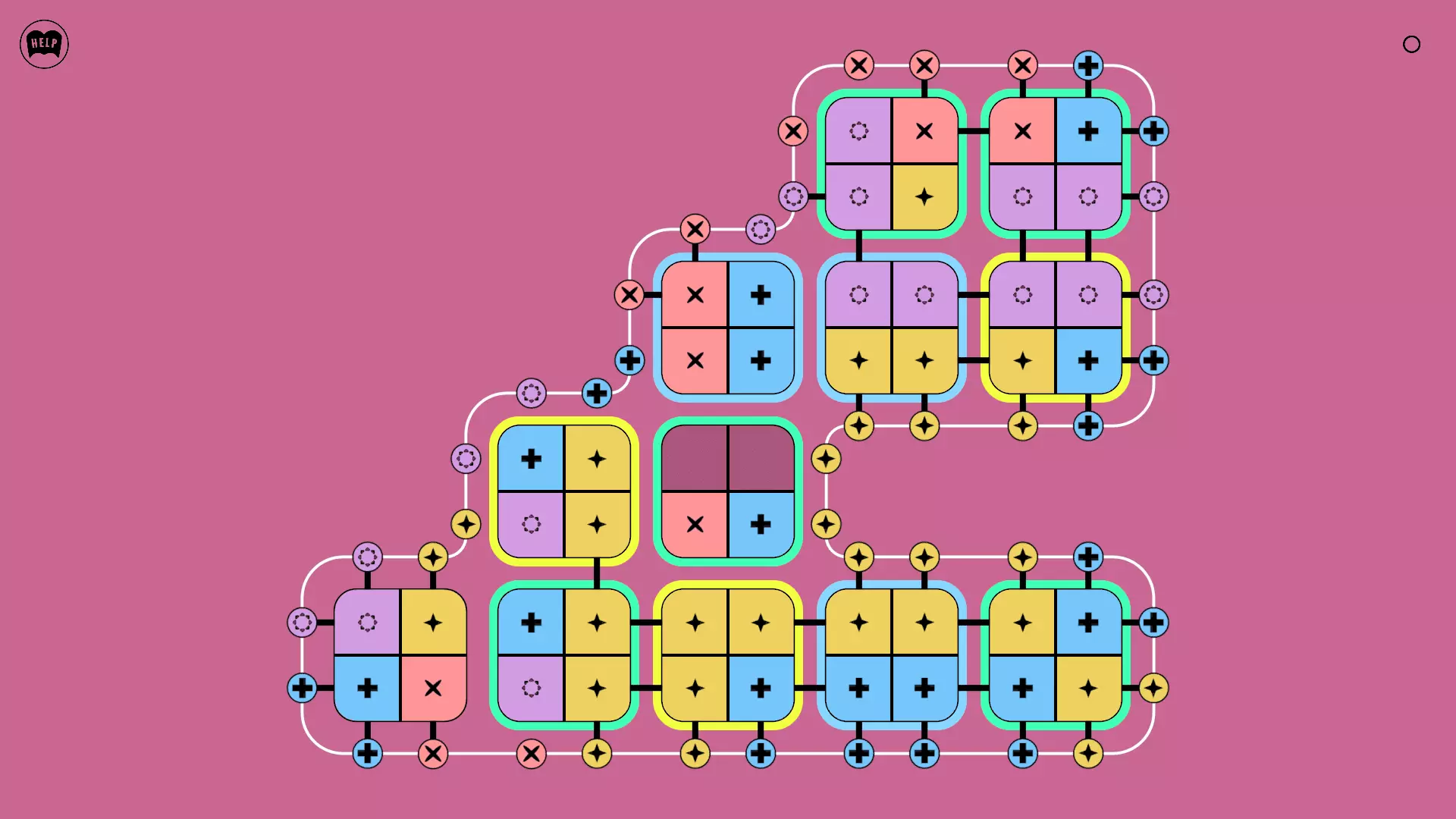 《Lines On Sides》关卡71-84图文攻略 简介 前18个关卡仅提供解决方案,因为解决这些关卡只需旋转或交换方块。 第19关及后续关卡包含步骤说明,解释如何分割、复制和转移方块。 由于Steam的限制,我不得不将本攻略分为两部分。 规则 旋转方块,直到方块上的图标与线条上或相邻方块上的符号匹配。当符号匹配时,它们之间会绘制一条线。 第7关引入了交换被绿线圈住的方块的功能。第14关新增了无法旋转或移动的方块,这类方块外有粗黑线环绕。 第19关新增了分裂平台,该平台外有蓝色线条环绕。此平台可将方块分裂为两个,或将两个方块合并为一个。