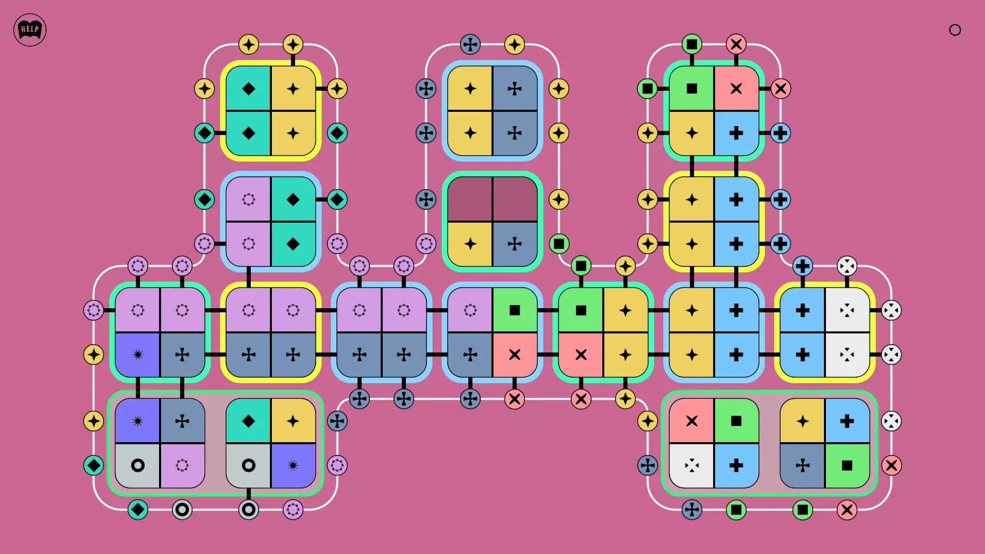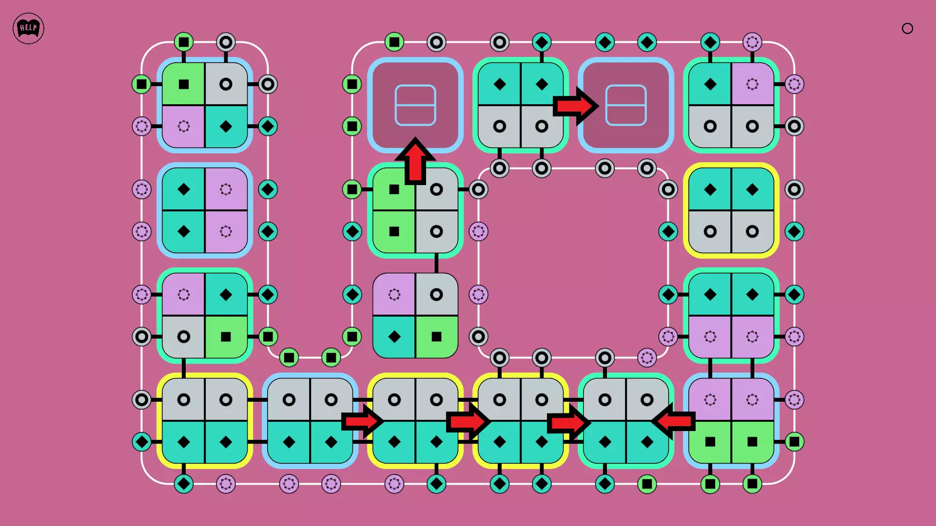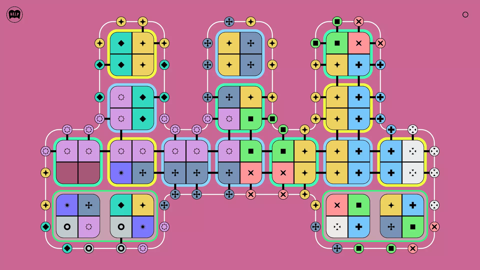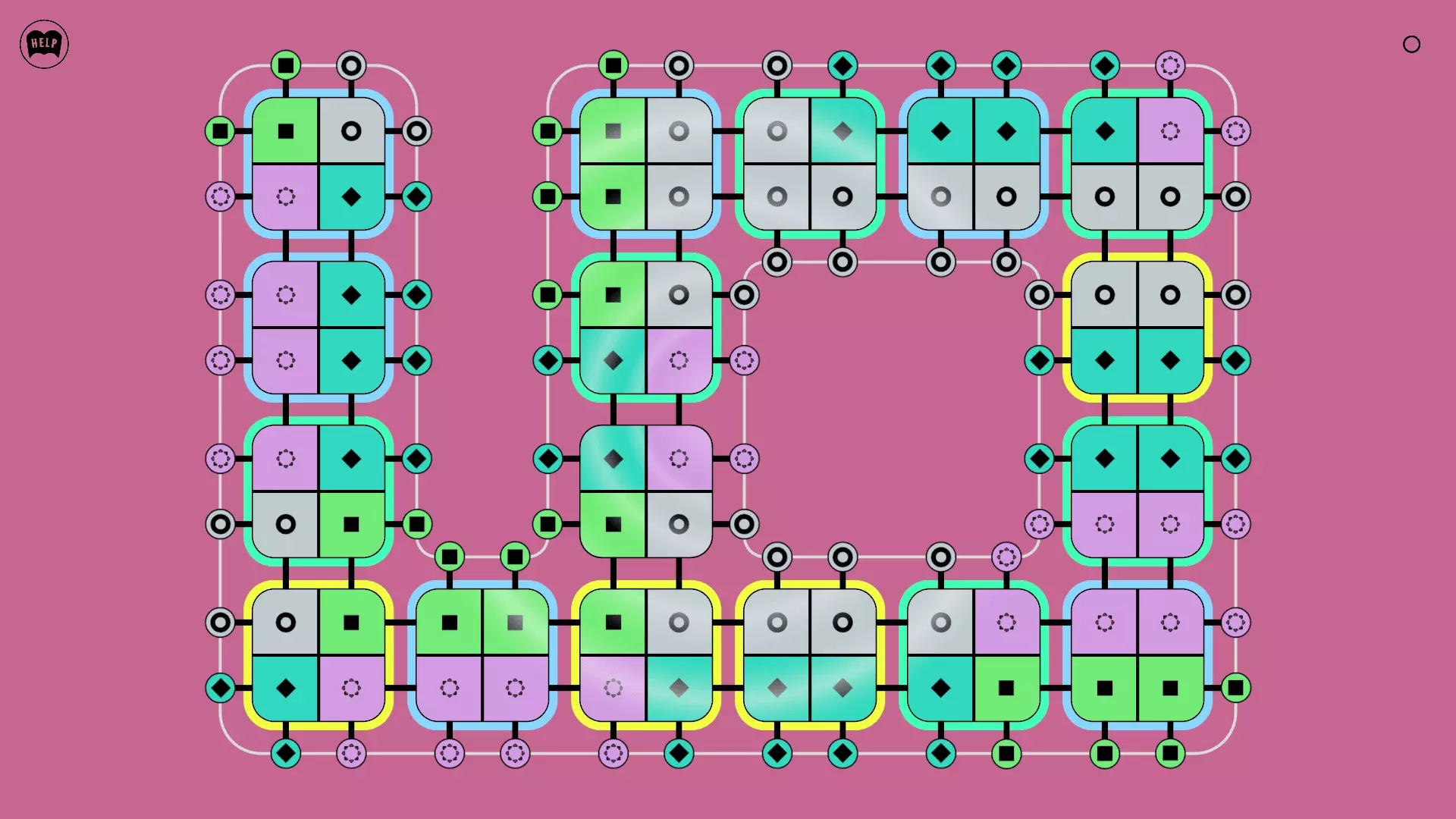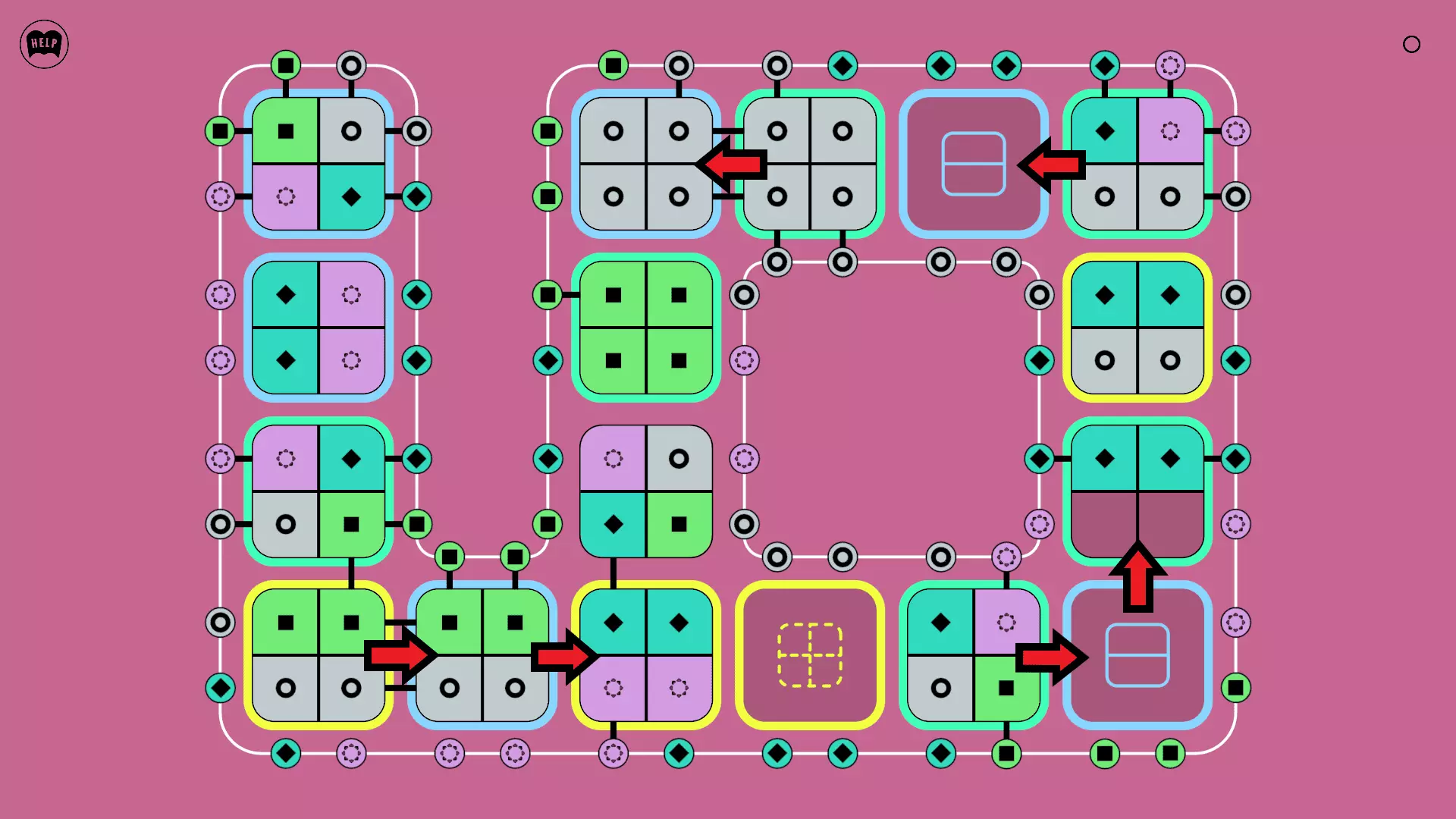 《Lines On Sides》关卡71-84图文攻略 简介 前18个关卡仅提供解决方案,因为解决这些关卡只需旋转或交换方块。 第19关及后续关卡包含步骤说明,解释如何分割、复制和转移方块。 由于Steam的限制,我不得不将本攻略分为两部分。 规则 旋转方块,直到方块上的图标与线条上或相邻方块上的符号匹配。当符号匹配时,它们之间会绘制一条线。 第7关引入了交换被绿线圈住的方块的功能。第14关新增了无法旋转或移动的方块,这类方块外有粗黑线环绕。 第19关新增了分裂平台,该平台外有蓝色线条环绕。此平台可将方块分裂为两个,或将两个方块合并为一个。