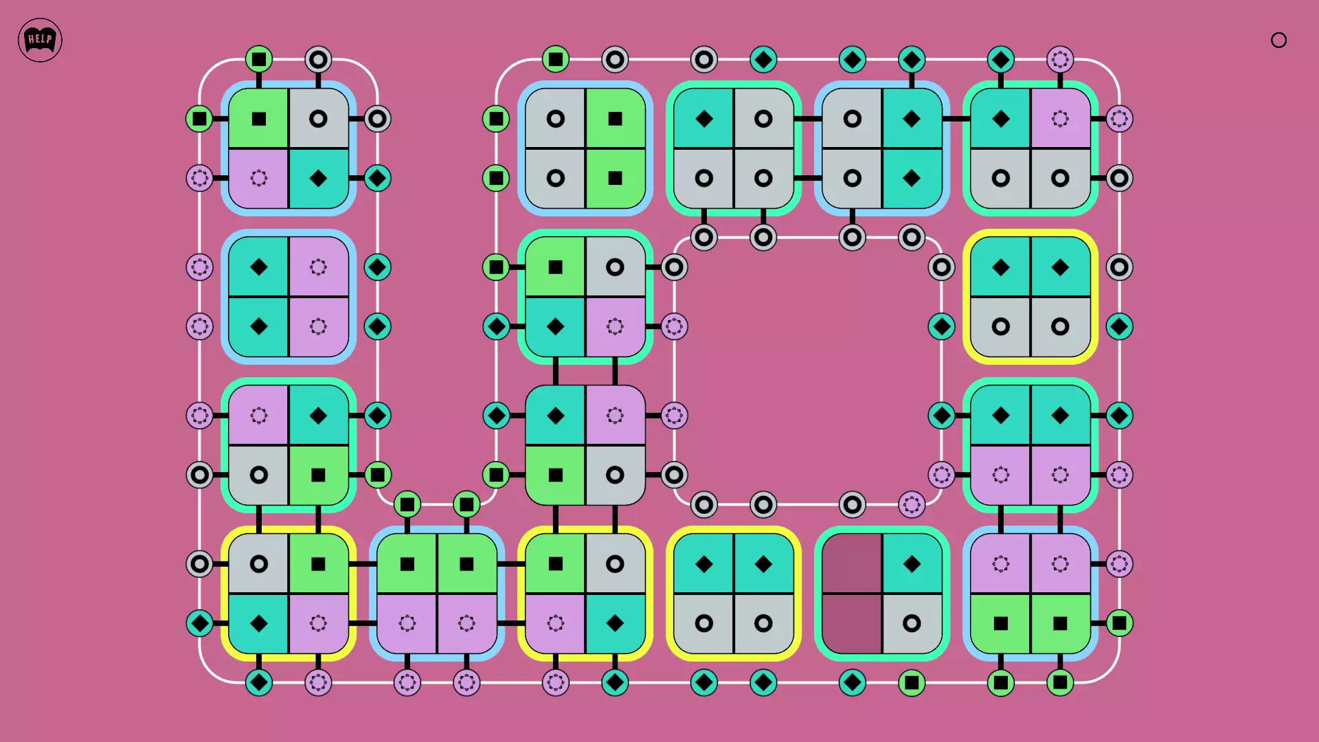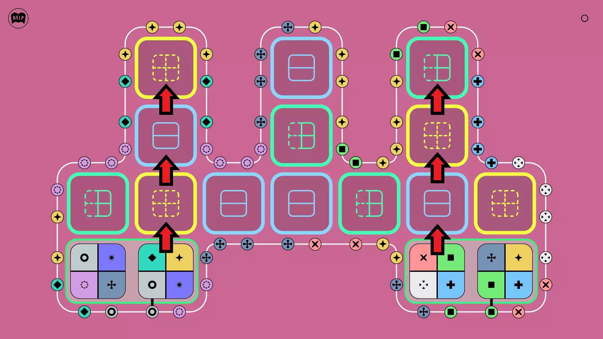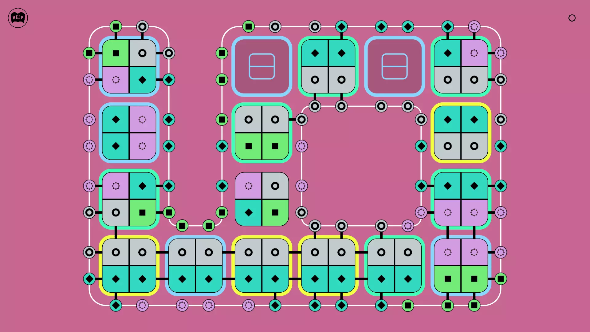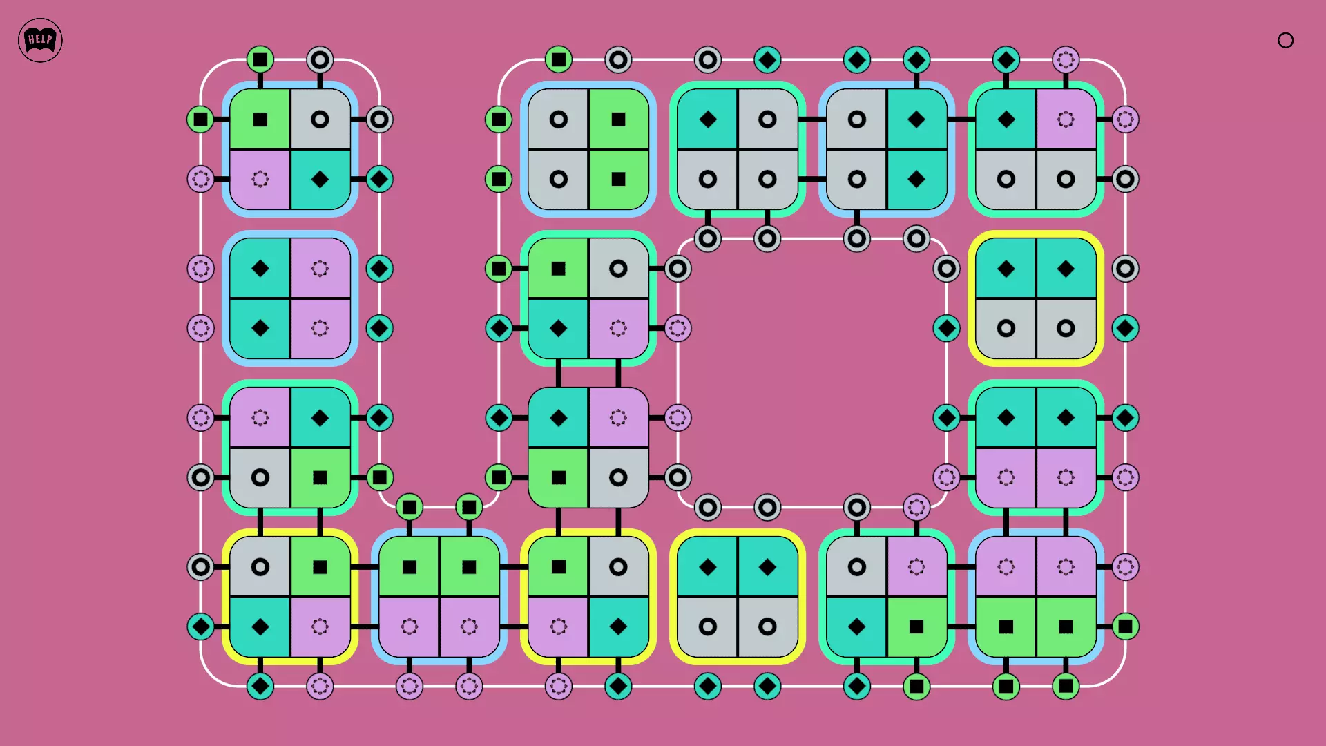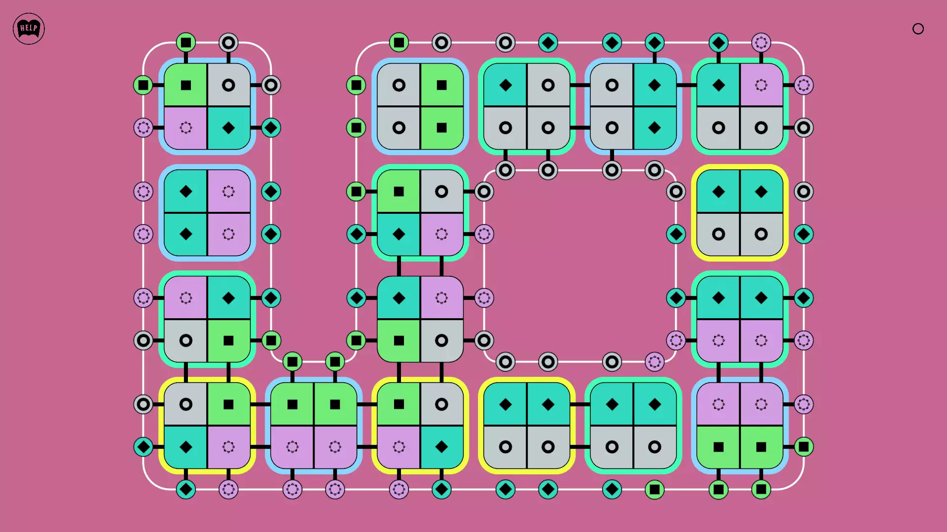 《Lines On Sides》关卡71-84图文攻略 简介 前18个关卡仅提供解决方案,因为解决这些关卡只需旋转或交换方块。 第19关及后续关卡包含步骤说明,解释如何分割、复制和转移方块。 由于Steam的限制,我不得不将本攻略分为两部分。 规则 旋转方块,直到方块上的图标与线条上或相邻方块上的符号匹配。当符号匹配时,它们之间会绘制一条线。 第7关引入了交换被绿线圈住的方块的功能。第14关新增了无法旋转或移动的方块,这类方块外有粗黑线环绕。 第19关新增了分裂平台,该平台外有蓝色线条环绕。此平台可将方块分裂为两个,或将两个方块合并为一个。
