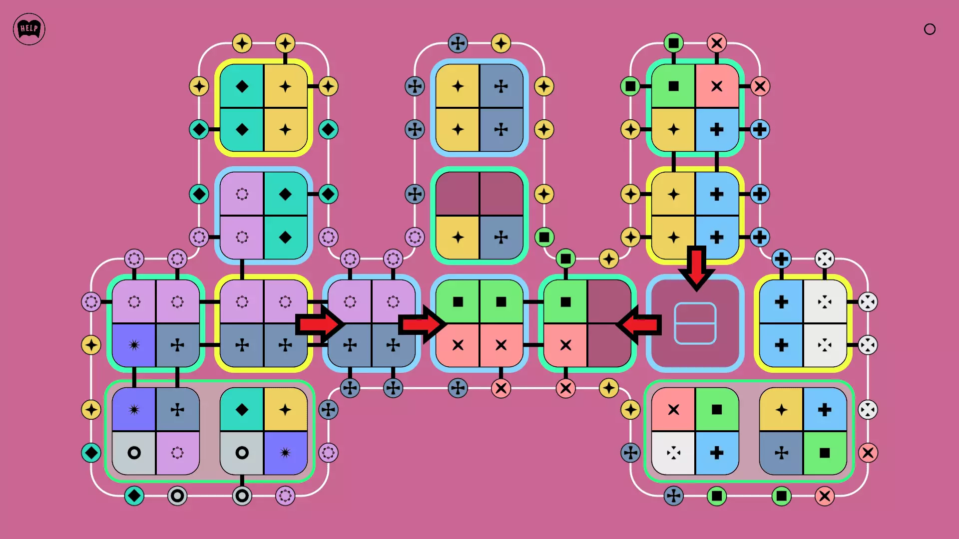 第79关(困难模式第6关) 将瓷砖旋转至下方位置并进行半复制。