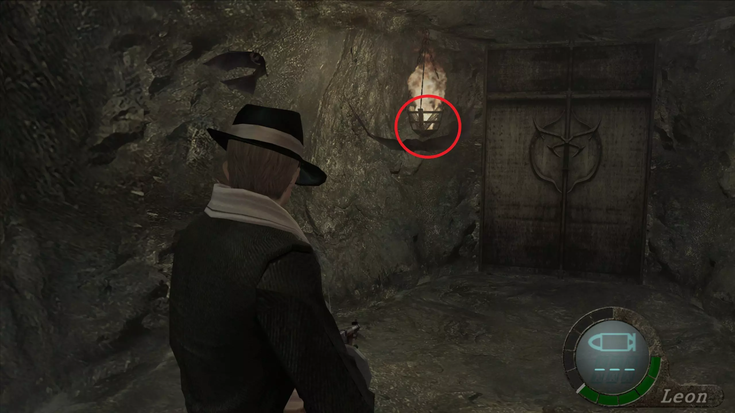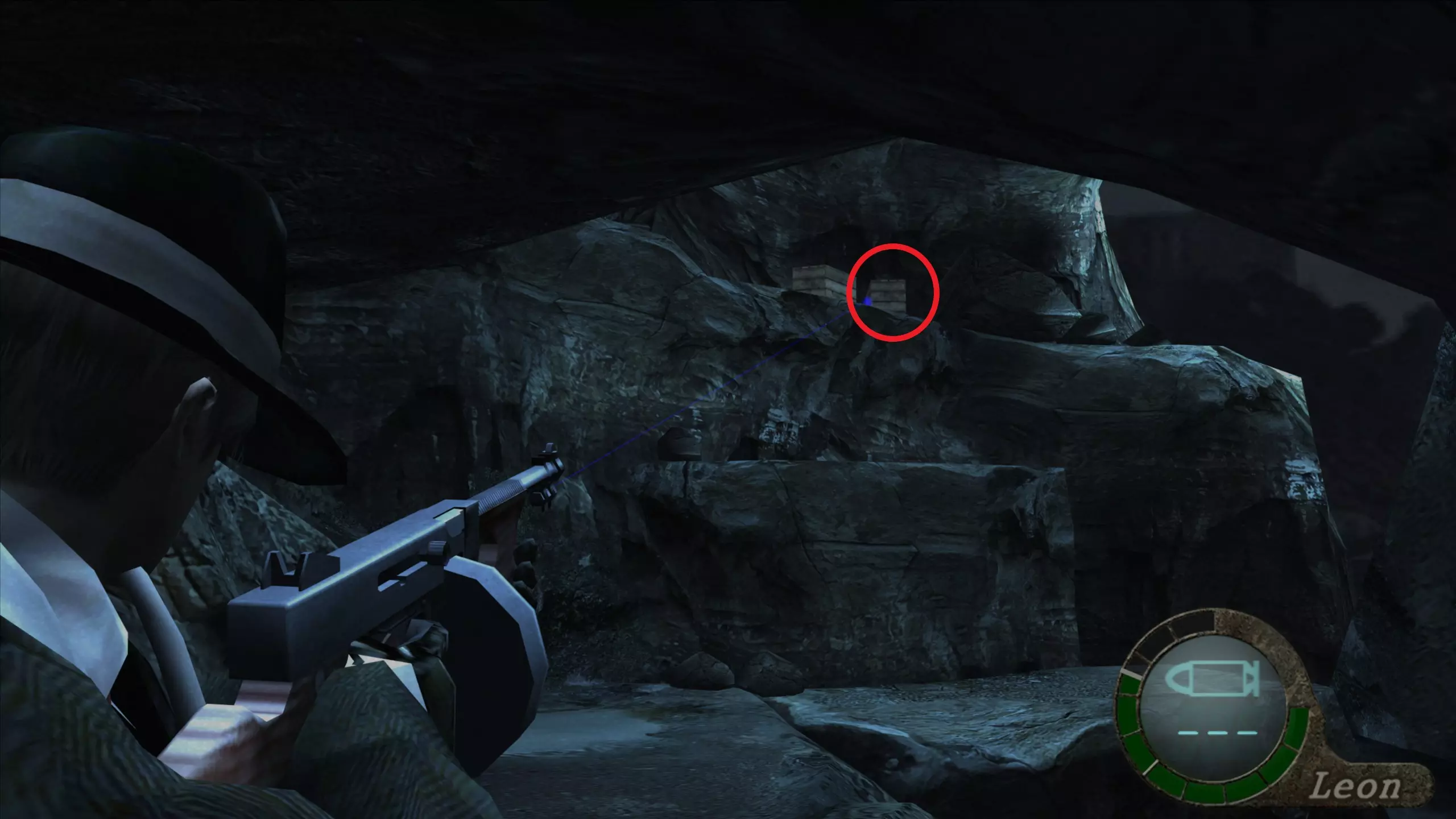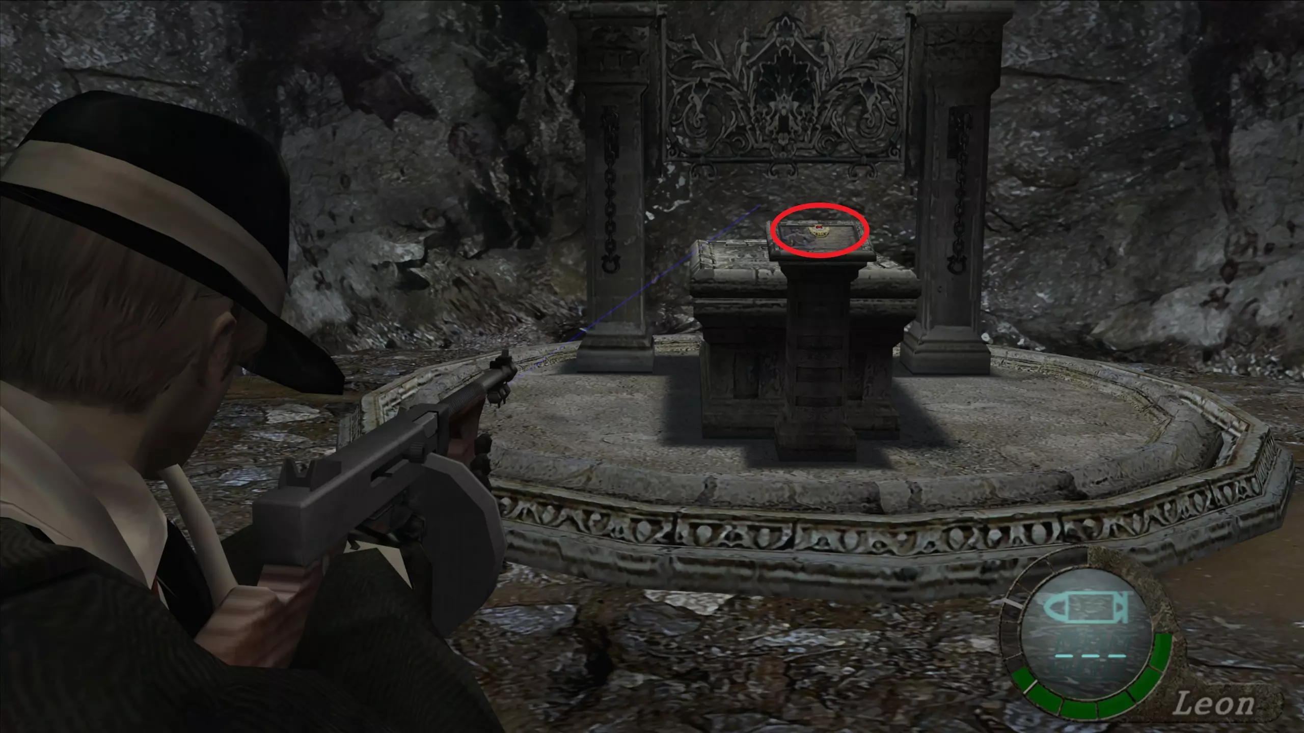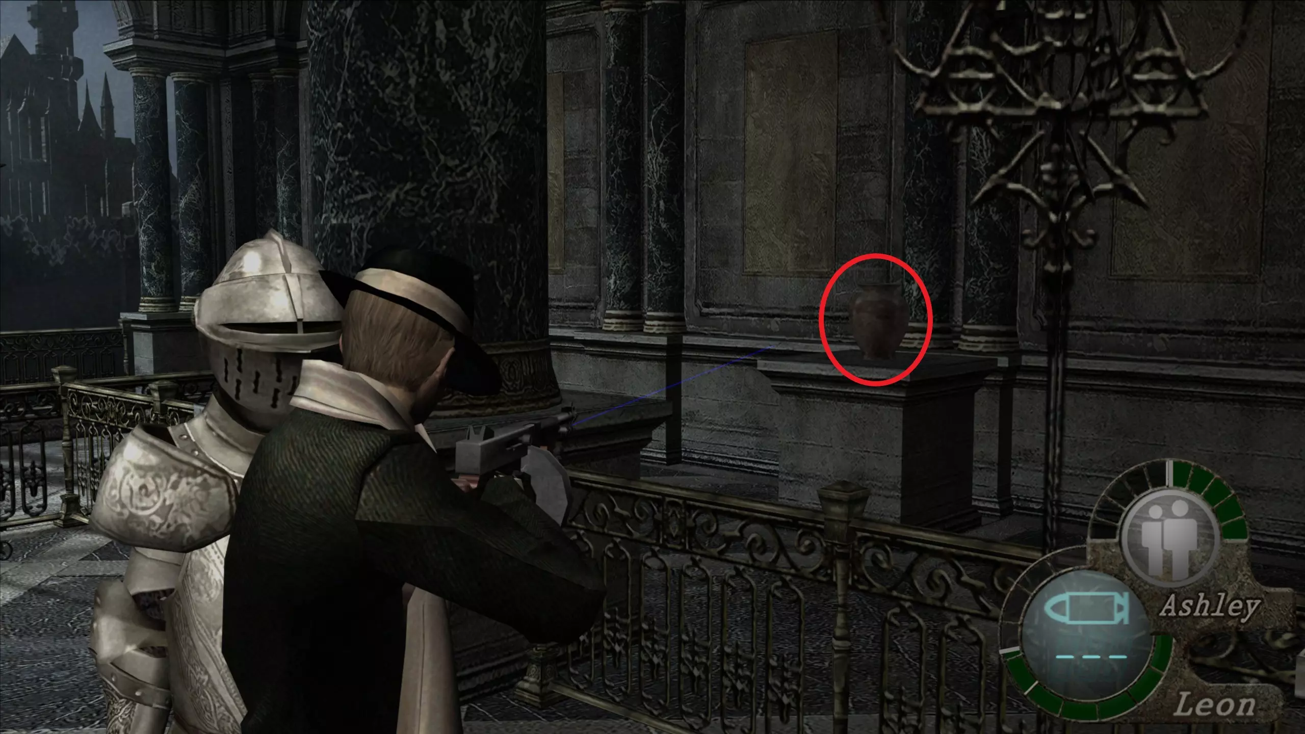 华丽梳妆台(1),匕首(11)(12) 在上一个场景的灯之后,我们下到一个洞穴,中间有另一盏相同的灯,我们必须向它射击,以显示一个华丽梳妆台和2把匕首的位置。