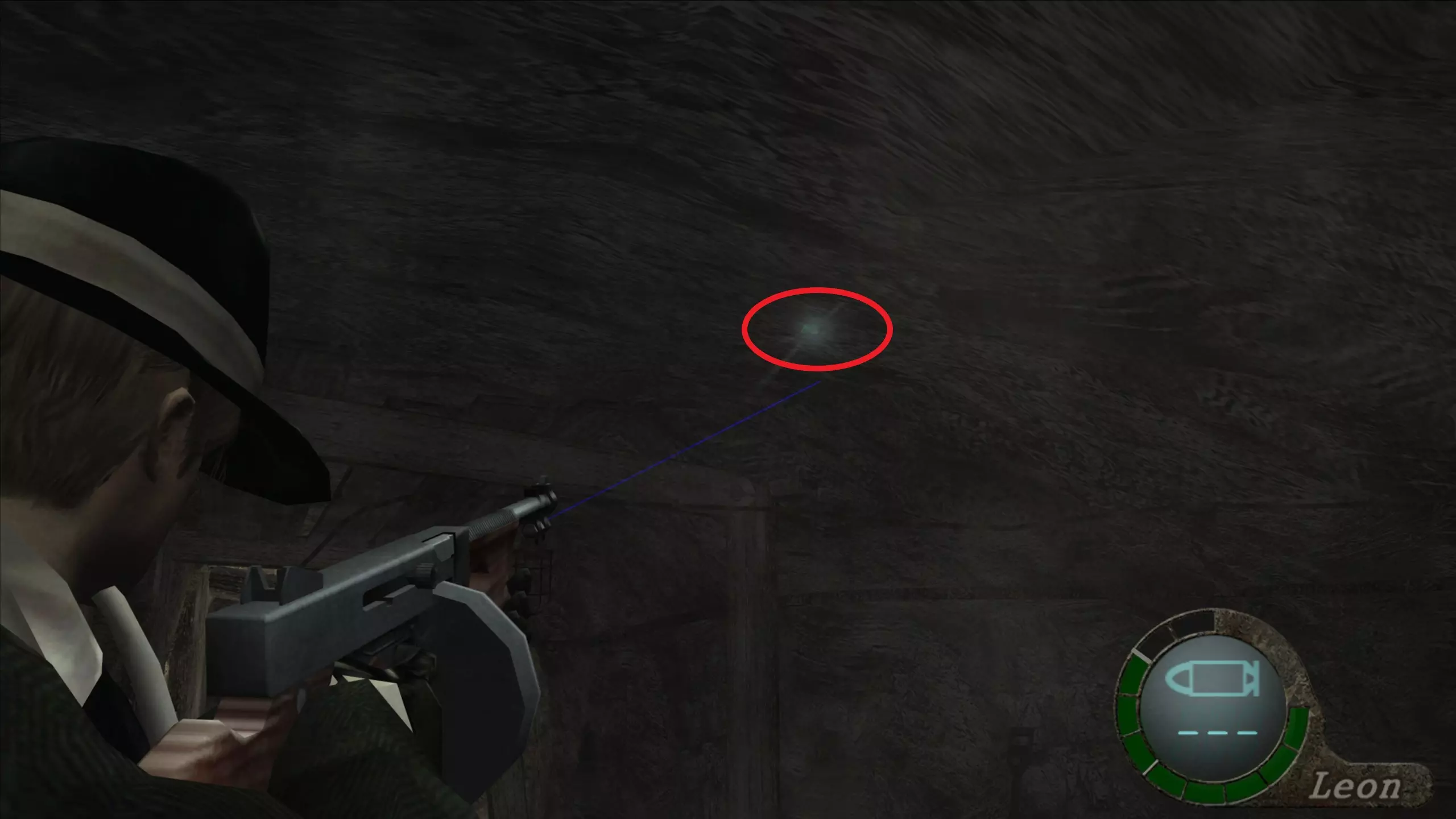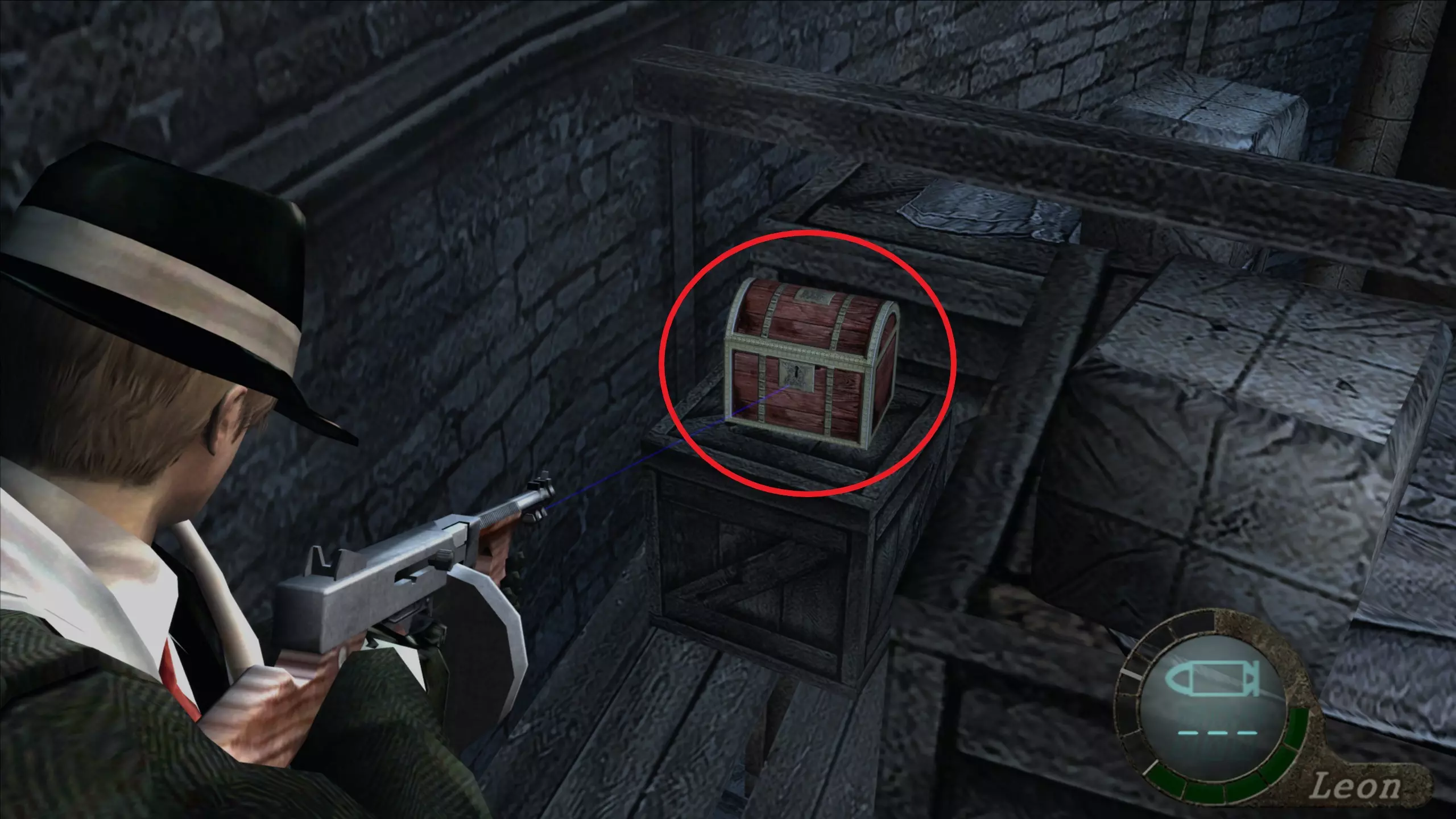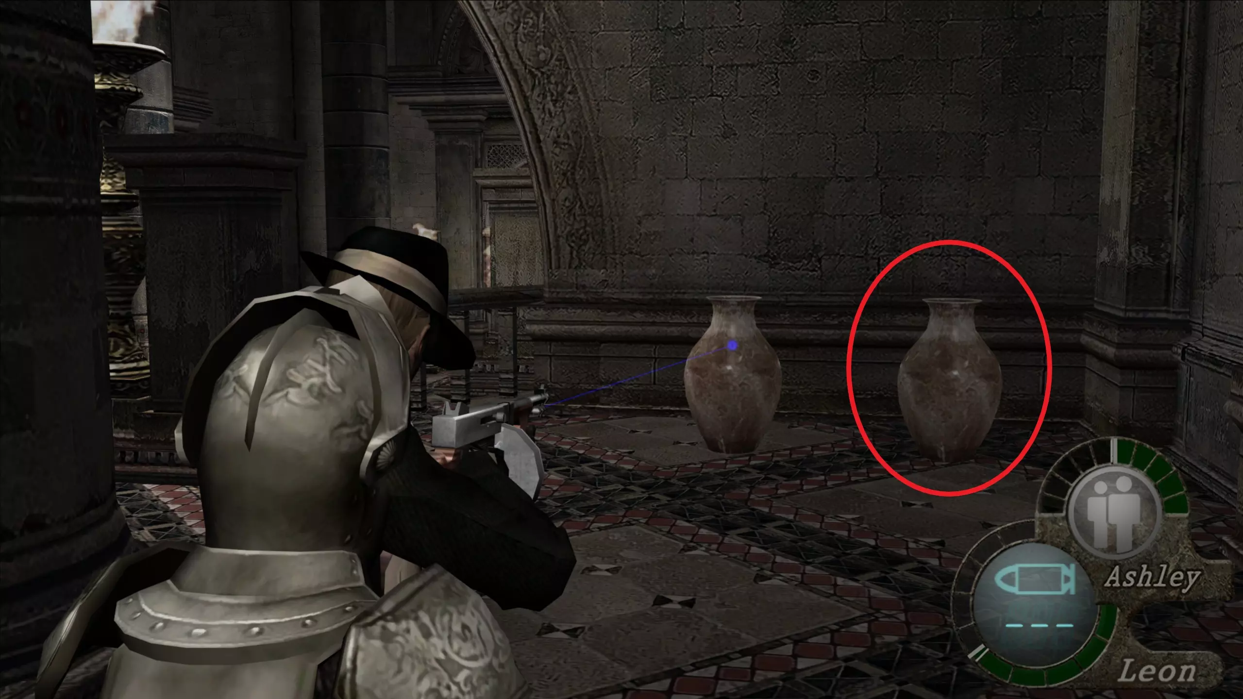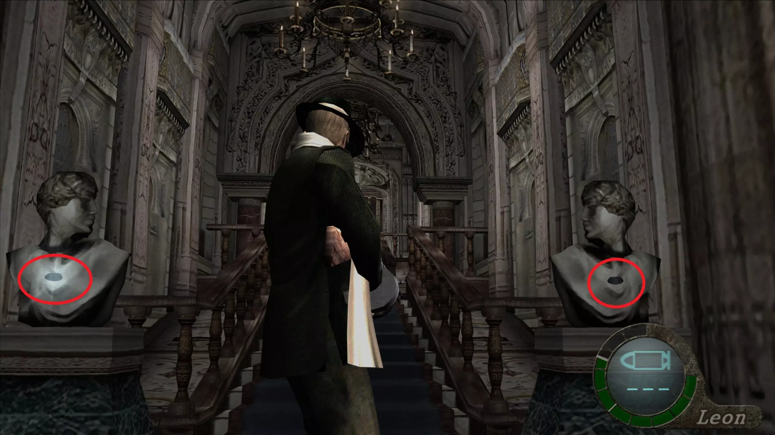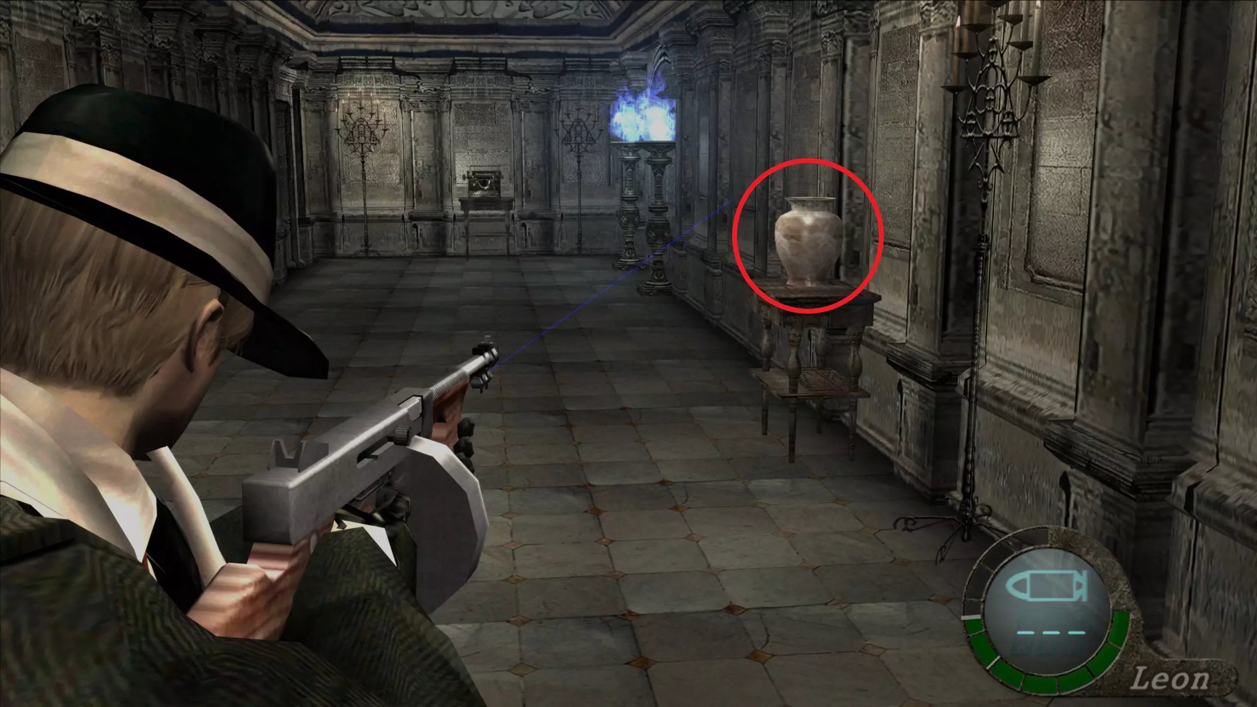 华丽梳妆台(1),匕首(11)(12) 在上一个场景的灯之后,我们下到一个洞穴,中间有另一盏相同的灯,我们必须向它射击,以显示一个华丽梳妆台和2把匕首的位置。