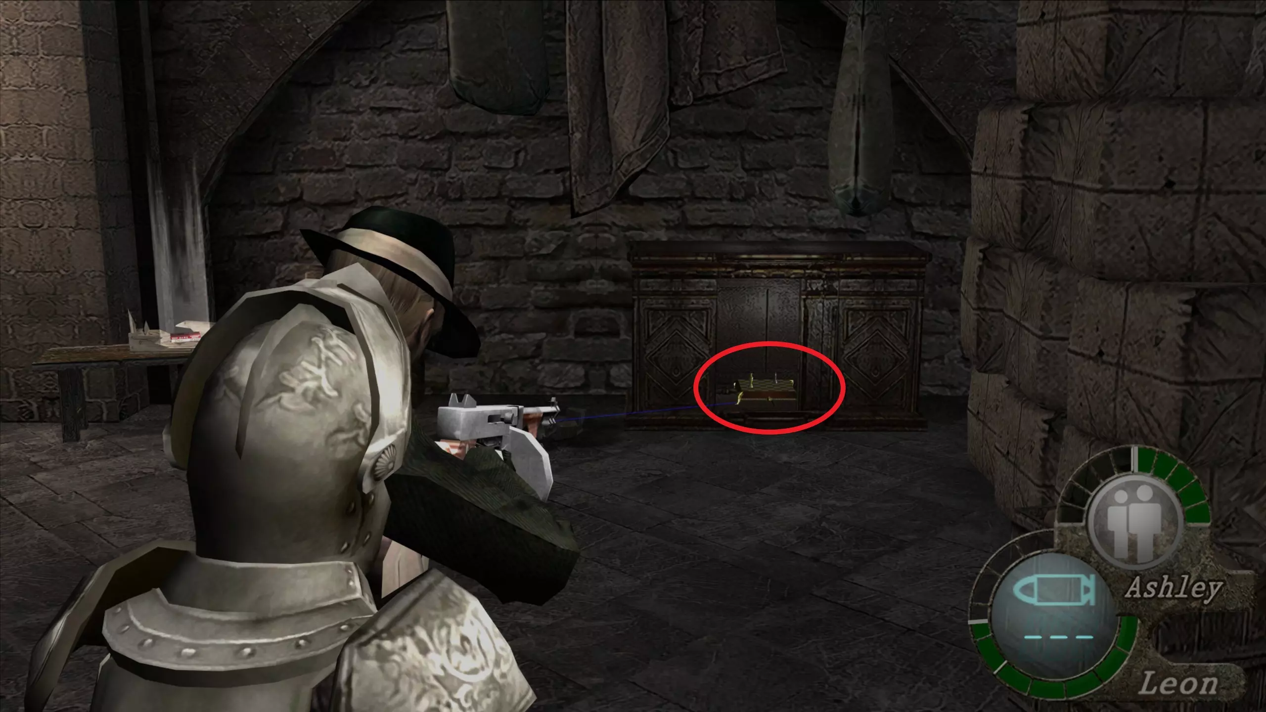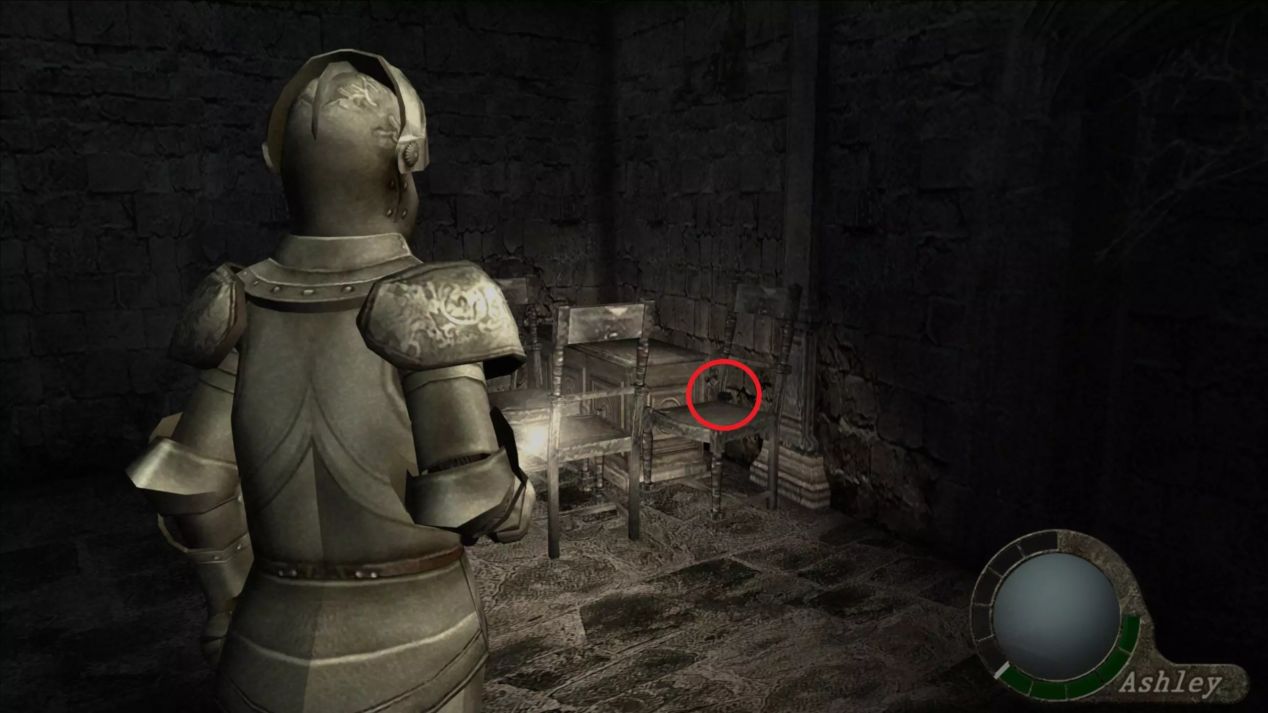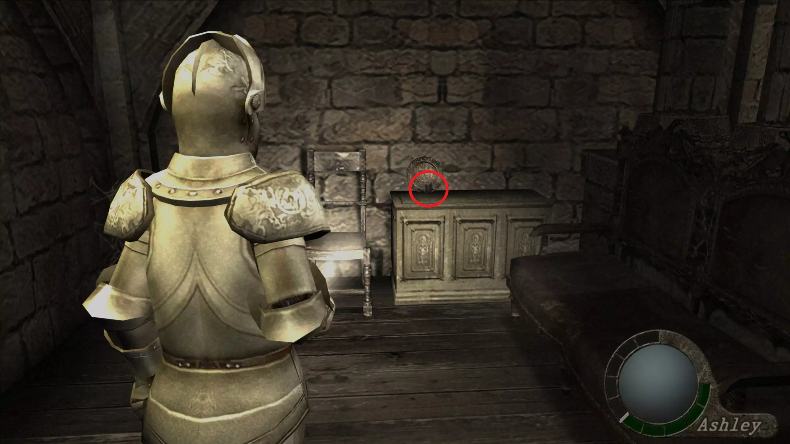 【绿宝石(3)】 在看到阿什莉被囚禁的过场动画后,我们需要继续前进,会看到一些储物柜,绿宝石就在我们能打开的第三个储物柜里。